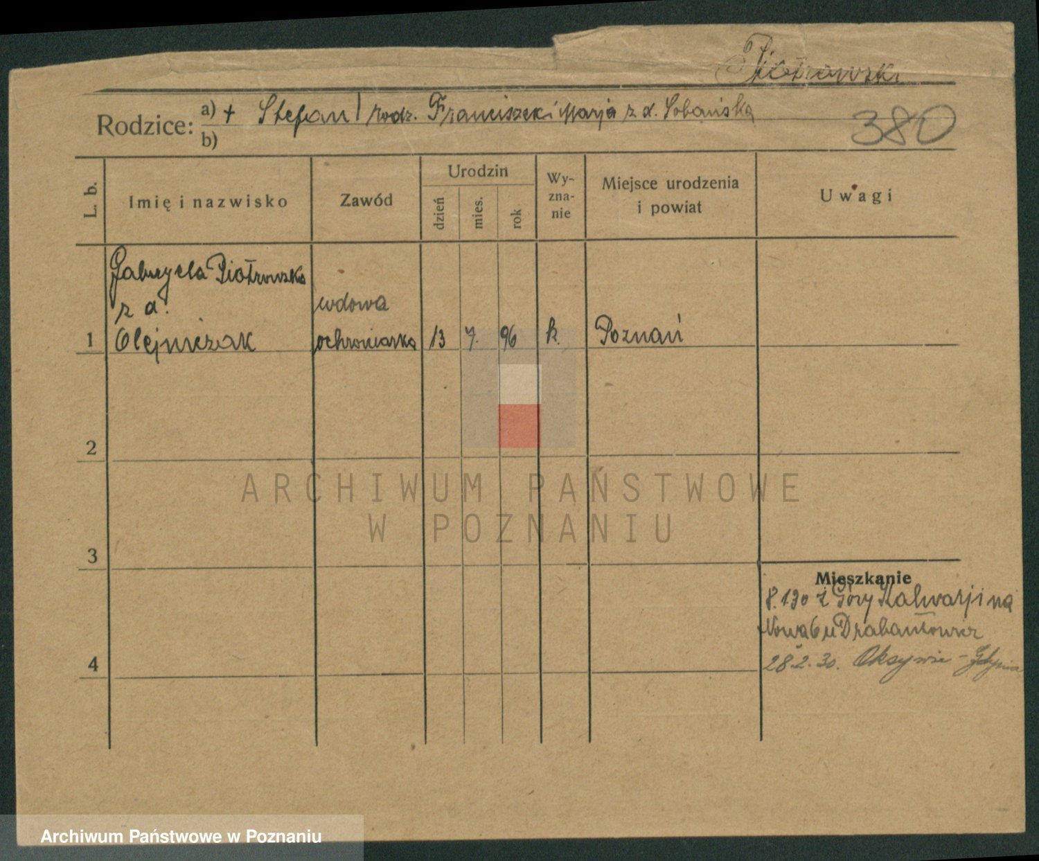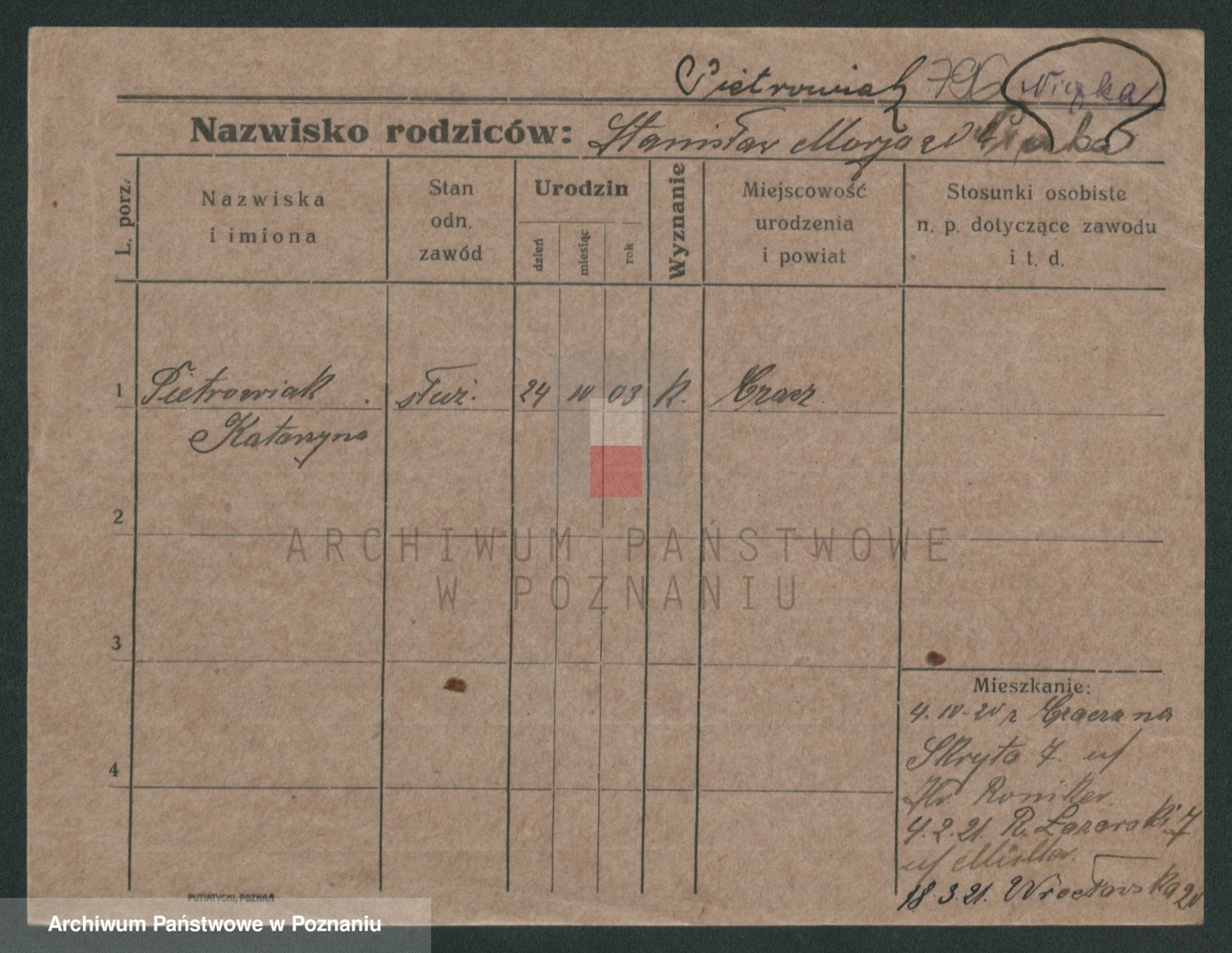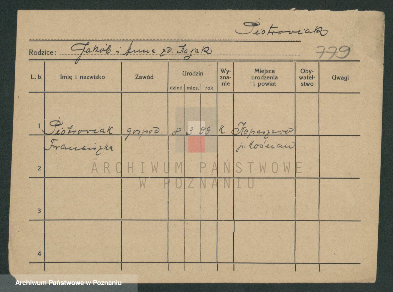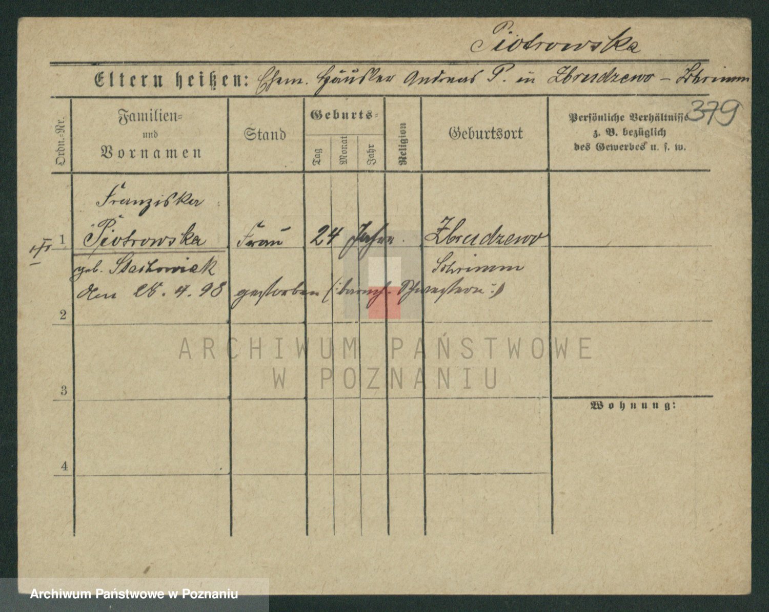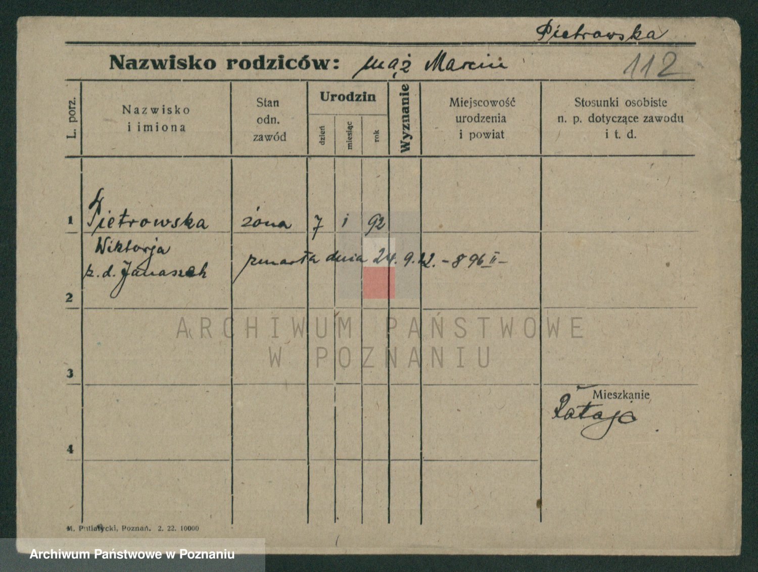 Pietrowiak z d. Knapczyk I v. Grzybowska, Franciszka