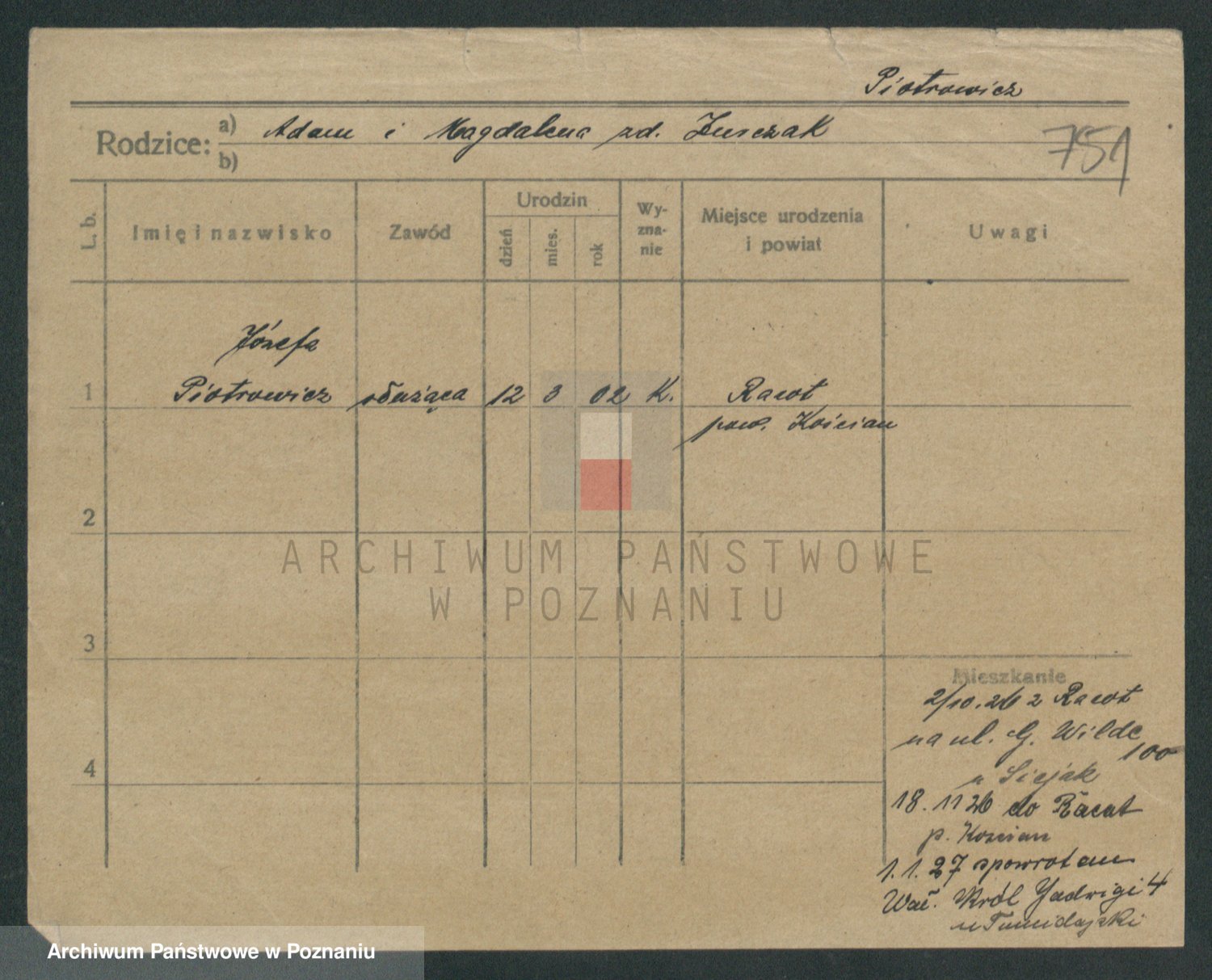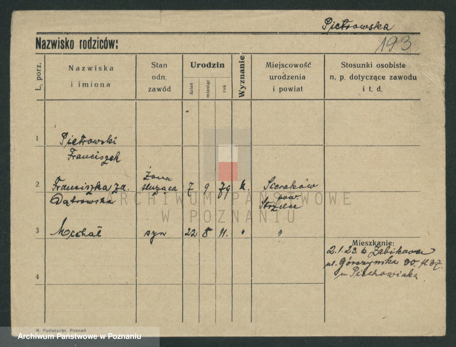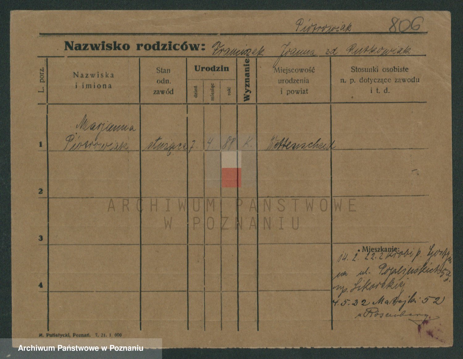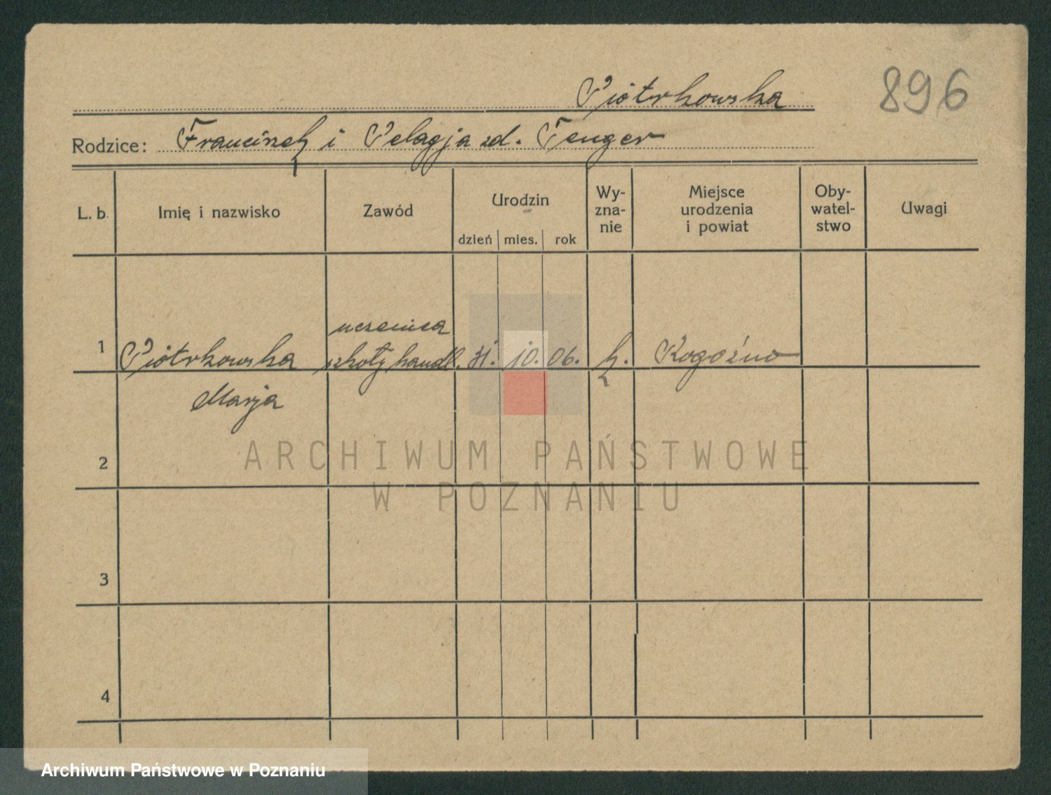 Pietrowiak z d. Knapczyk I v. Grzybowska, Franciszka