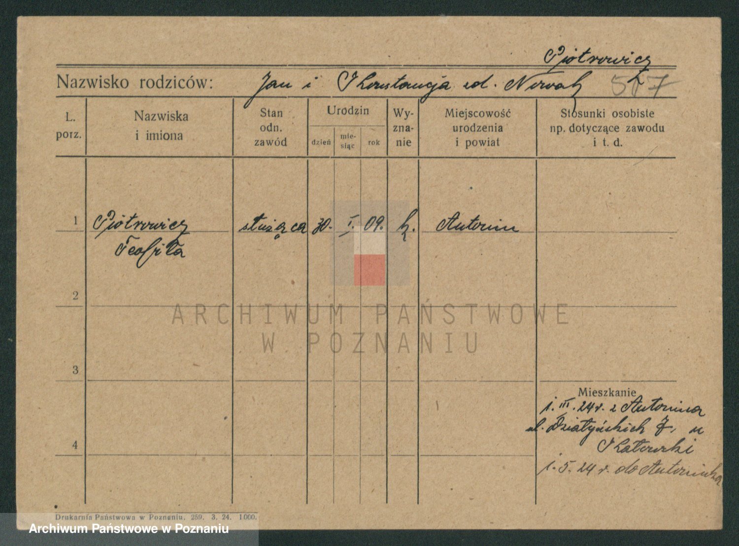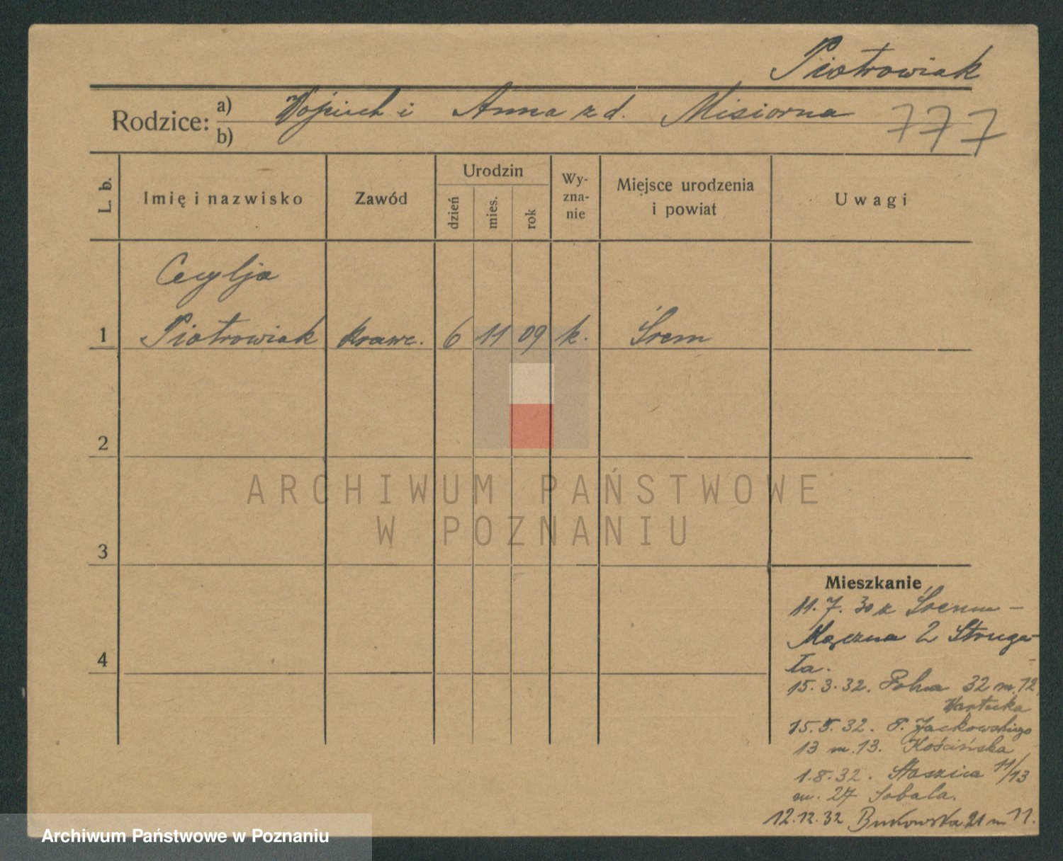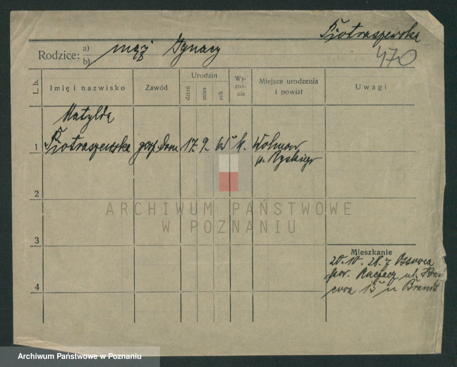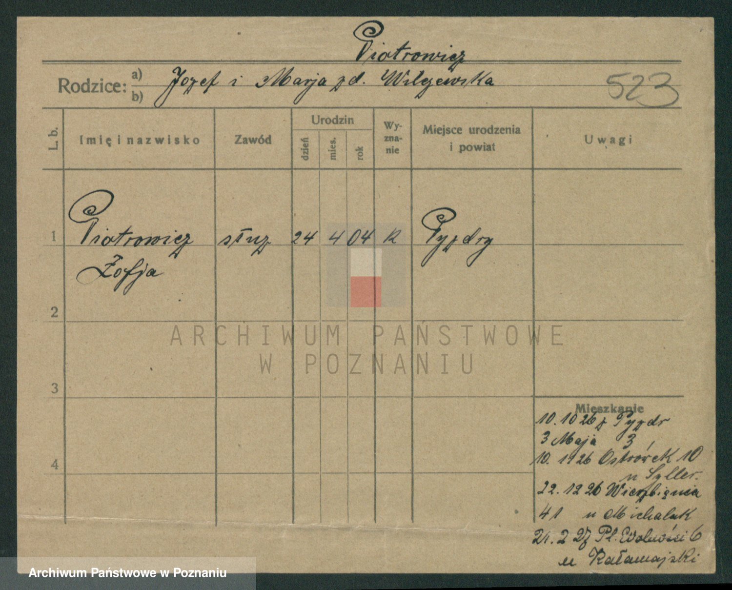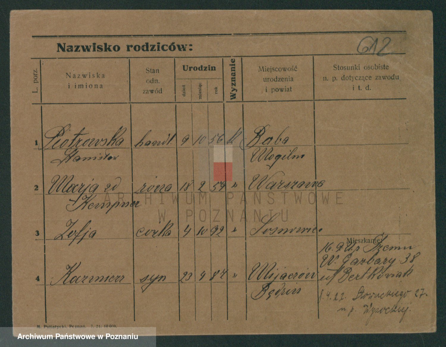 Pietrowiak z d. Knapczyk I v. Grzybowska, Franciszka