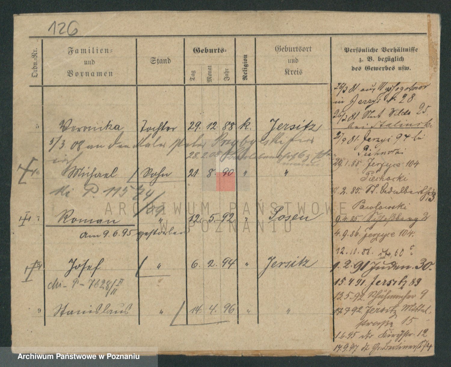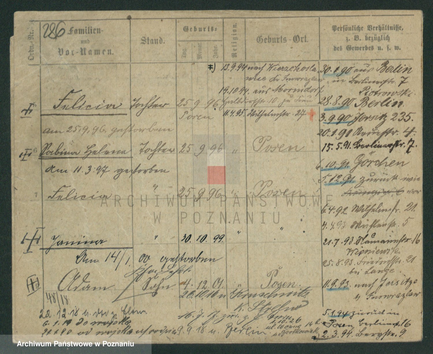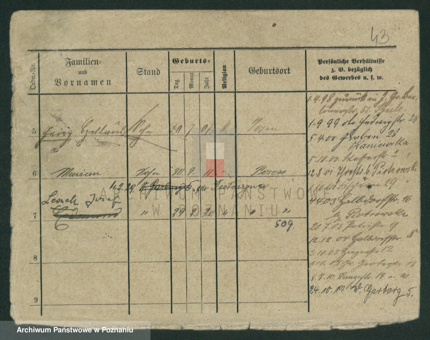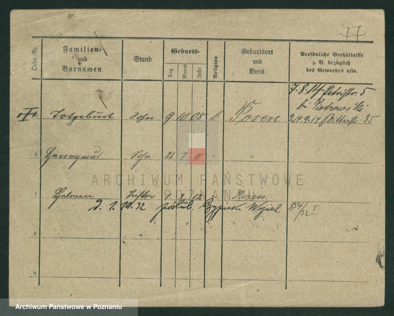 Durch Anklicken eines Namens oder Kartensymbols gelangen Sie zum Vorschau einer Personalkarte. Sie können die Ansicht vergrößern (Symbole am oberen Rand) oder zwischen den Scans wechseln (Pfeile an den Seiten).