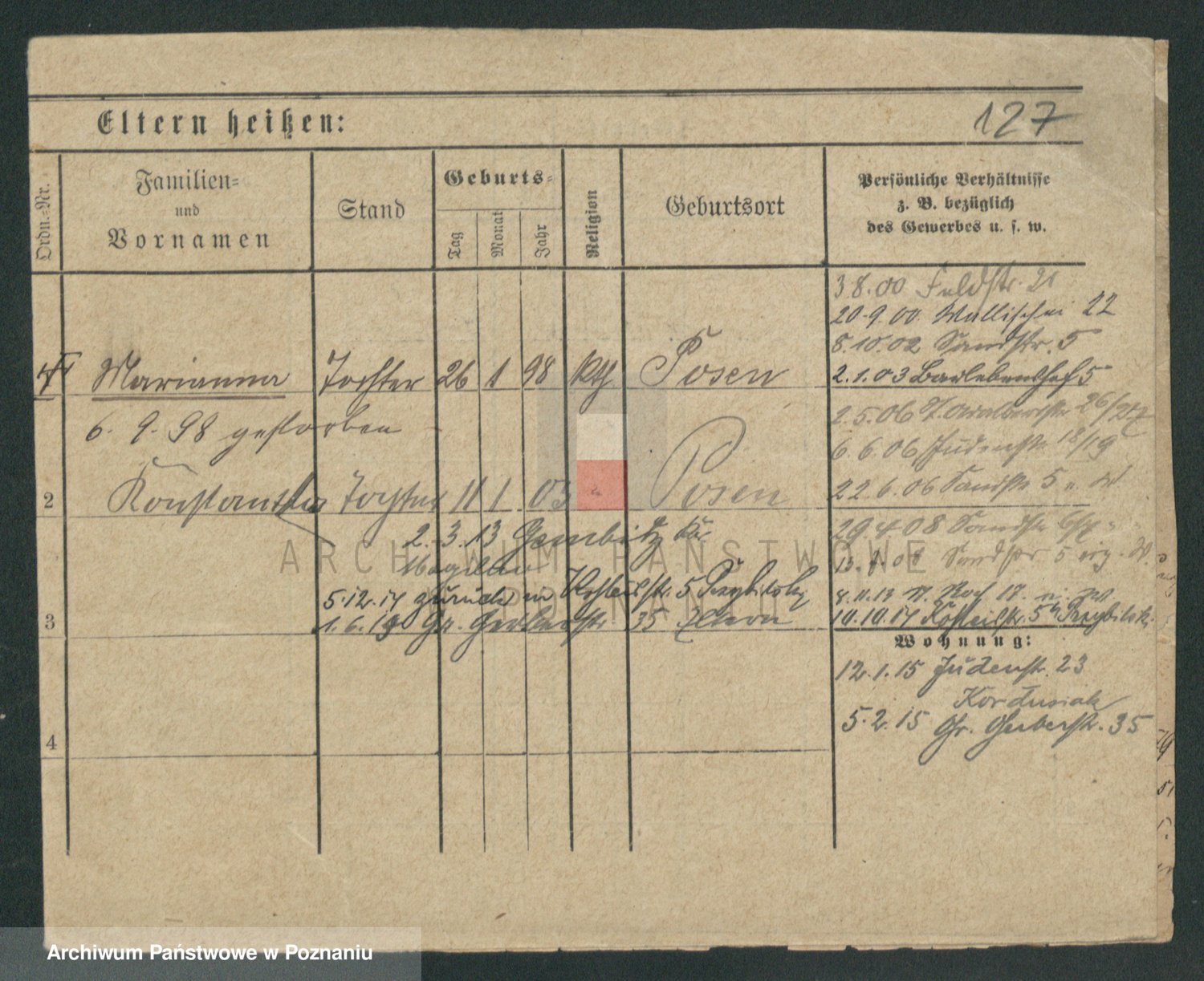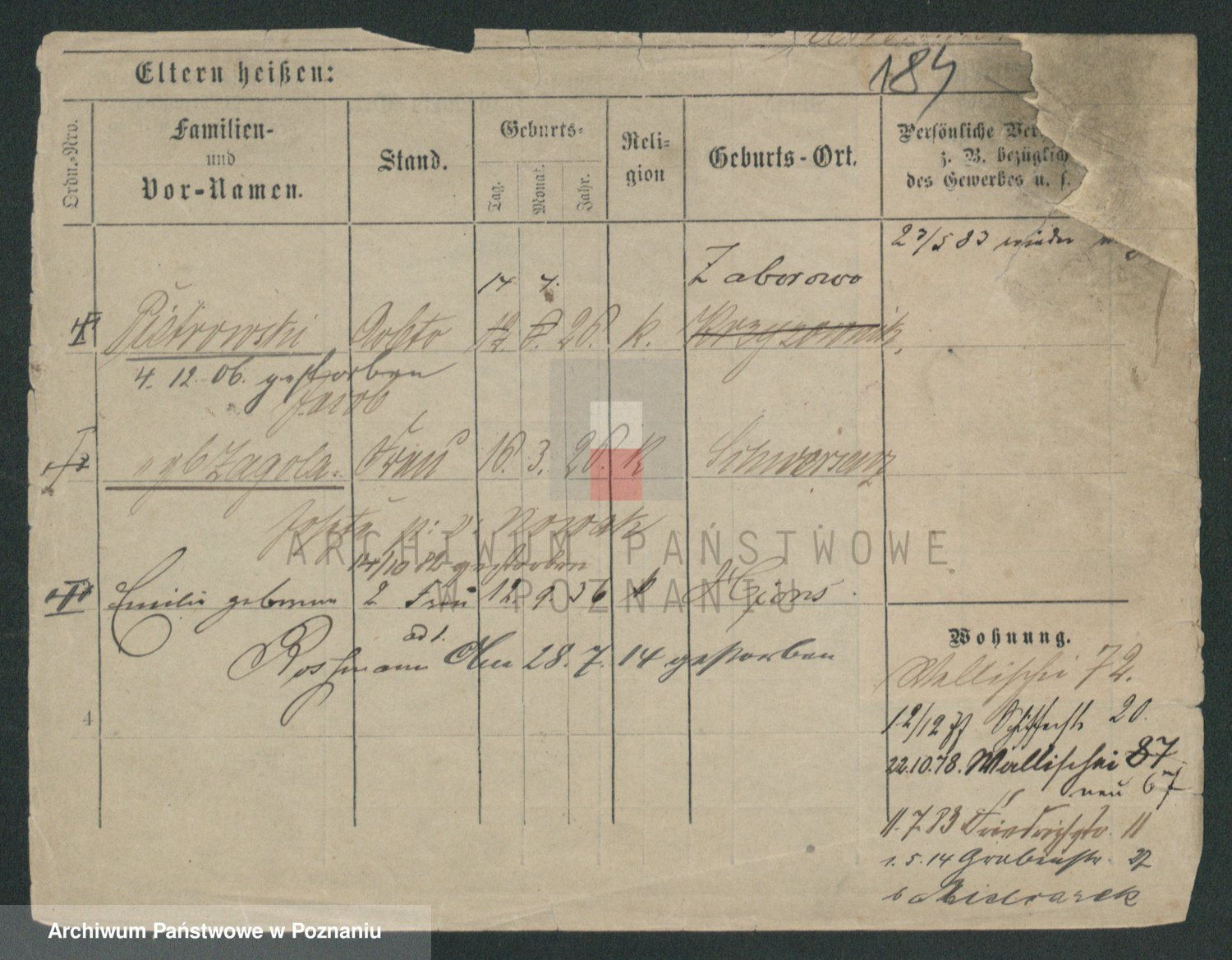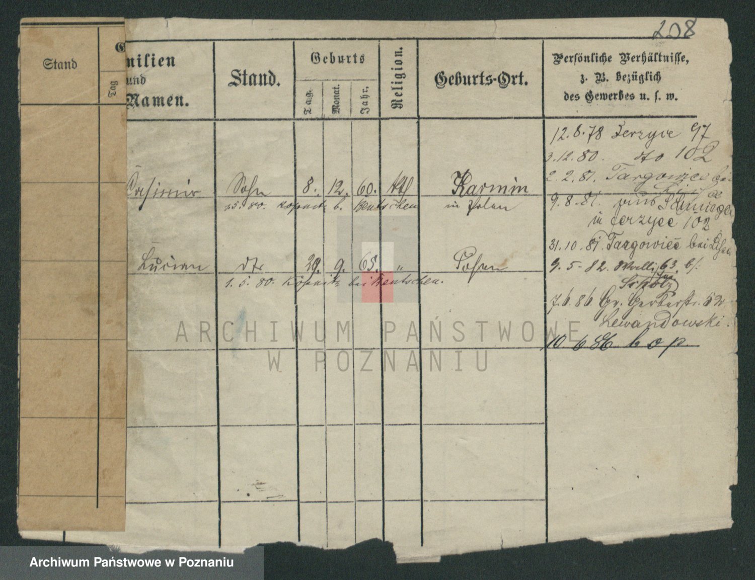 Durch Anklicken eines Namens oder Kartensymbols gelangen Sie zum Vorschau einer Personalkarte. Sie können die Ansicht vergrößern (Symbole am oberen Rand) oder zwischen den Scans wechseln (Pfeile an den Seiten).