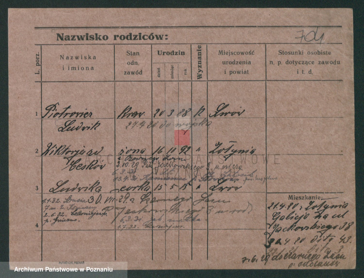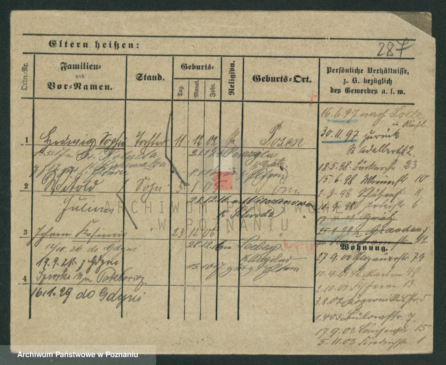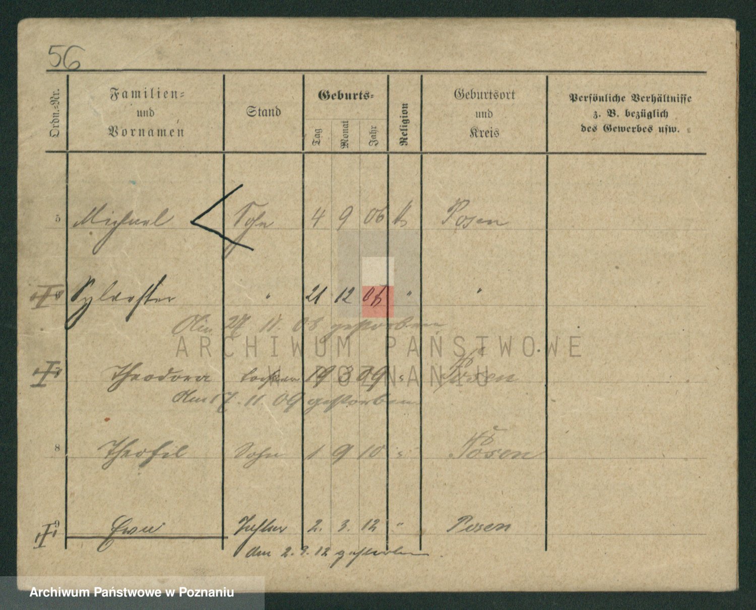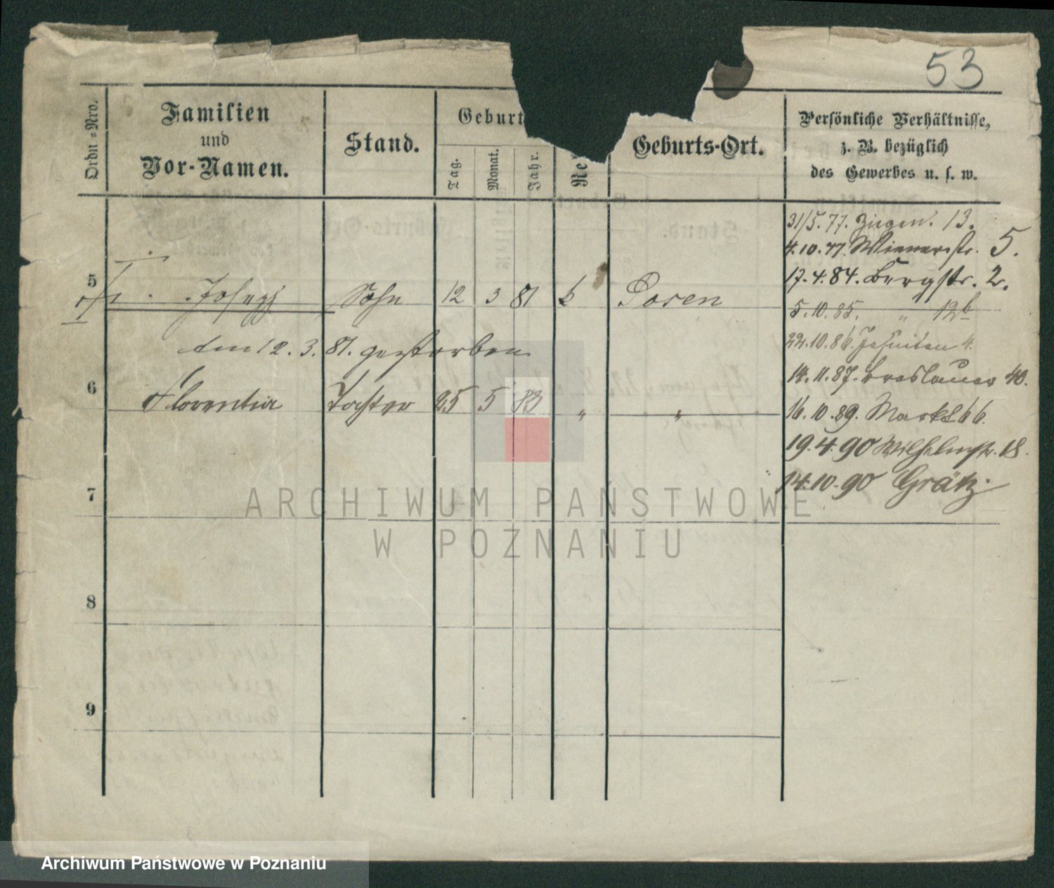 Durch Anklicken eines Namens oder Kartensymbols gelangen Sie zum Vorschau einer Personalkarte. Sie können die Ansicht vergrößern (Symbole am oberen Rand) oder zwischen den Scans wechseln (Pfeile an den Seiten).