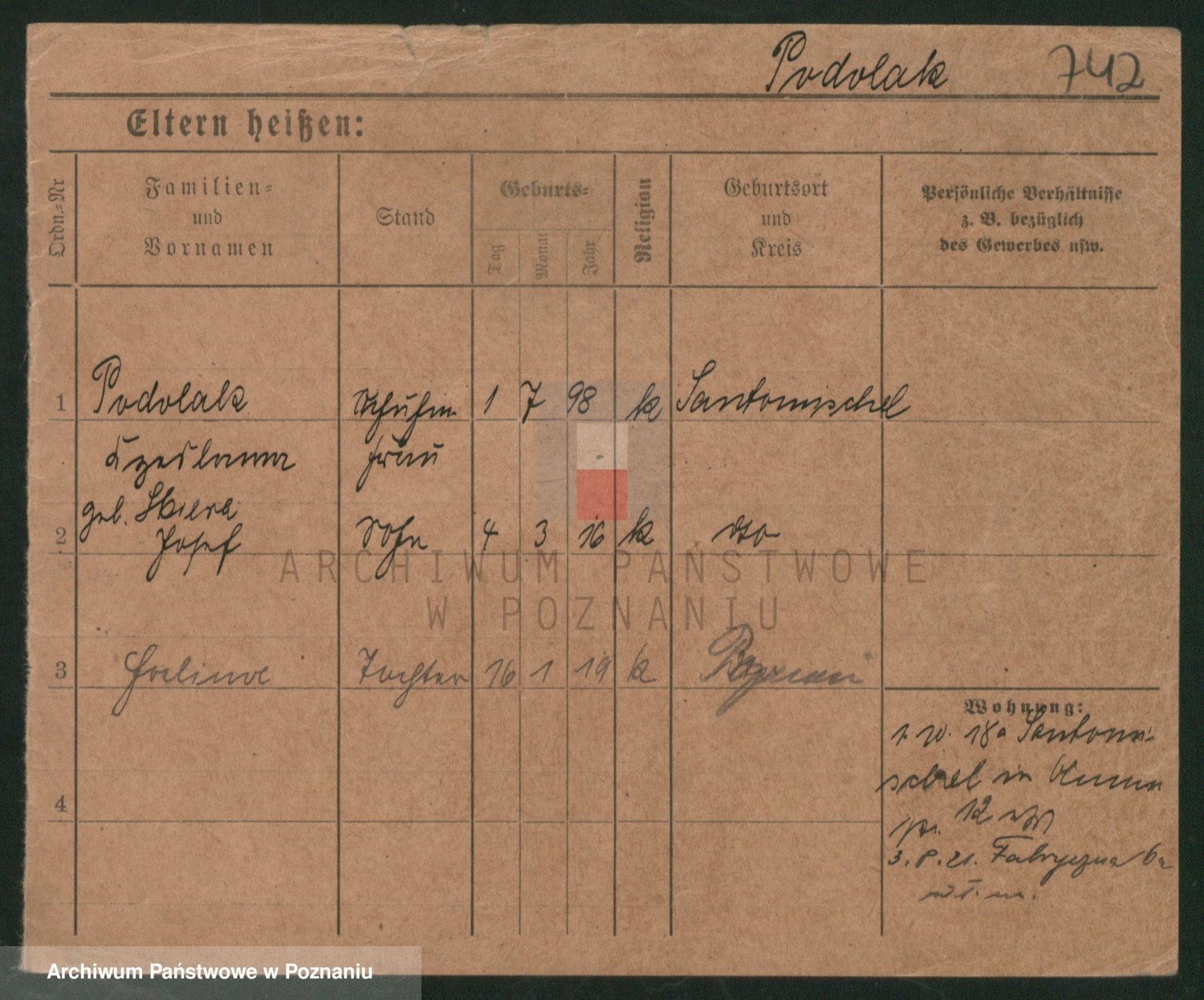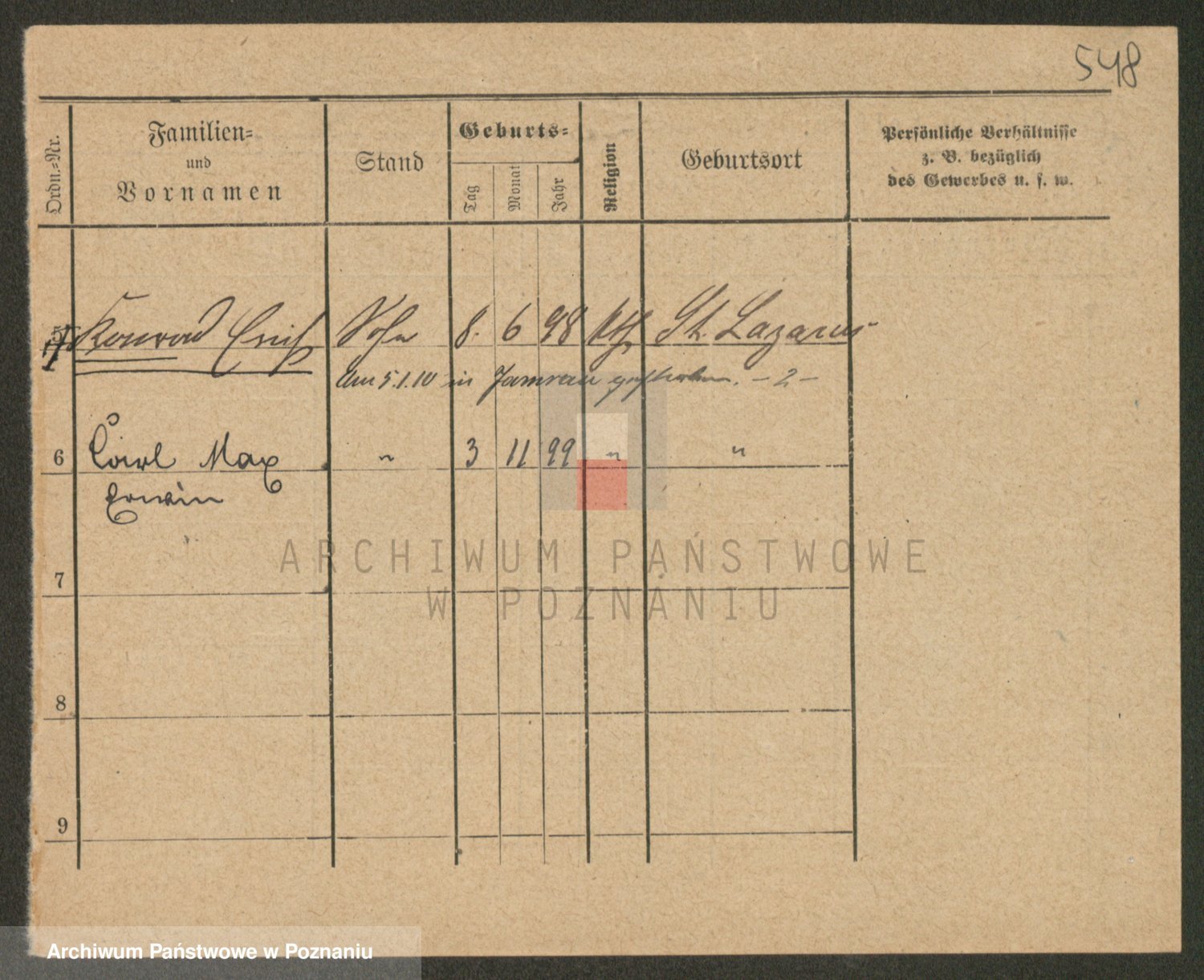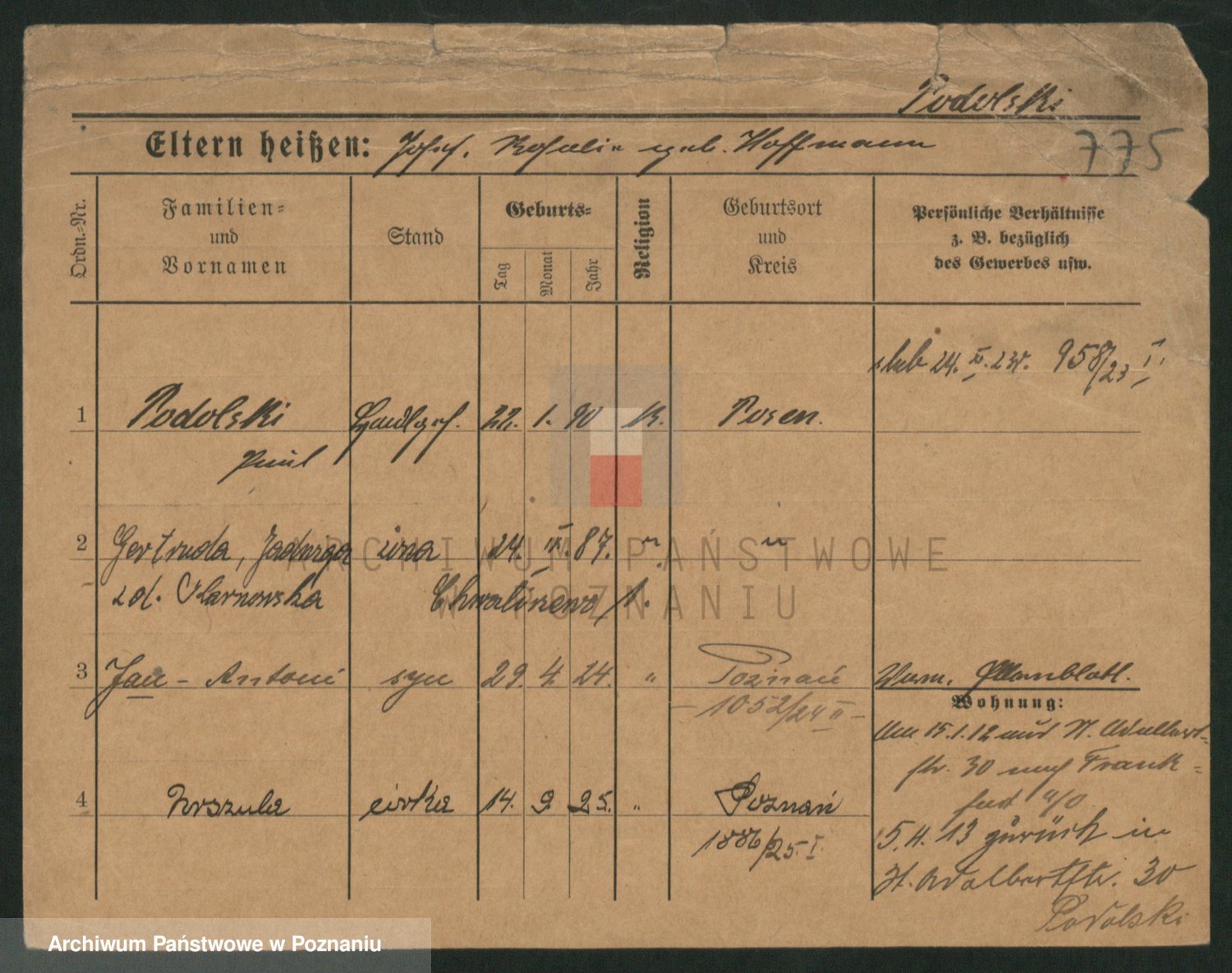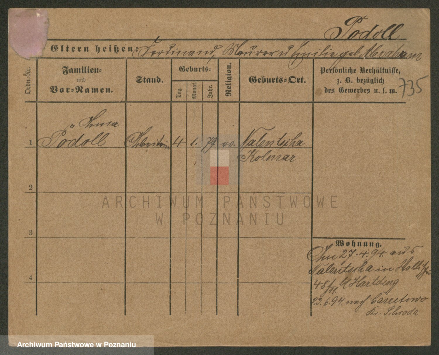 Durch Anklicken eines Namens oder Kartensymbols gelangen Sie zum Vorschau einer Personalkarte. Sie können die Ansicht vergrößern (Symbole am oberen Rand) oder zwischen den Scans wechseln (Pfeile an den Seiten).