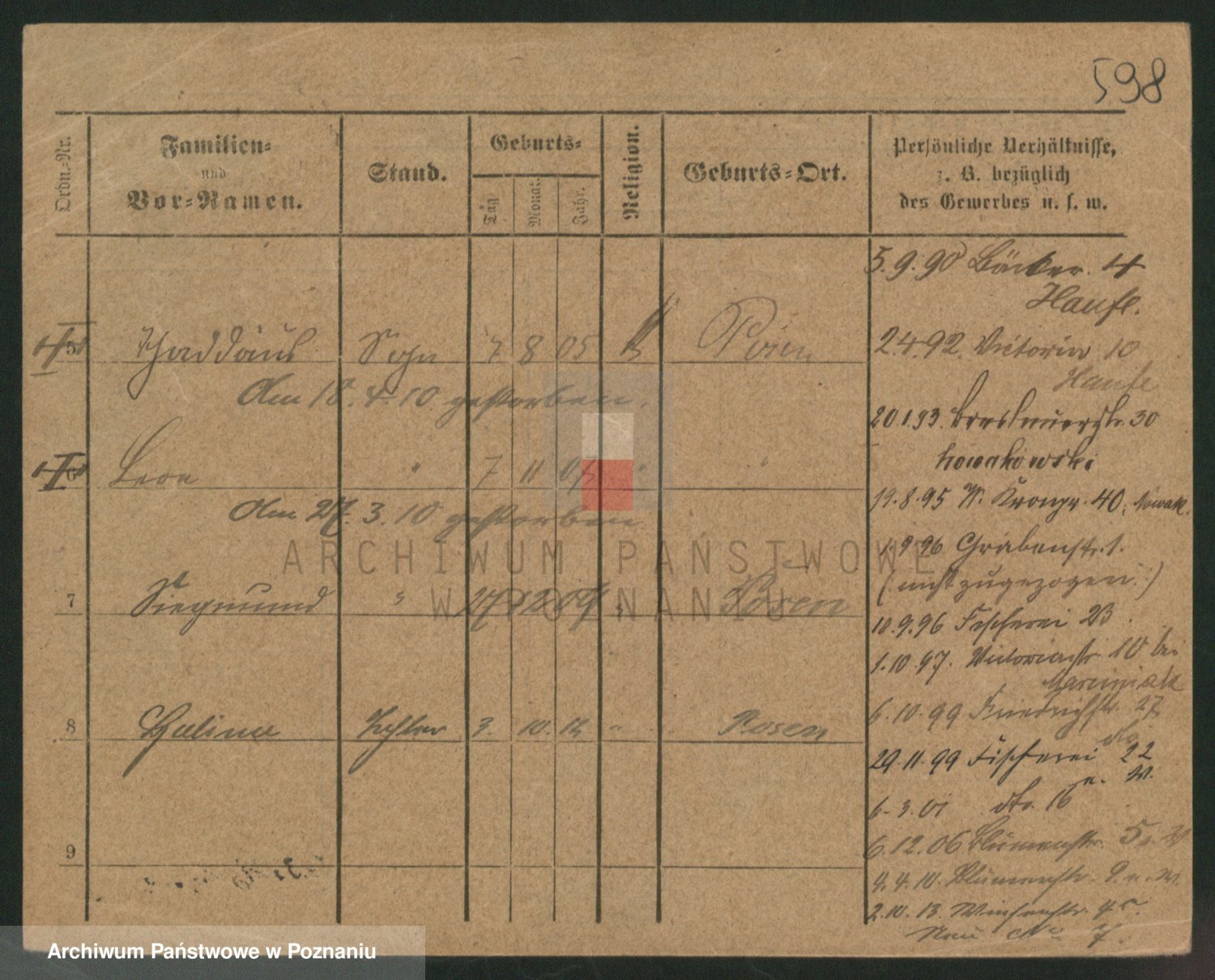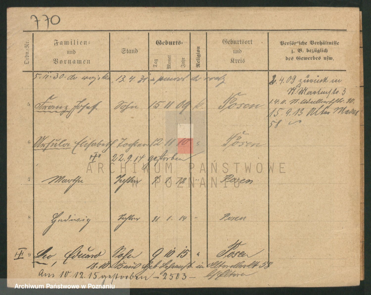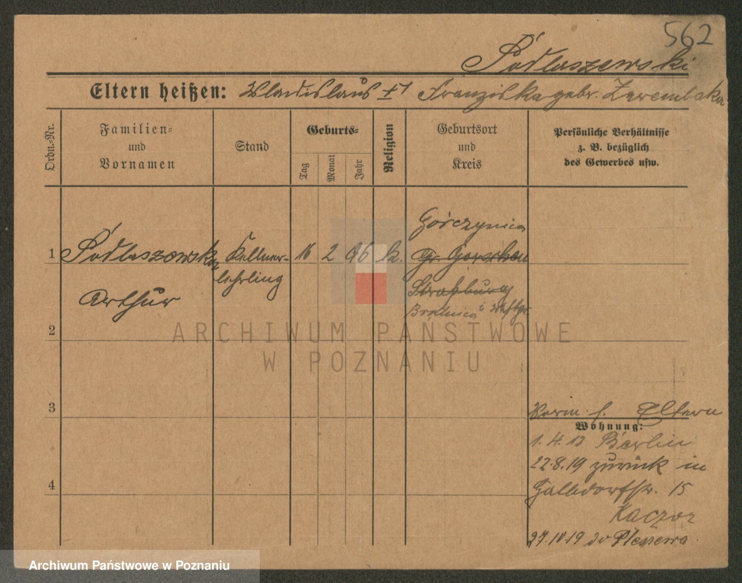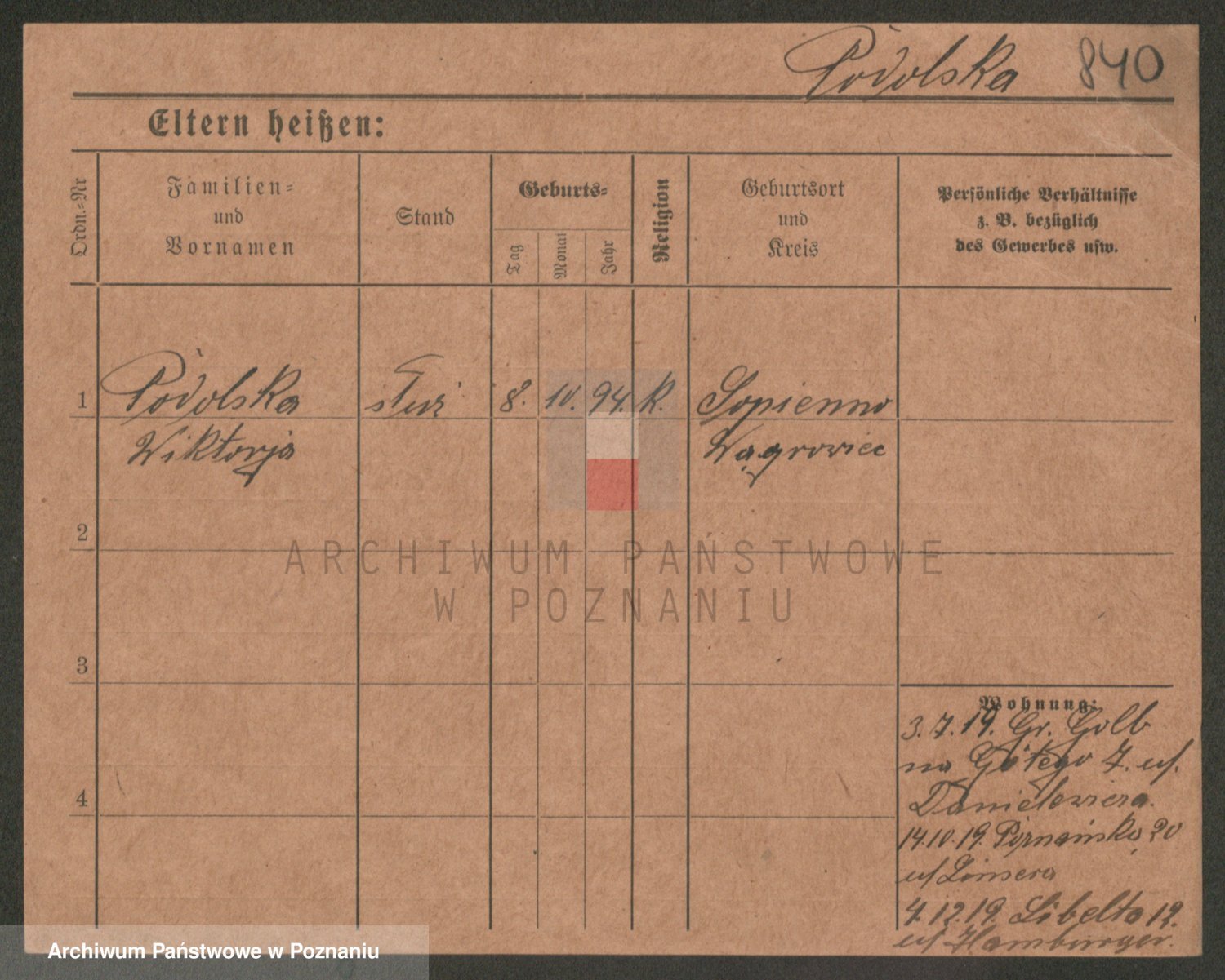 Durch Anklicken eines Namens oder Kartensymbols gelangen Sie zum Vorschau einer Personalkarte. Sie können die Ansicht vergrößern (Symbole am oberen Rand) oder zwischen den Scans wechseln (Pfeile an den Seiten).