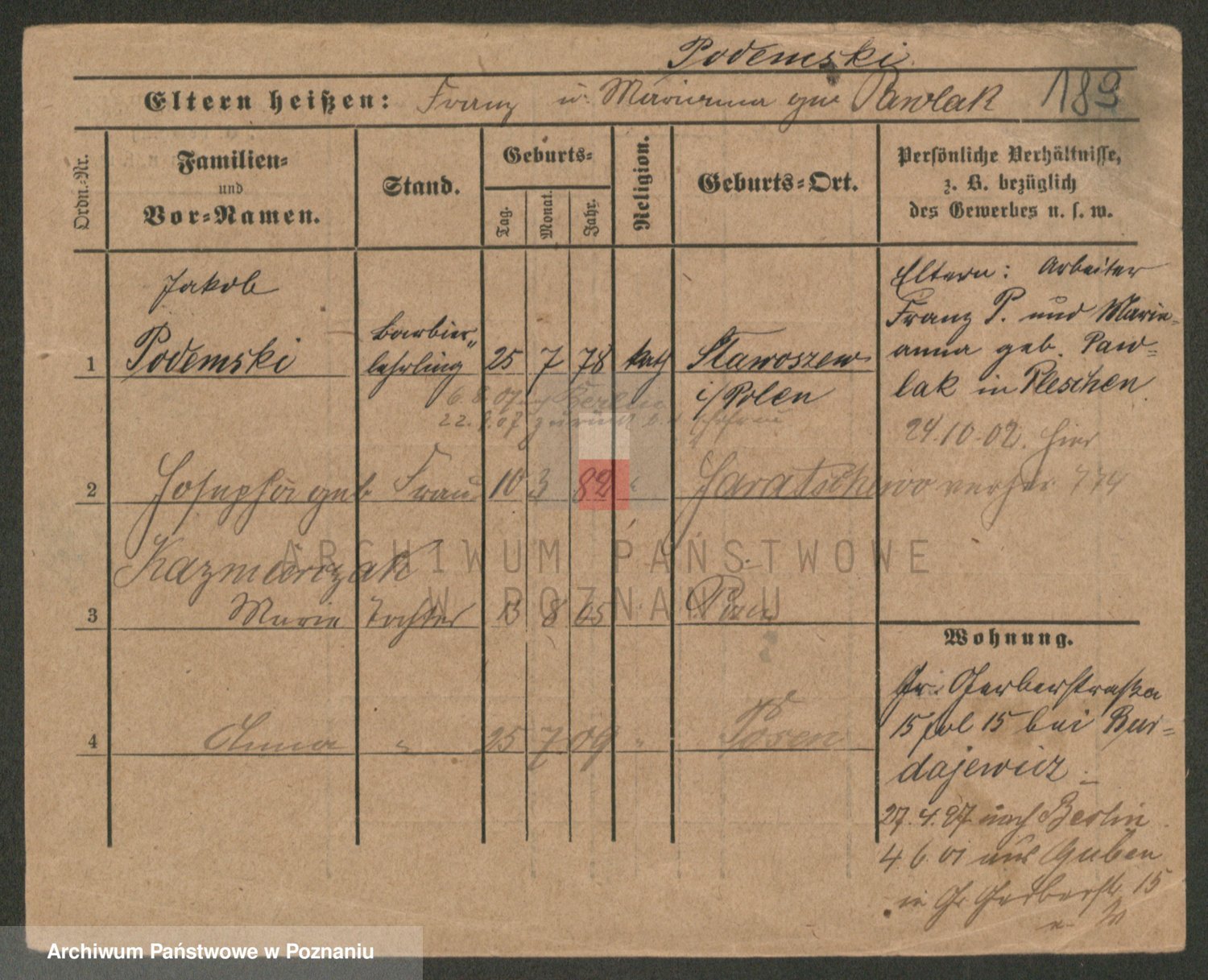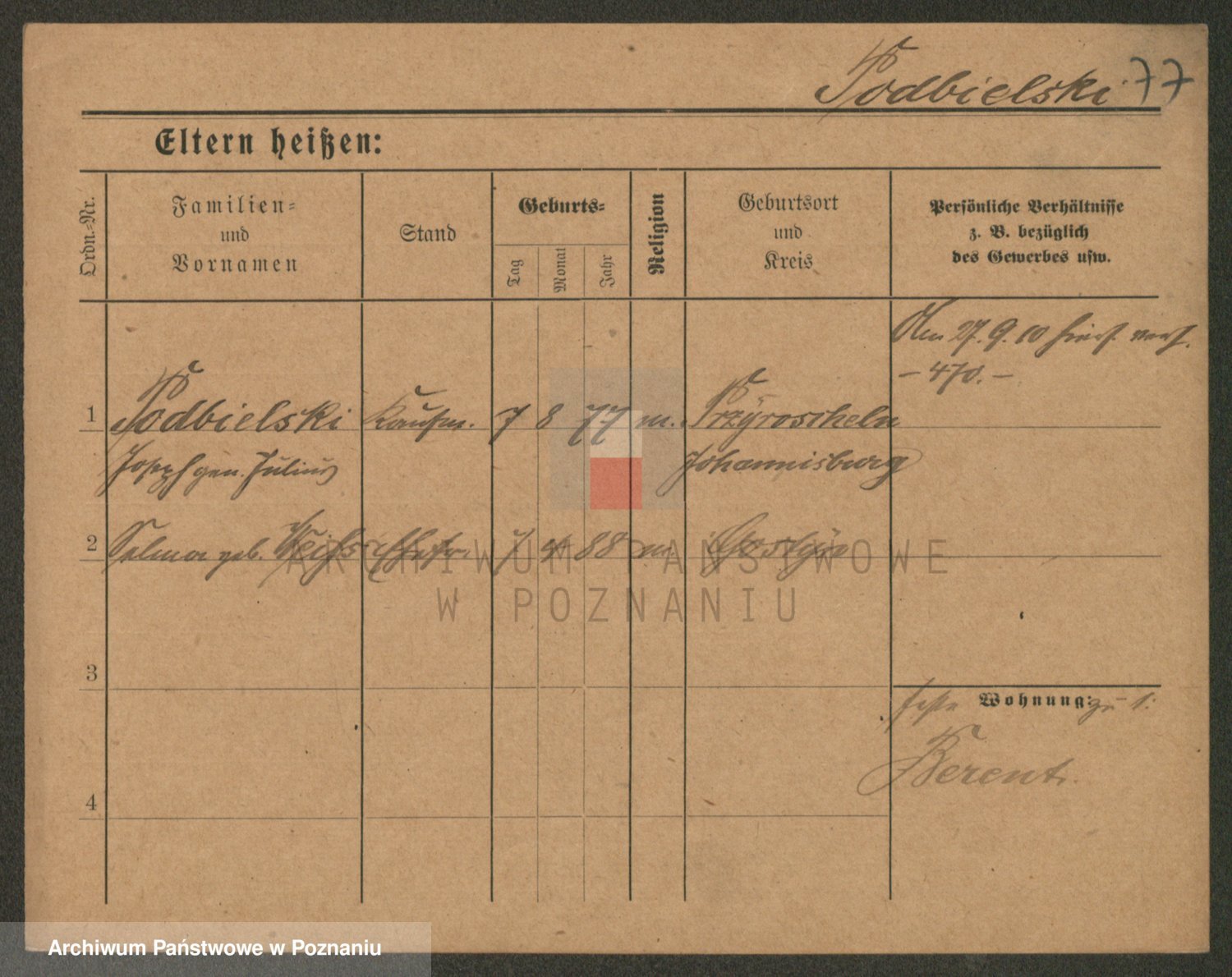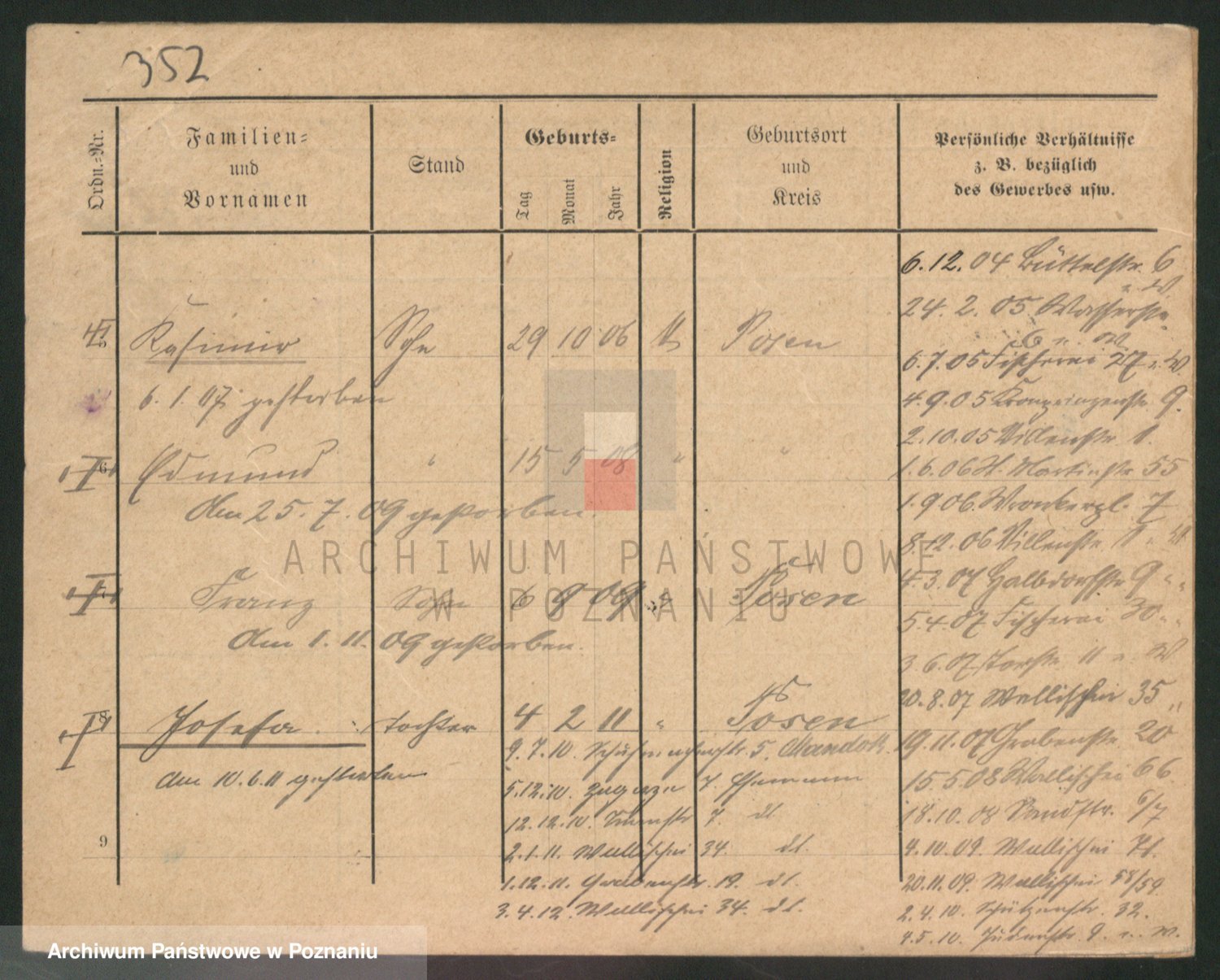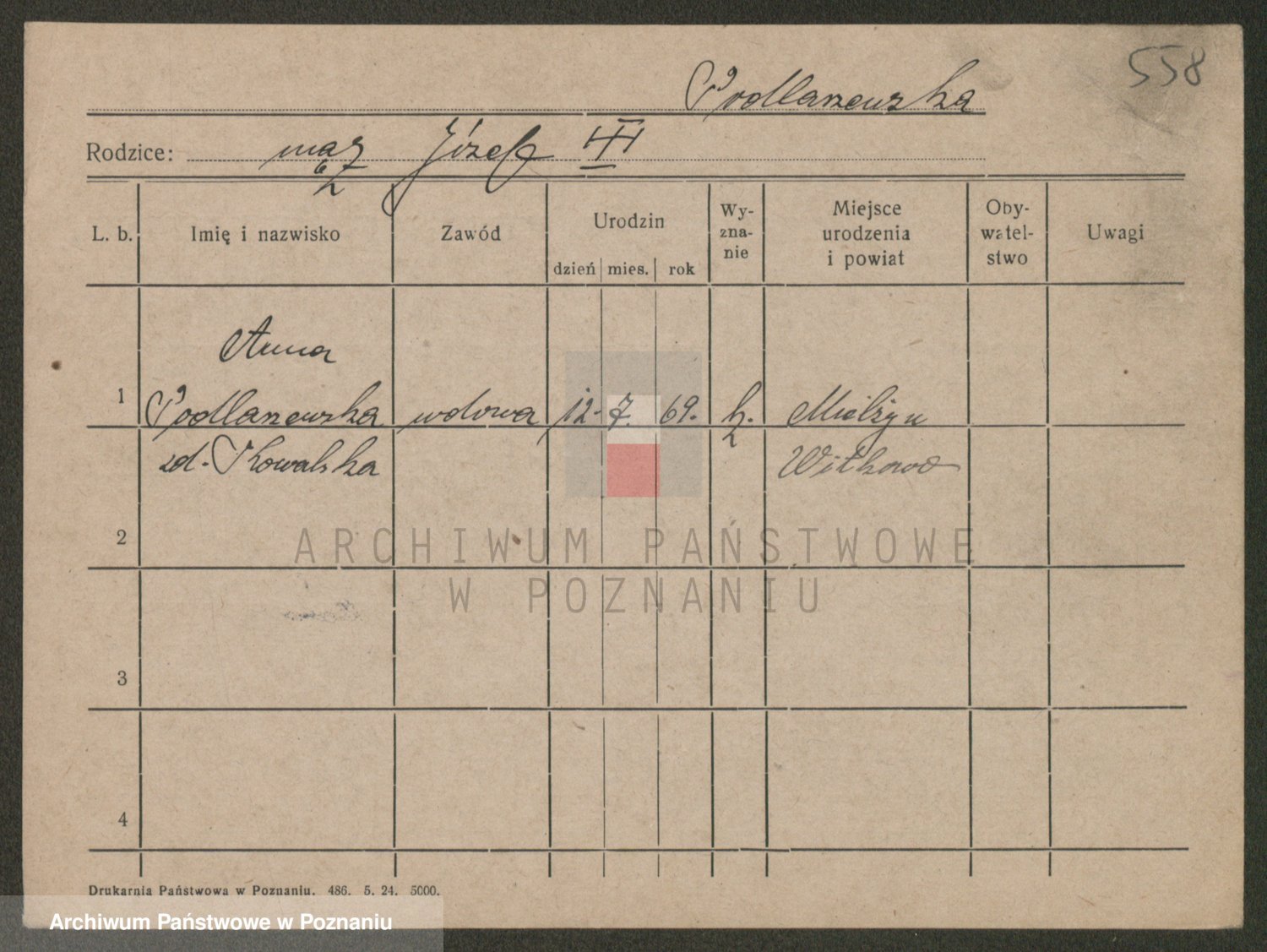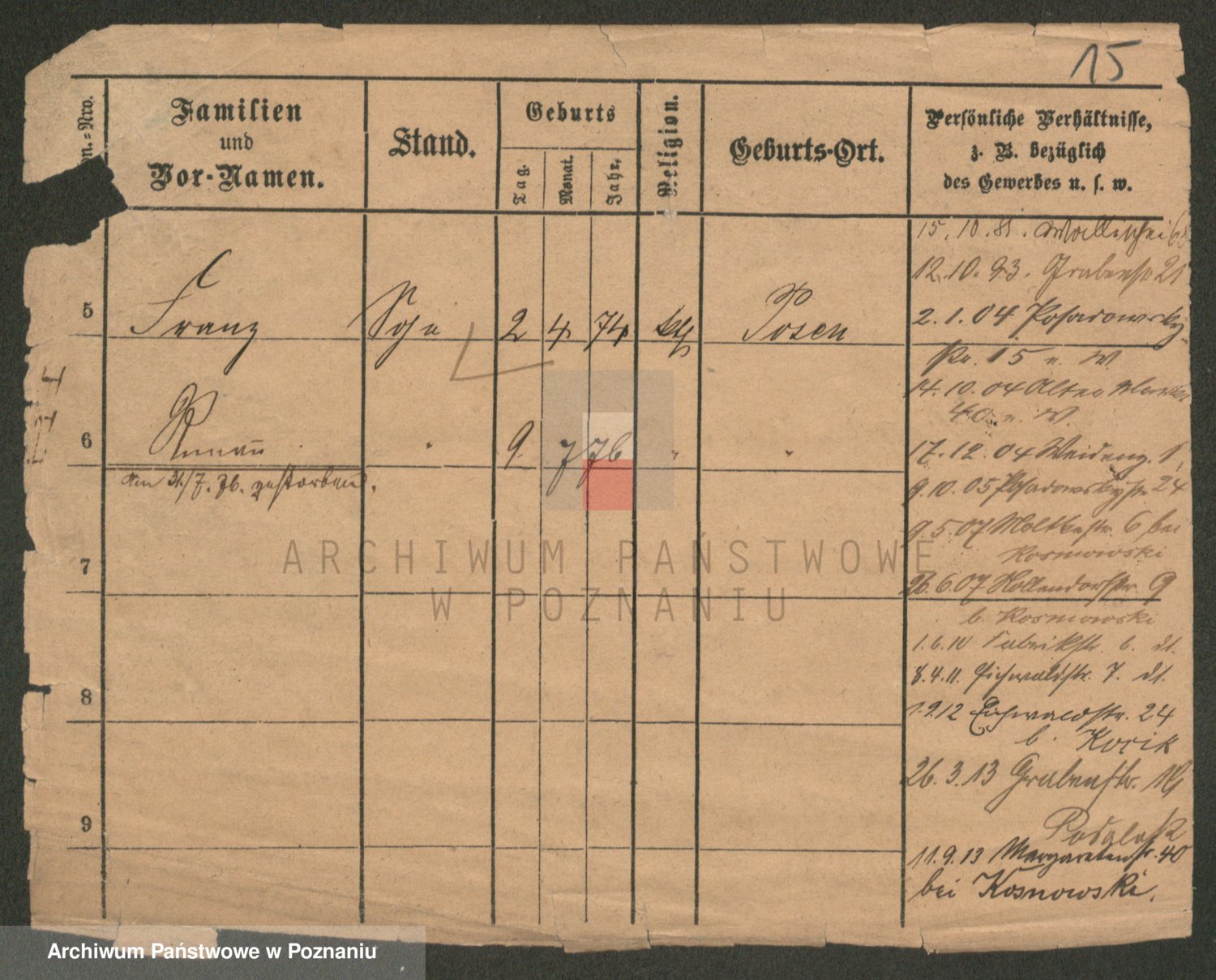 Durch Anklicken eines Namens oder Kartensymbols gelangen Sie zum Vorschau einer Personalkarte. Sie können die Ansicht vergrößern (Symbole am oberen Rand) oder zwischen den Scans wechseln (Pfeile an den Seiten).