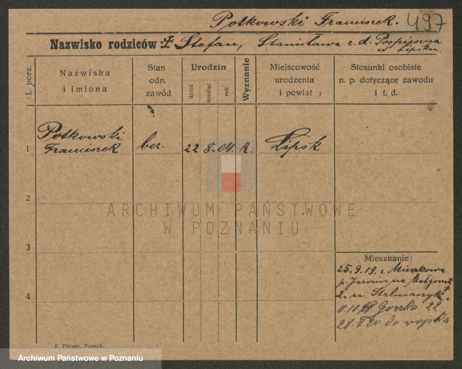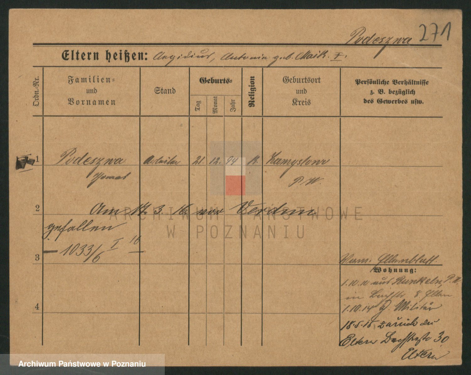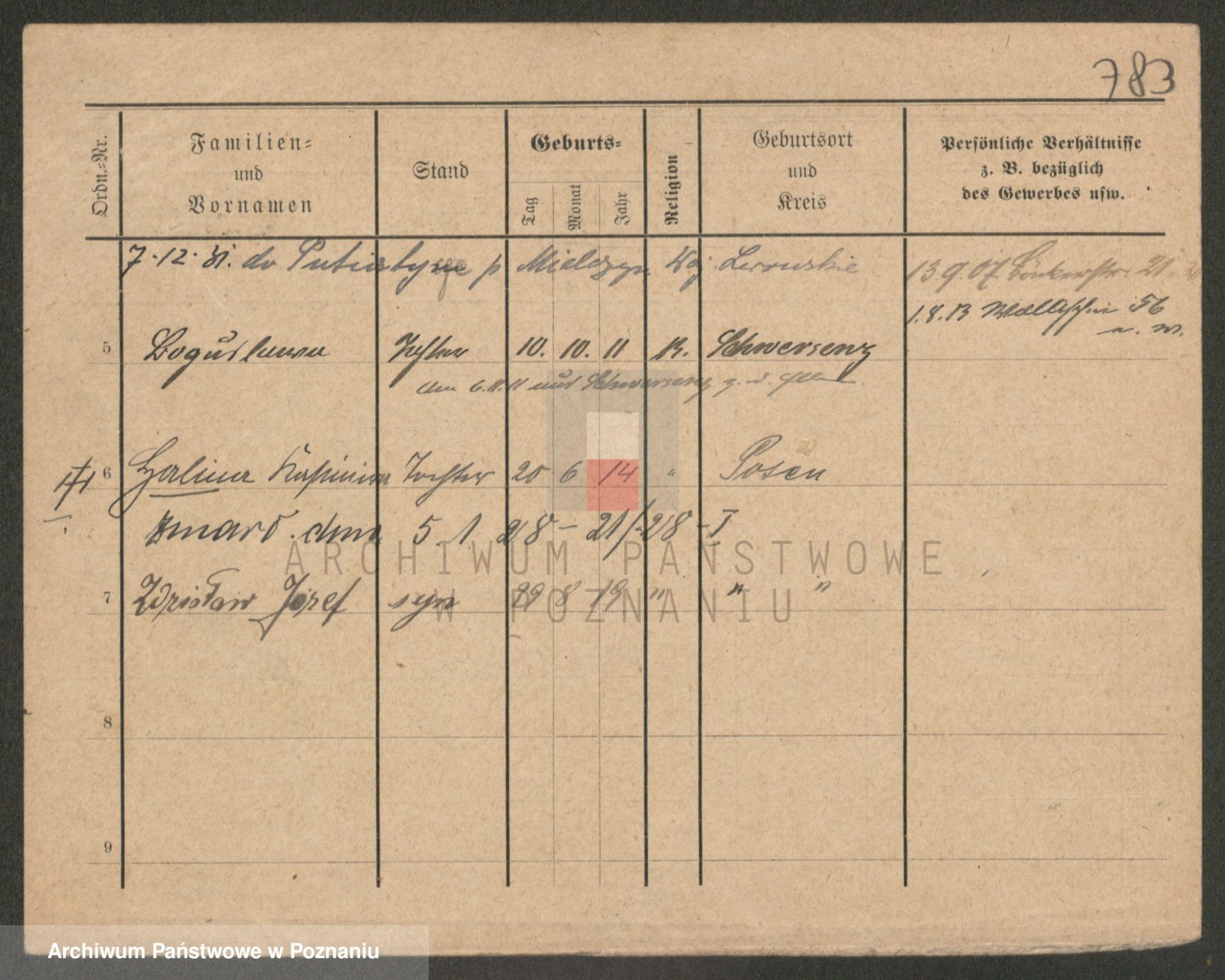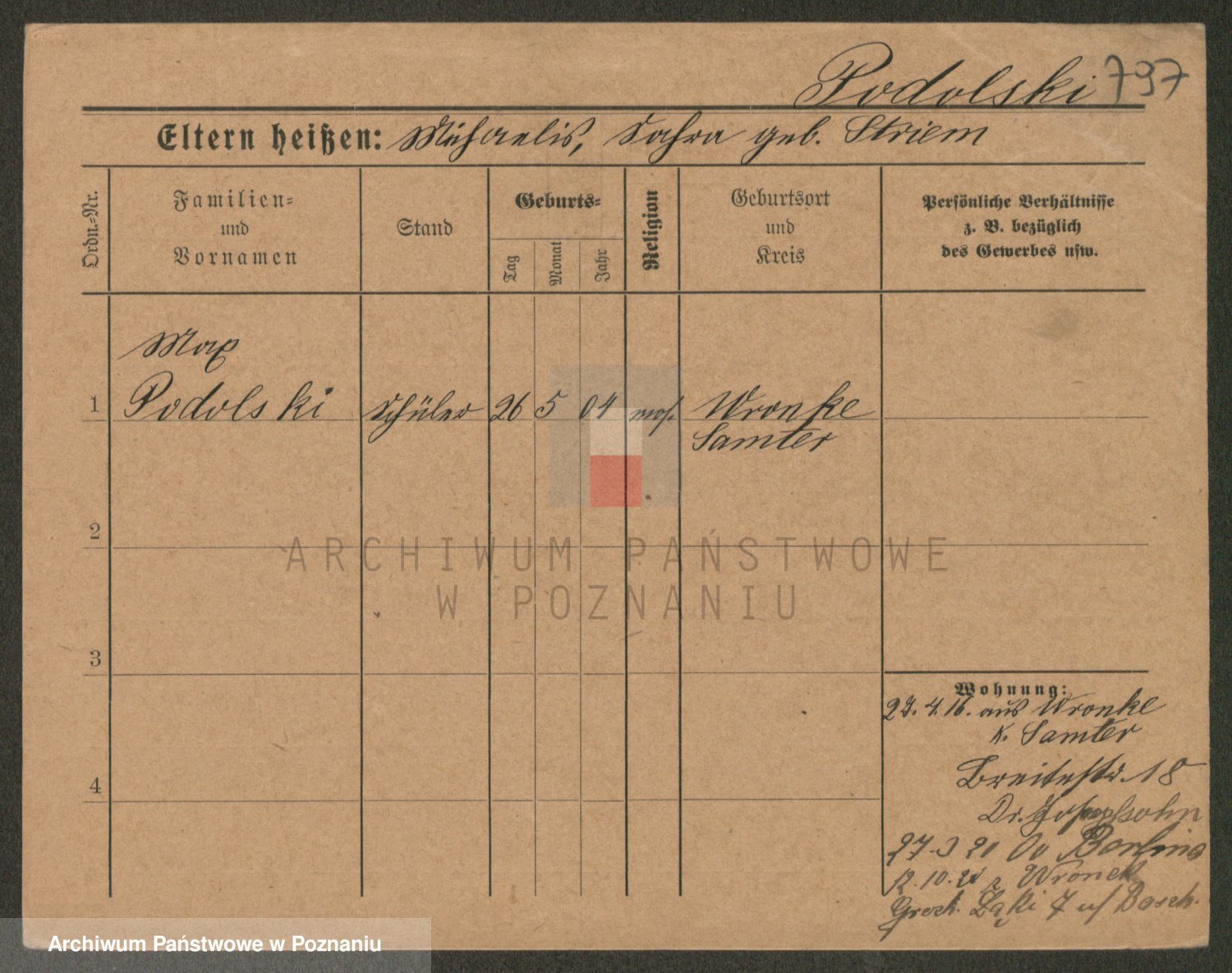 Durch Anklicken eines Namens oder Kartensymbols gelangen Sie zum Vorschau einer Personalkarte. Sie können die Ansicht vergrößern (Symbole am oberen Rand) oder zwischen den Scans wechseln (Pfeile an den Seiten).