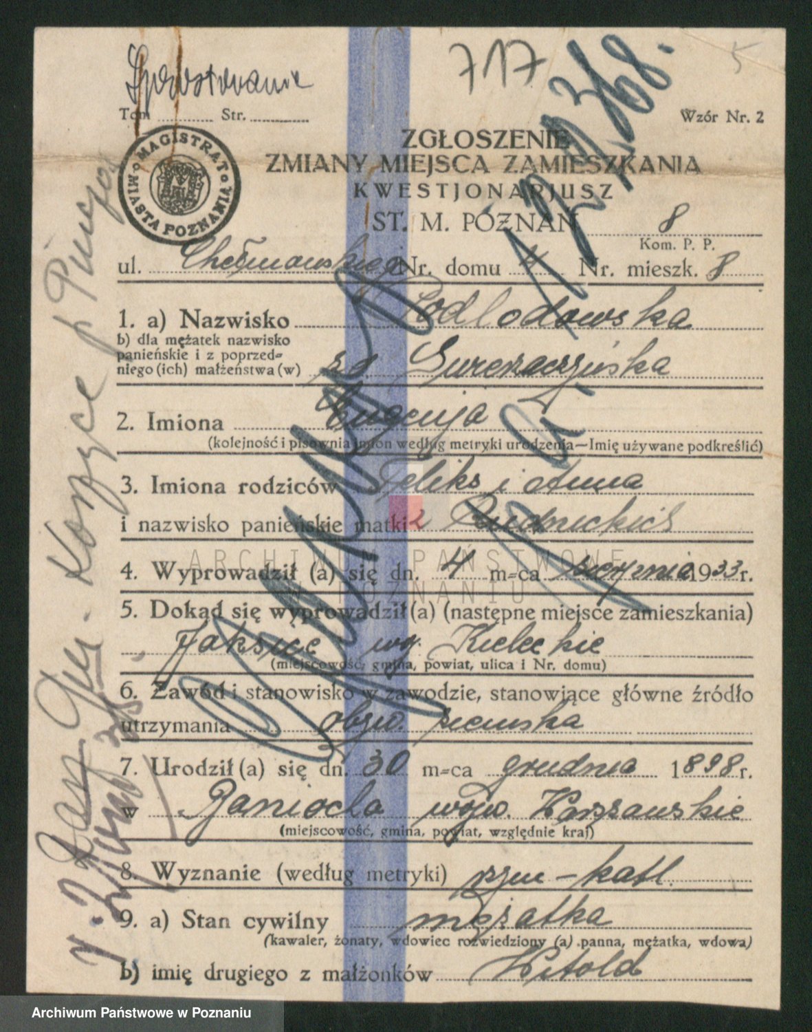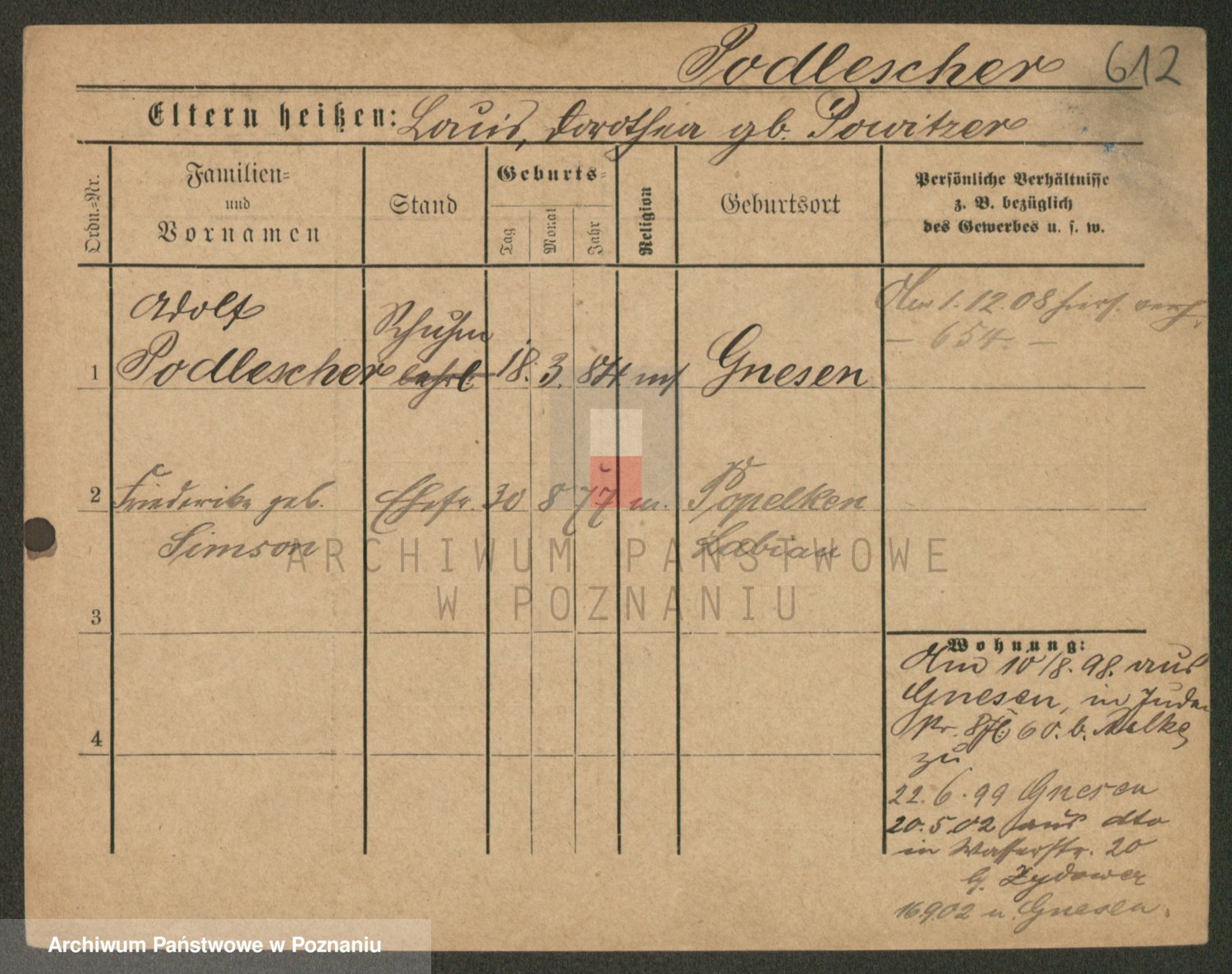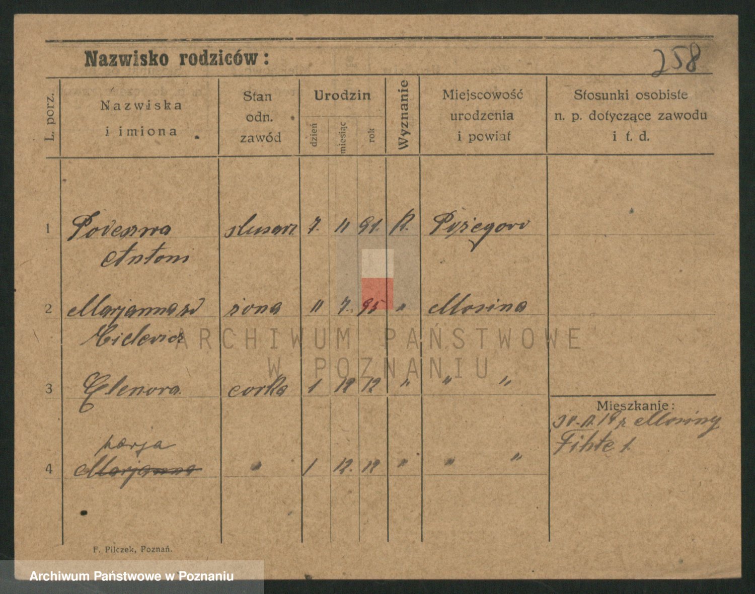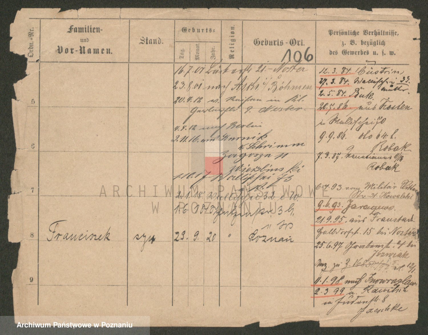 Durch Anklicken eines Namens oder Kartensymbols gelangen Sie zum Vorschau einer Personalkarte. Sie können die Ansicht vergrößern (Symbole am oberen Rand) oder zwischen den Scans wechseln (Pfeile an den Seiten).