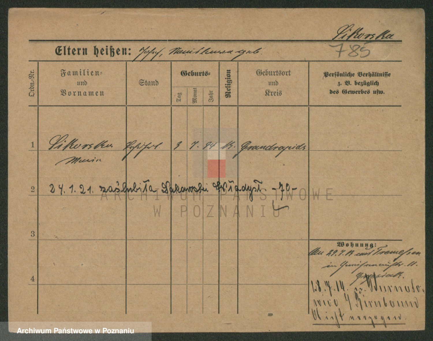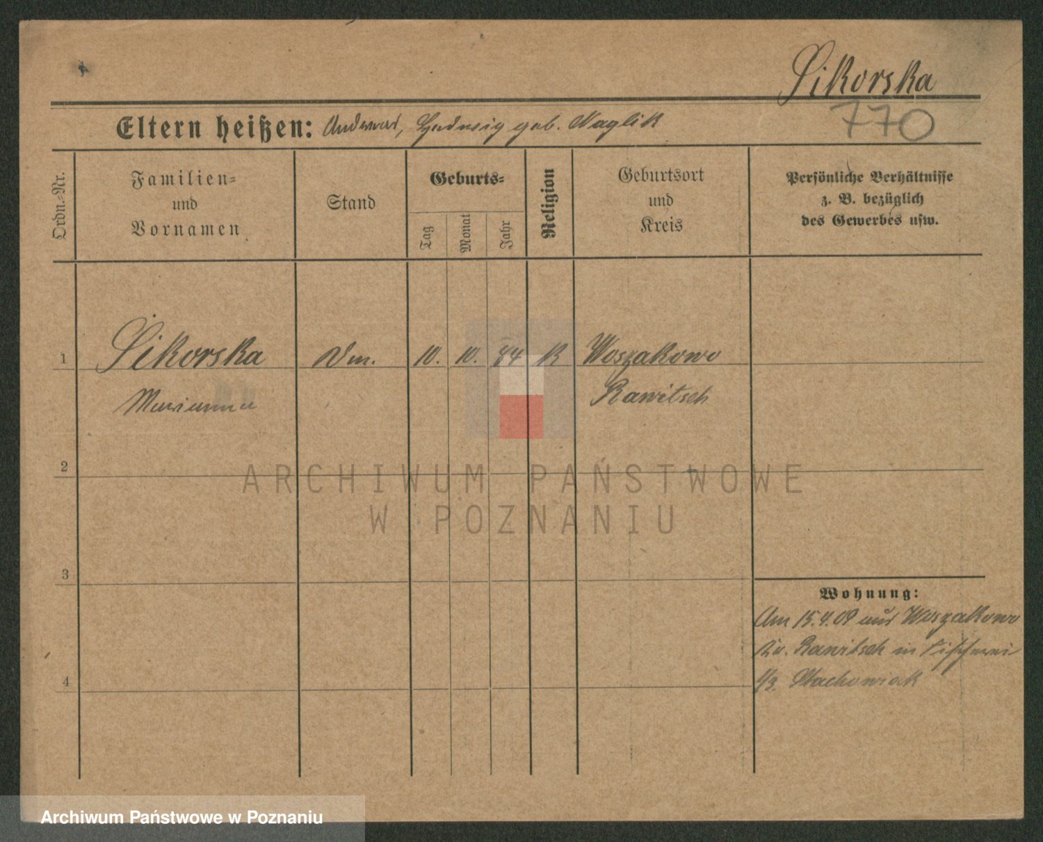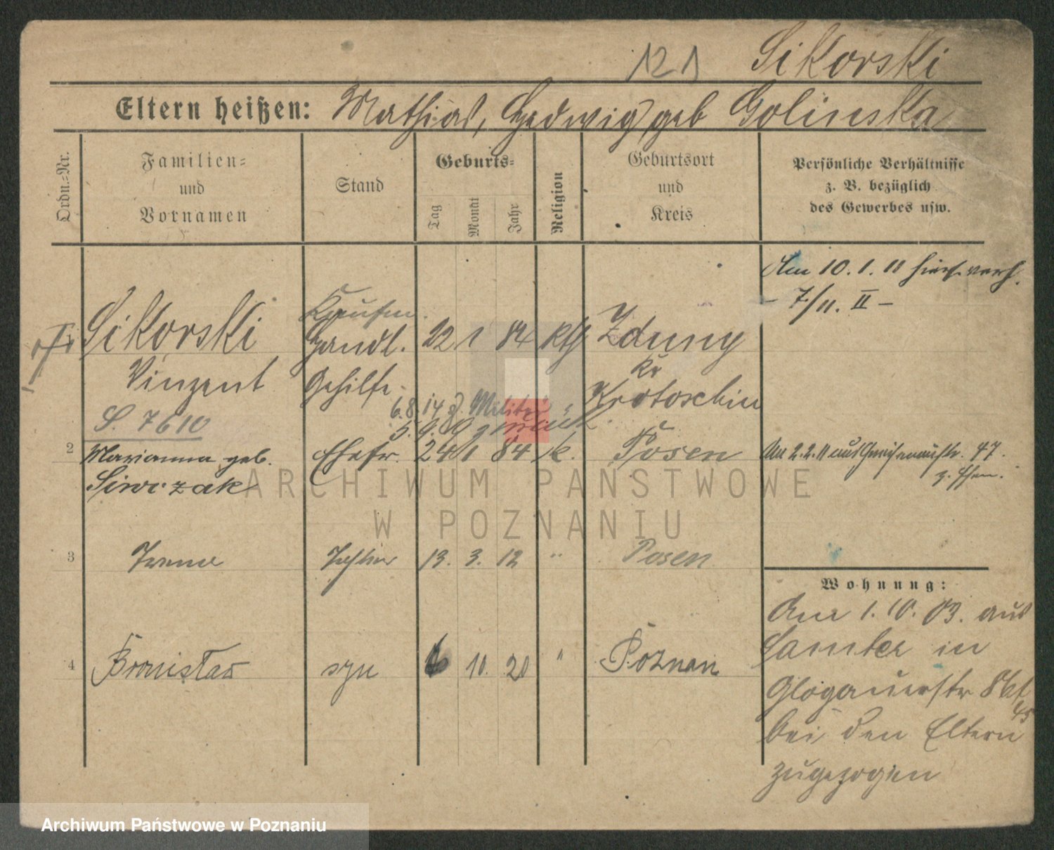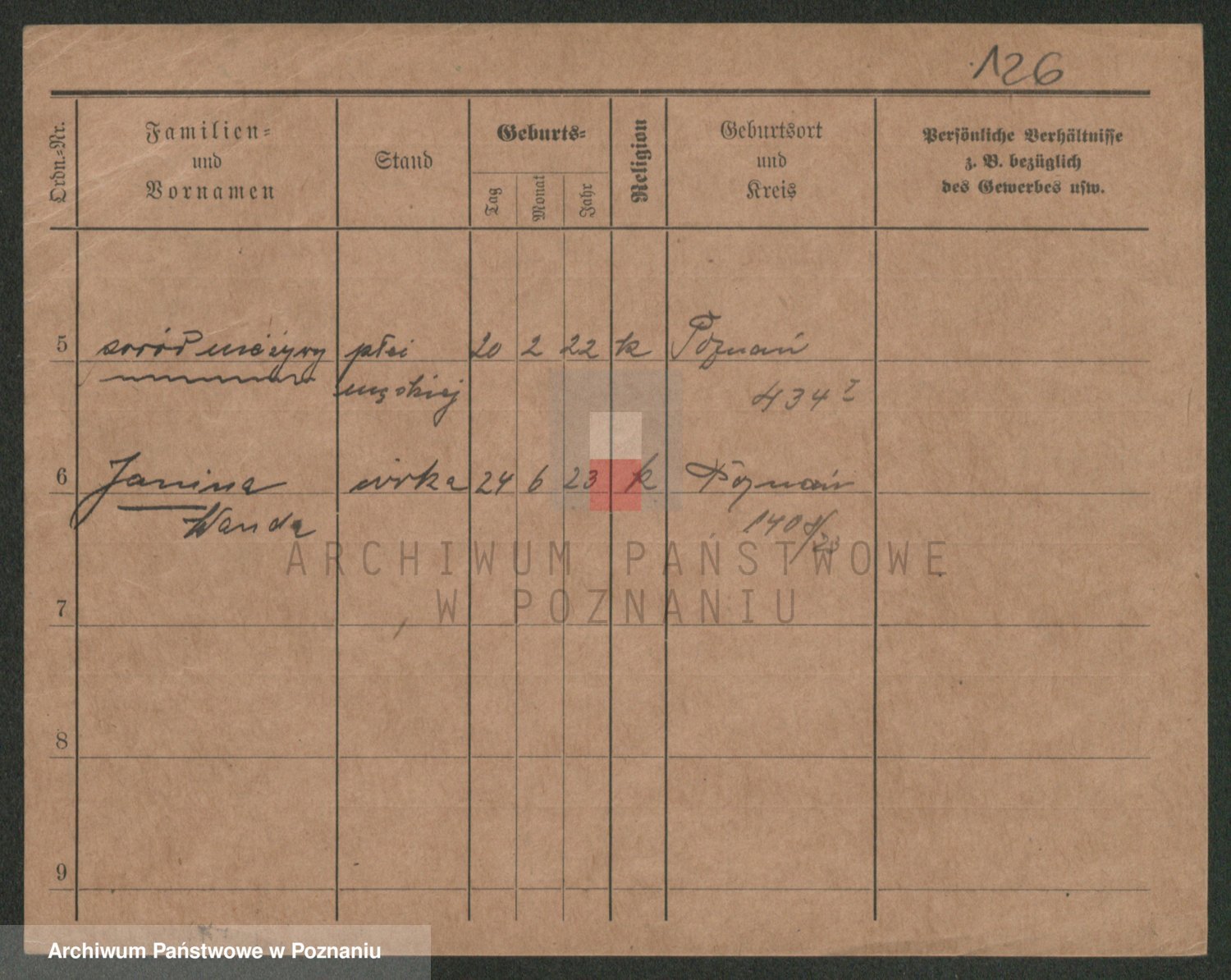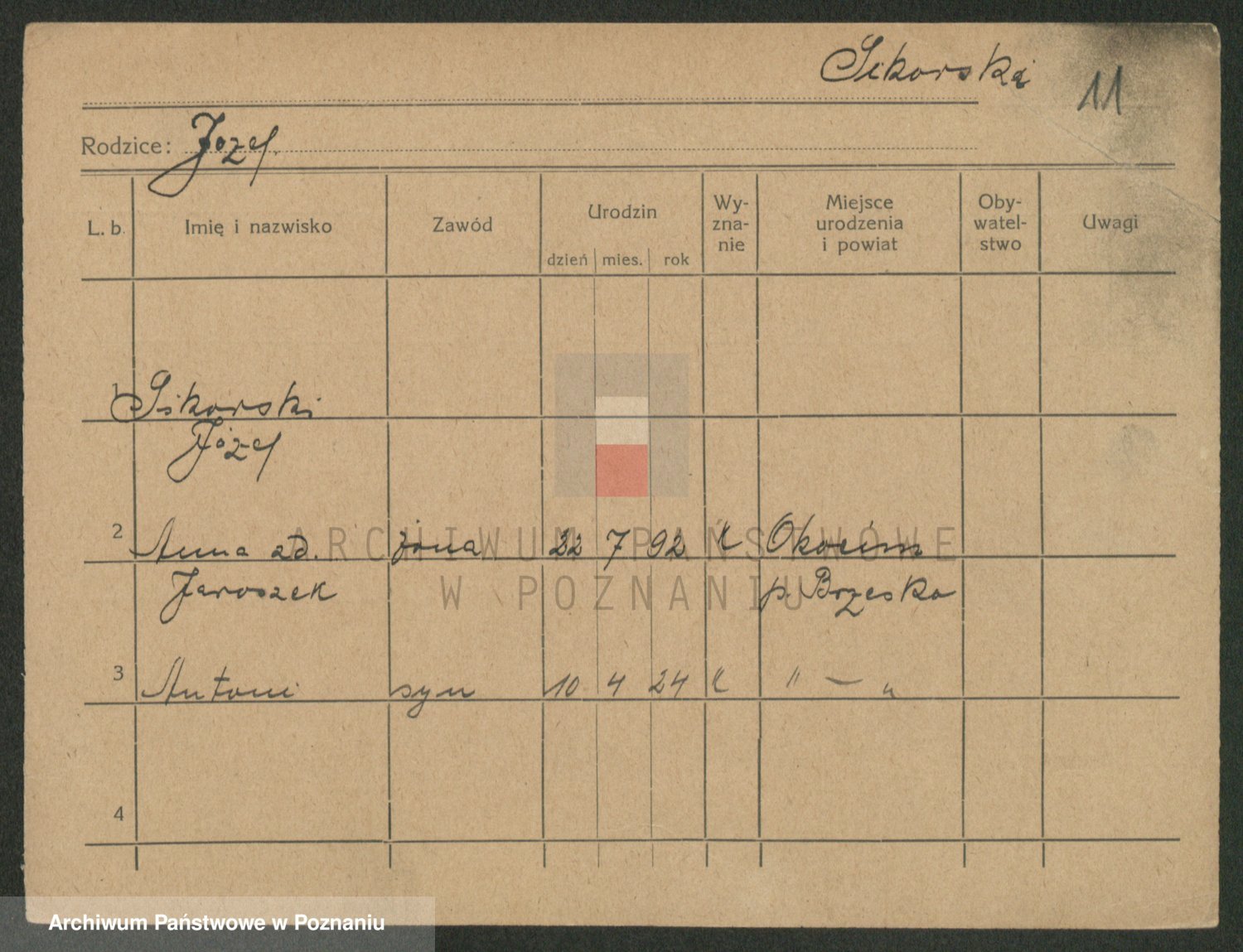 Durch Anklicken eines Namens oder Kartensymbols gelangen Sie zum Vorschau einer Personalkarte. Sie können die Ansicht vergrößern (Symbole am oberen Rand) oder zwischen den Scans wechseln (Pfeile an den Seiten).