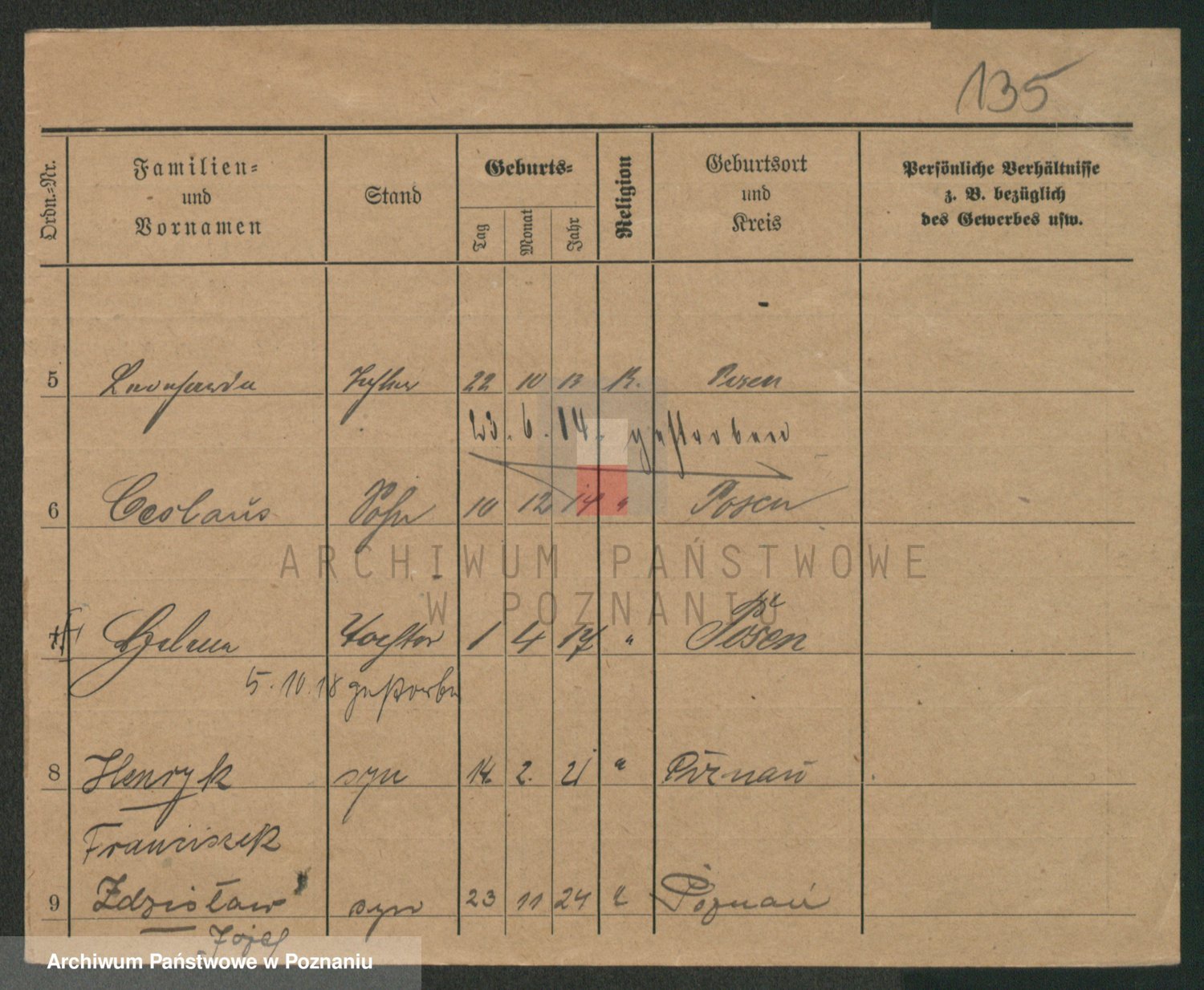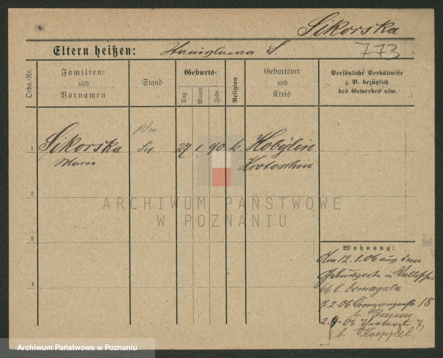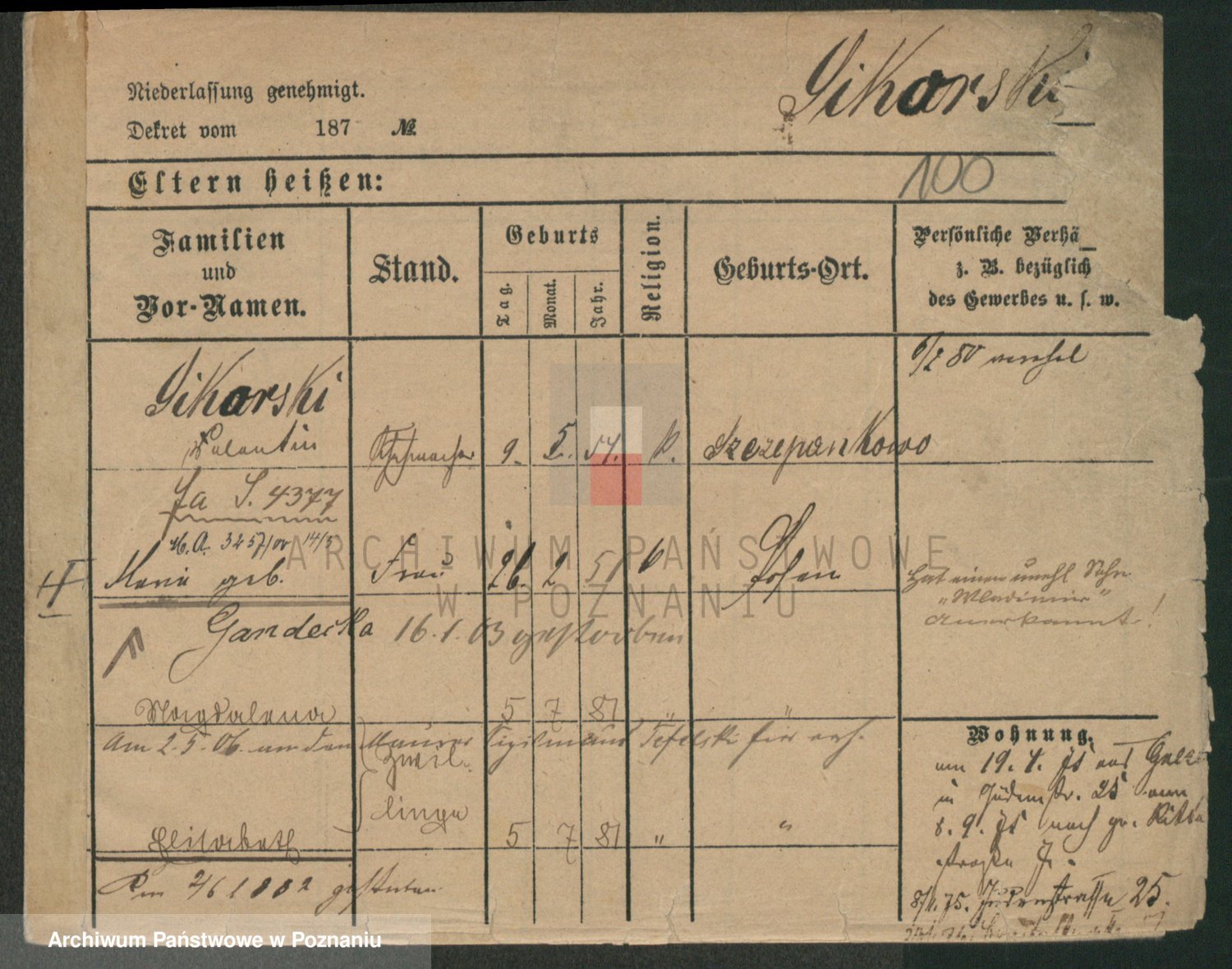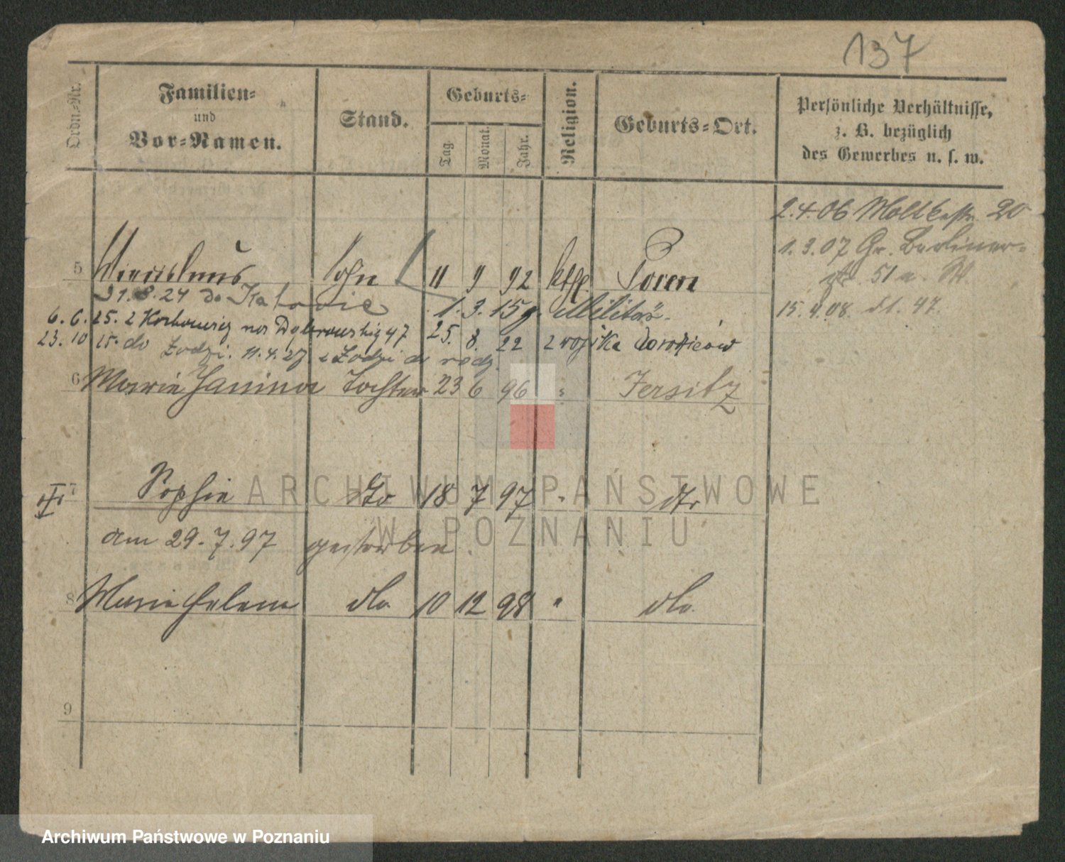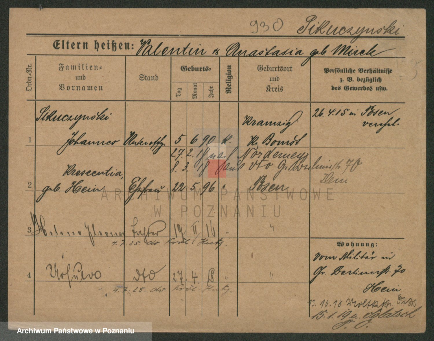 Durch Anklicken eines Namens oder Kartensymbols gelangen Sie zum Vorschau einer Personalkarte. Sie können die Ansicht vergrößern (Symbole am oberen Rand) oder zwischen den Scans wechseln (Pfeile an den Seiten).