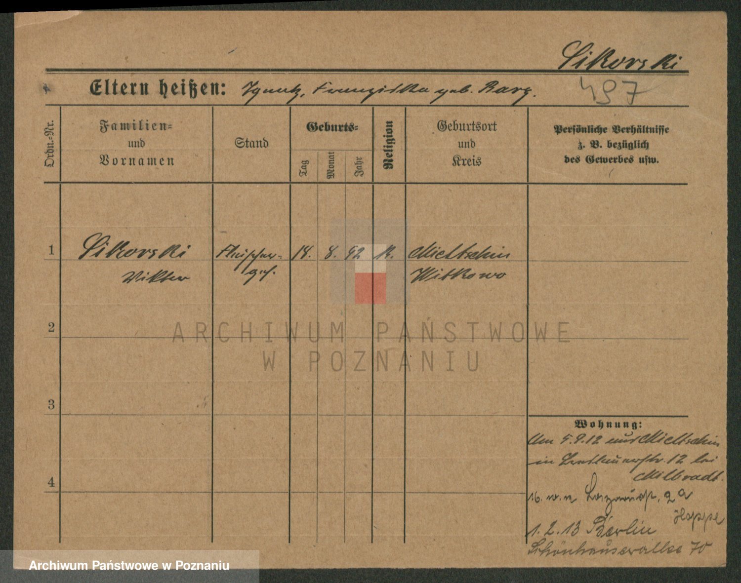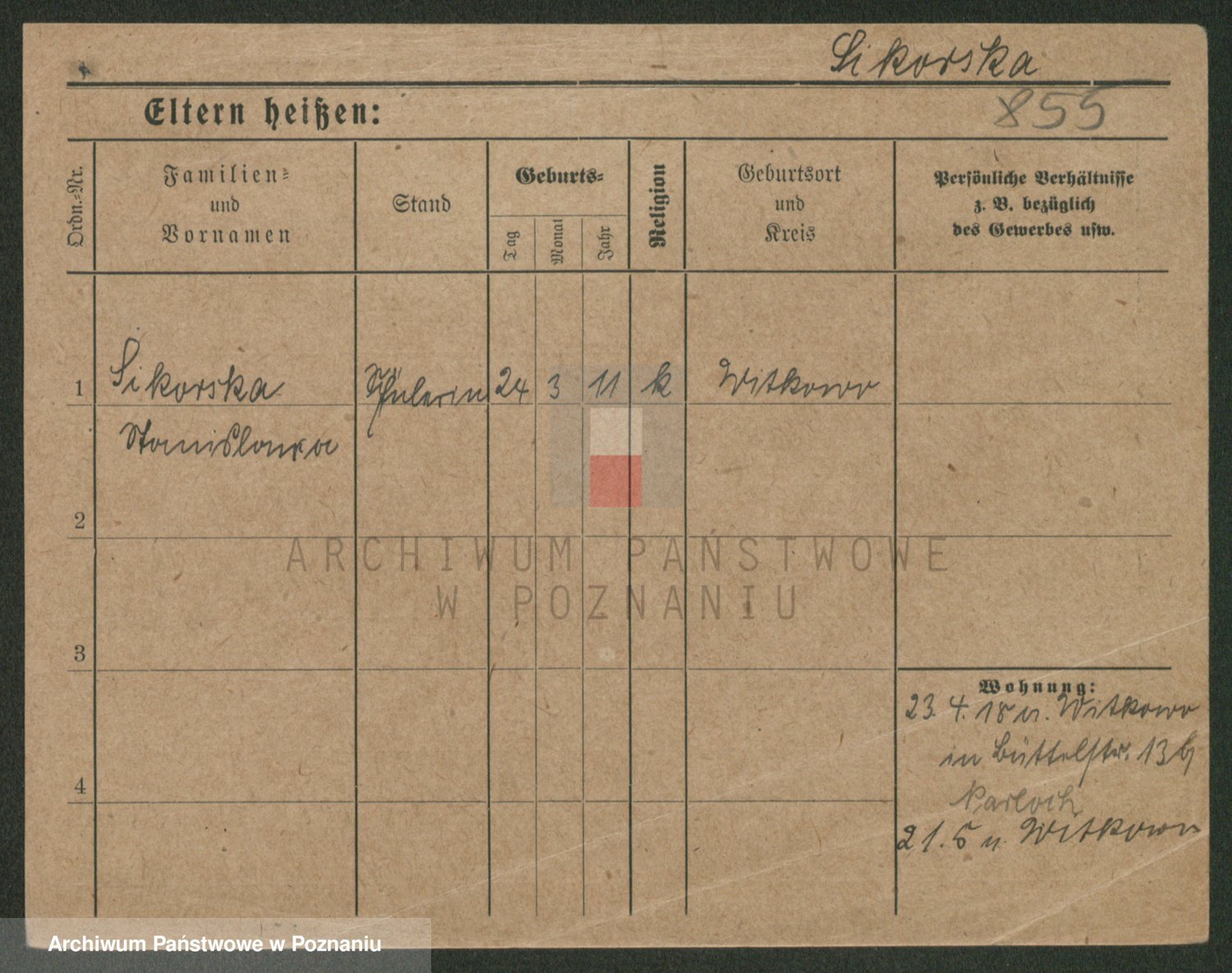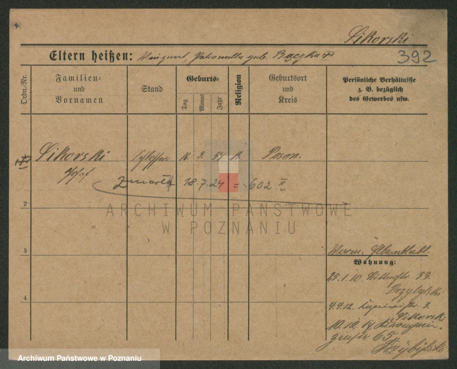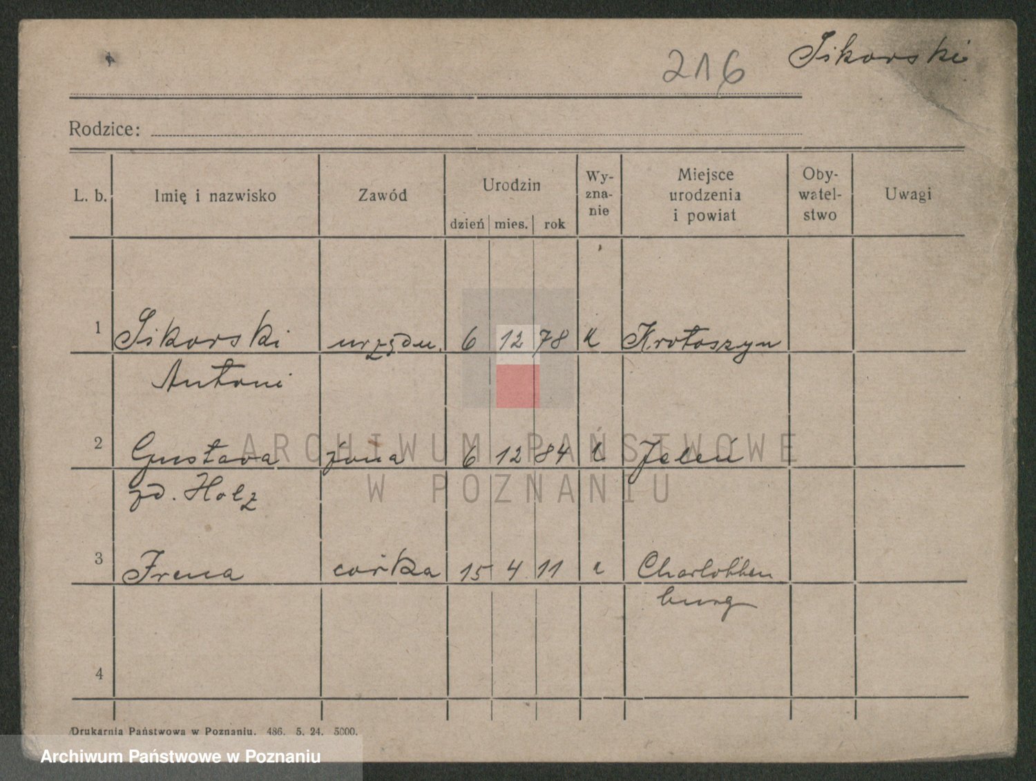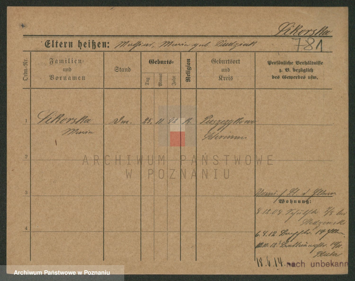 Durch Anklicken eines Namens oder Kartensymbols gelangen Sie zum Vorschau einer Personalkarte. Sie können die Ansicht vergrößern (Symbole am oberen Rand) oder zwischen den Scans wechseln (Pfeile an den Seiten).