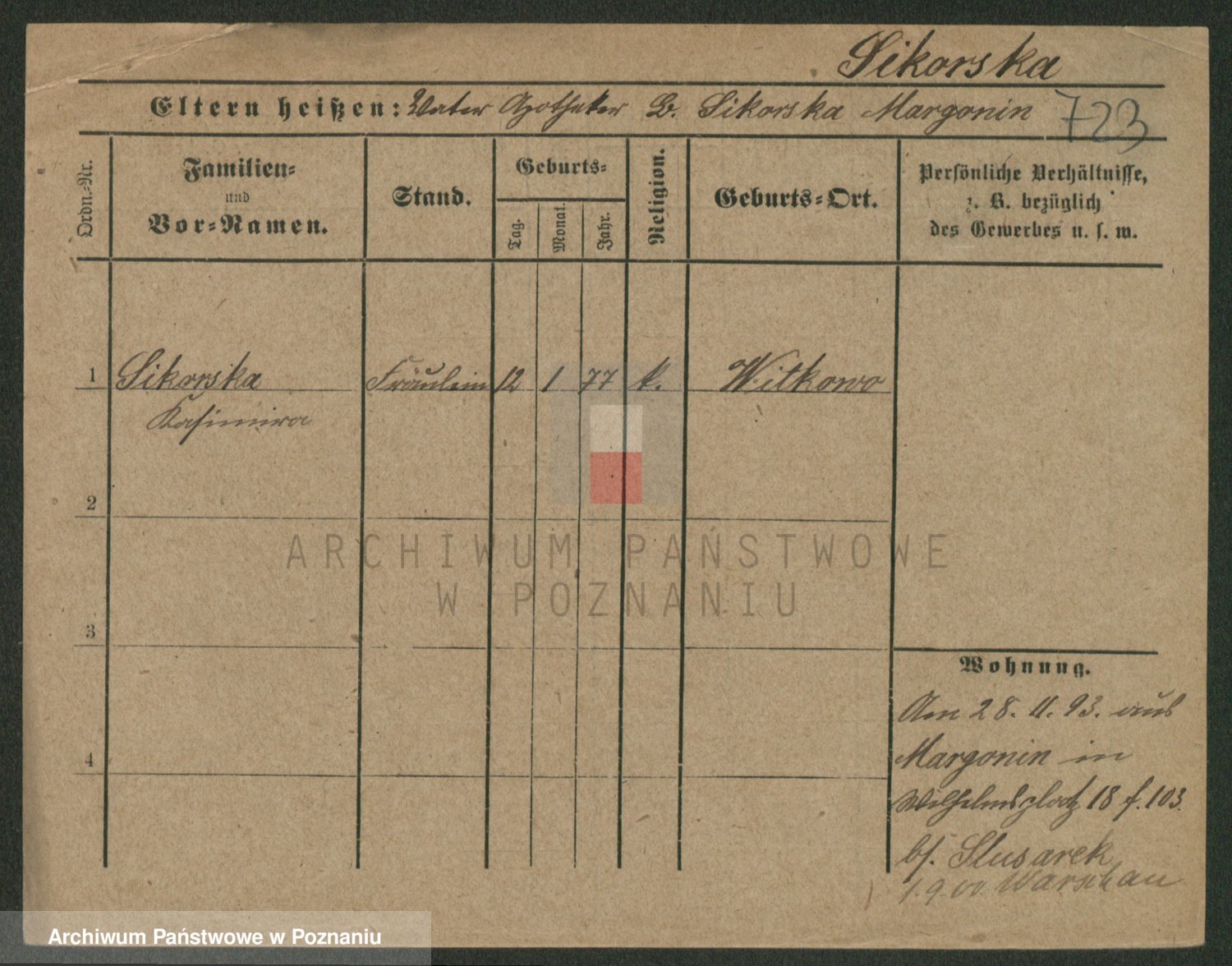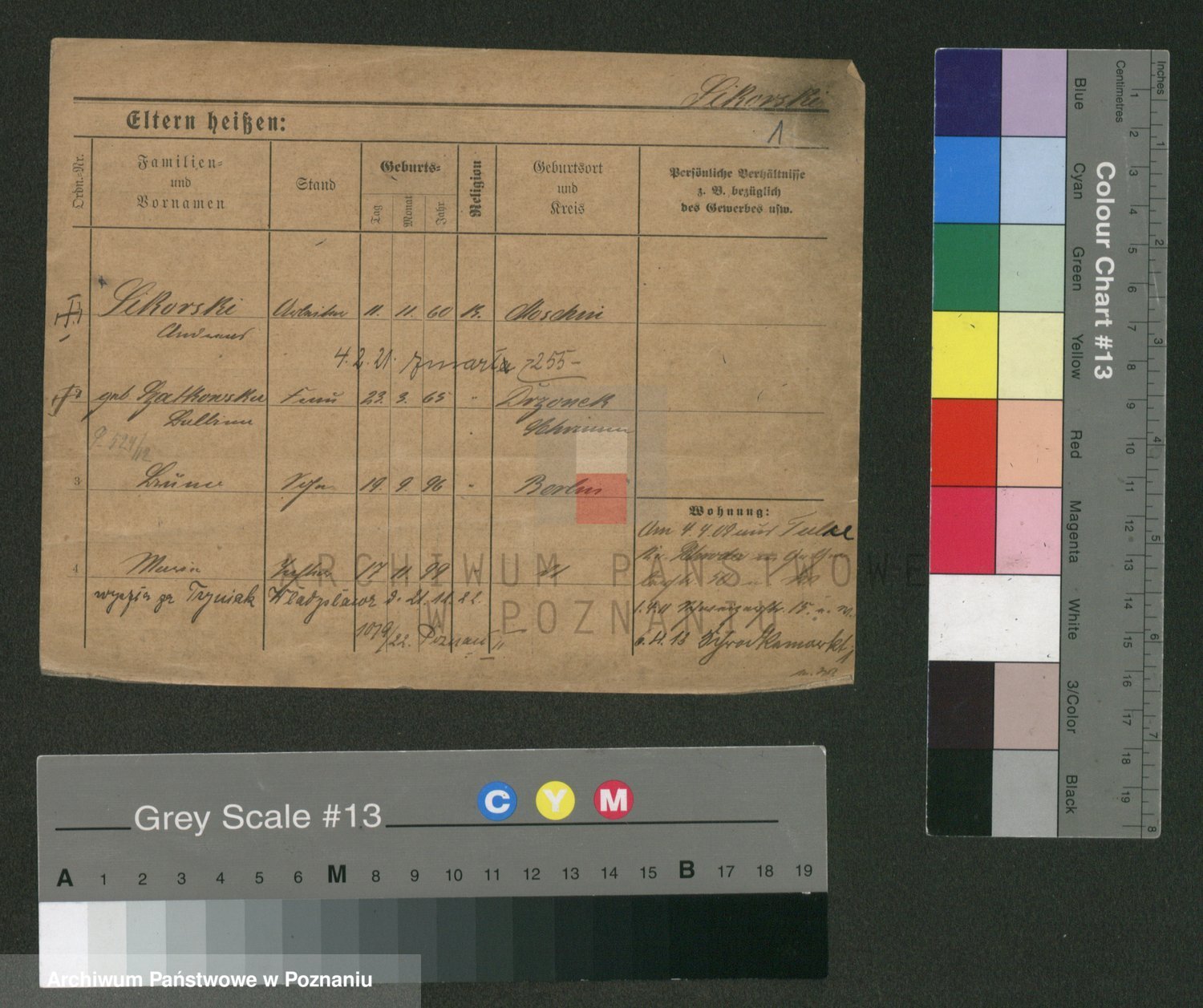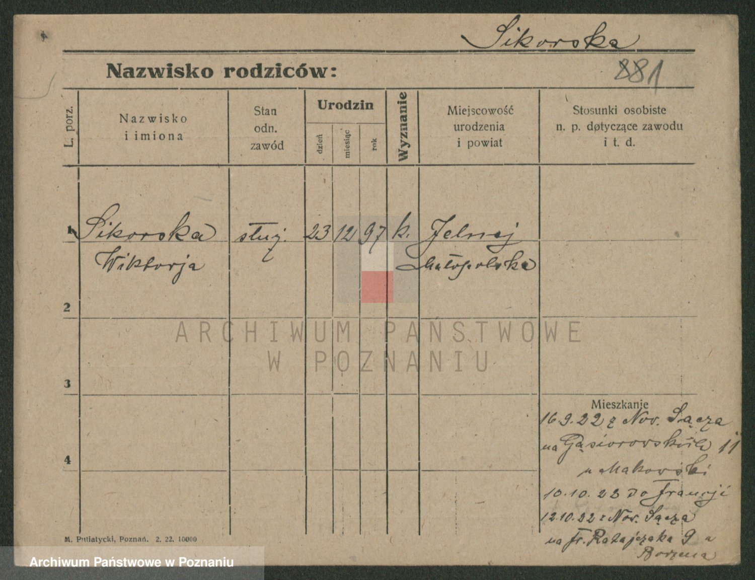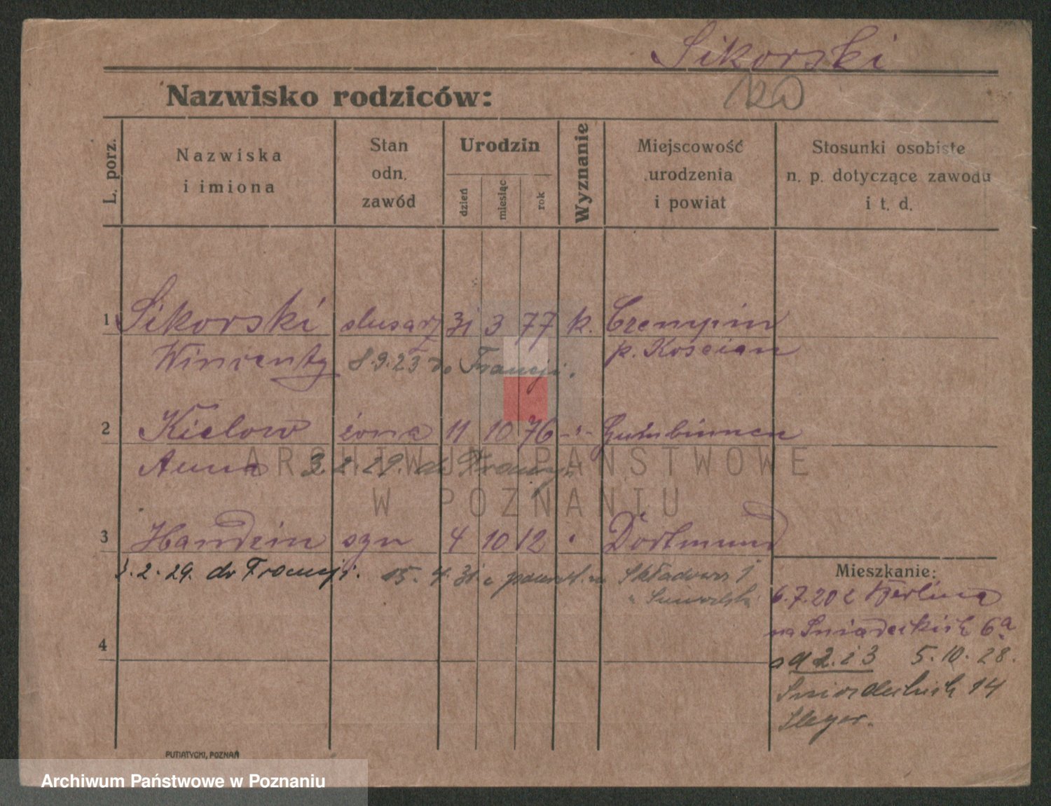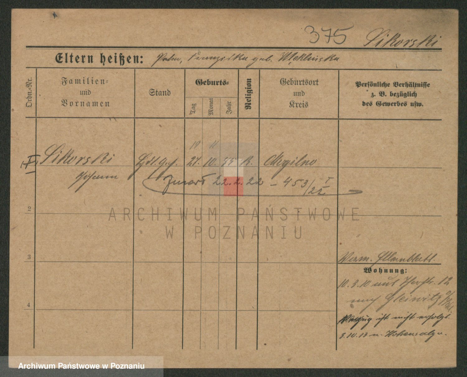 Durch Anklicken eines Namens oder Kartensymbols gelangen Sie zum Vorschau einer Personalkarte. Sie können die Ansicht vergrößern (Symbole am oberen Rand) oder zwischen den Scans wechseln (Pfeile an den Seiten).
