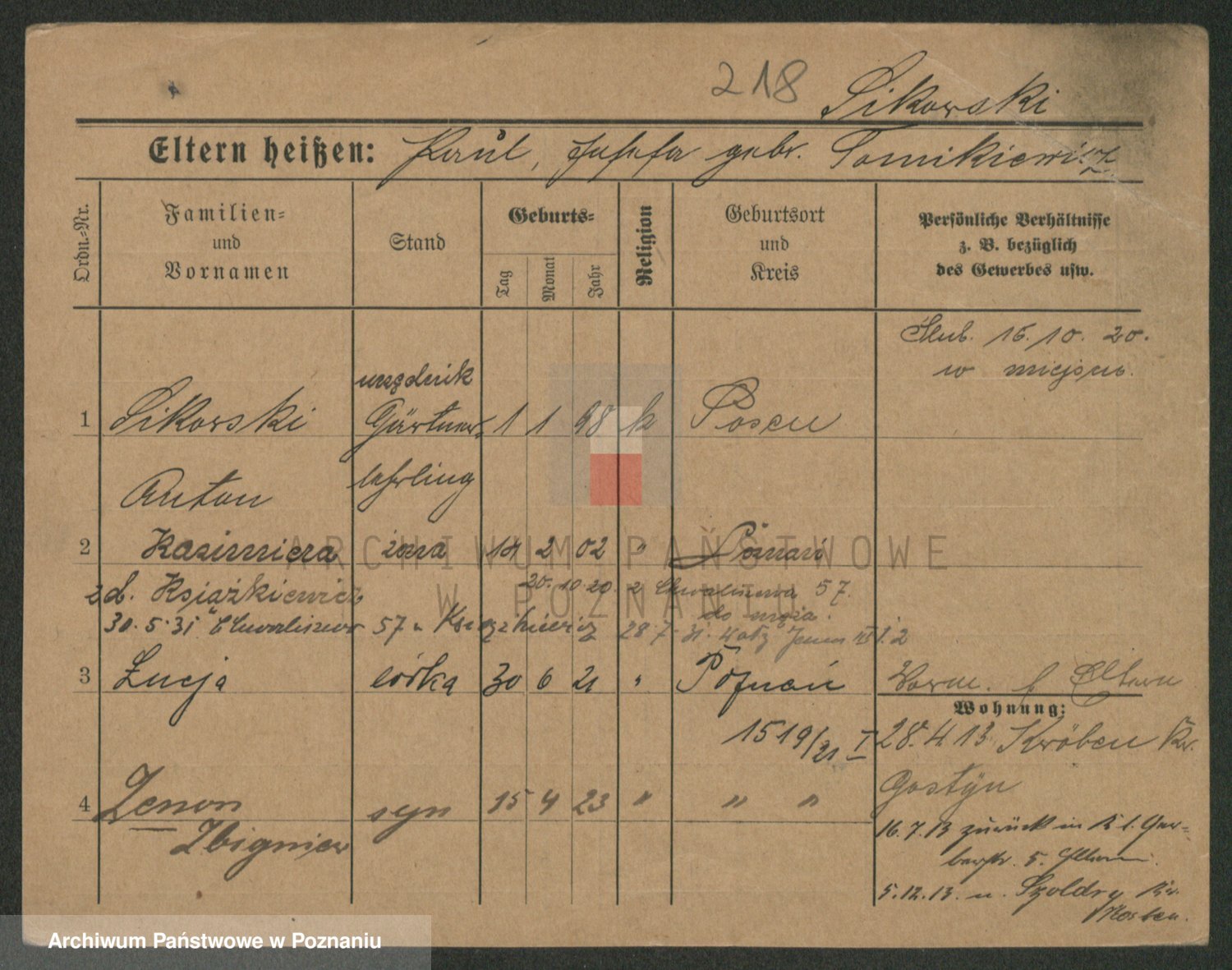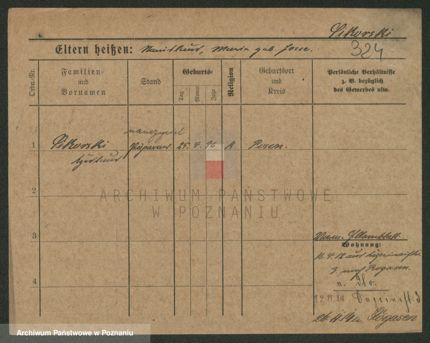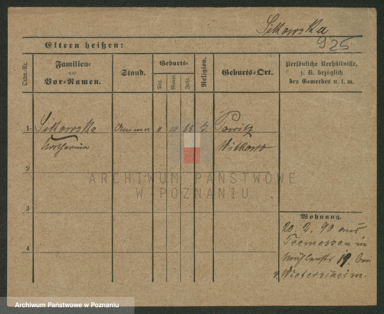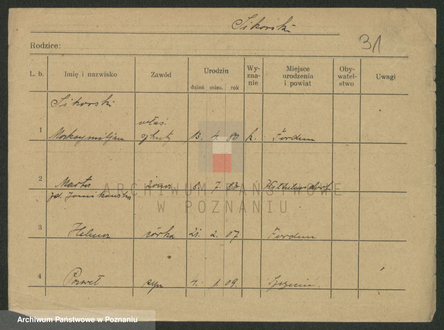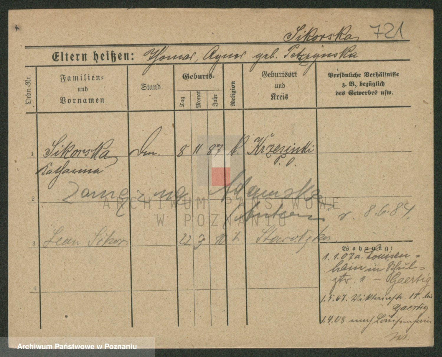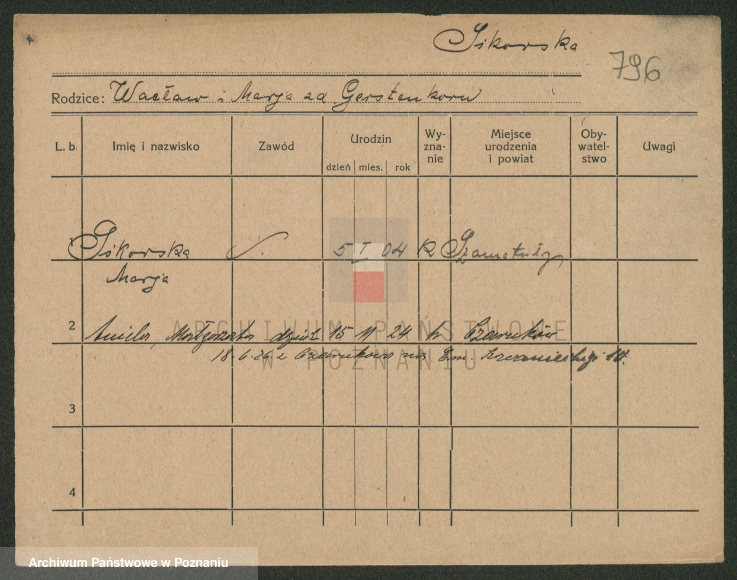 Durch Anklicken eines Namens oder Kartensymbols gelangen Sie zum Vorschau einer Personalkarte. Sie können die Ansicht vergrößern (Symbole am oberen Rand) oder zwischen den Scans wechseln (Pfeile an den Seiten).