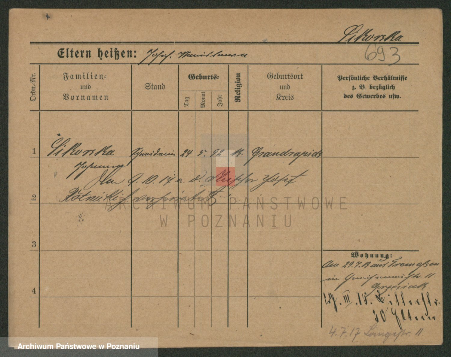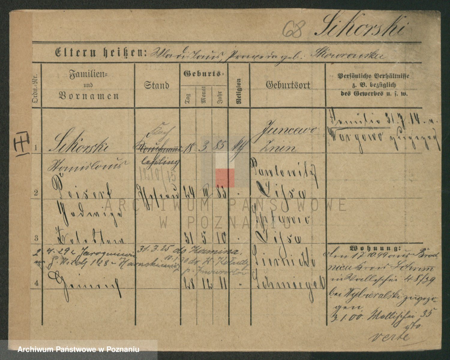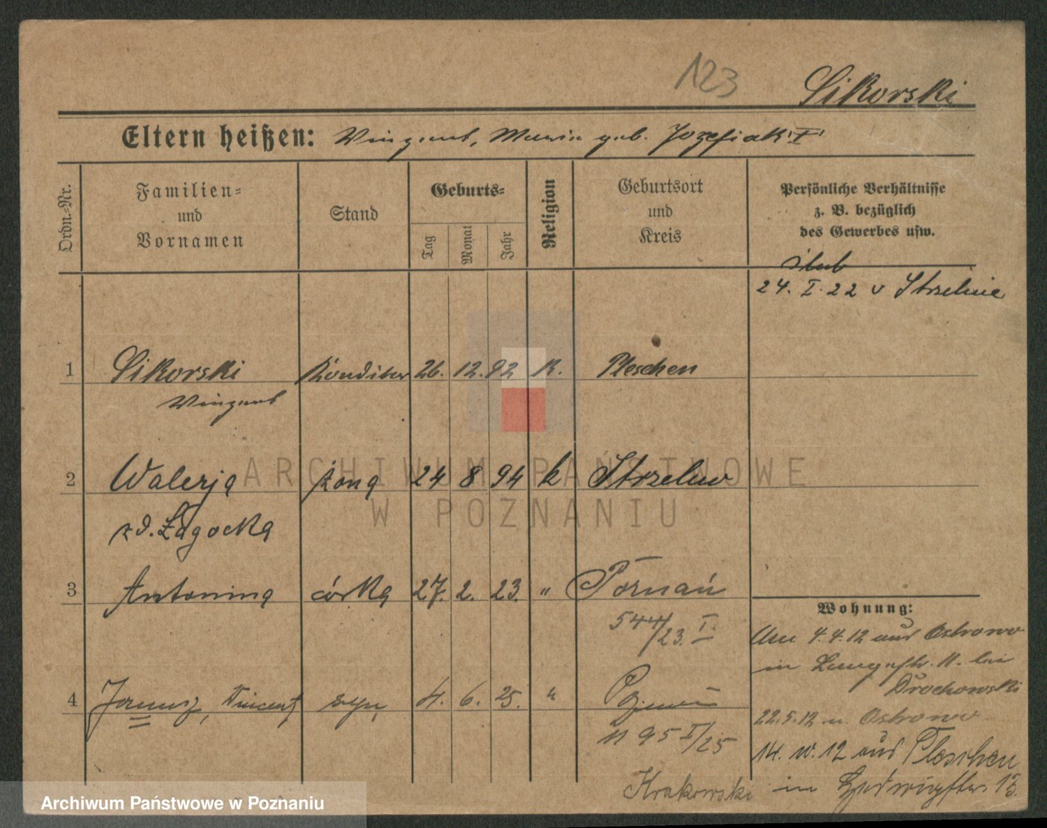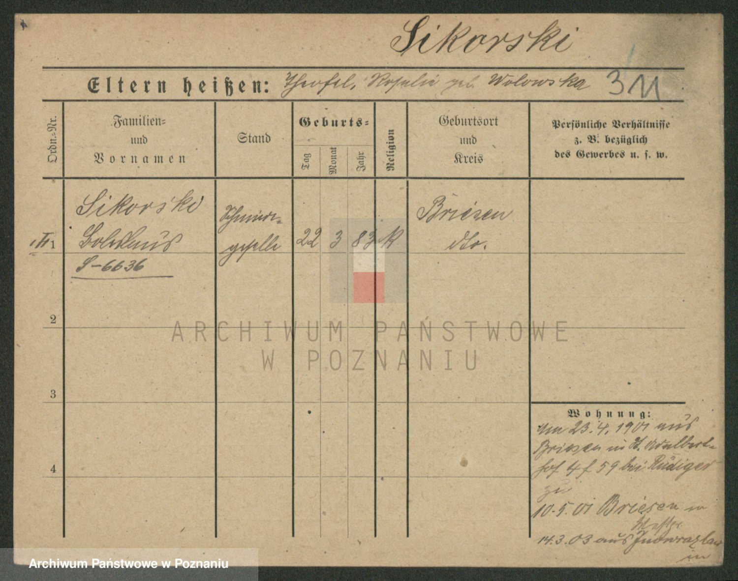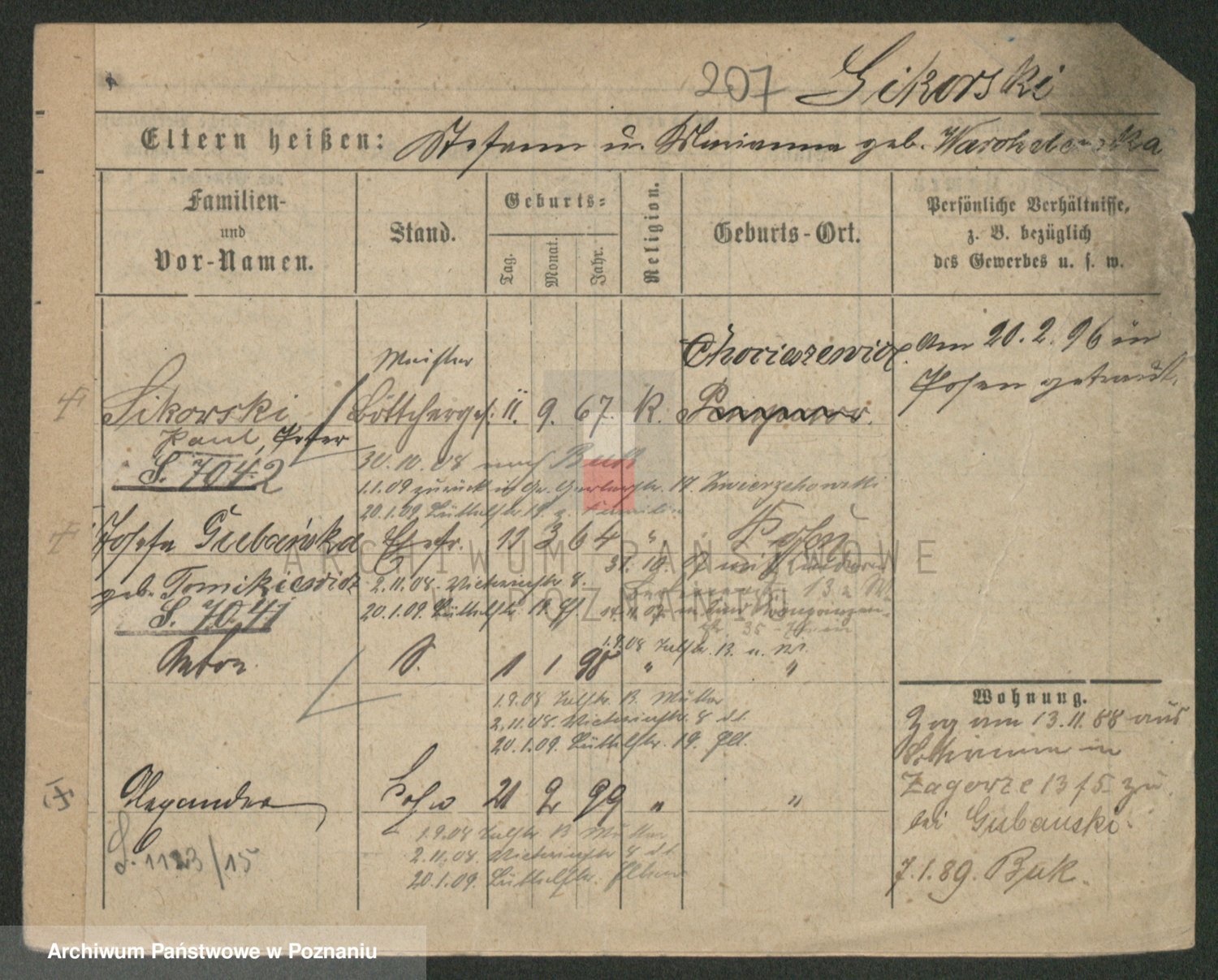 Durch Anklicken eines Namens oder Kartensymbols gelangen Sie zum Vorschau einer Personalkarte. Sie können die Ansicht vergrößern (Symbole am oberen Rand) oder zwischen den Scans wechseln (Pfeile an den Seiten).