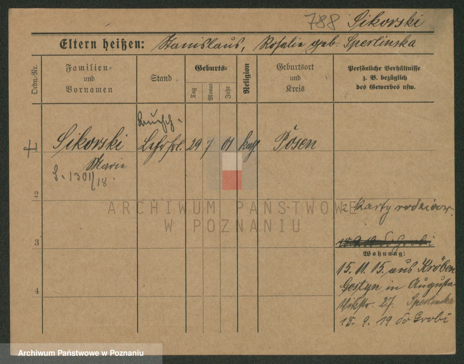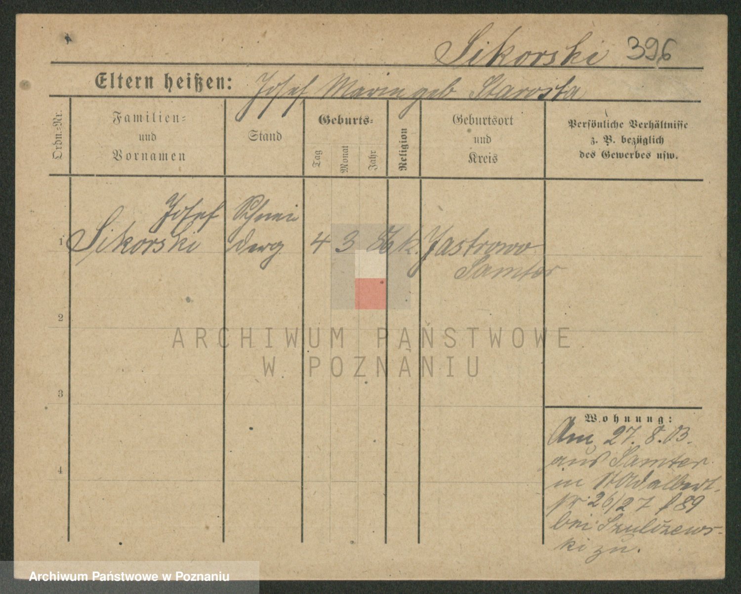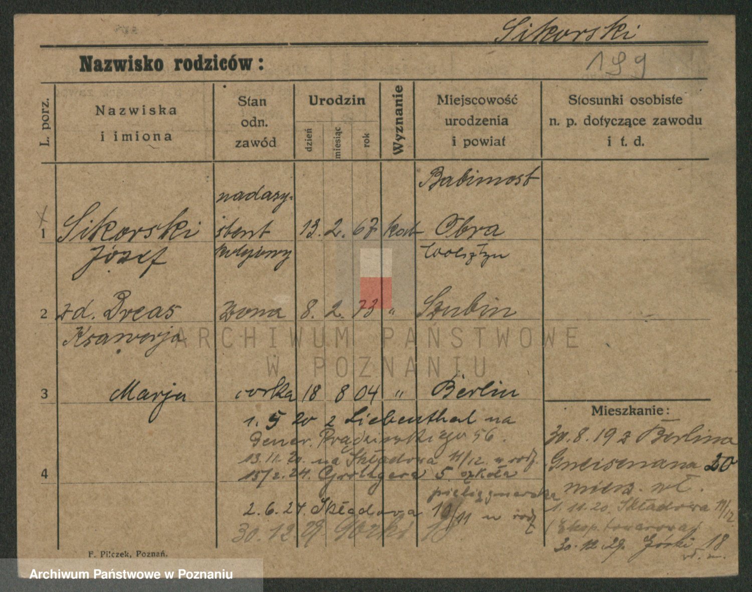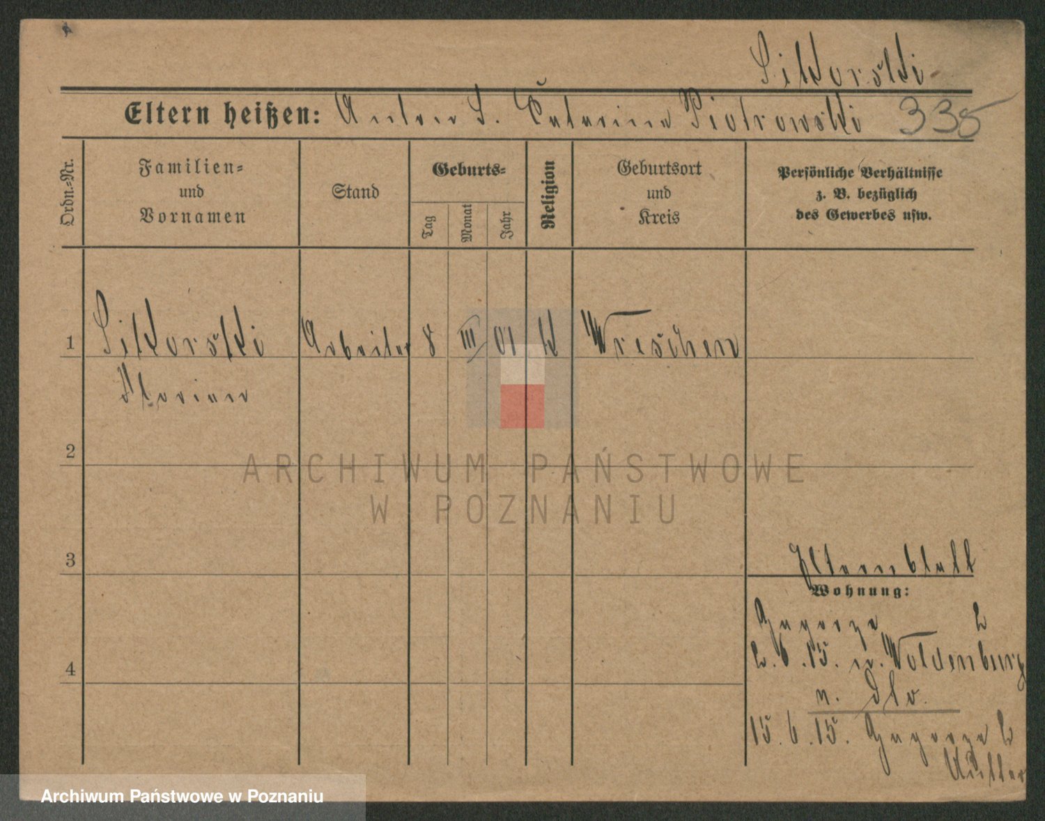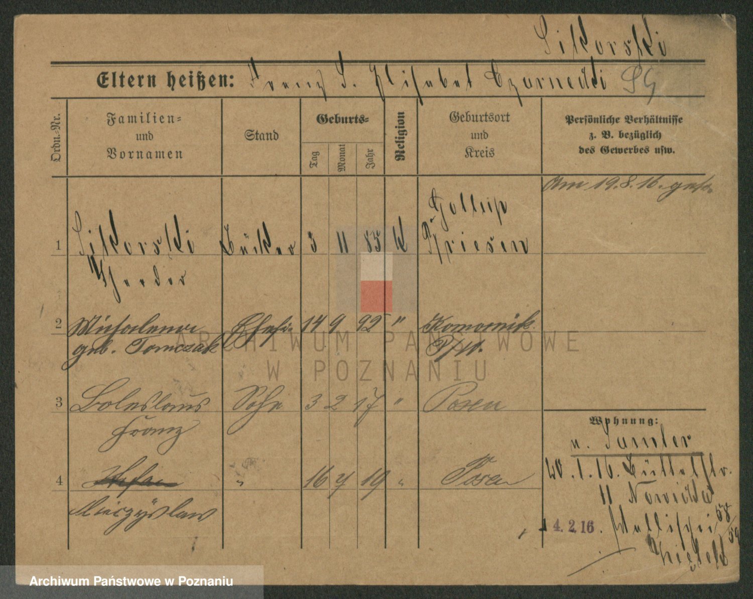 Durch Anklicken eines Namens oder Kartensymbols gelangen Sie zum Vorschau einer Personalkarte. Sie können die Ansicht vergrößern (Symbole am oberen Rand) oder zwischen den Scans wechseln (Pfeile an den Seiten).