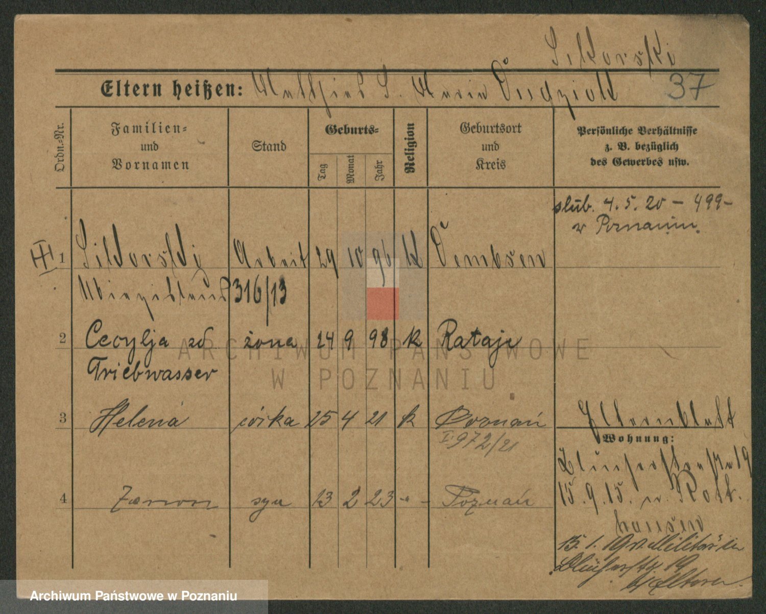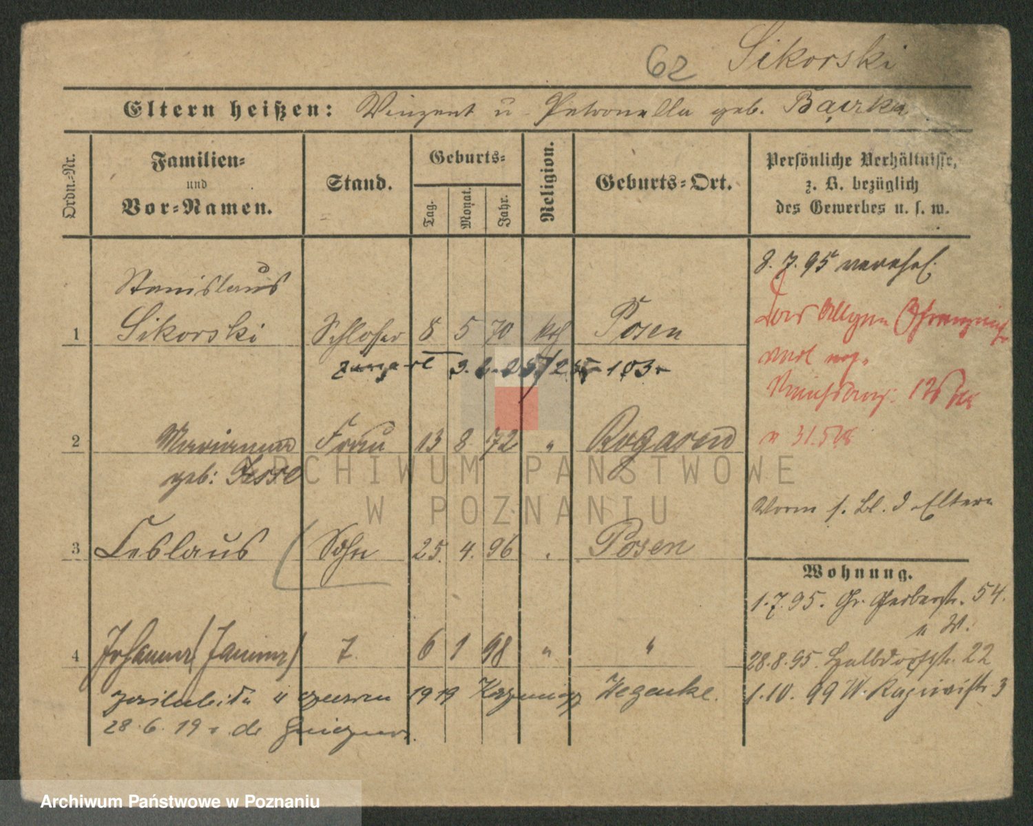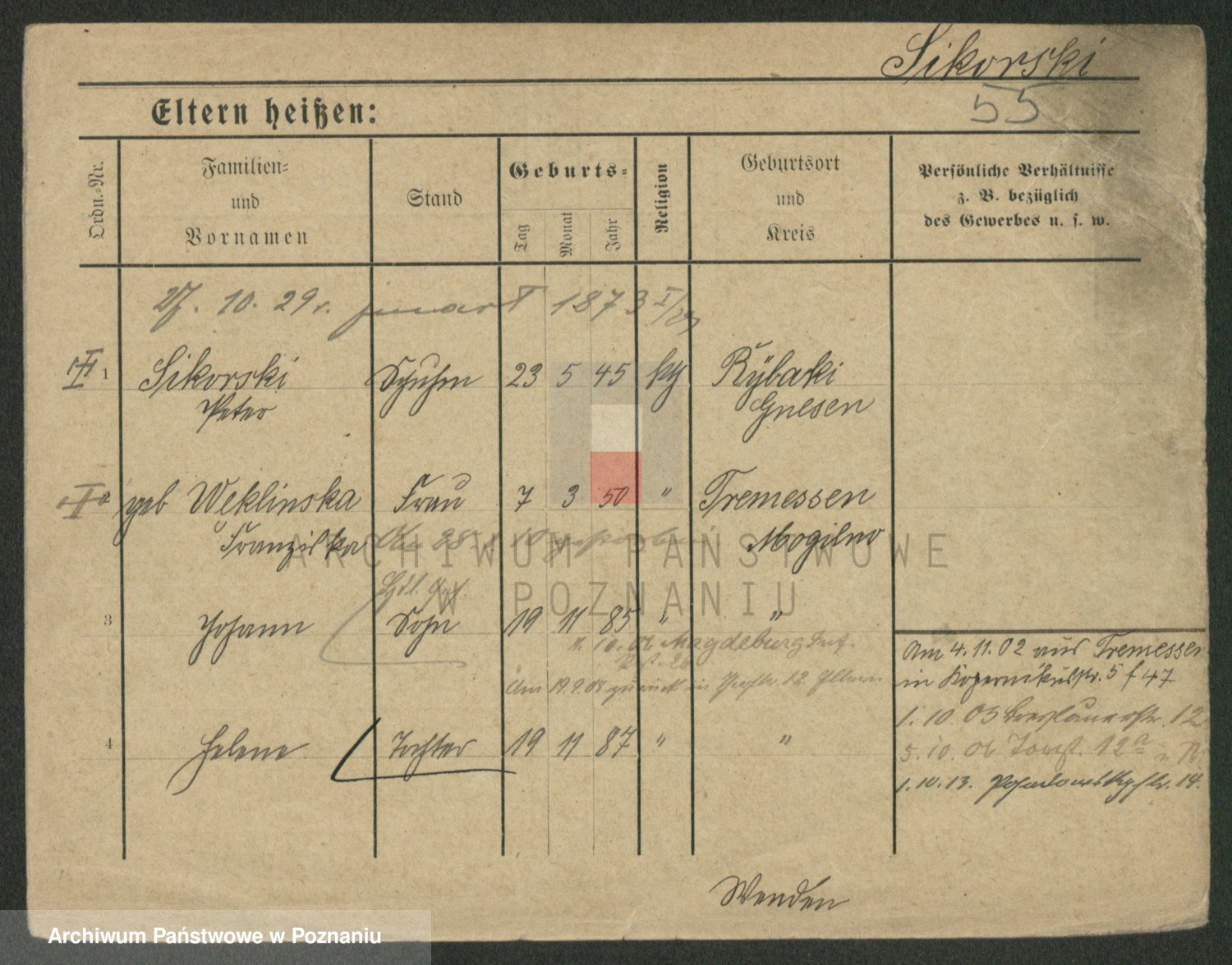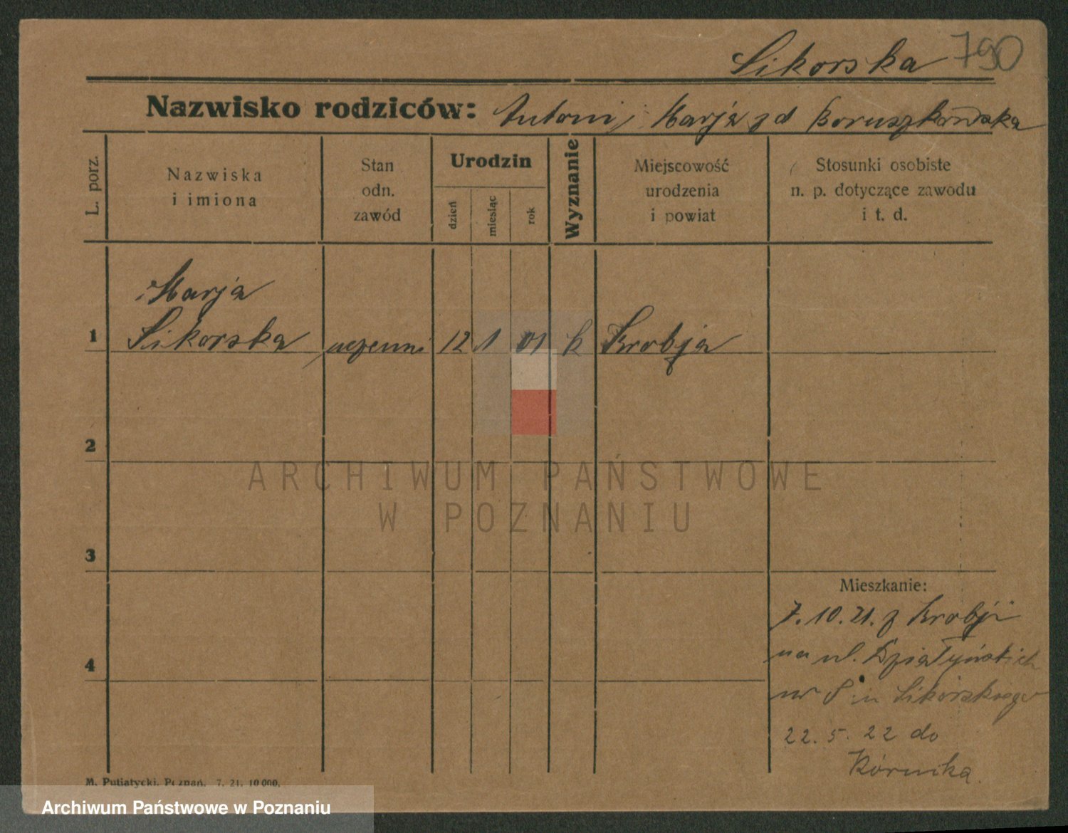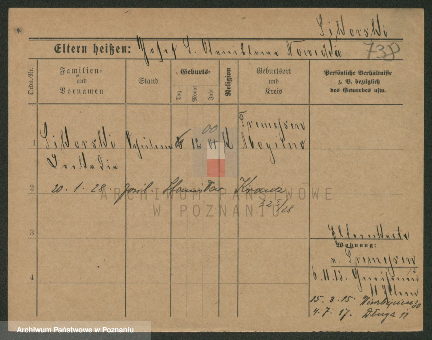 Durch Anklicken eines Namens oder Kartensymbols gelangen Sie zum Vorschau einer Personalkarte. Sie können die Ansicht vergrößern (Symbole am oberen Rand) oder zwischen den Scans wechseln (Pfeile an den Seiten).
