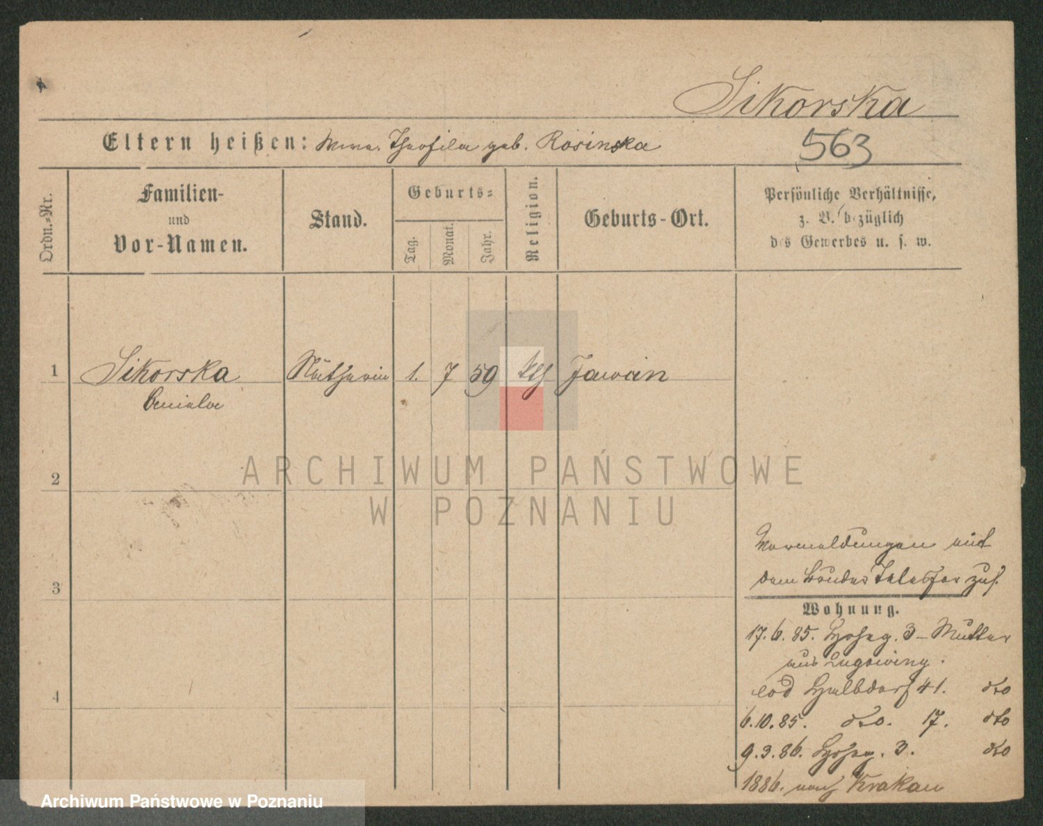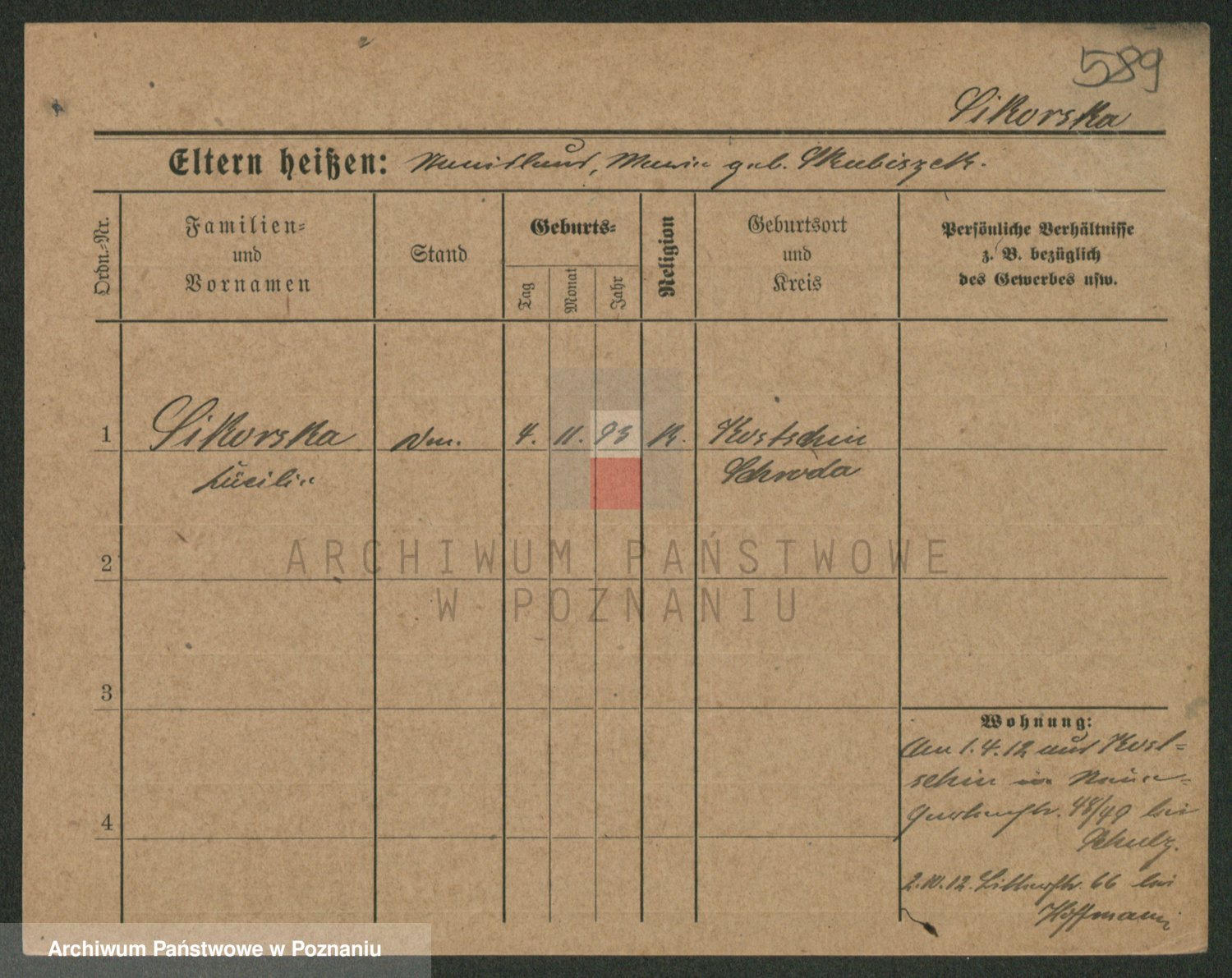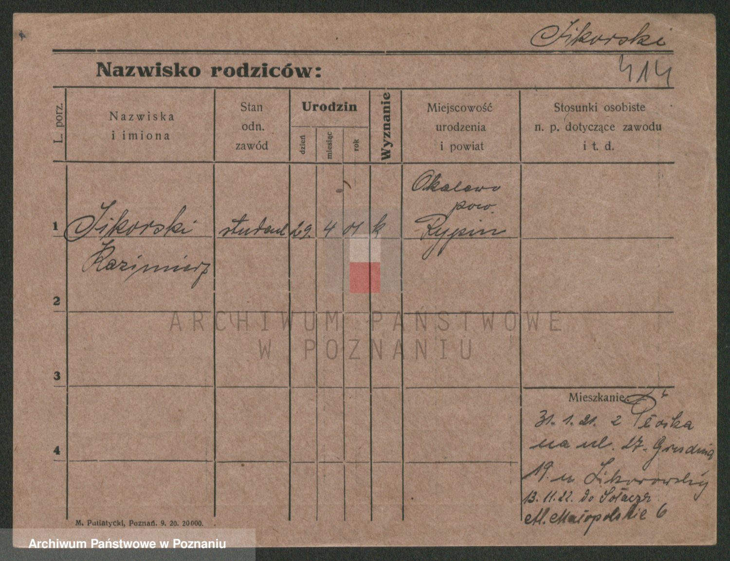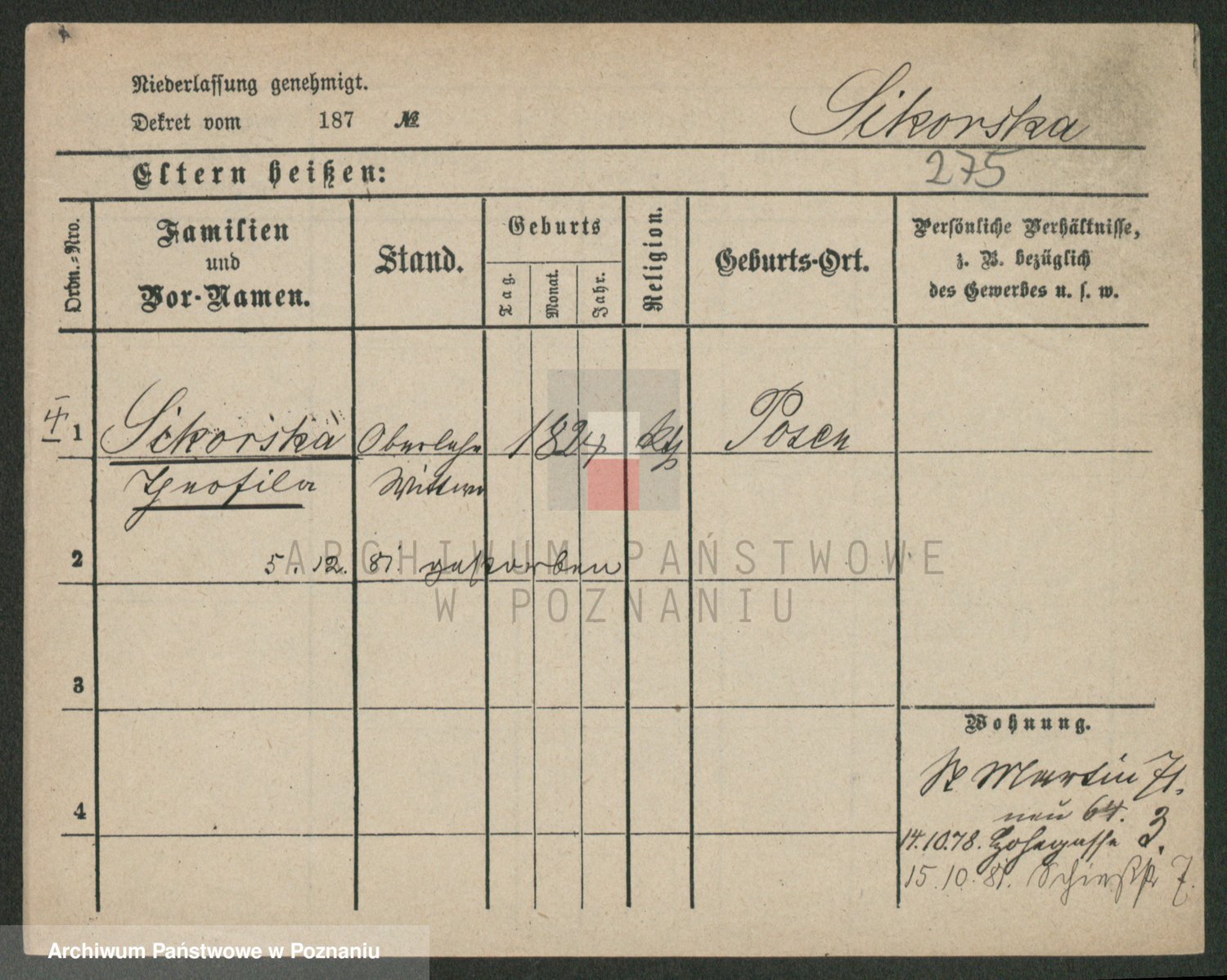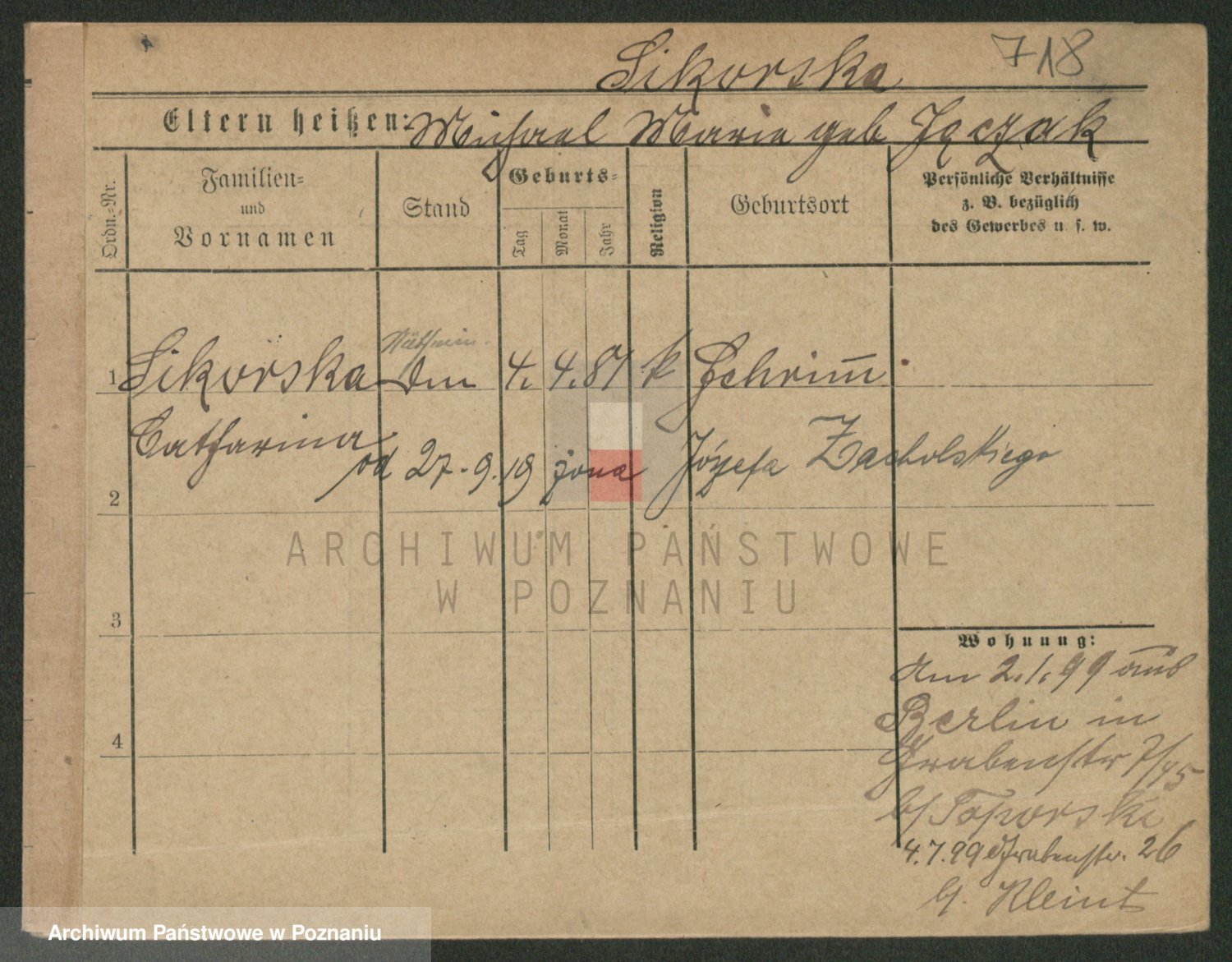 Durch Anklicken eines Namens oder Kartensymbols gelangen Sie zum Vorschau einer Personalkarte. Sie können die Ansicht vergrößern (Symbole am oberen Rand) oder zwischen den Scans wechseln (Pfeile an den Seiten).
