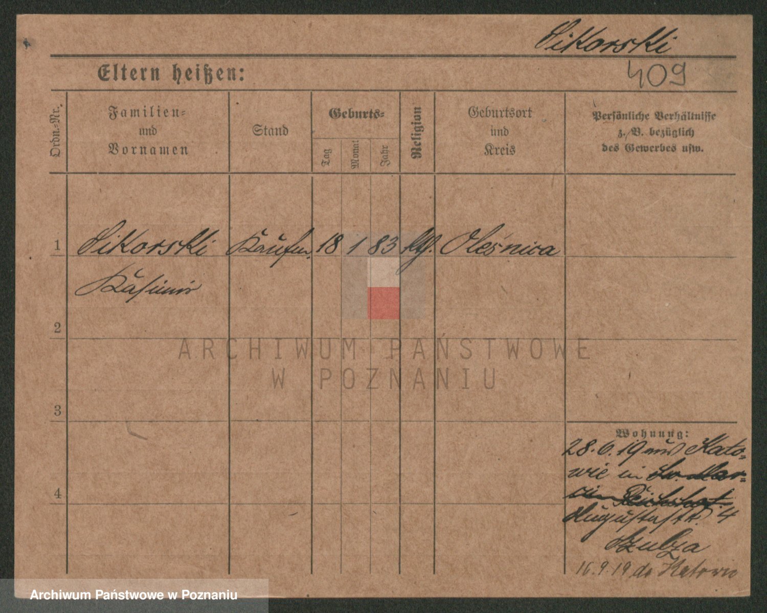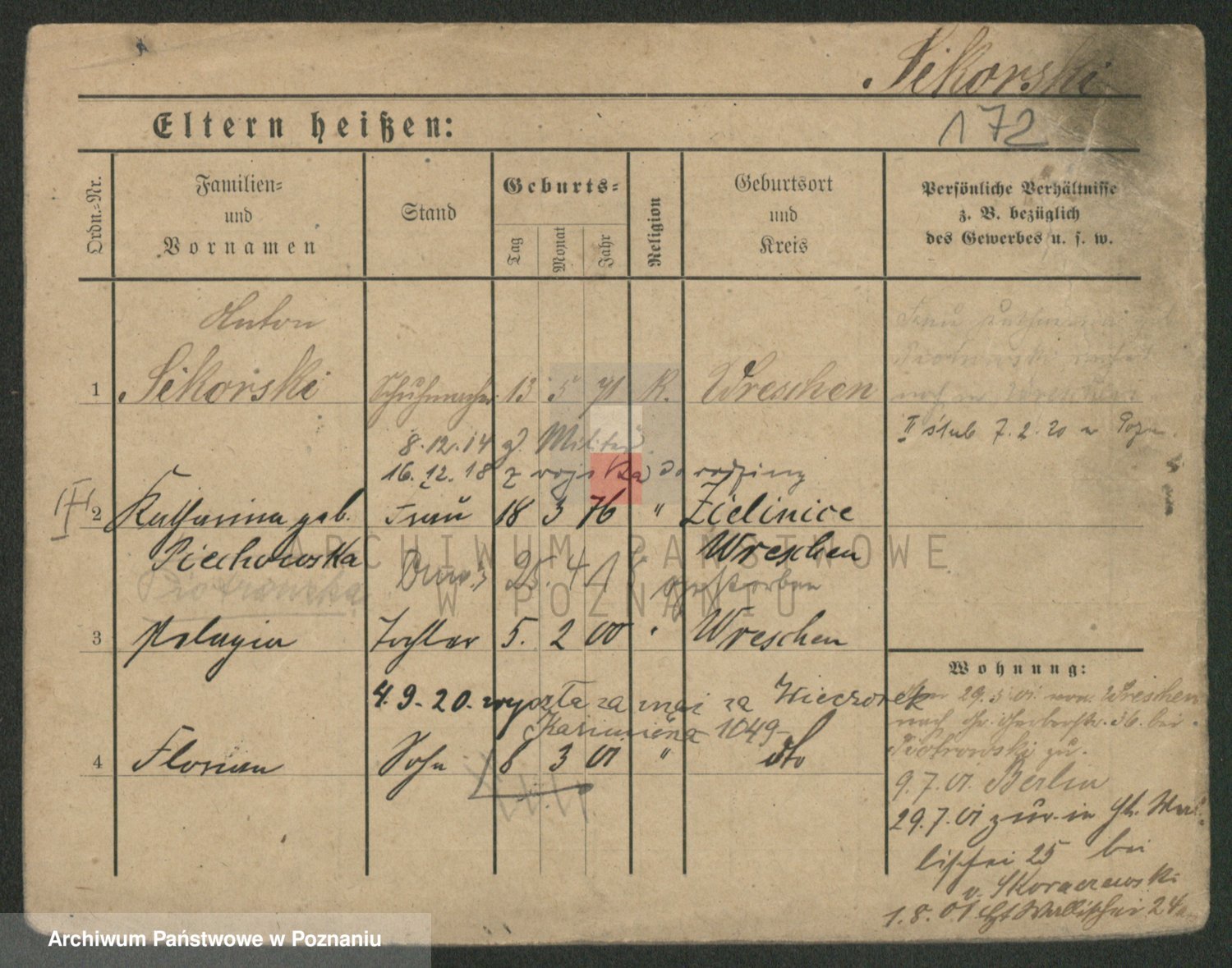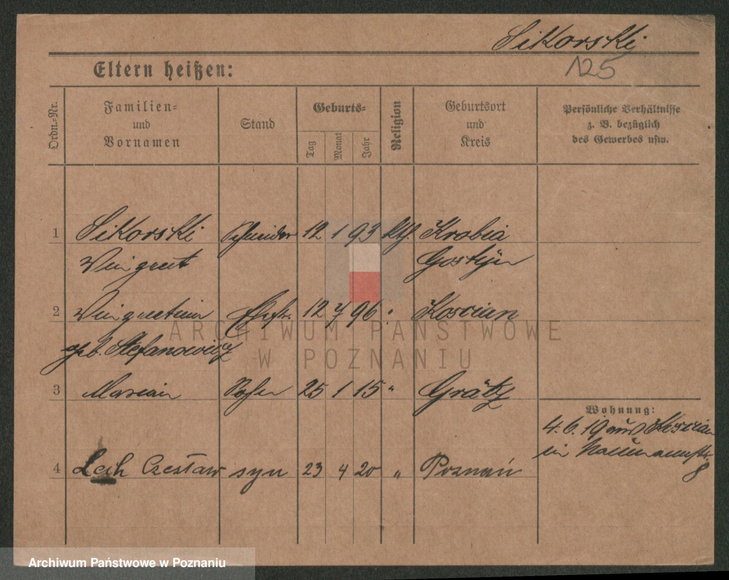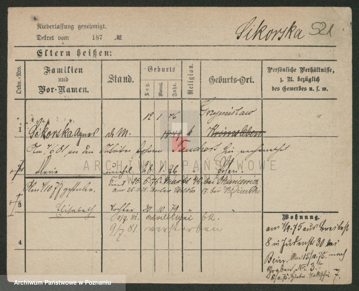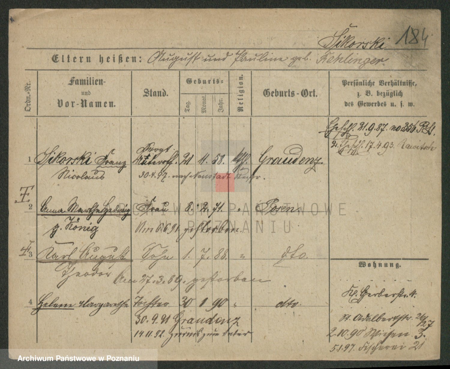 Durch Anklicken eines Namens oder Kartensymbols gelangen Sie zum Vorschau einer Personalkarte. Sie können die Ansicht vergrößern (Symbole am oberen Rand) oder zwischen den Scans wechseln (Pfeile an den Seiten).