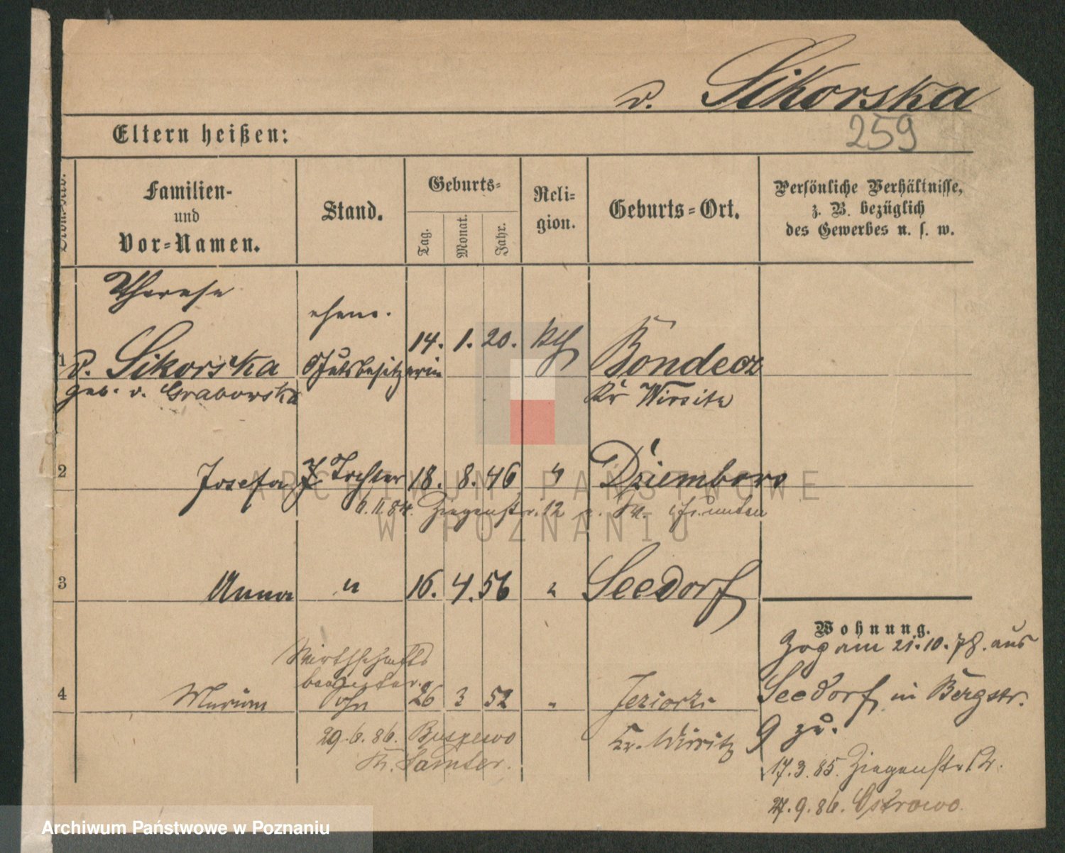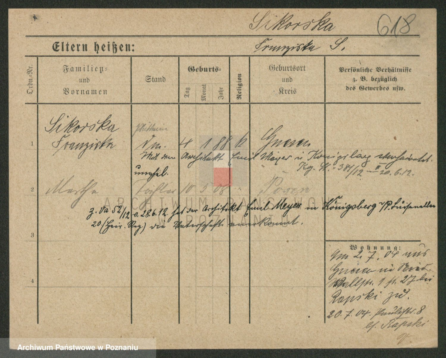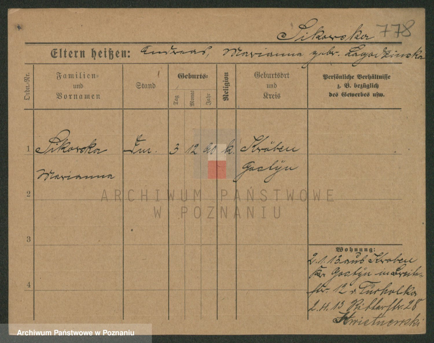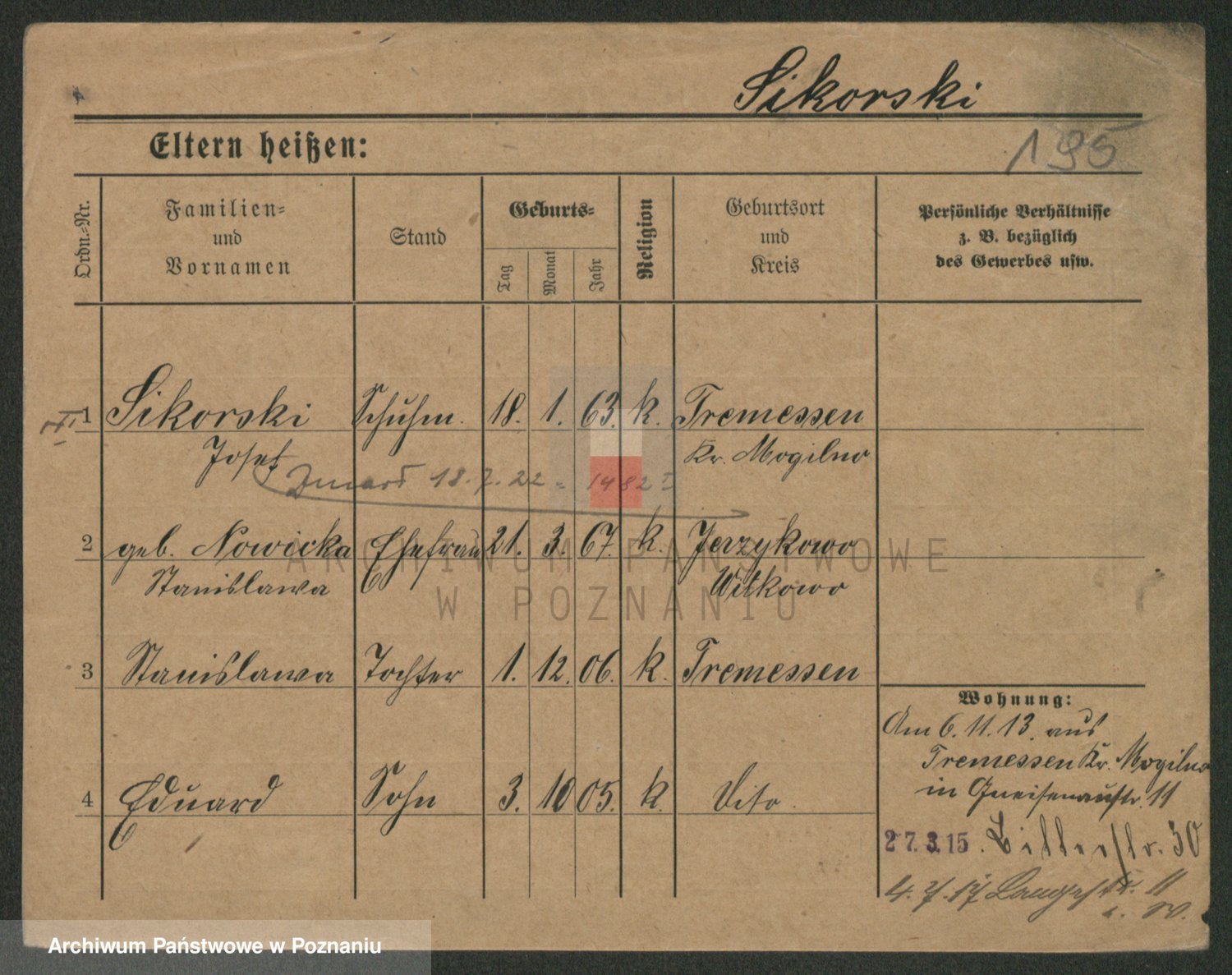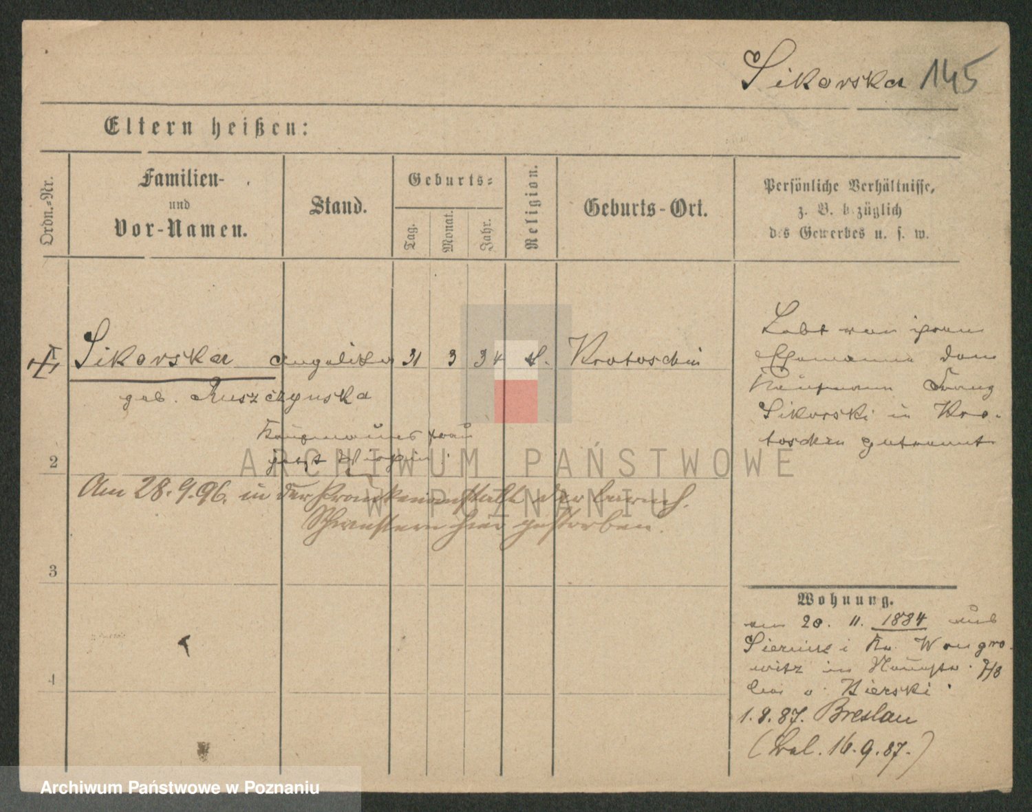 Durch Anklicken eines Namens oder Kartensymbols gelangen Sie zum Vorschau einer Personalkarte. Sie können die Ansicht vergrößern (Symbole am oberen Rand) oder zwischen den Scans wechseln (Pfeile an den Seiten).