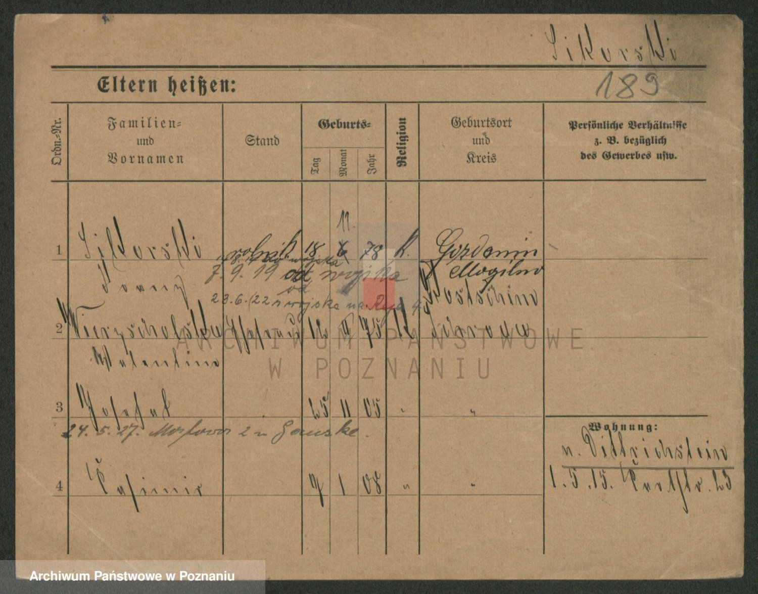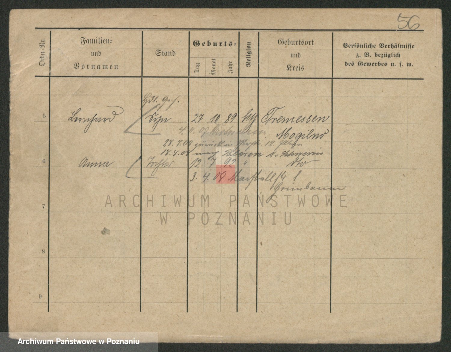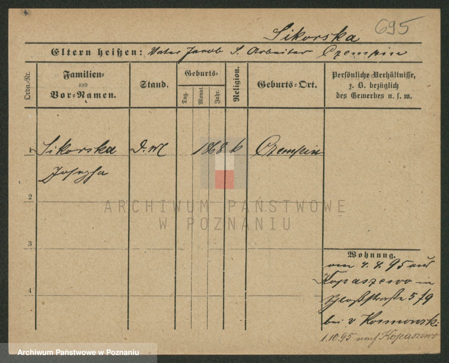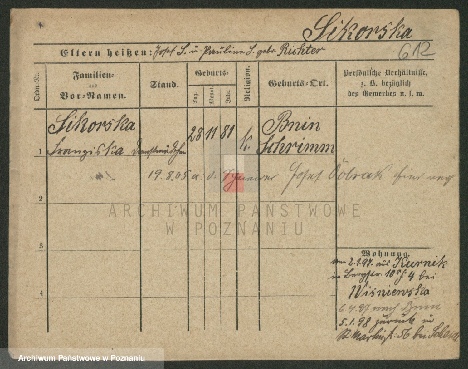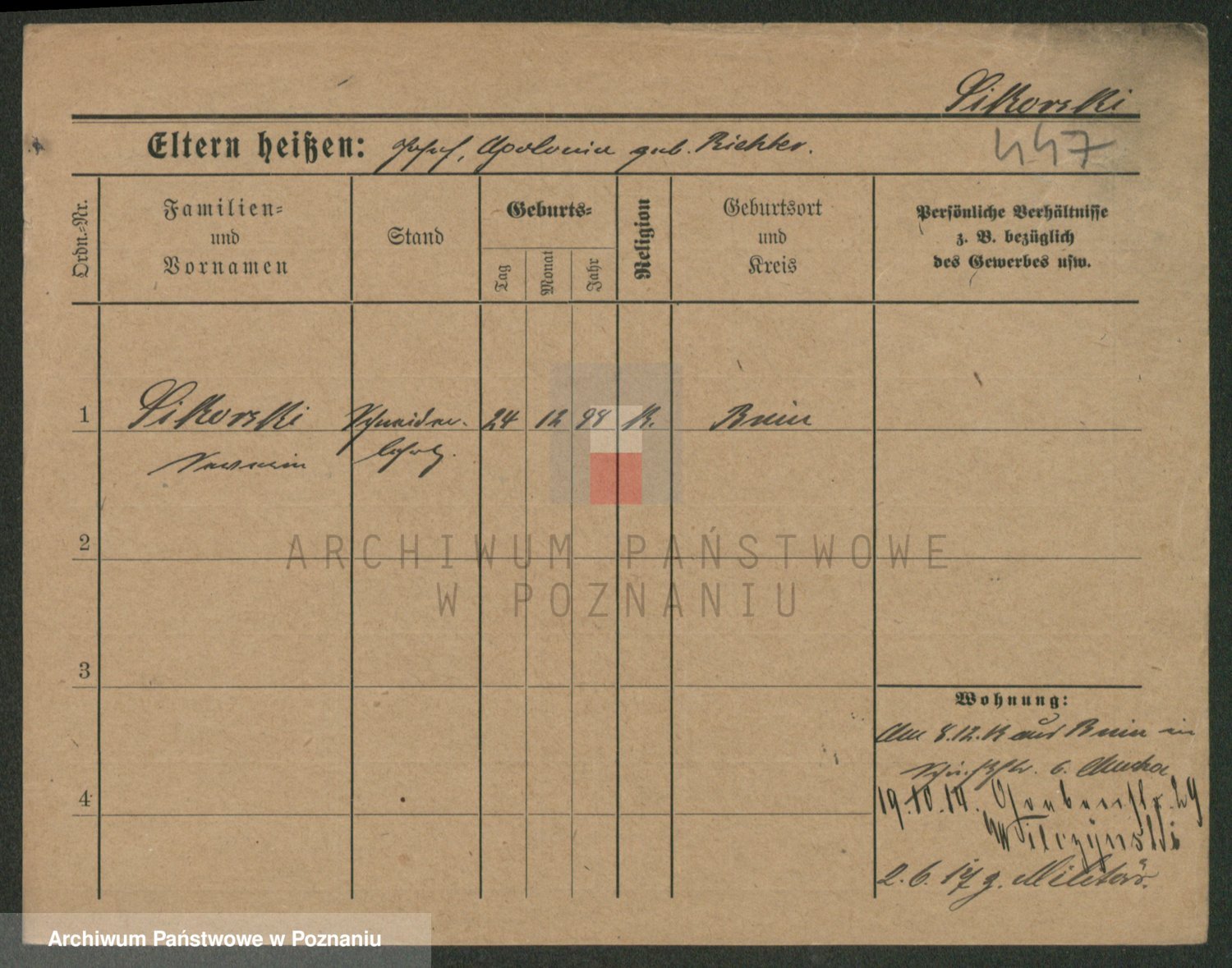 Durch Anklicken eines Namens oder Kartensymbols gelangen Sie zum Vorschau einer Personalkarte. Sie können die Ansicht vergrößern (Symbole am oberen Rand) oder zwischen den Scans wechseln (Pfeile an den Seiten).