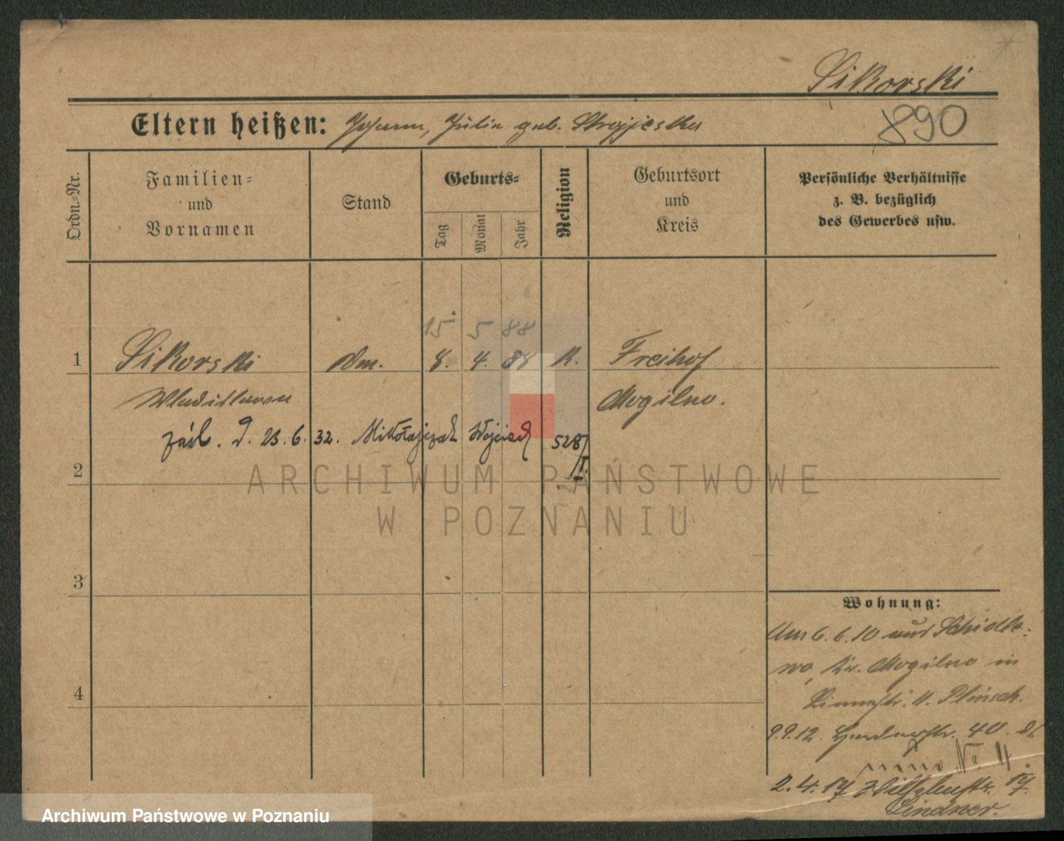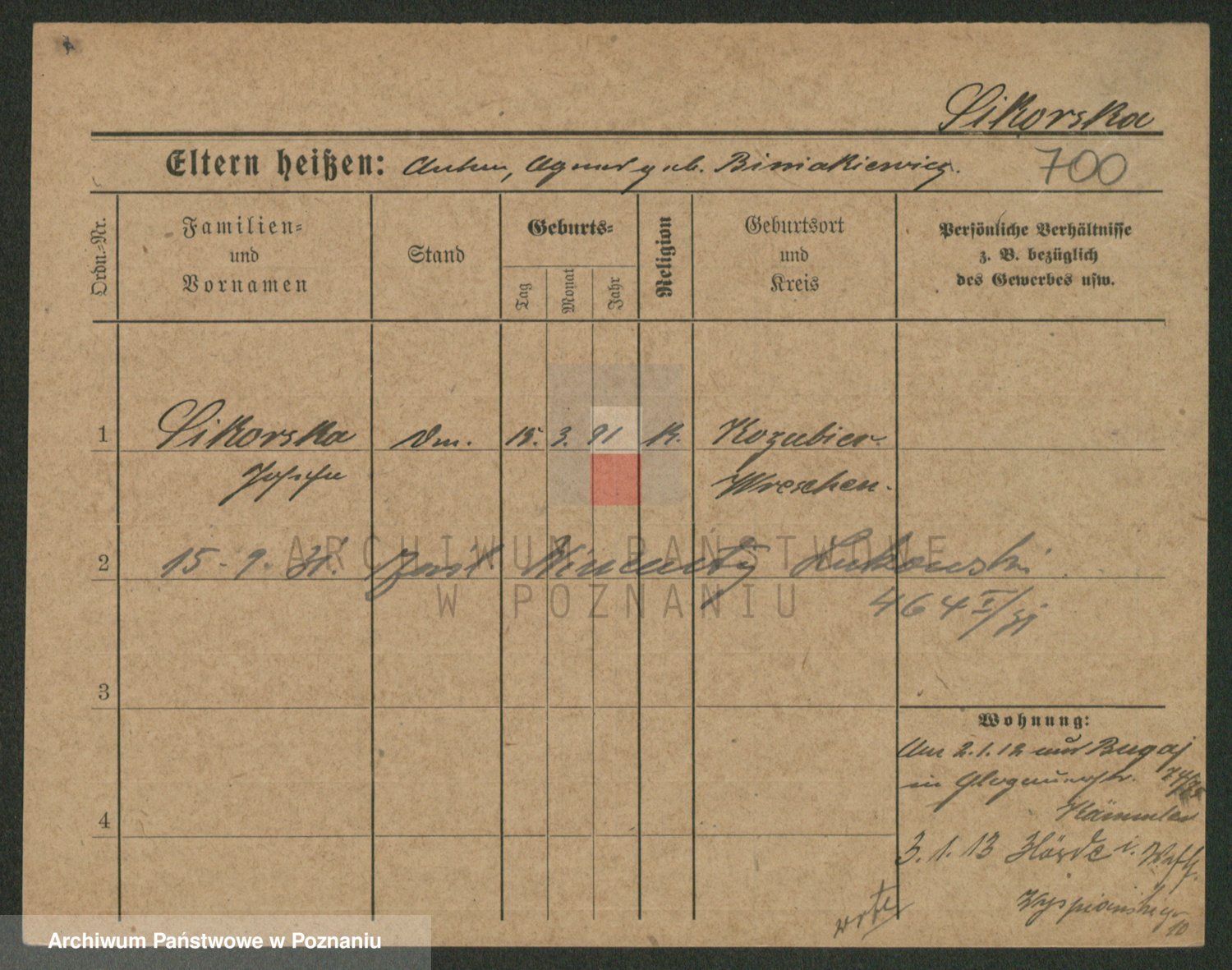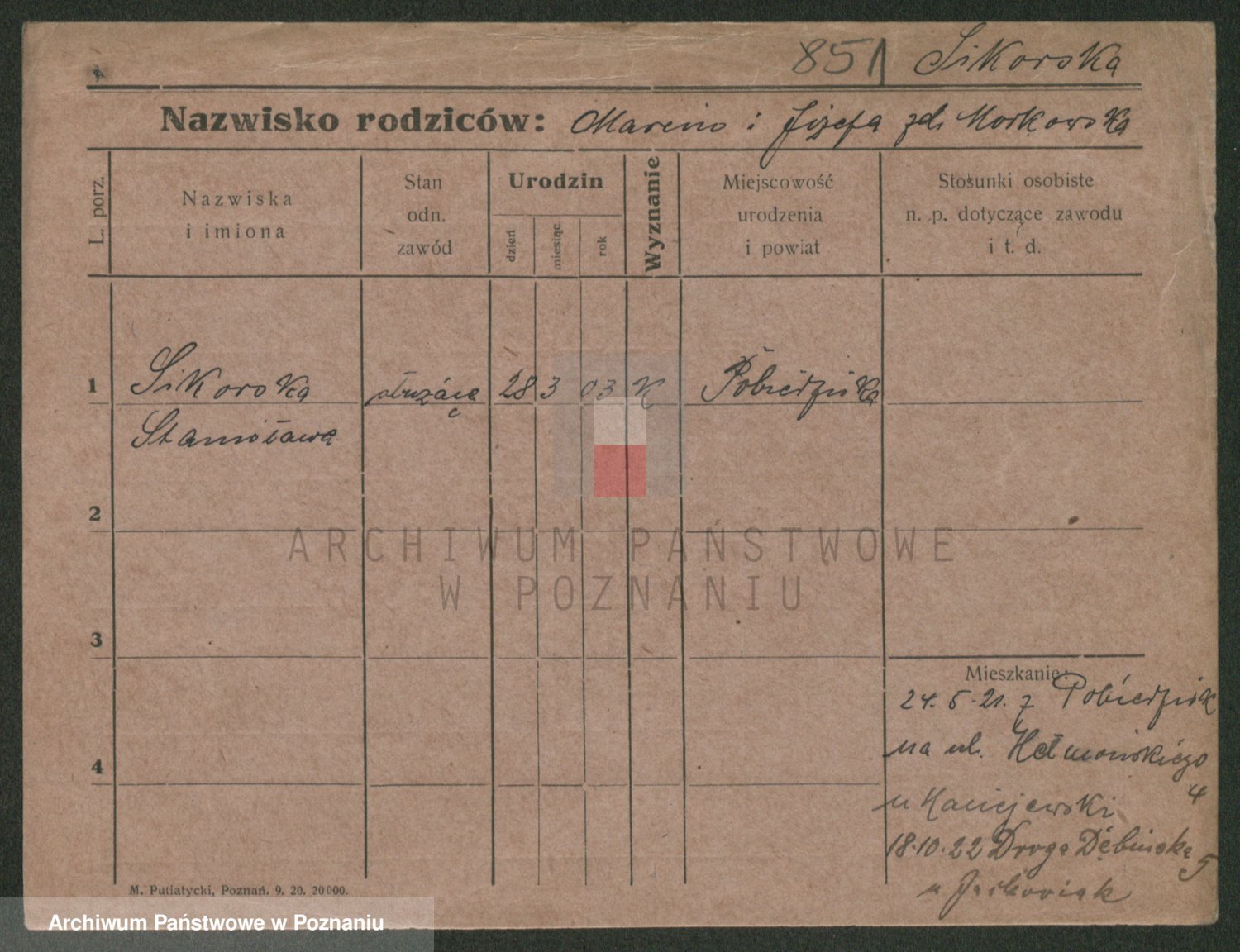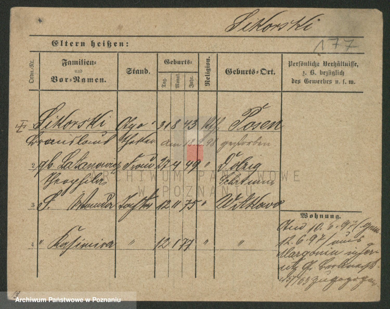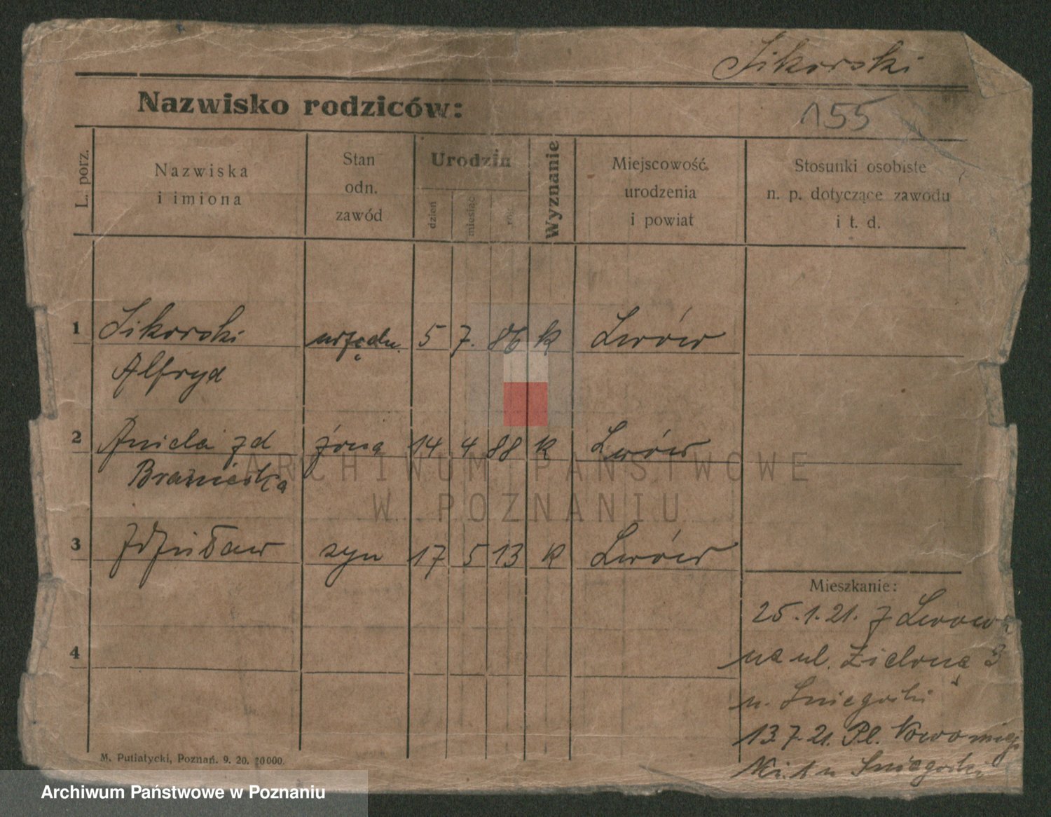 Durch Anklicken eines Namens oder Kartensymbols gelangen Sie zum Vorschau einer Personalkarte. Sie können die Ansicht vergrößern (Symbole am oberen Rand) oder zwischen den Scans wechseln (Pfeile an den Seiten).