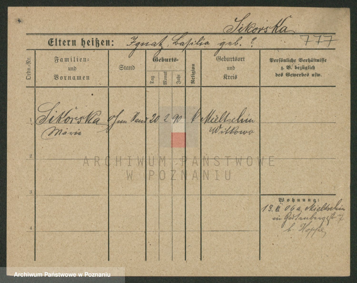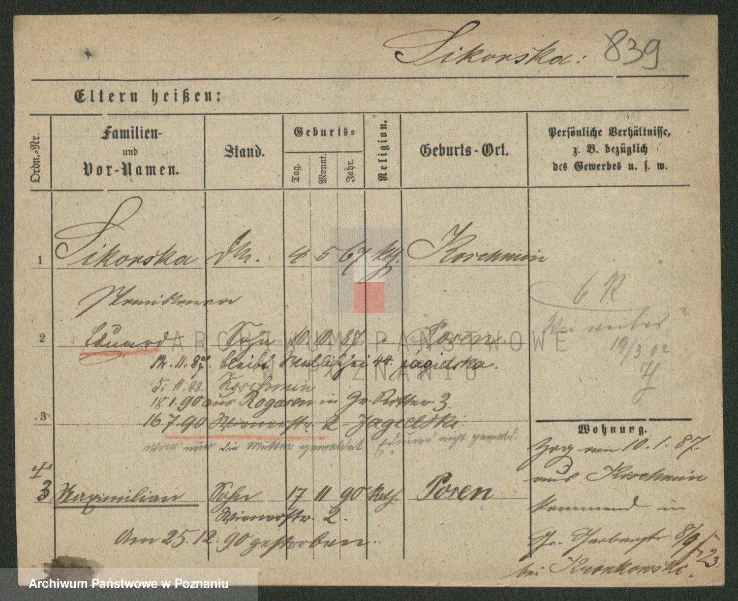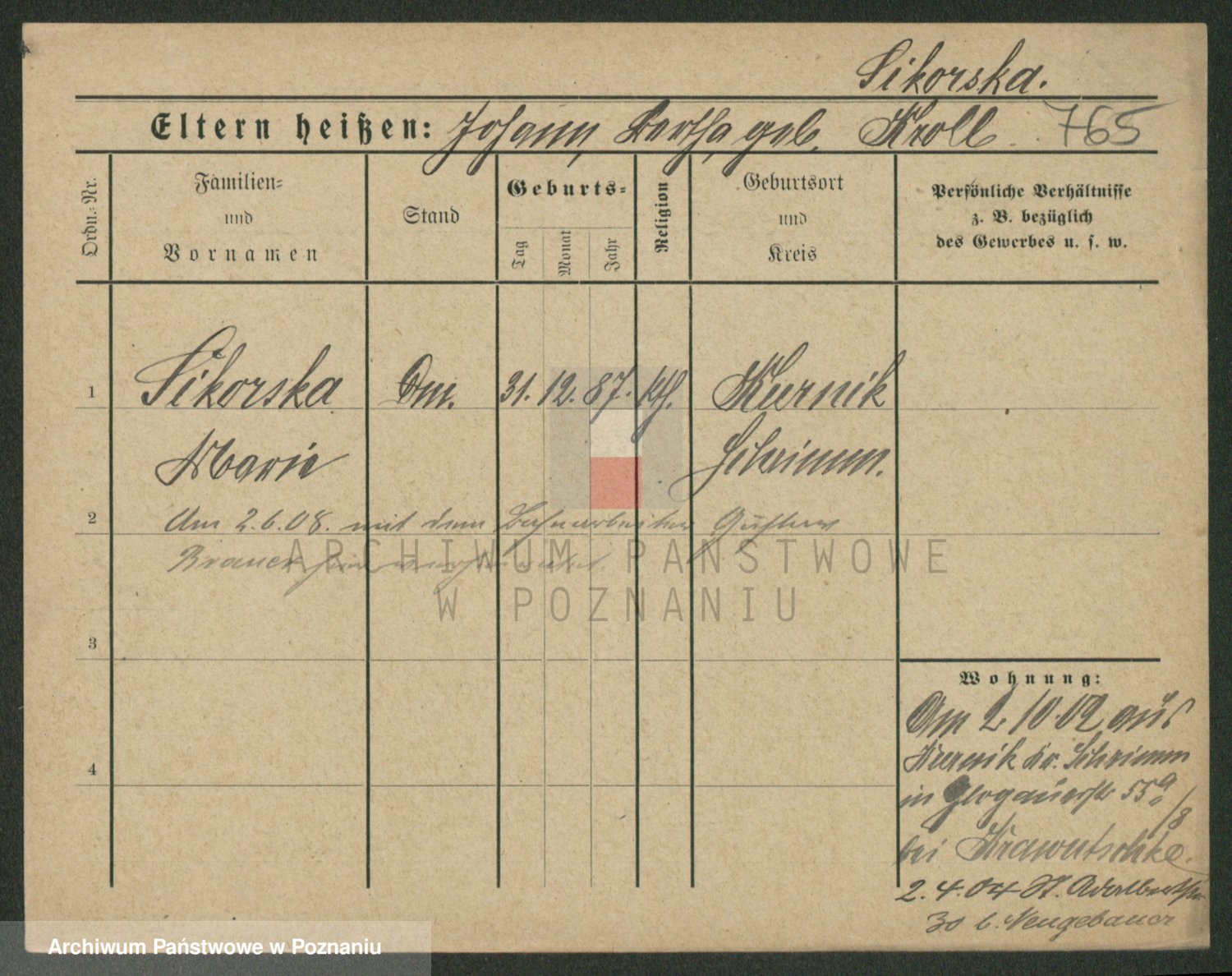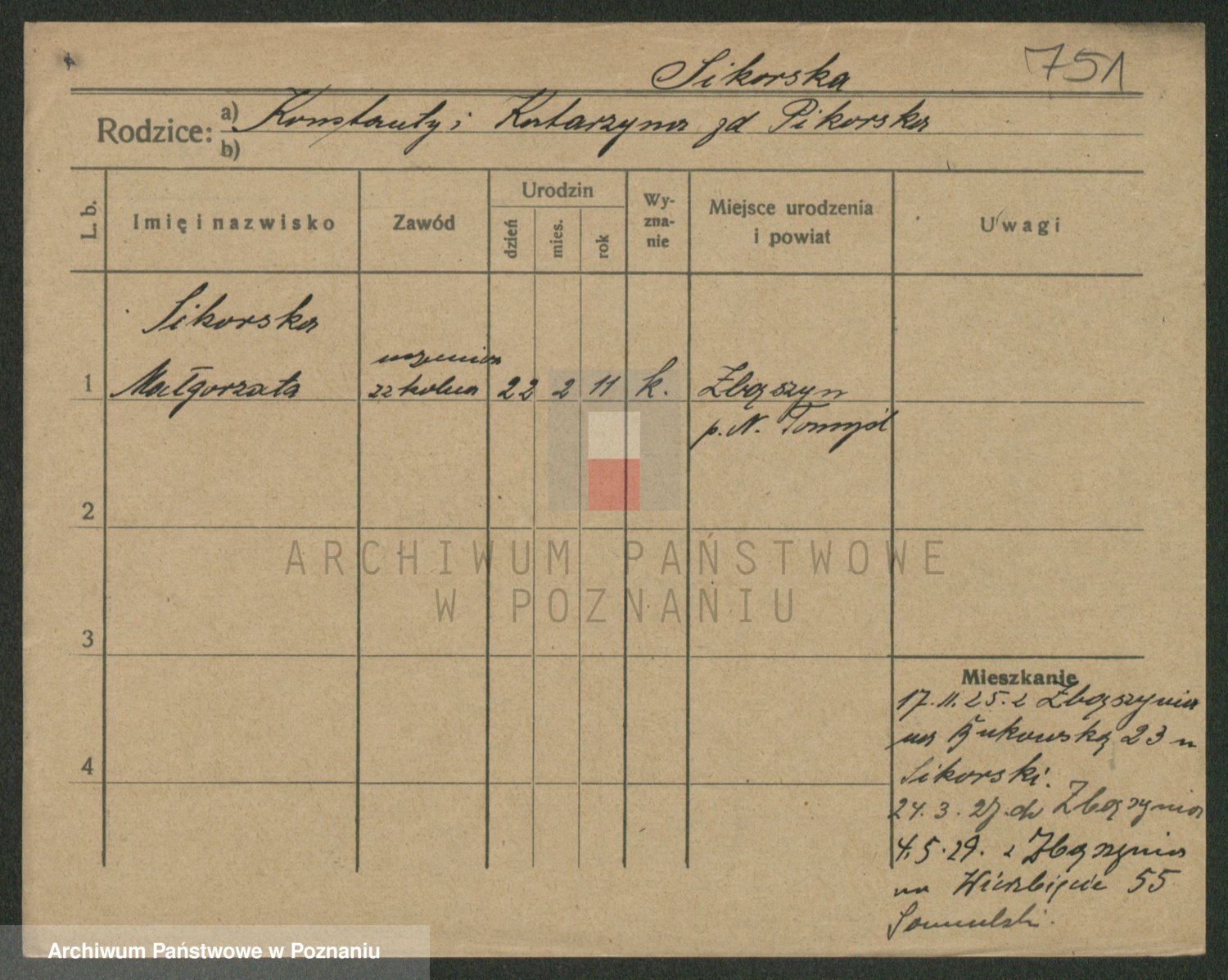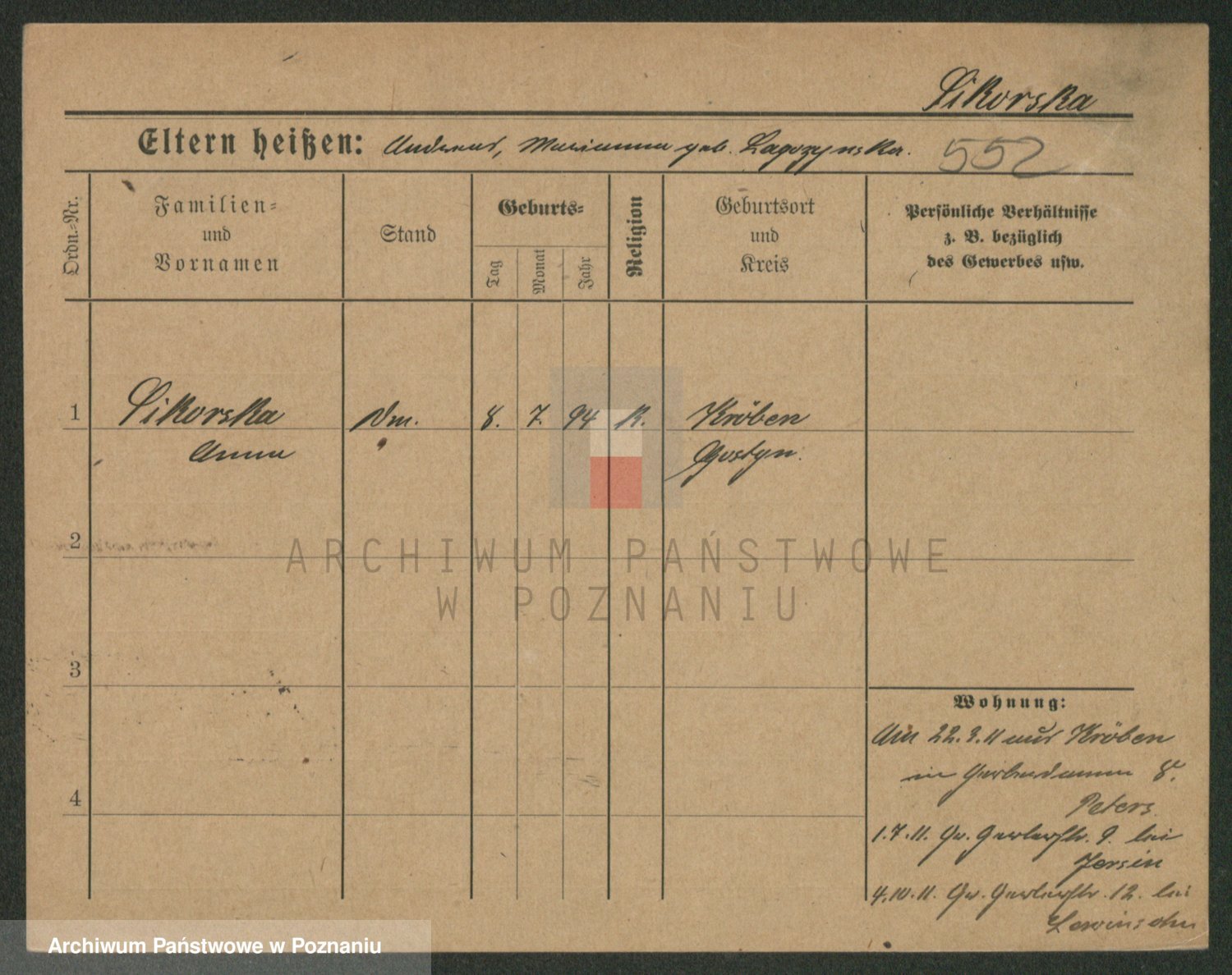 Durch Anklicken eines Namens oder Kartensymbols gelangen Sie zum Vorschau einer Personalkarte. Sie können die Ansicht vergrößern (Symbole am oberen Rand) oder zwischen den Scans wechseln (Pfeile an den Seiten).