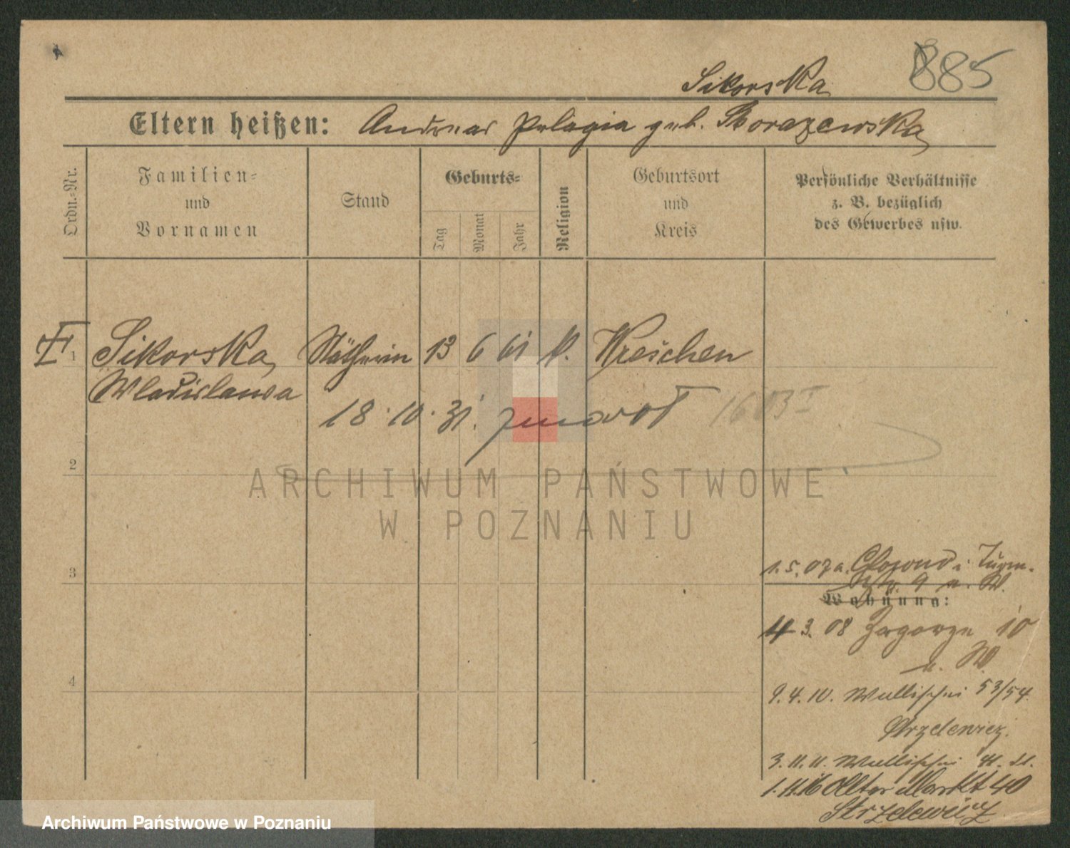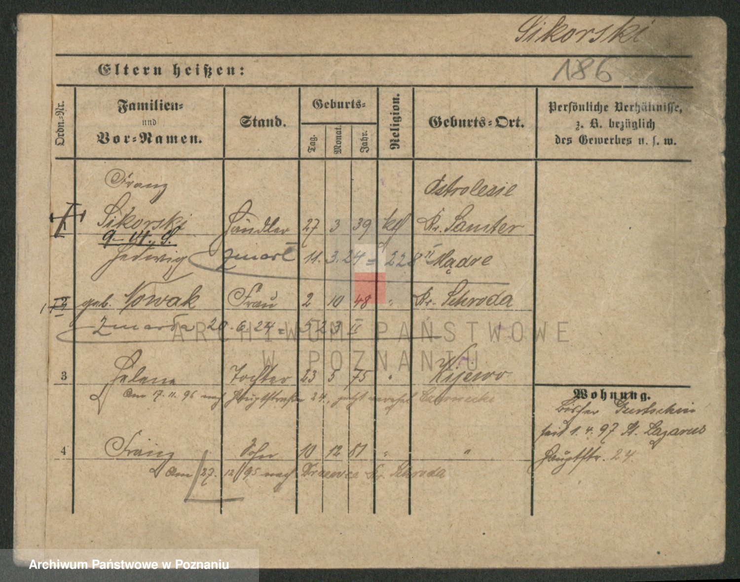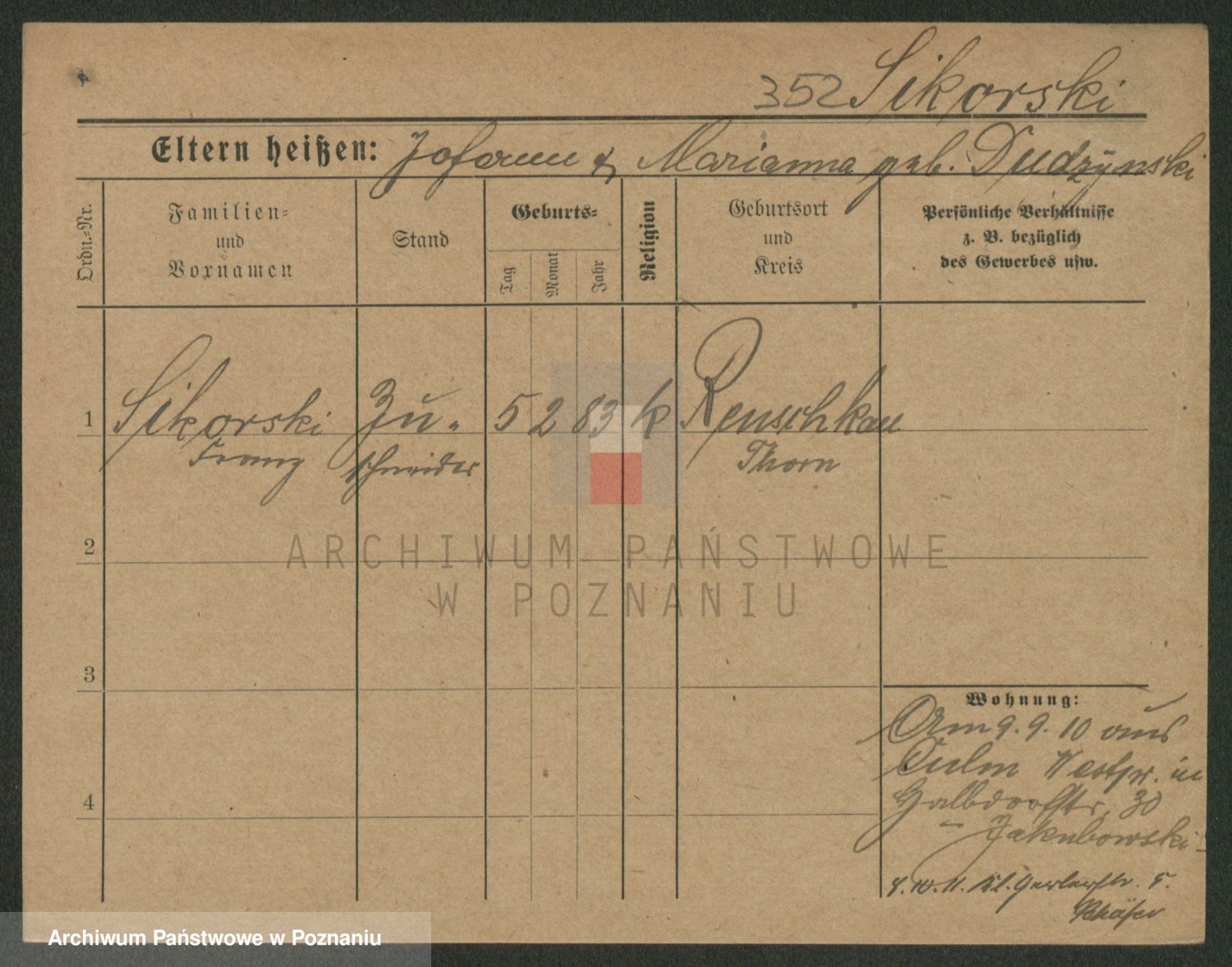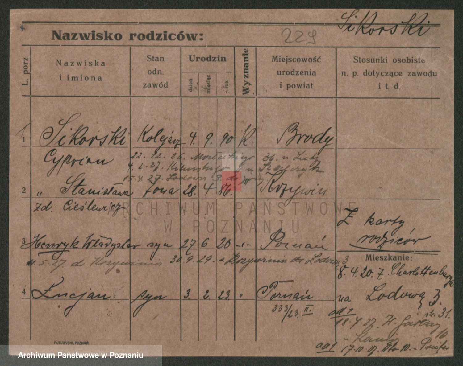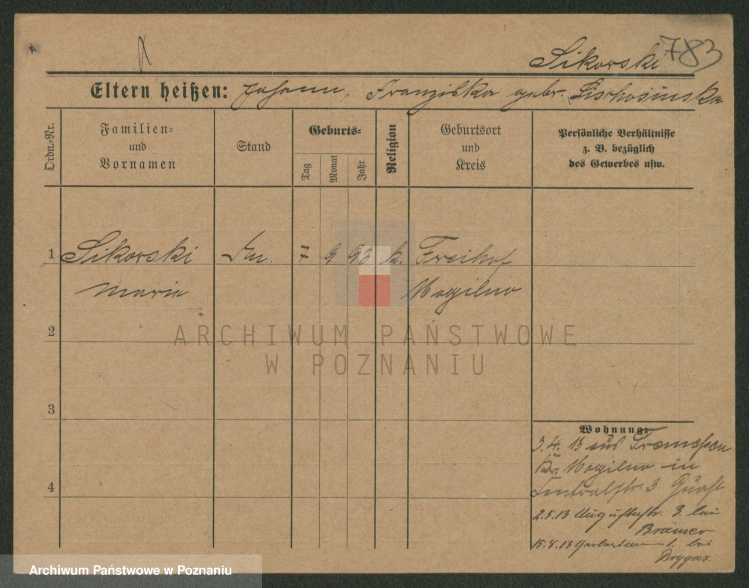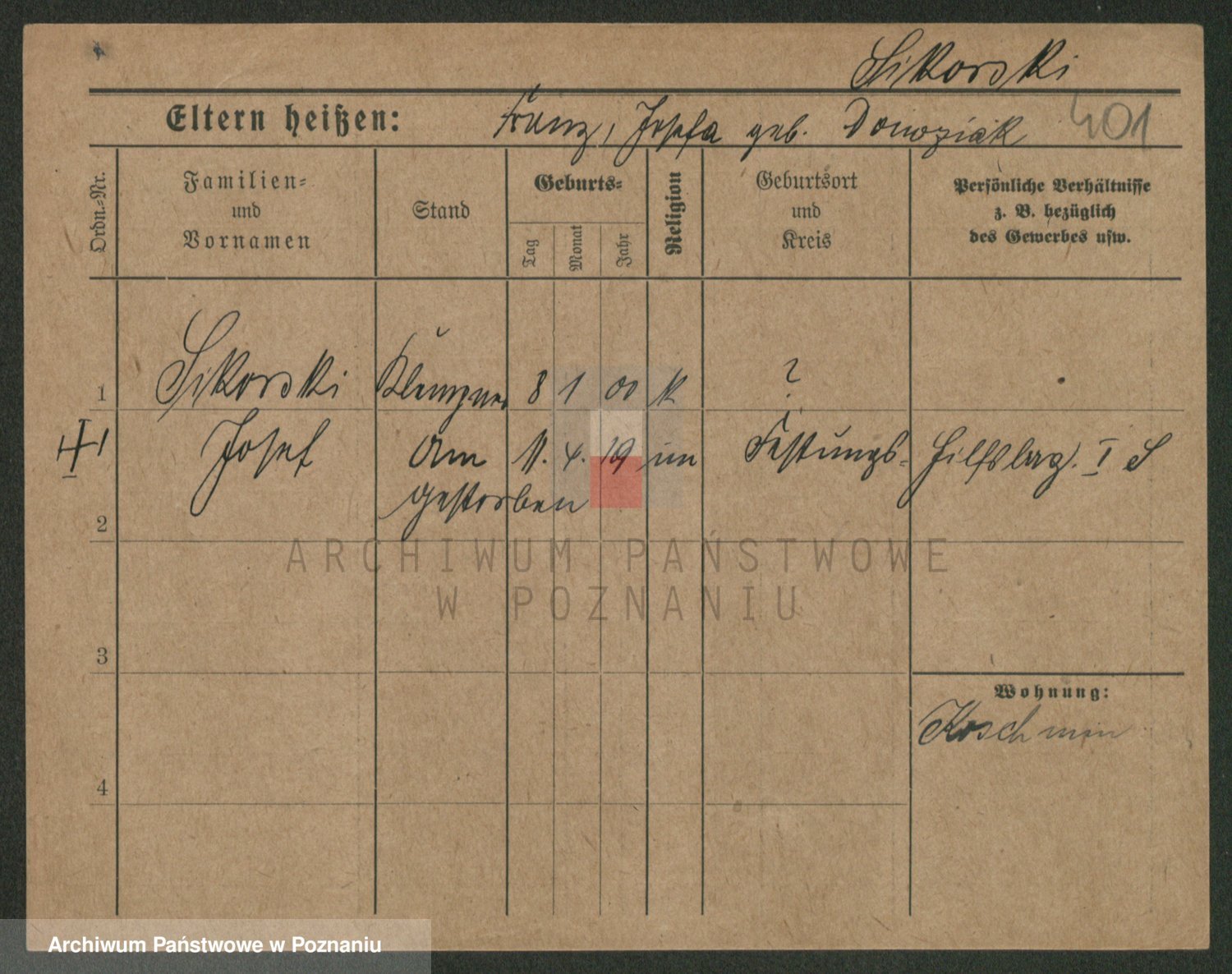 Durch Anklicken eines Namens oder Kartensymbols gelangen Sie zum Vorschau einer Personalkarte. Sie können die Ansicht vergrößern (Symbole am oberen Rand) oder zwischen den Scans wechseln (Pfeile an den Seiten).