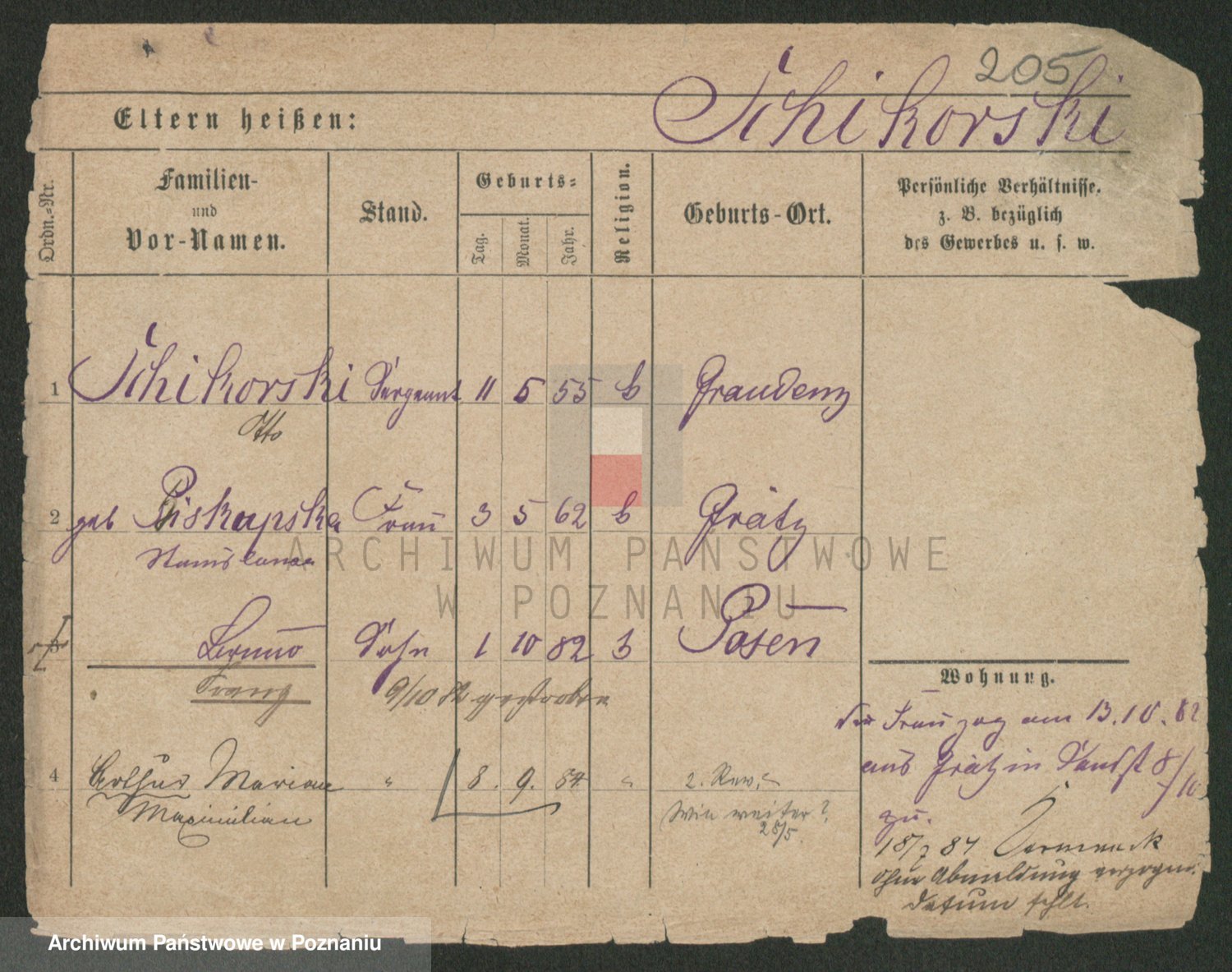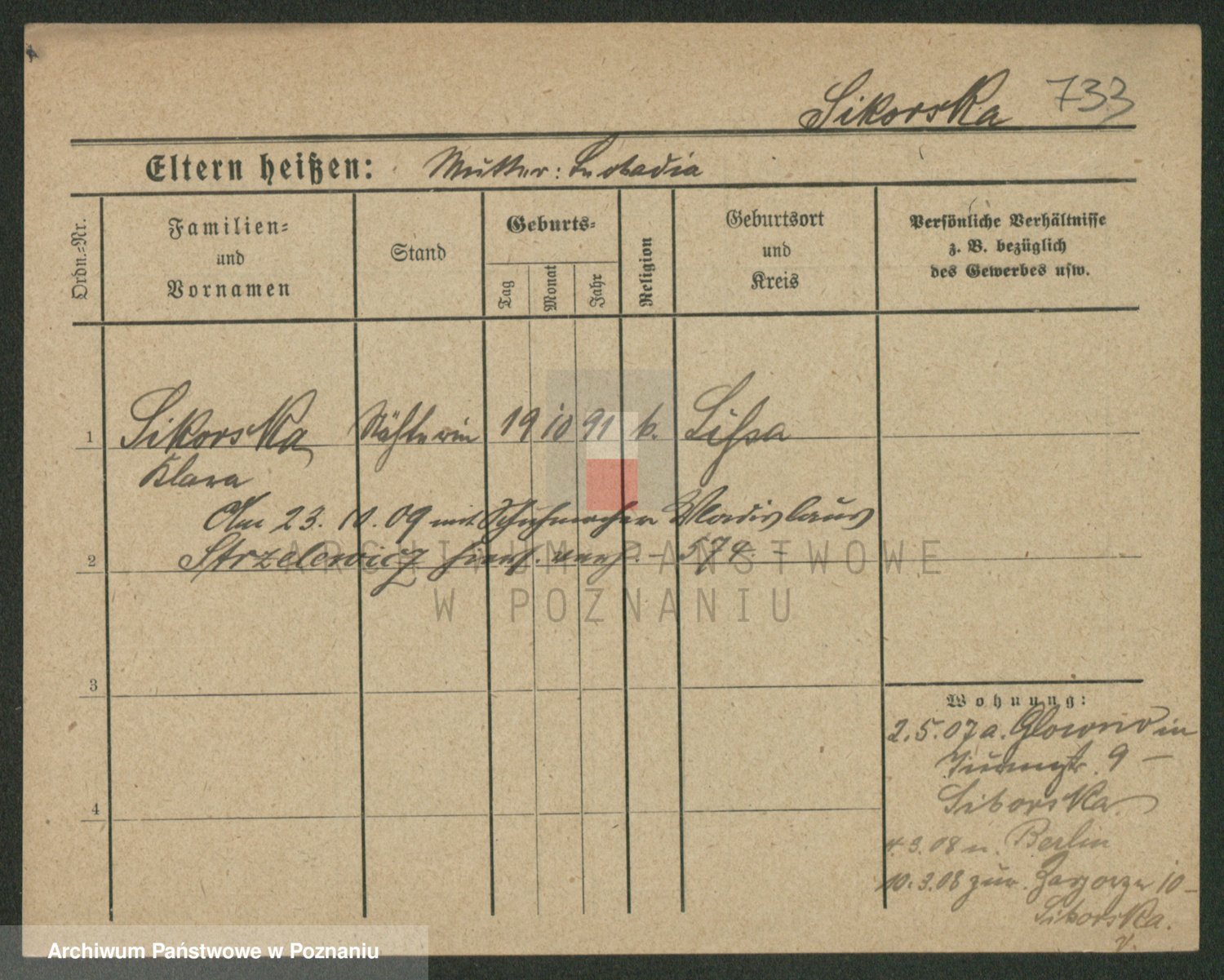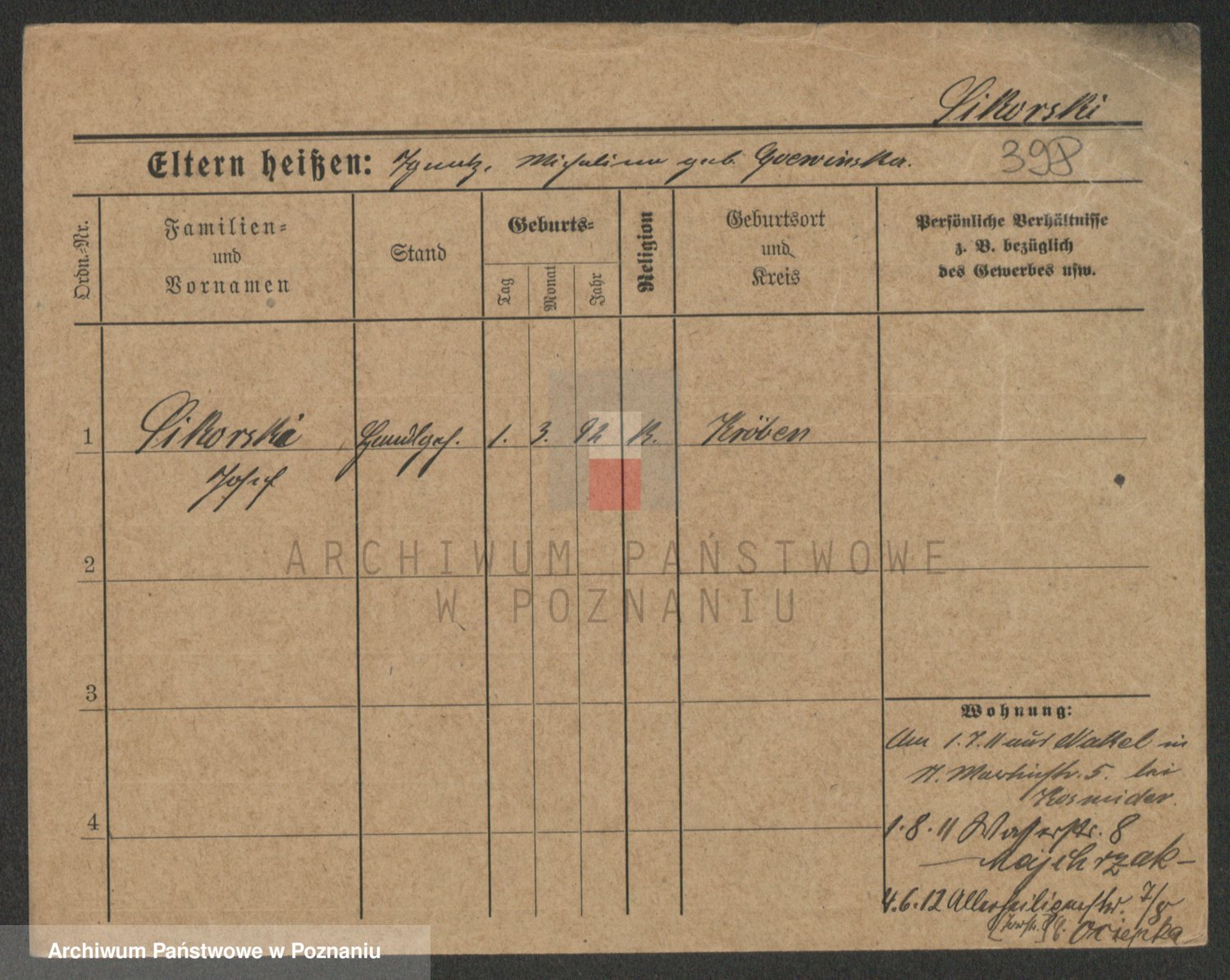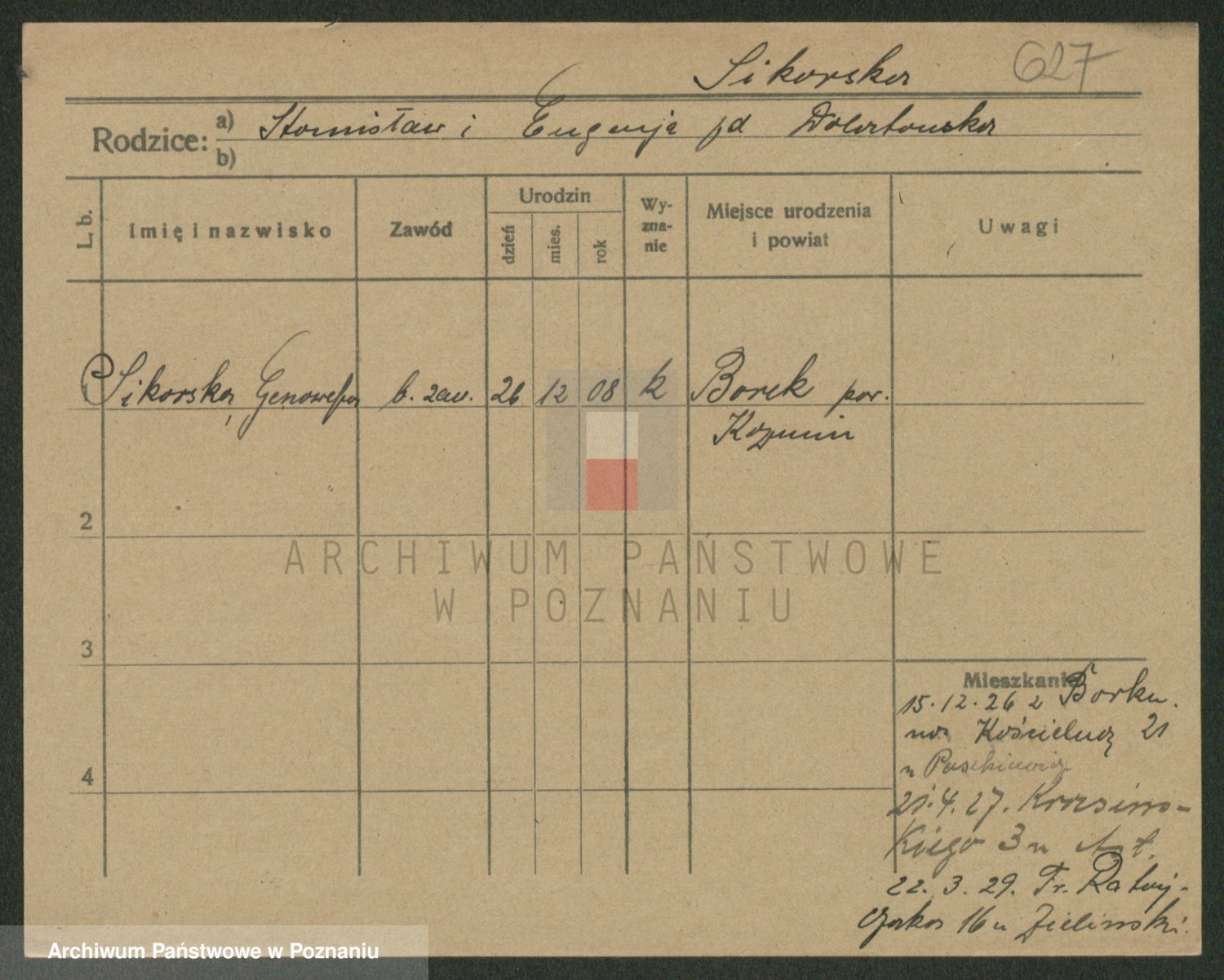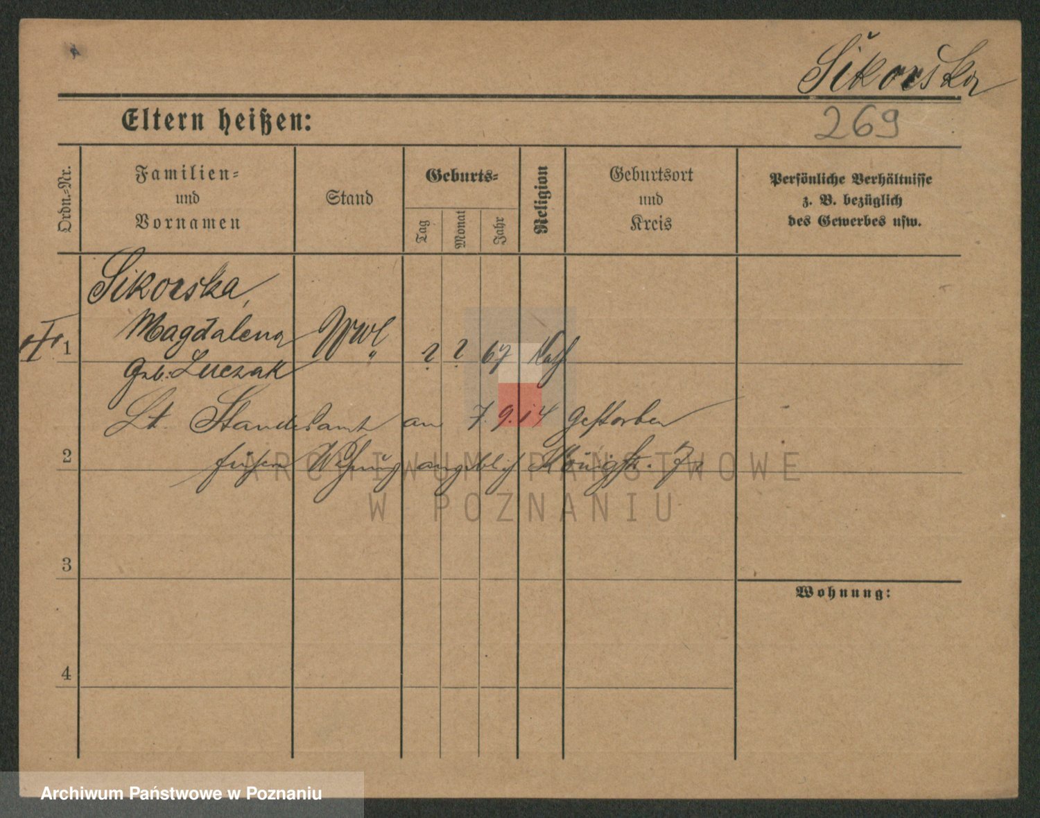 Durch Anklicken eines Namens oder Kartensymbols gelangen Sie zum Vorschau einer Personalkarte. Sie können die Ansicht vergrößern (Symbole am oberen Rand) oder zwischen den Scans wechseln (Pfeile an den Seiten).