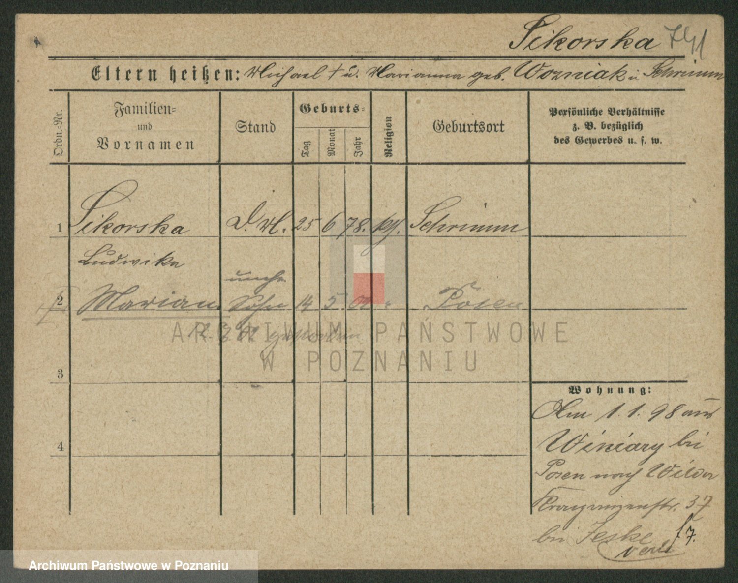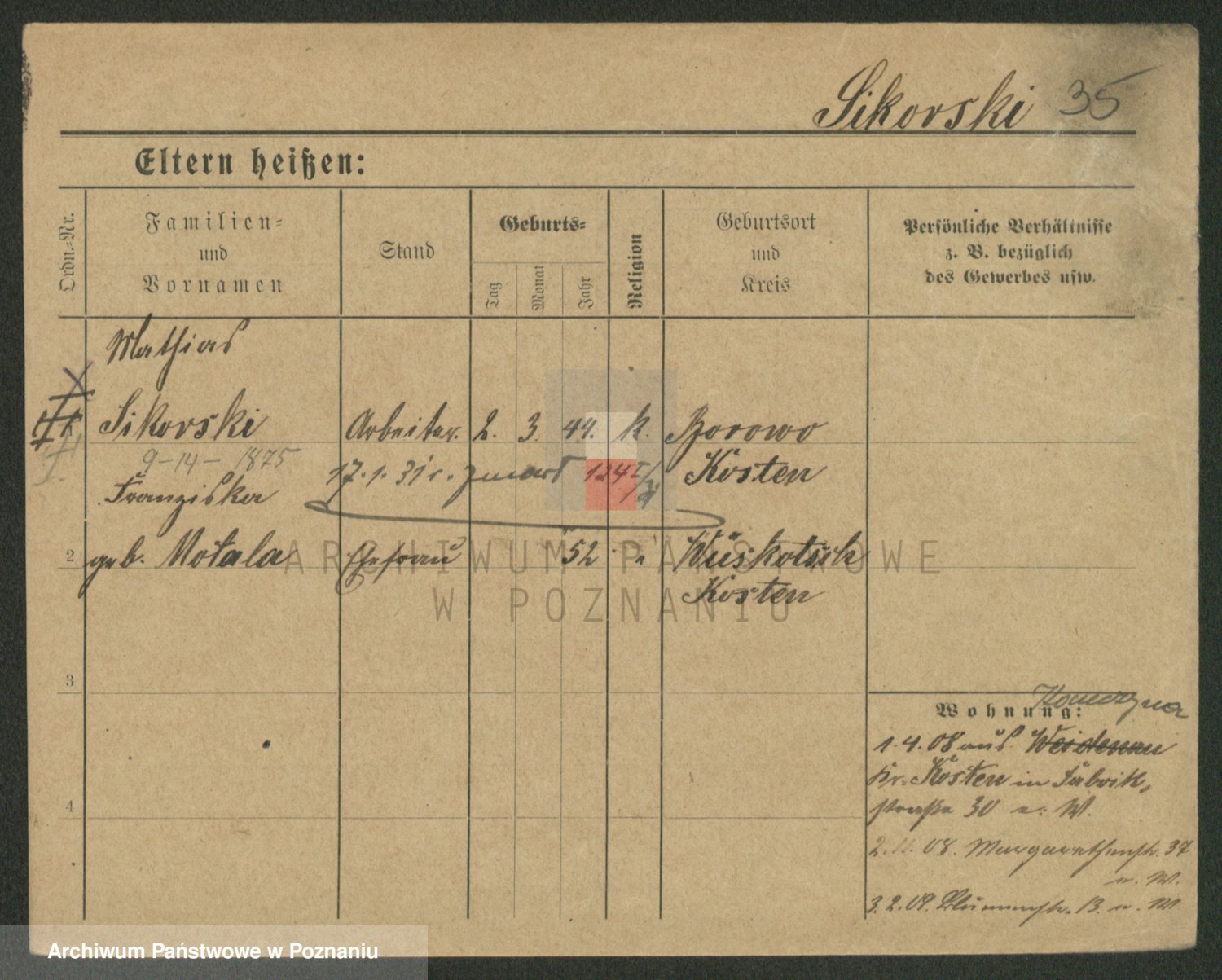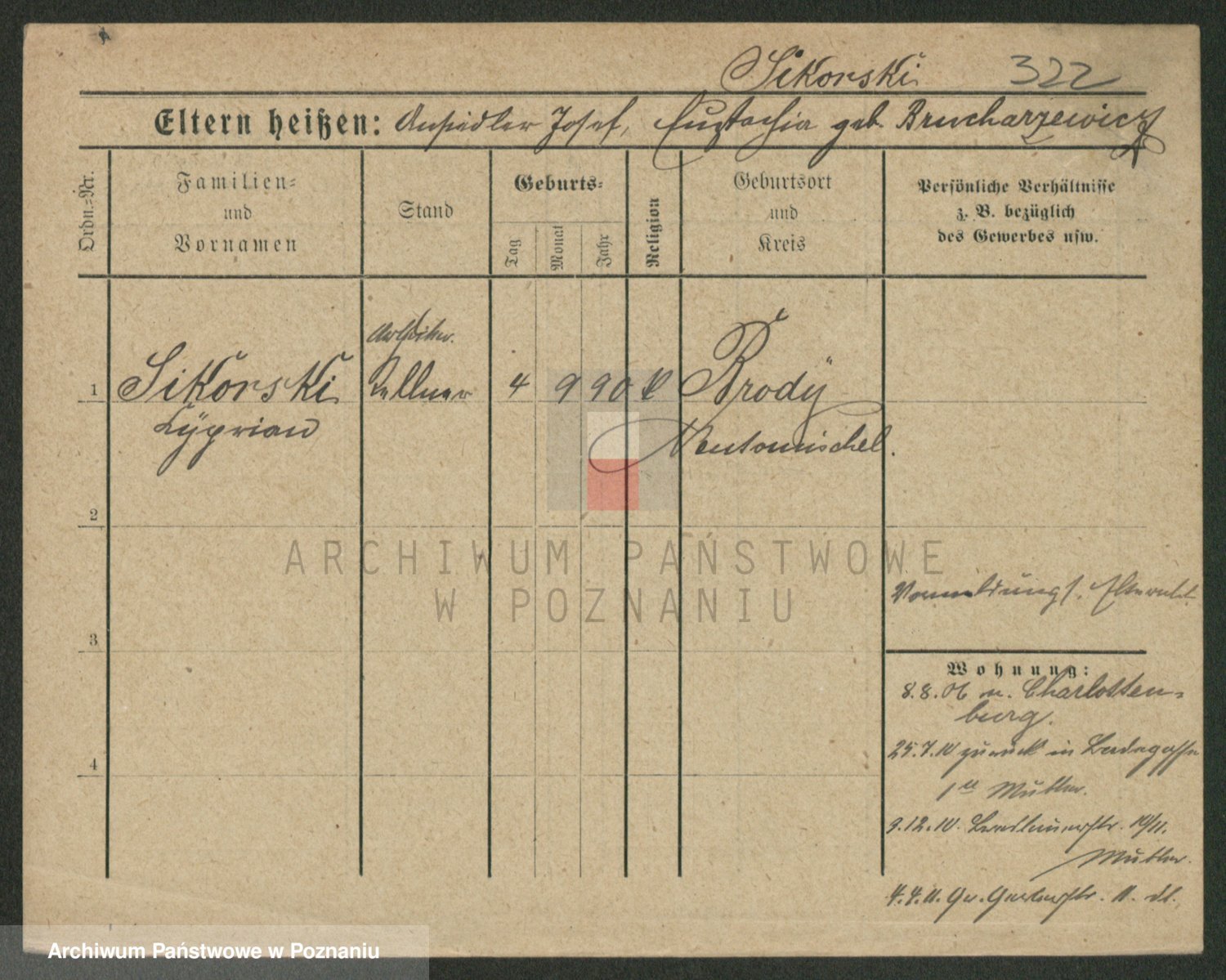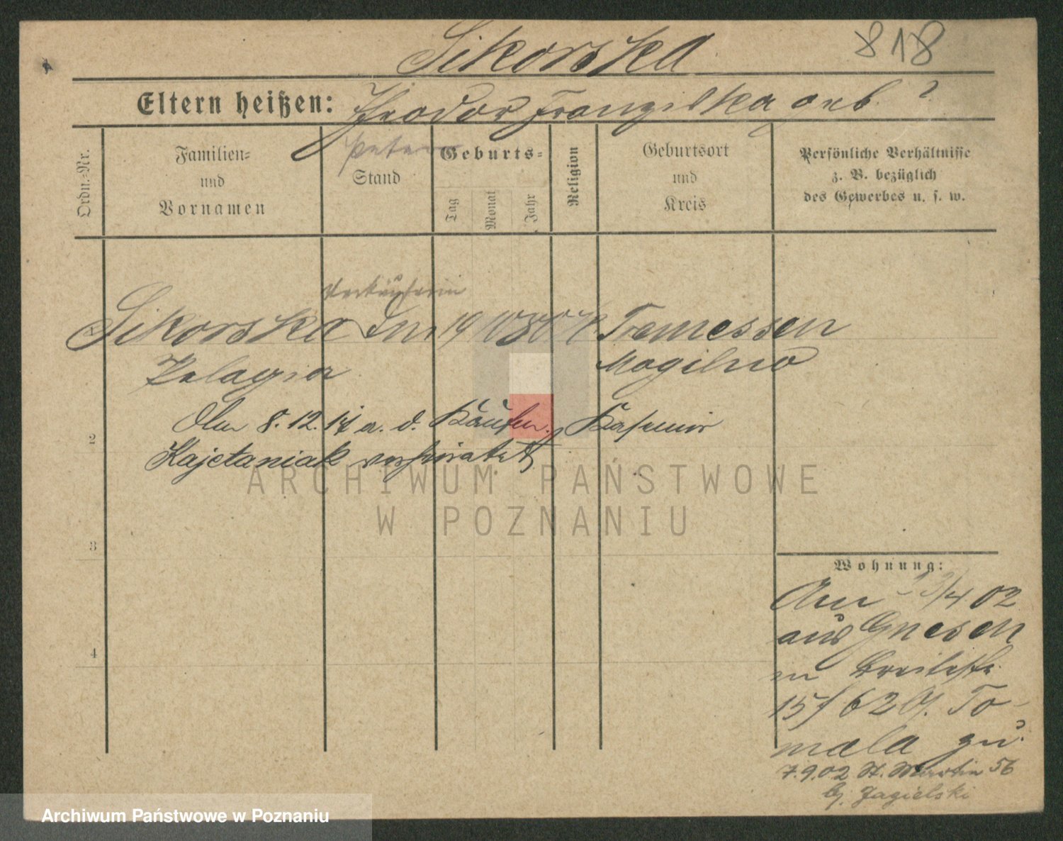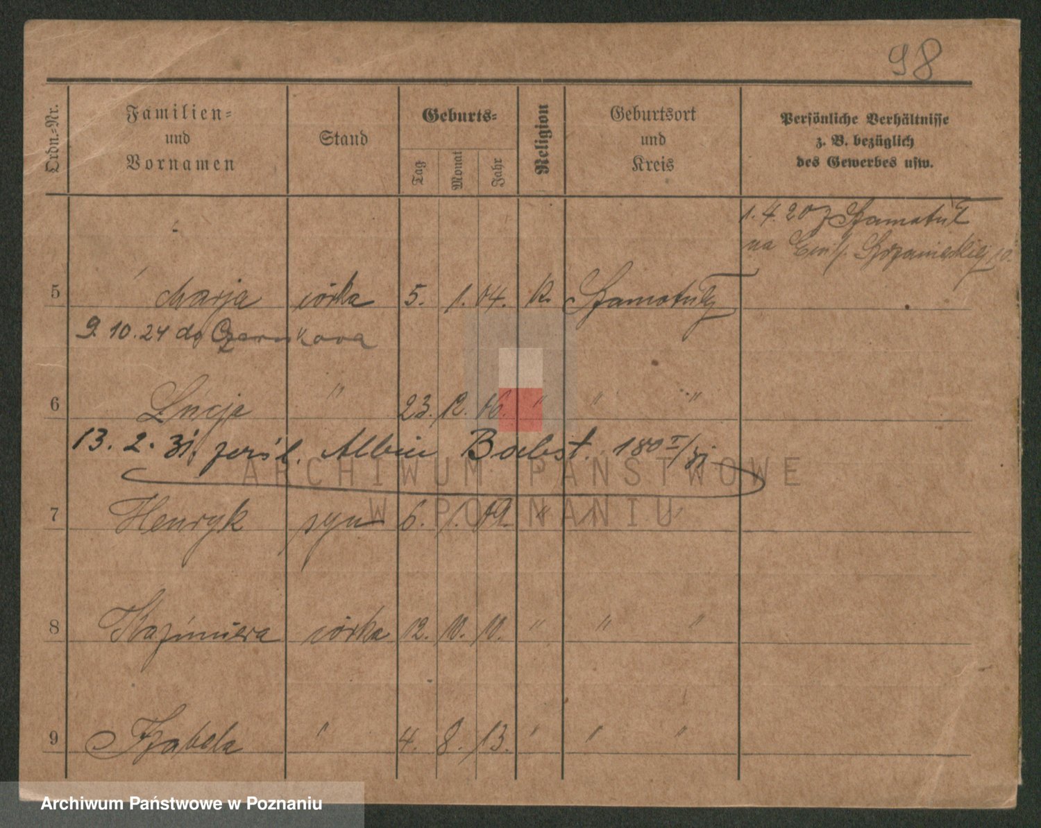 Durch Anklicken eines Namens oder Kartensymbols gelangen Sie zum Vorschau einer Personalkarte. Sie können die Ansicht vergrößern (Symbole am oberen Rand) oder zwischen den Scans wechseln (Pfeile an den Seiten).