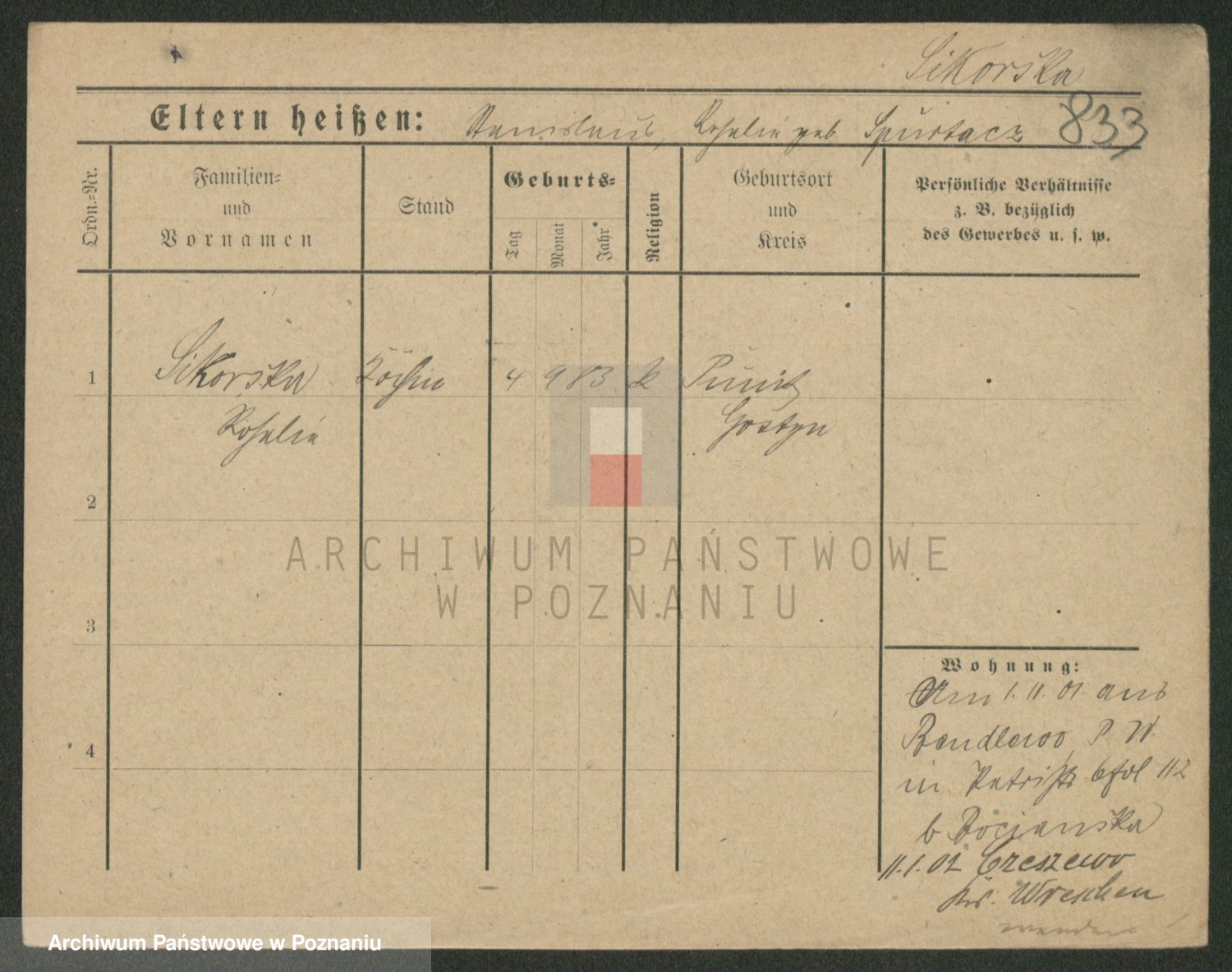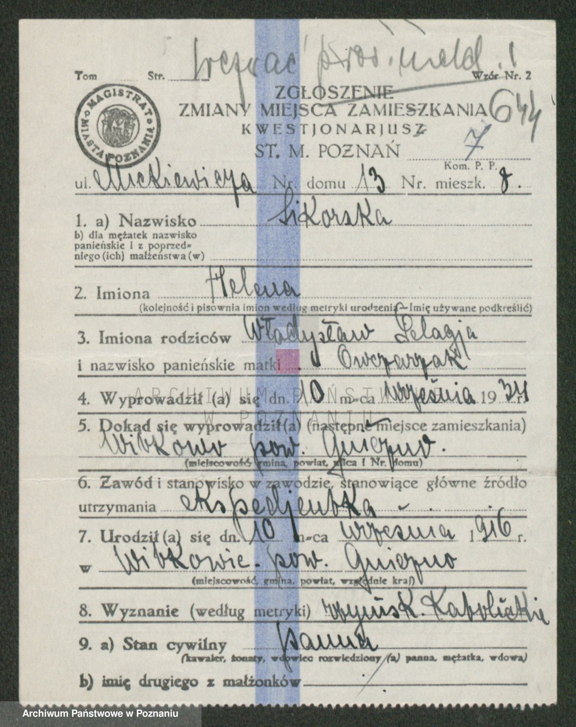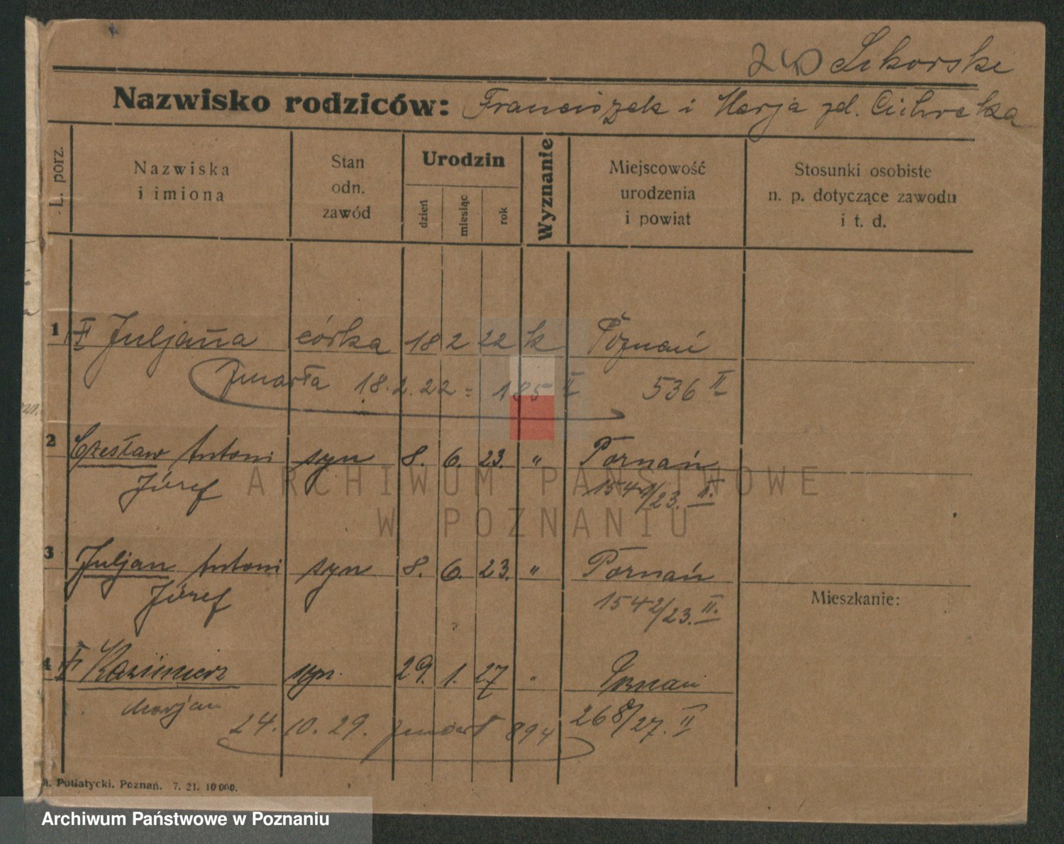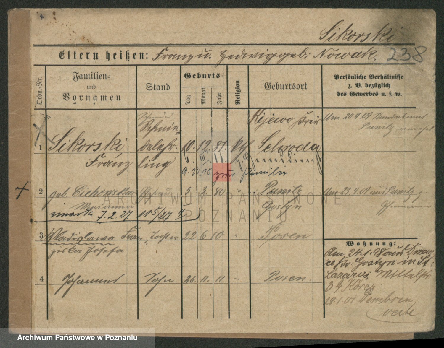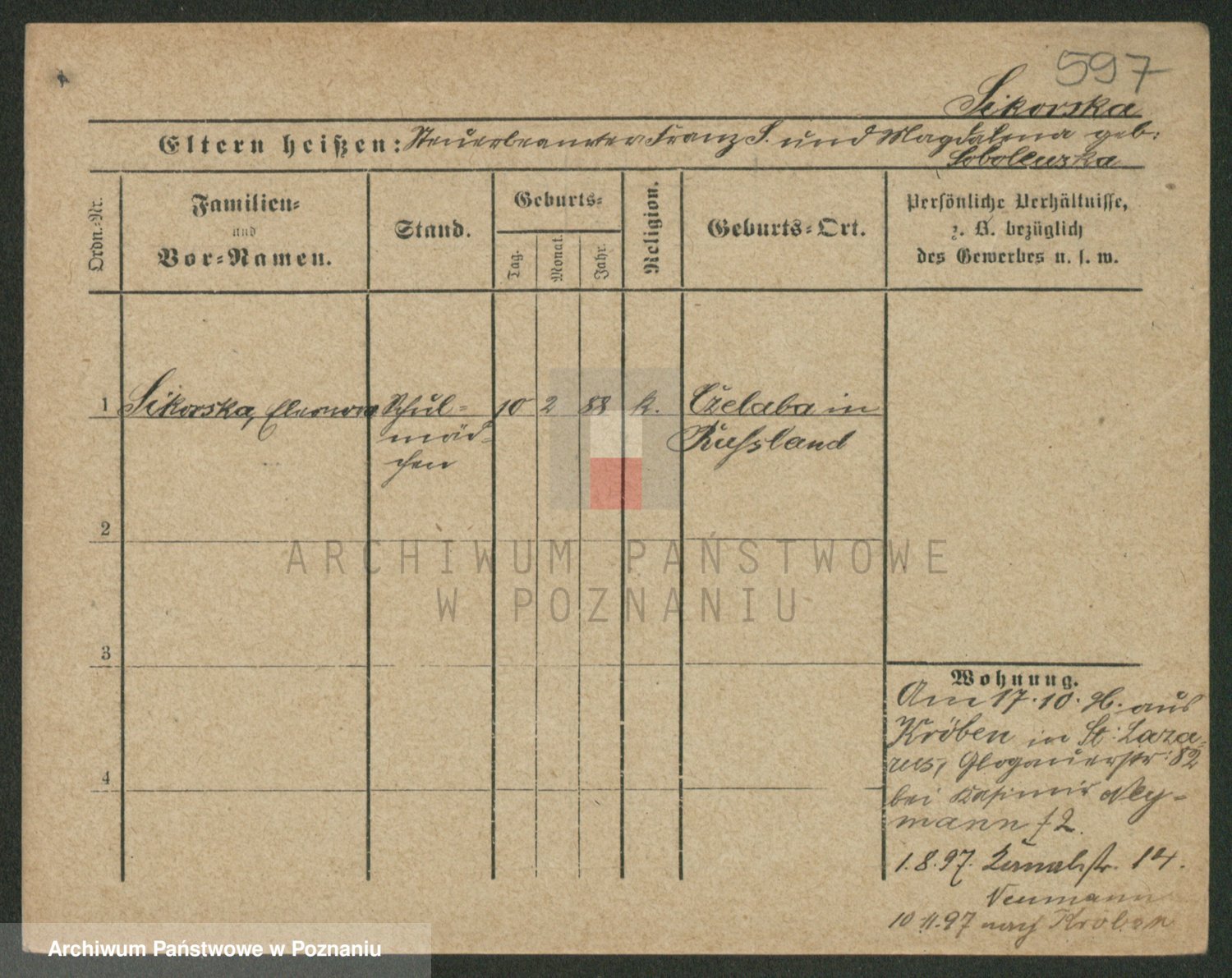 Durch Anklicken eines Namens oder Kartensymbols gelangen Sie zum Vorschau einer Personalkarte. Sie können die Ansicht vergrößern (Symbole am oberen Rand) oder zwischen den Scans wechseln (Pfeile an den Seiten).
