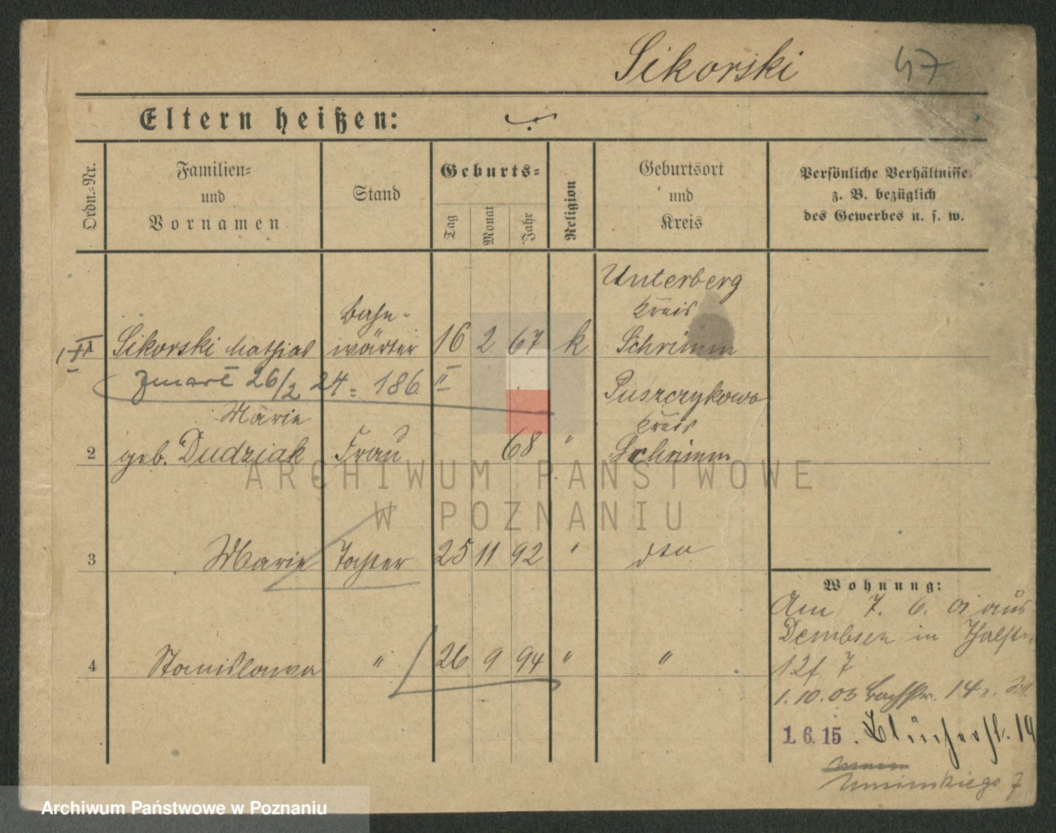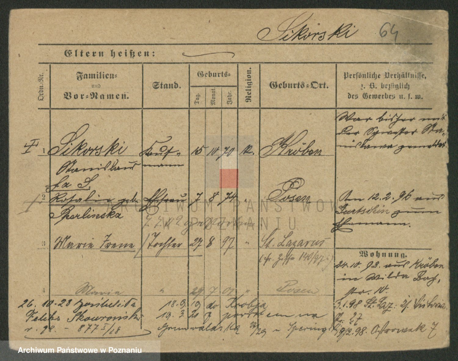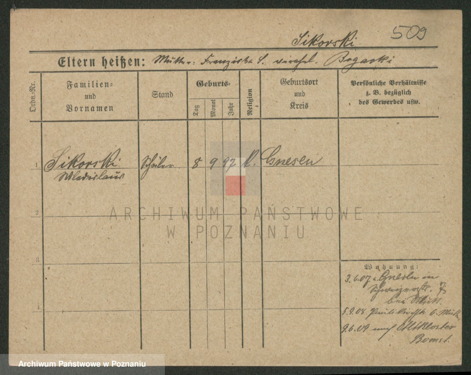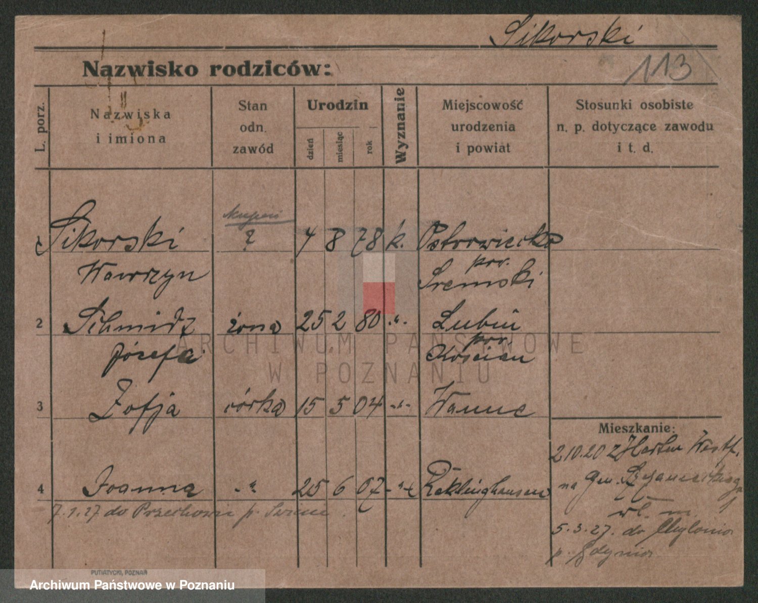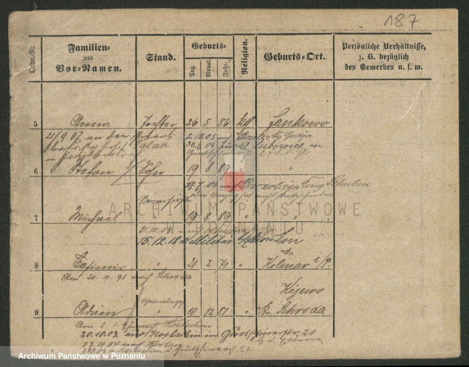 Durch Anklicken eines Namens oder Kartensymbols gelangen Sie zum Vorschau einer Personalkarte. Sie können die Ansicht vergrößern (Symbole am oberen Rand) oder zwischen den Scans wechseln (Pfeile an den Seiten).