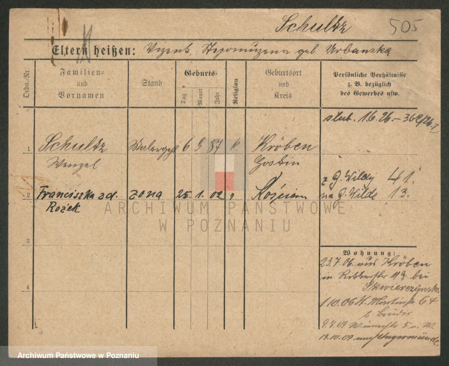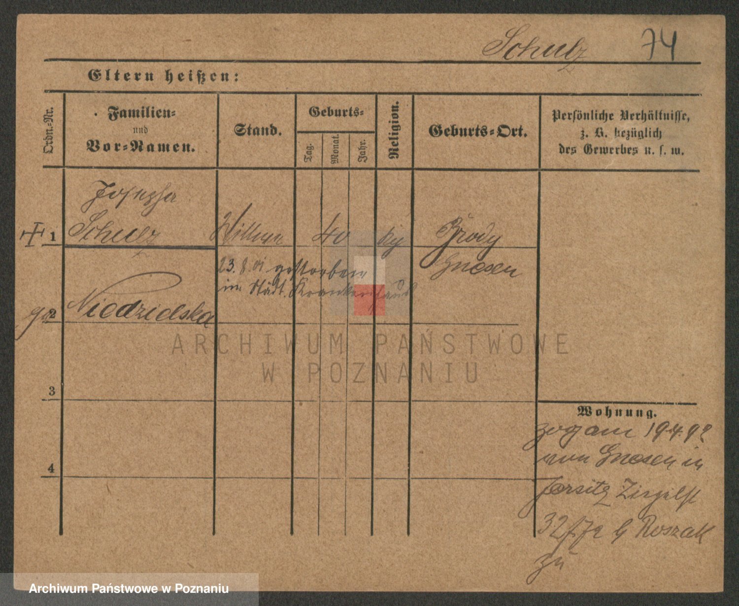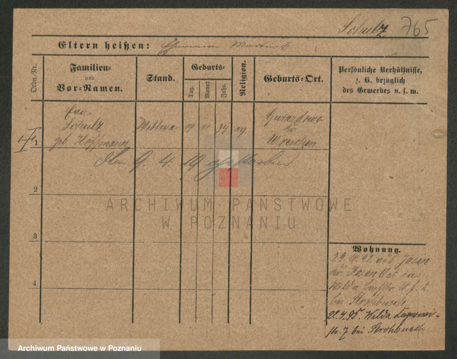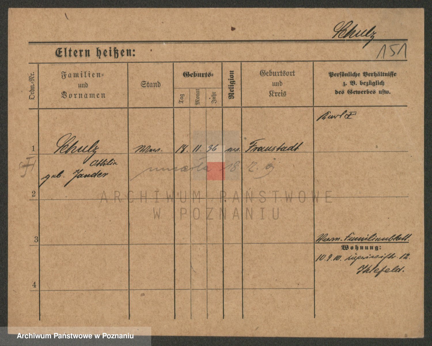 Schulz z d. Stalzenwald I voto Jentsch, Wanda