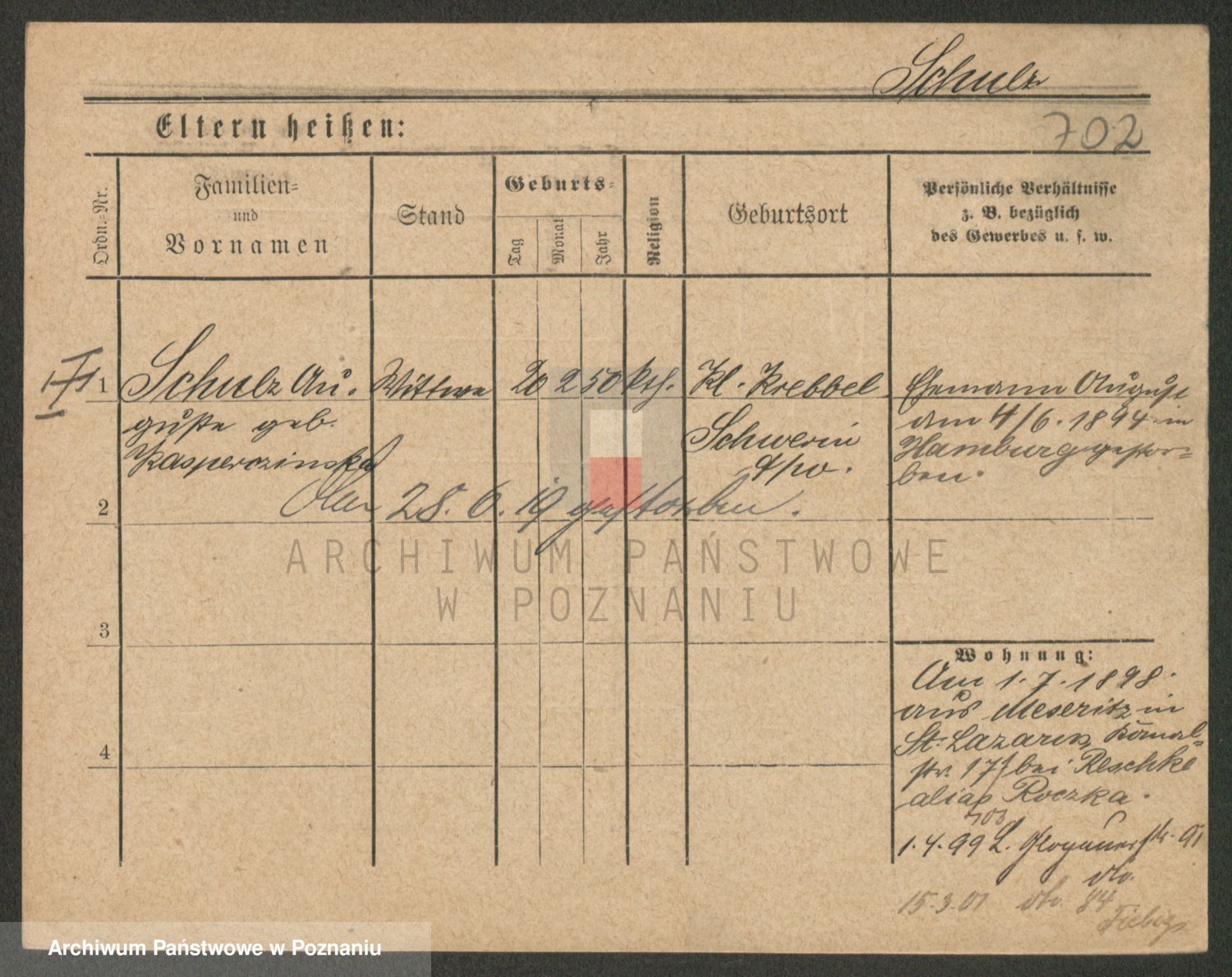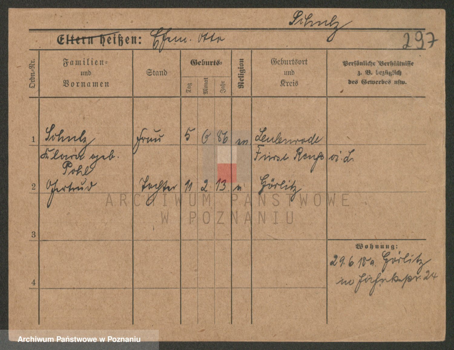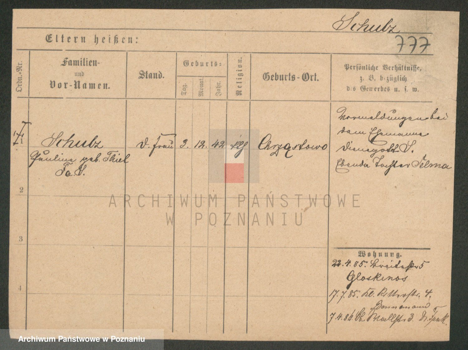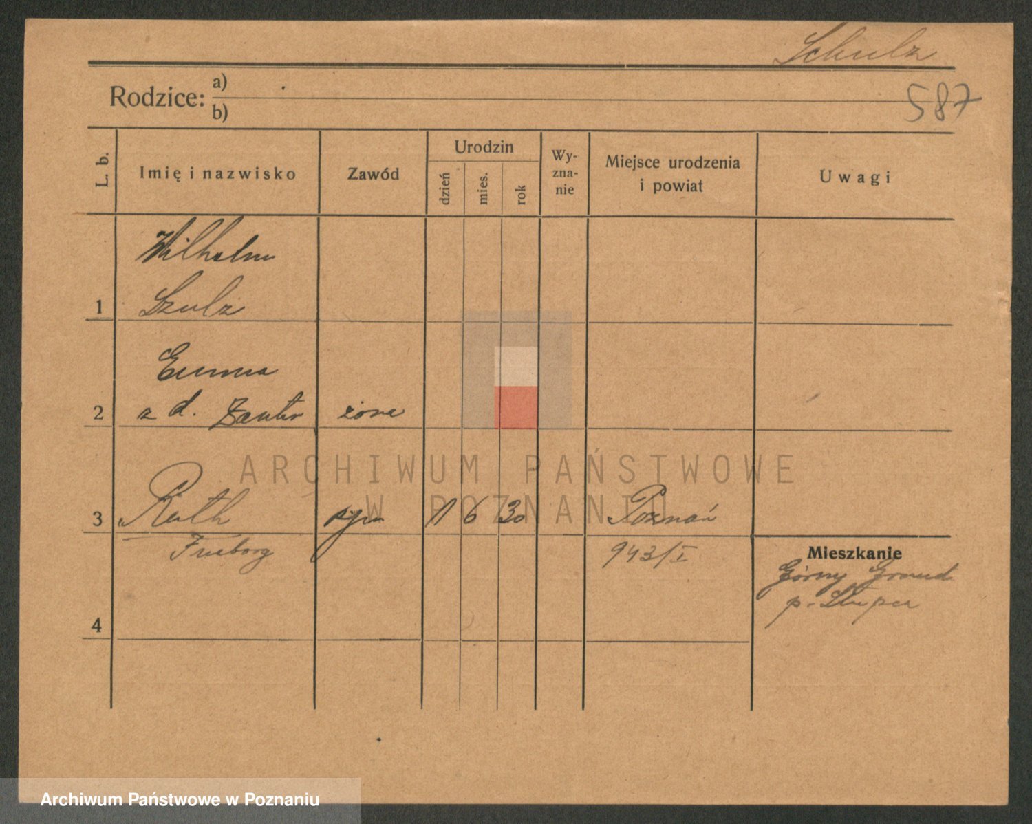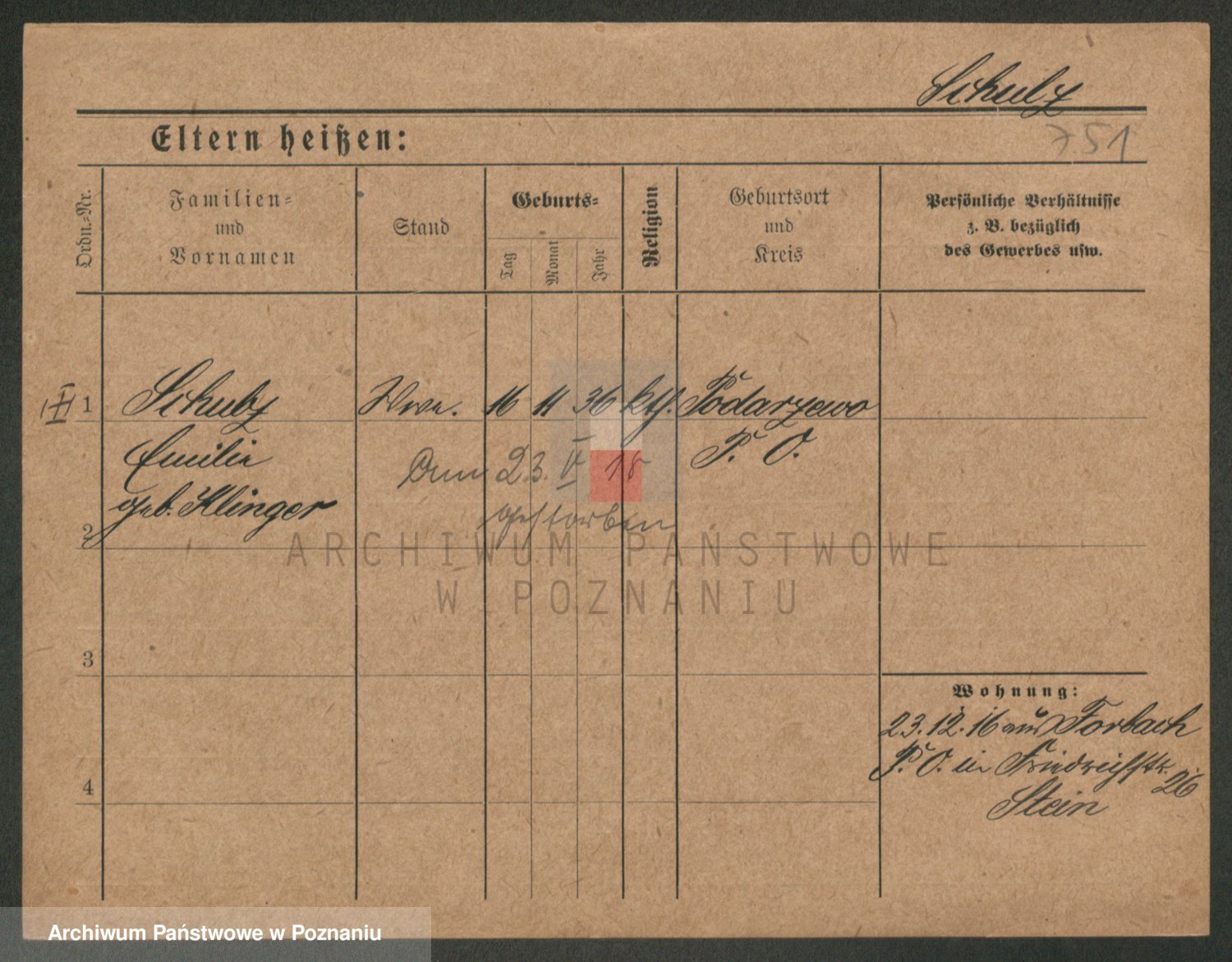 Schulz z d. Stalzenwald I voto Jentsch, Wanda
