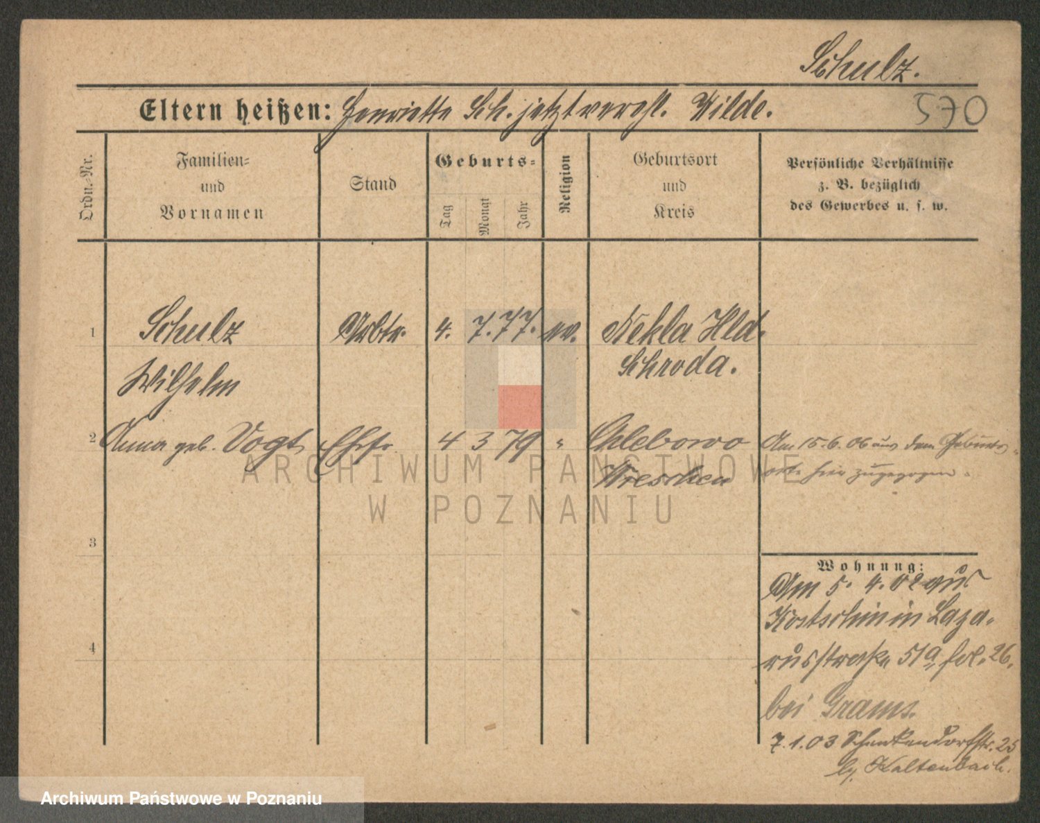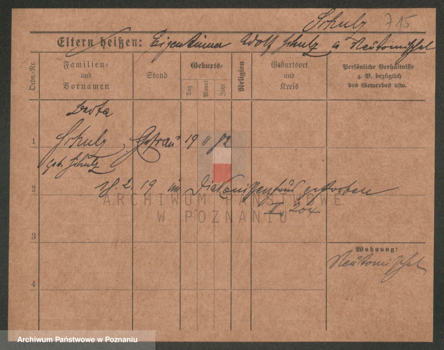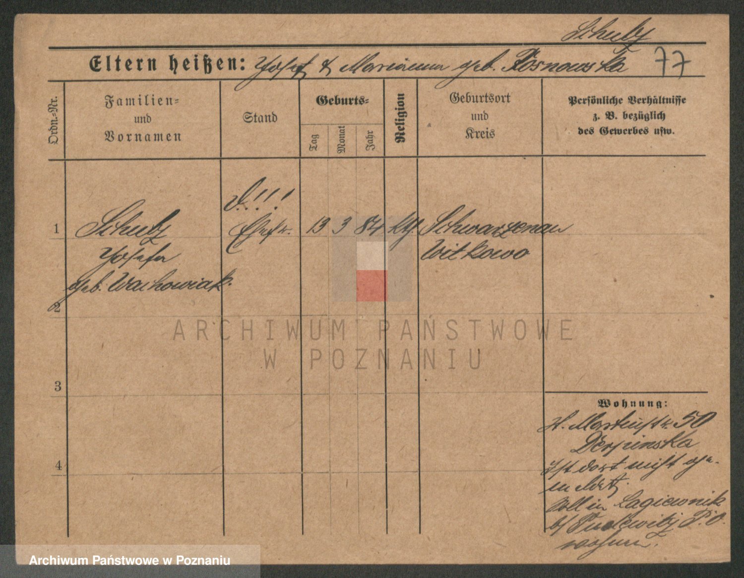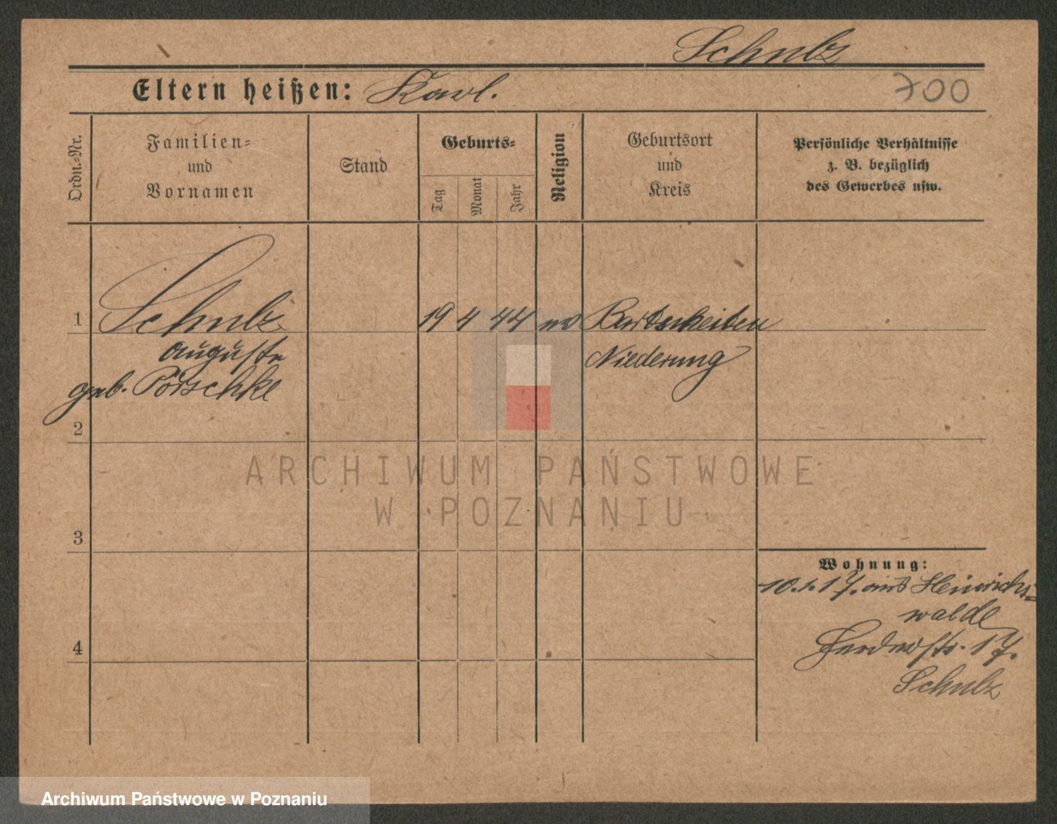 Schulz z d. Stalzenwald I voto Jentsch, Wanda