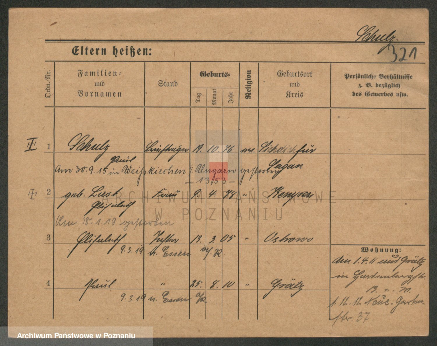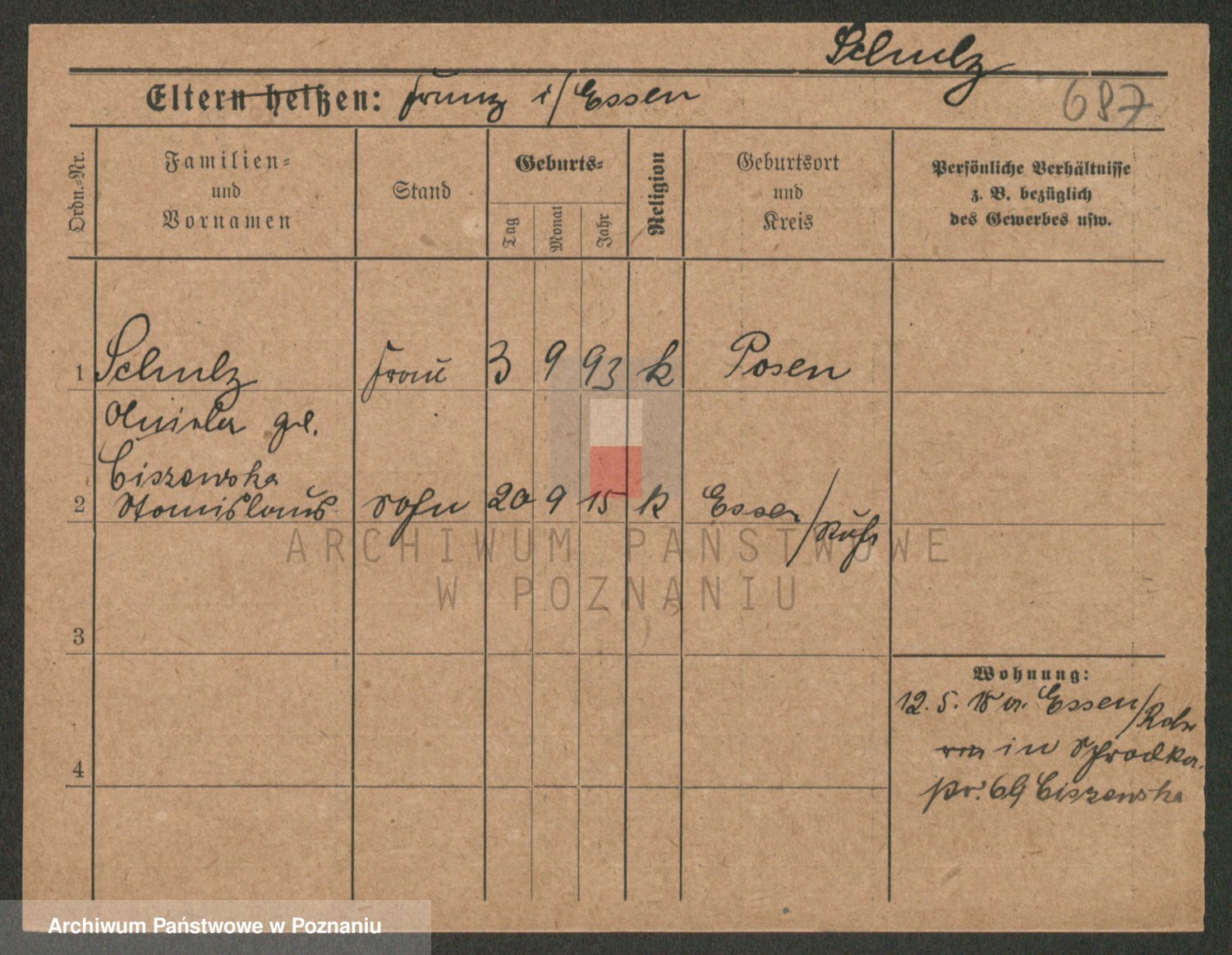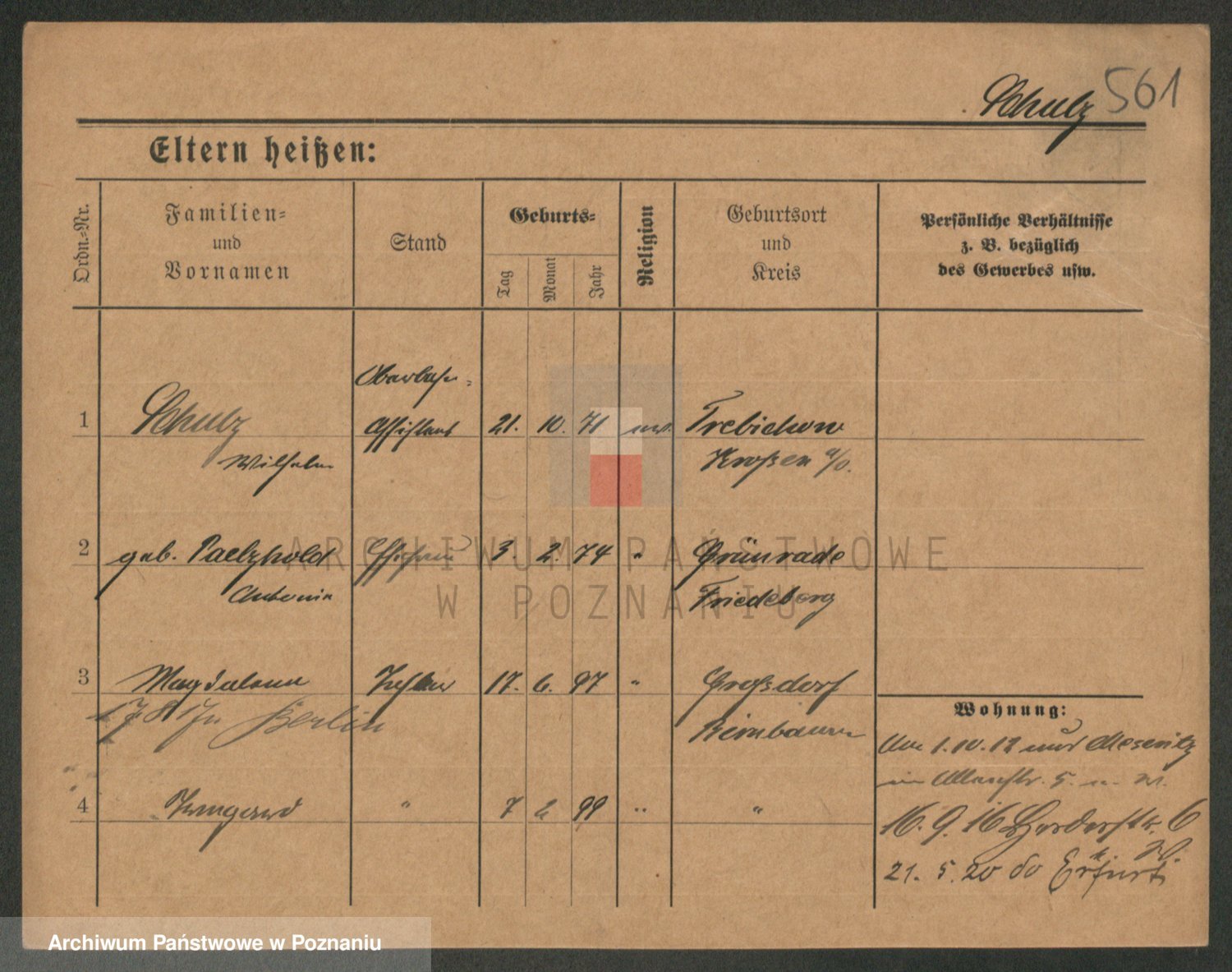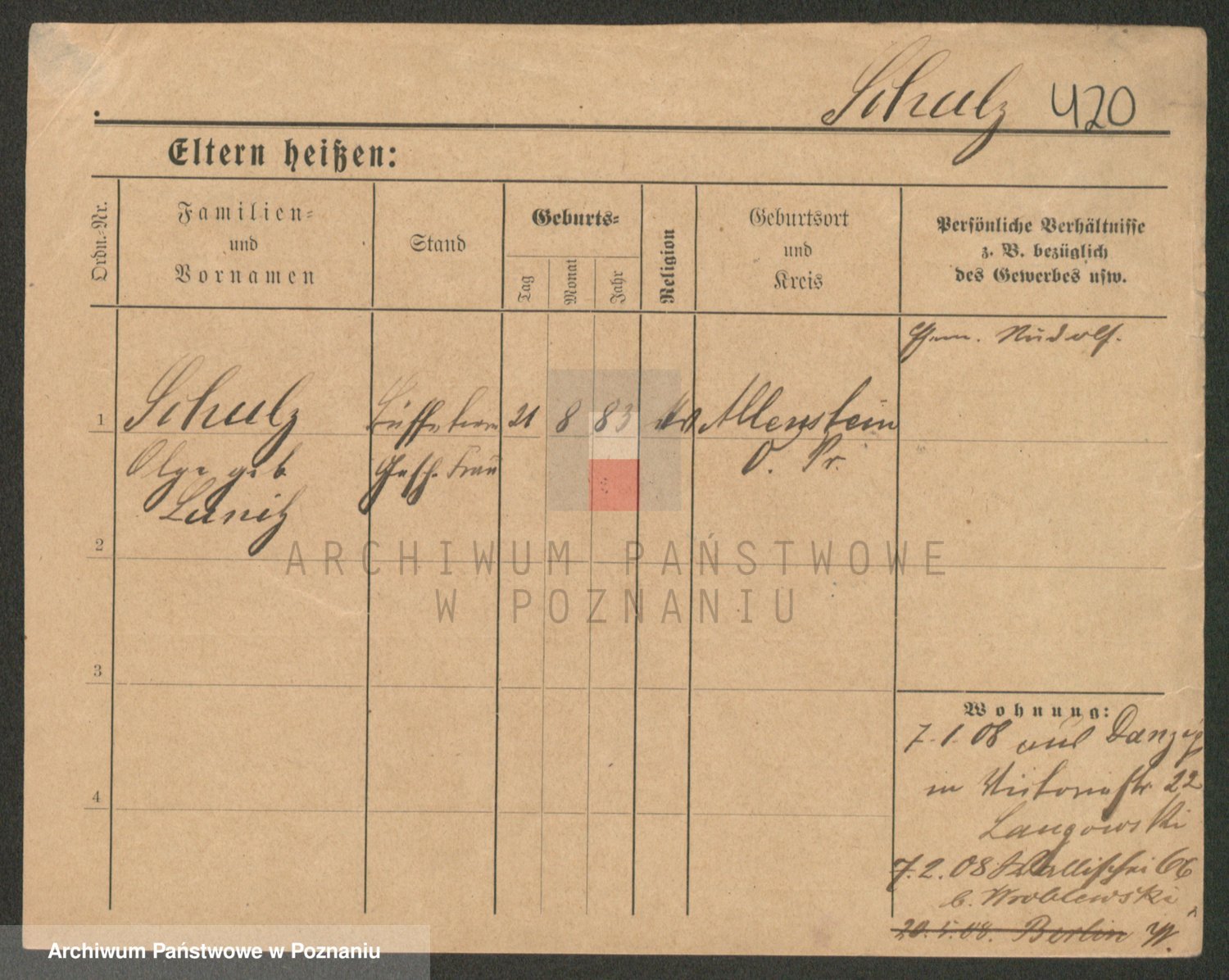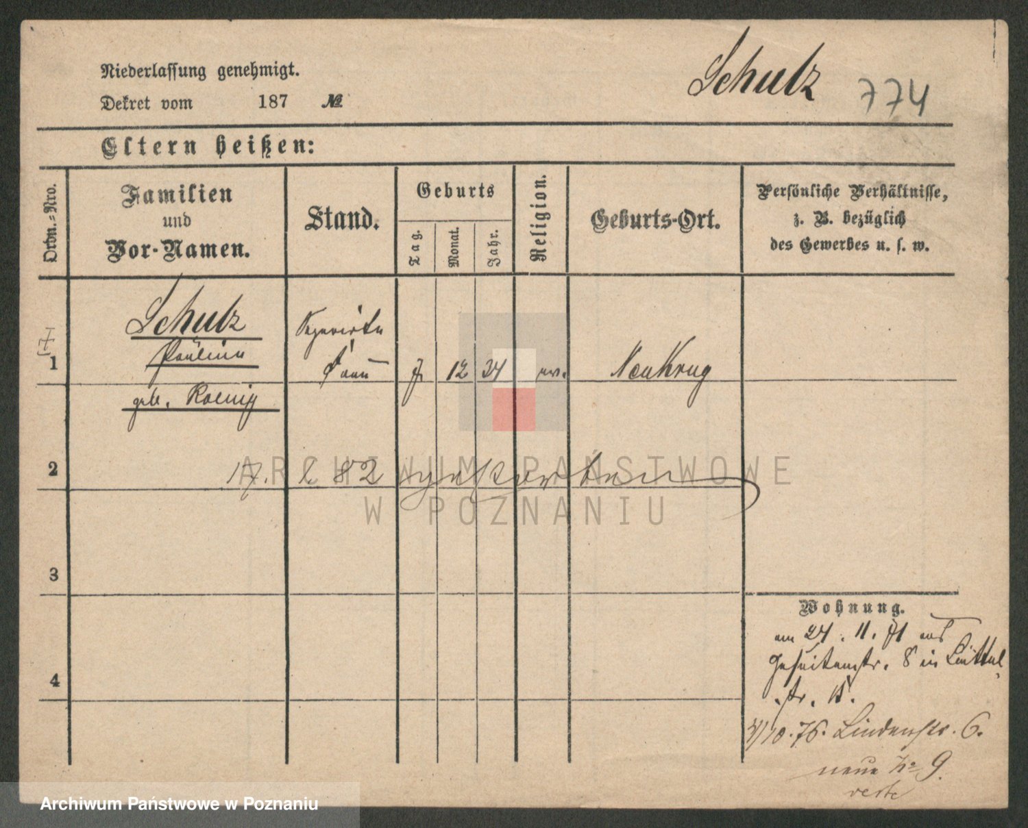 Schulz z d. Stalzenwald I voto Jentsch, Wanda