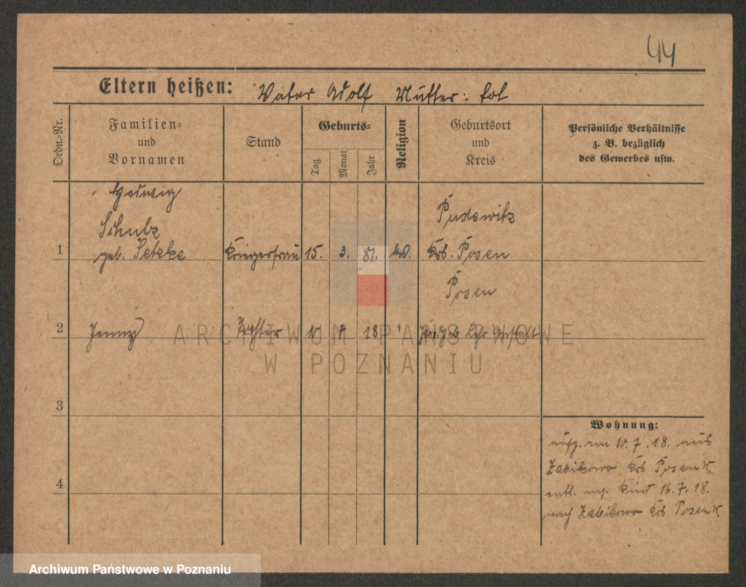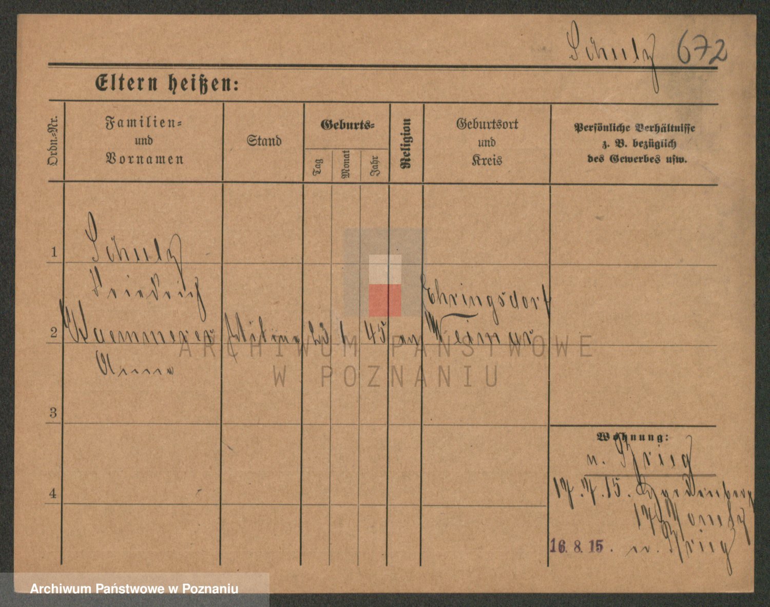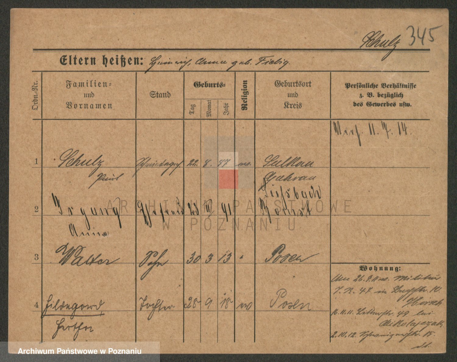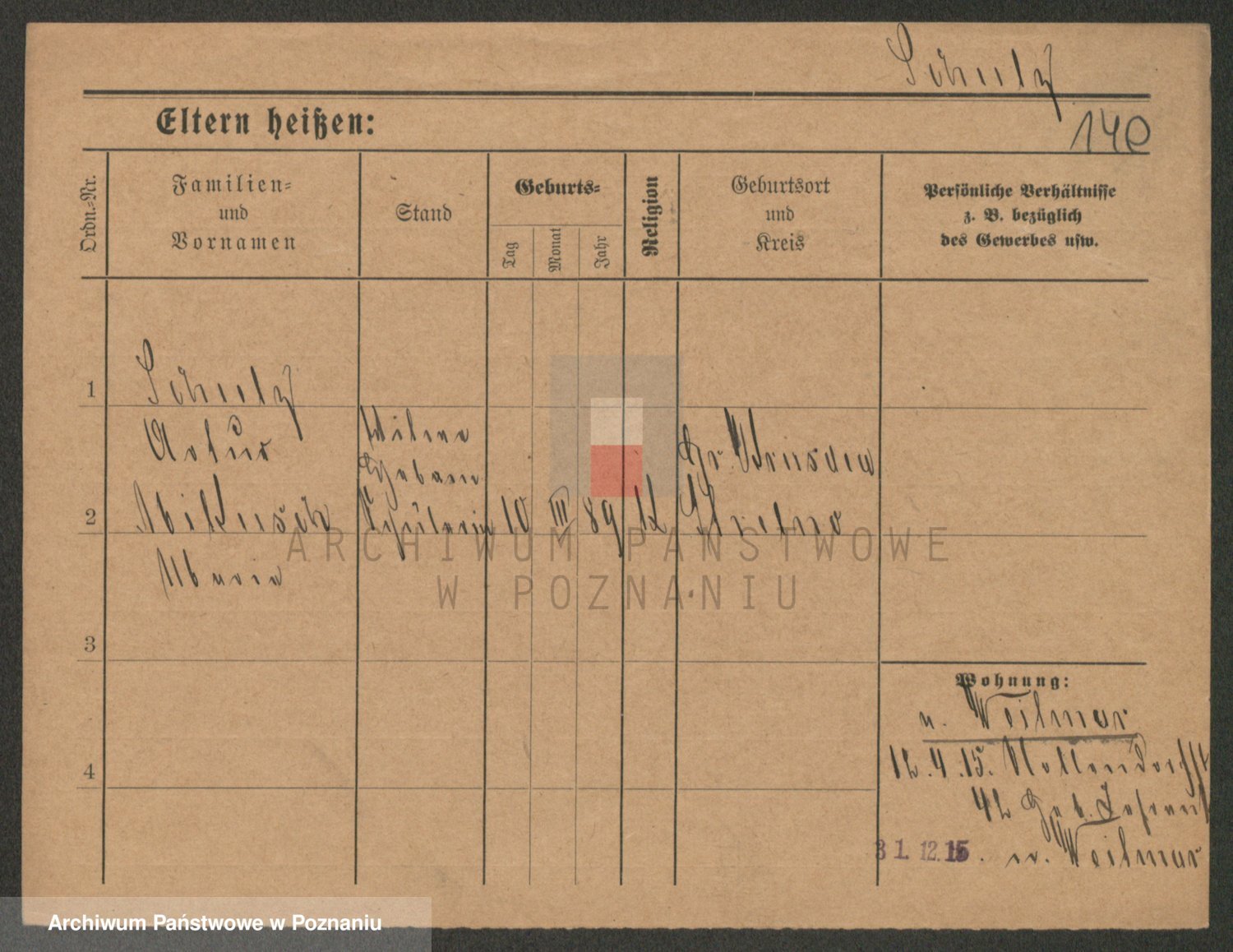 Schulz z d. Stalzenwald I voto Jentsch, Wanda