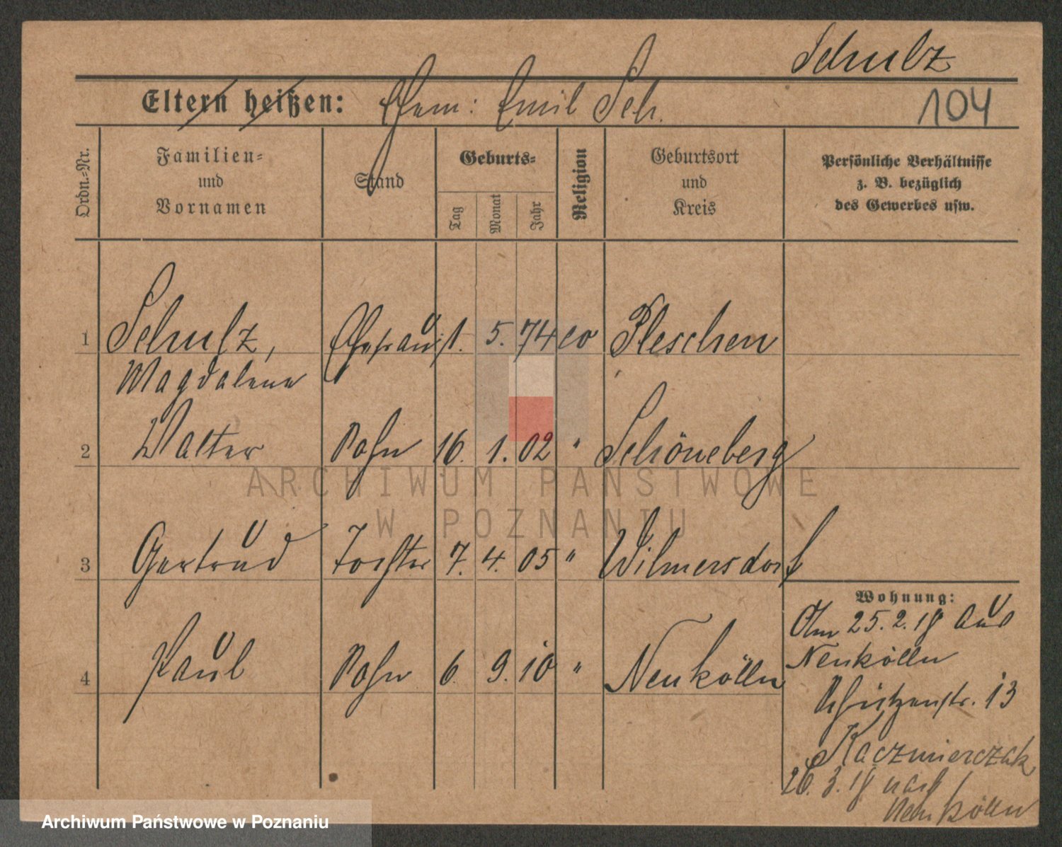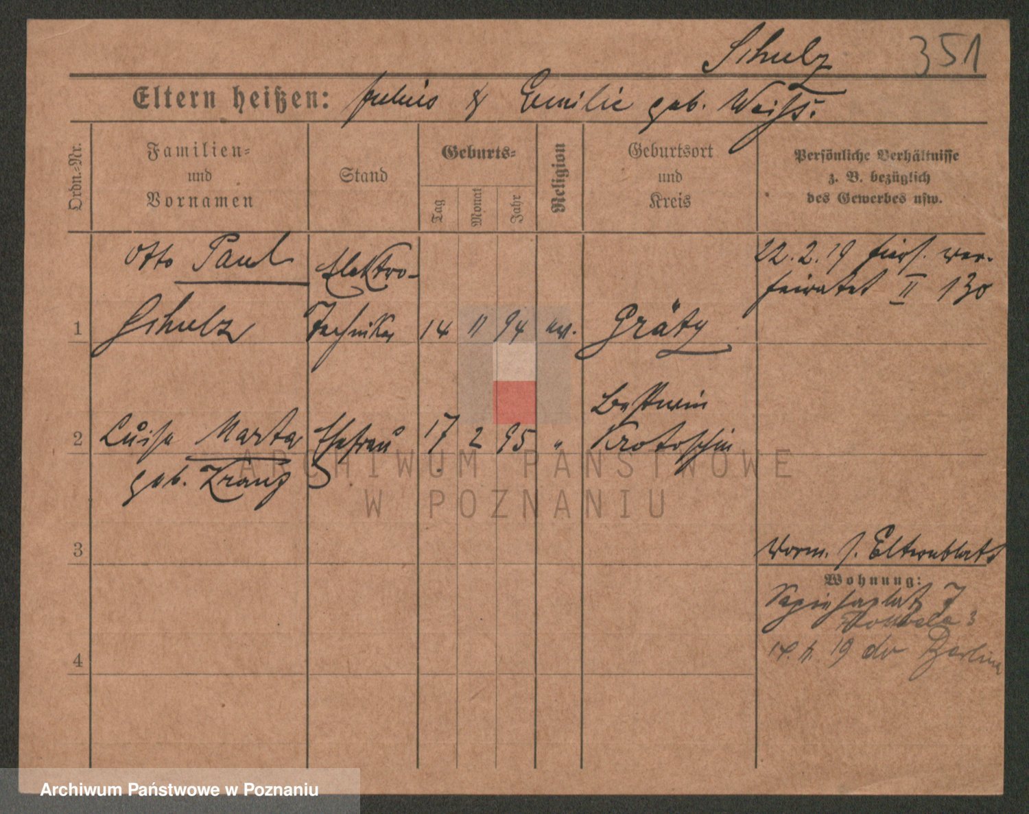 Schulz z d. Piatek, Wilhelmine