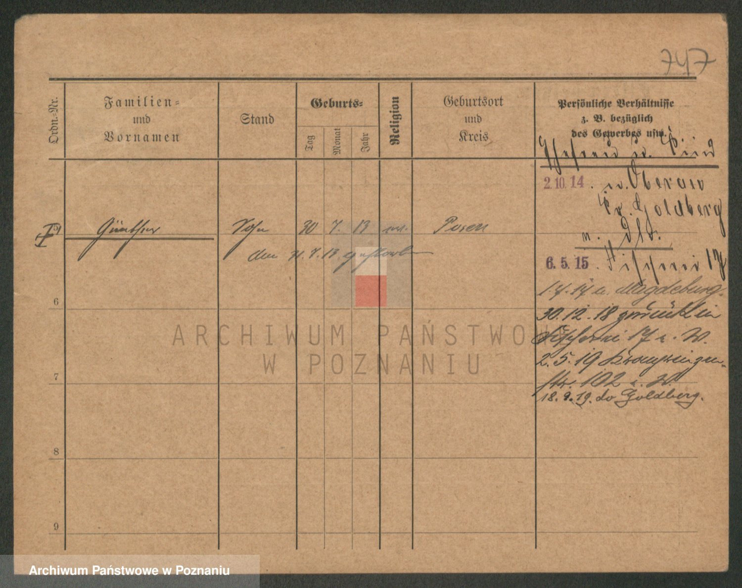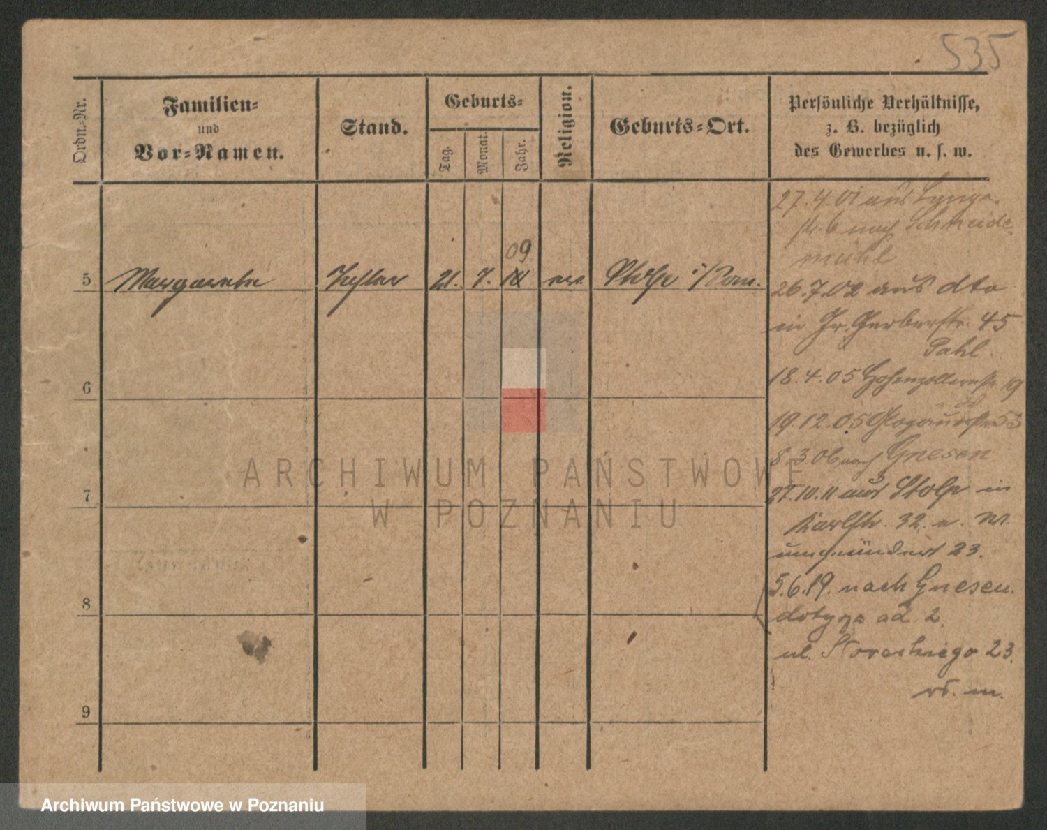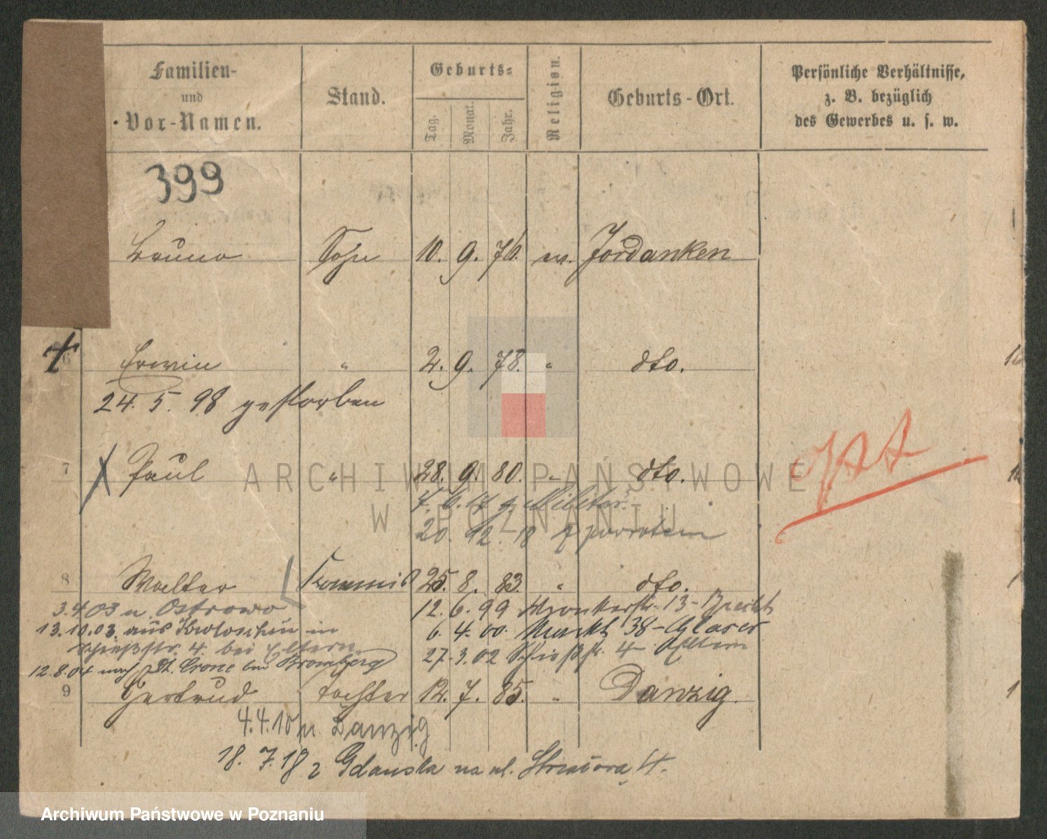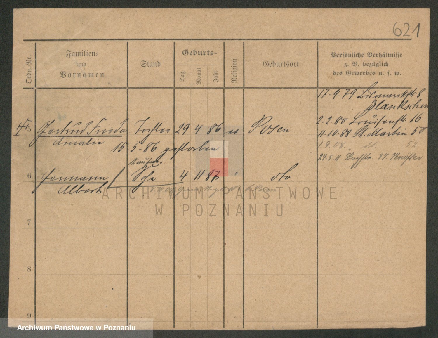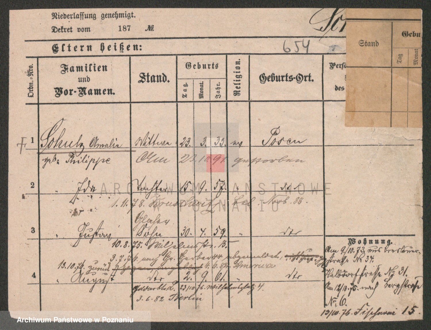 Durch Anklicken eines Namens oder Kartensymbols gelangen Sie zum Vorschau einer Personalkarte. Sie können die Ansicht vergrößern (Symbole am oberen Rand) oder zwischen den Scans wechseln (Pfeile an den Seiten).
