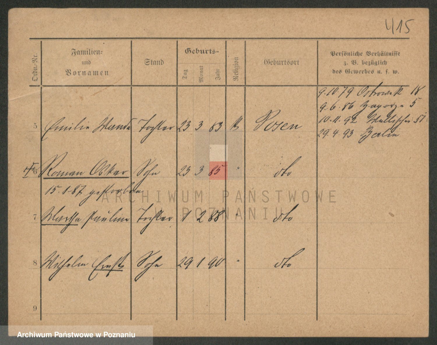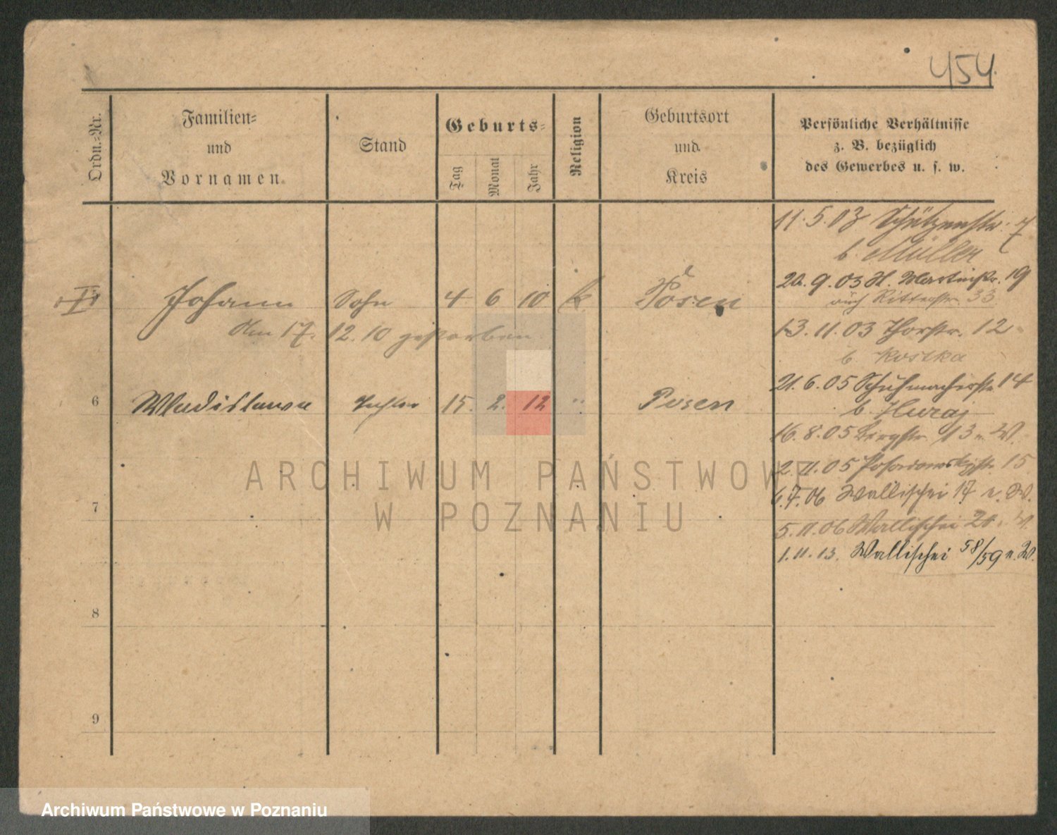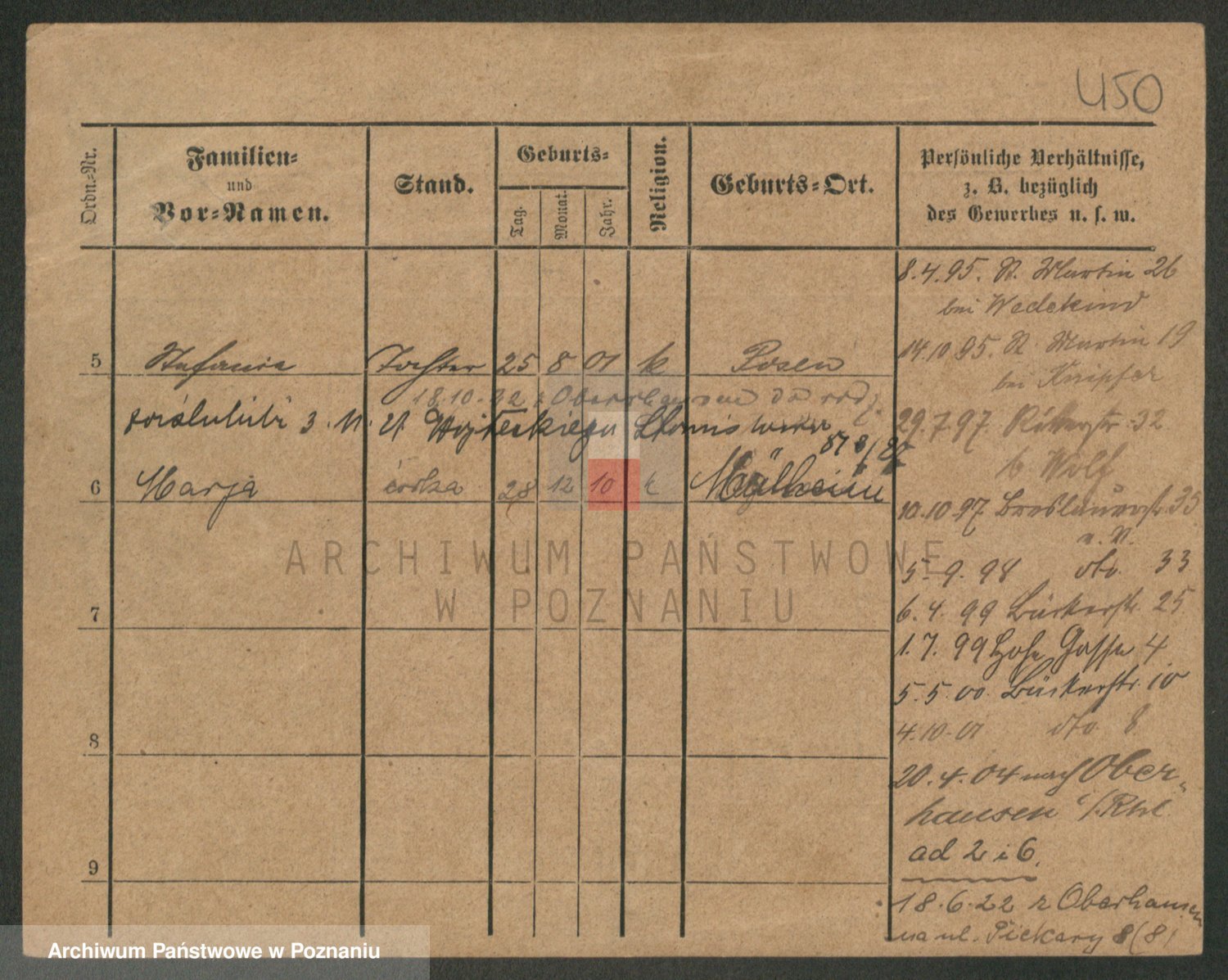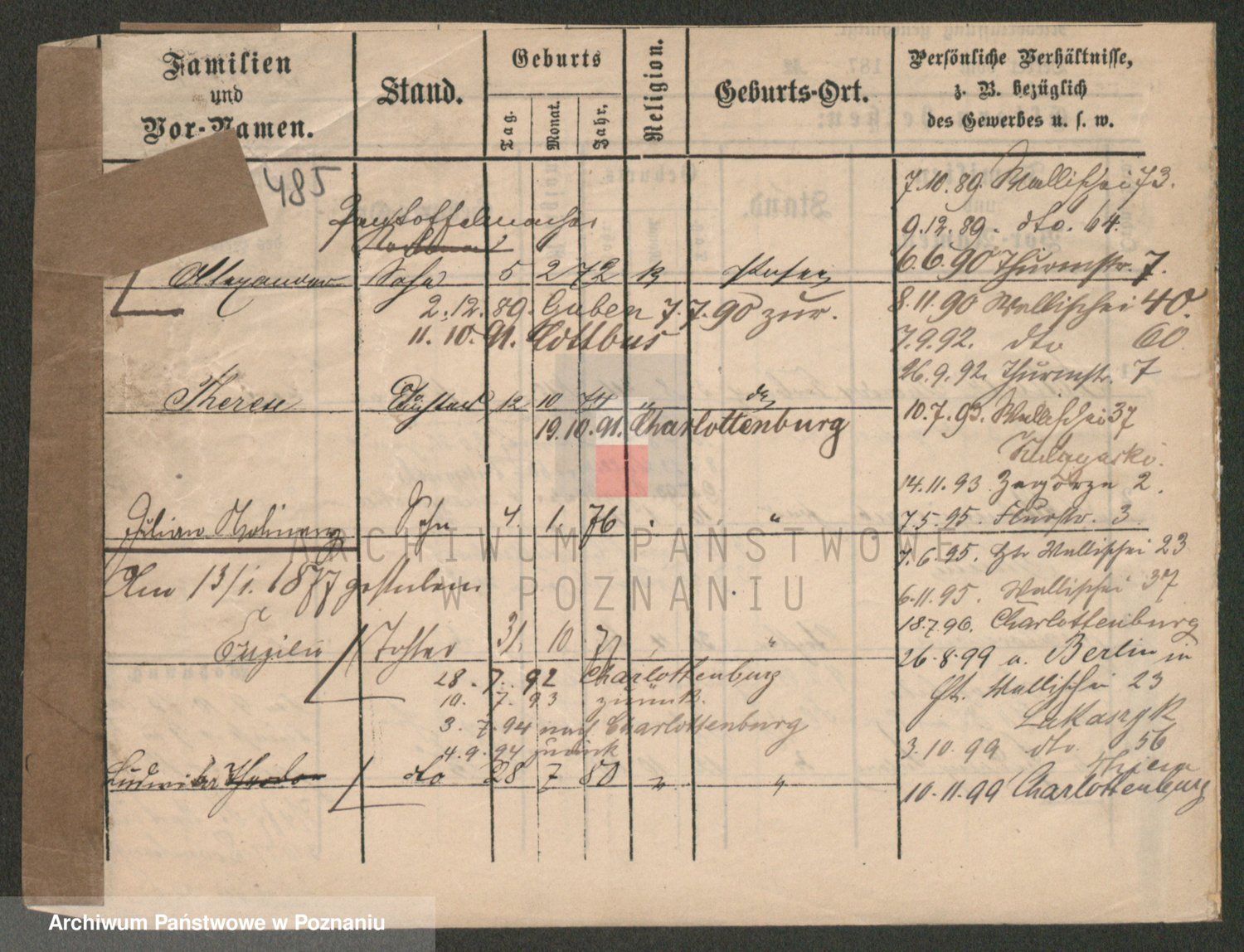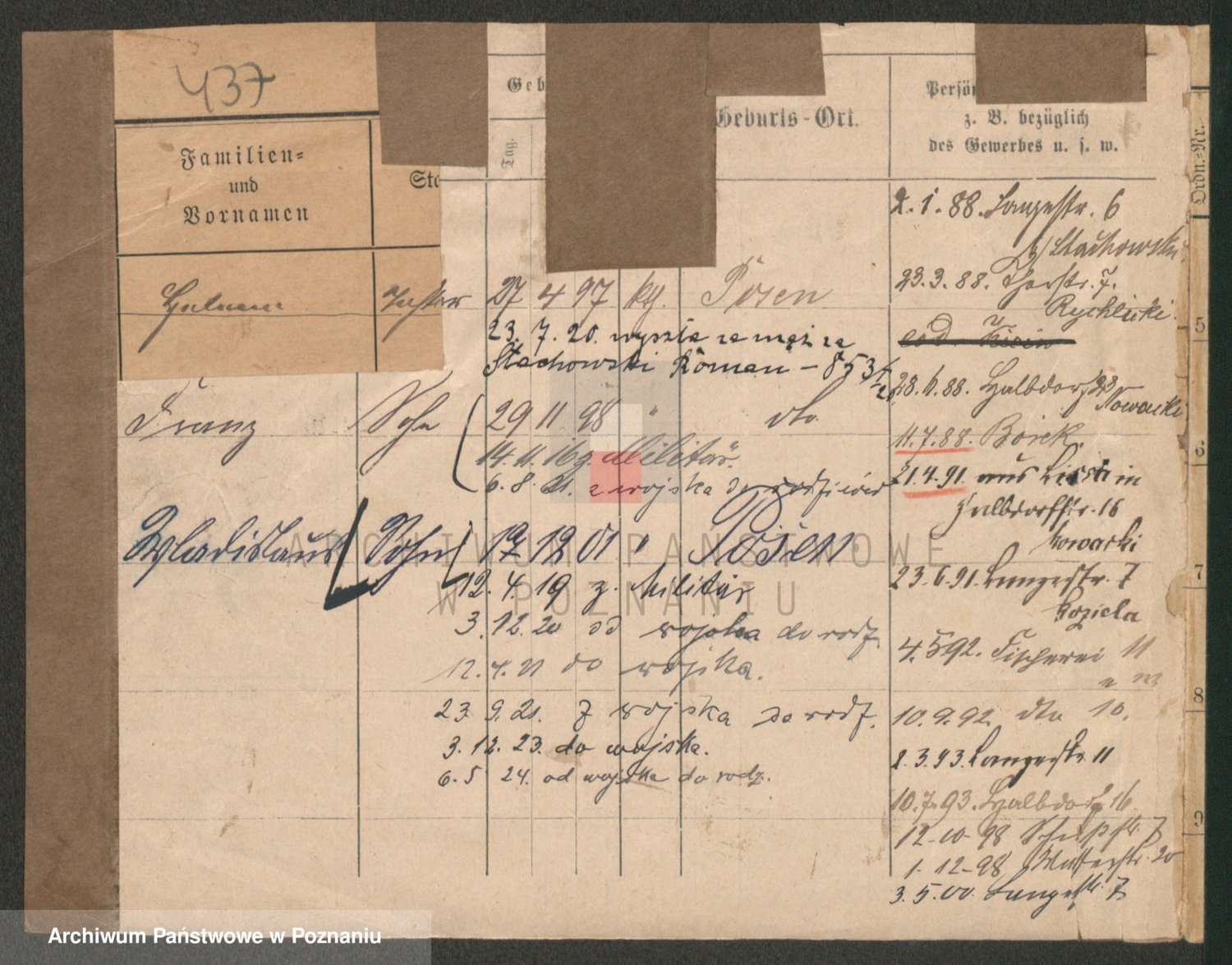 Durch Anklicken eines Namens oder Kartensymbols gelangen Sie zum Vorschau einer Personalkarte. Sie können die Ansicht vergrößern (Symbole am oberen Rand) oder zwischen den Scans wechseln (Pfeile an den Seiten).