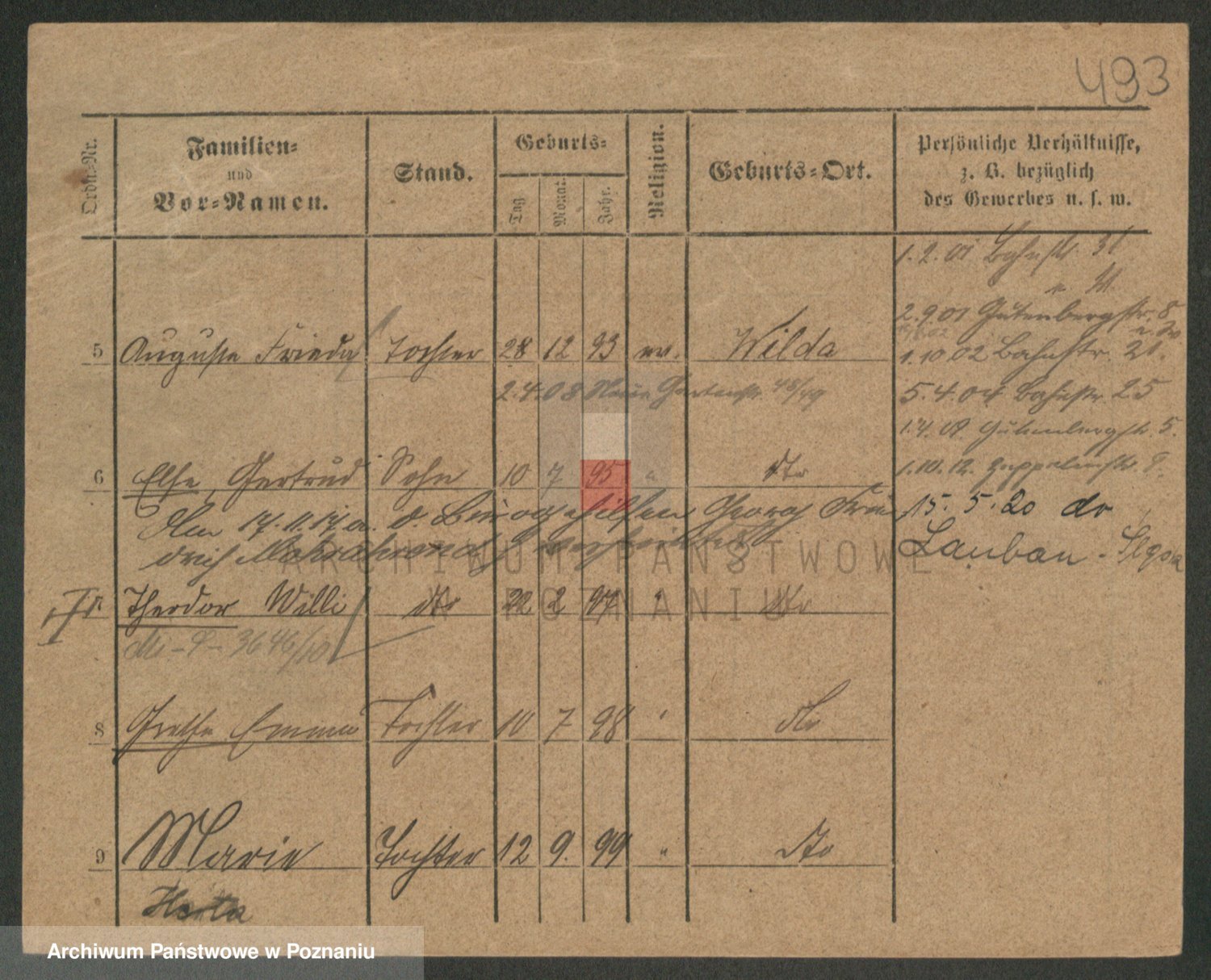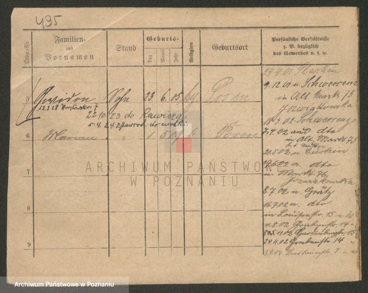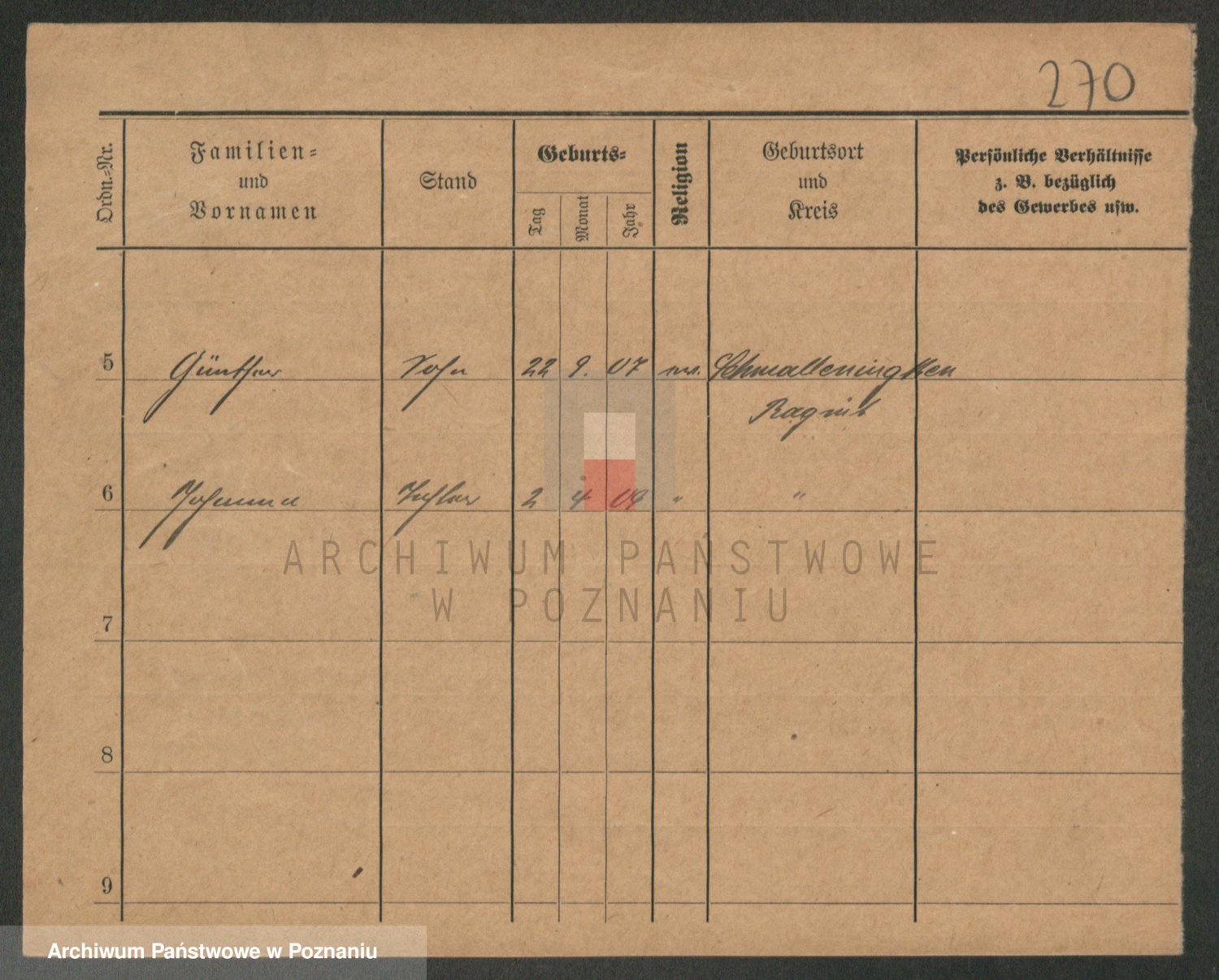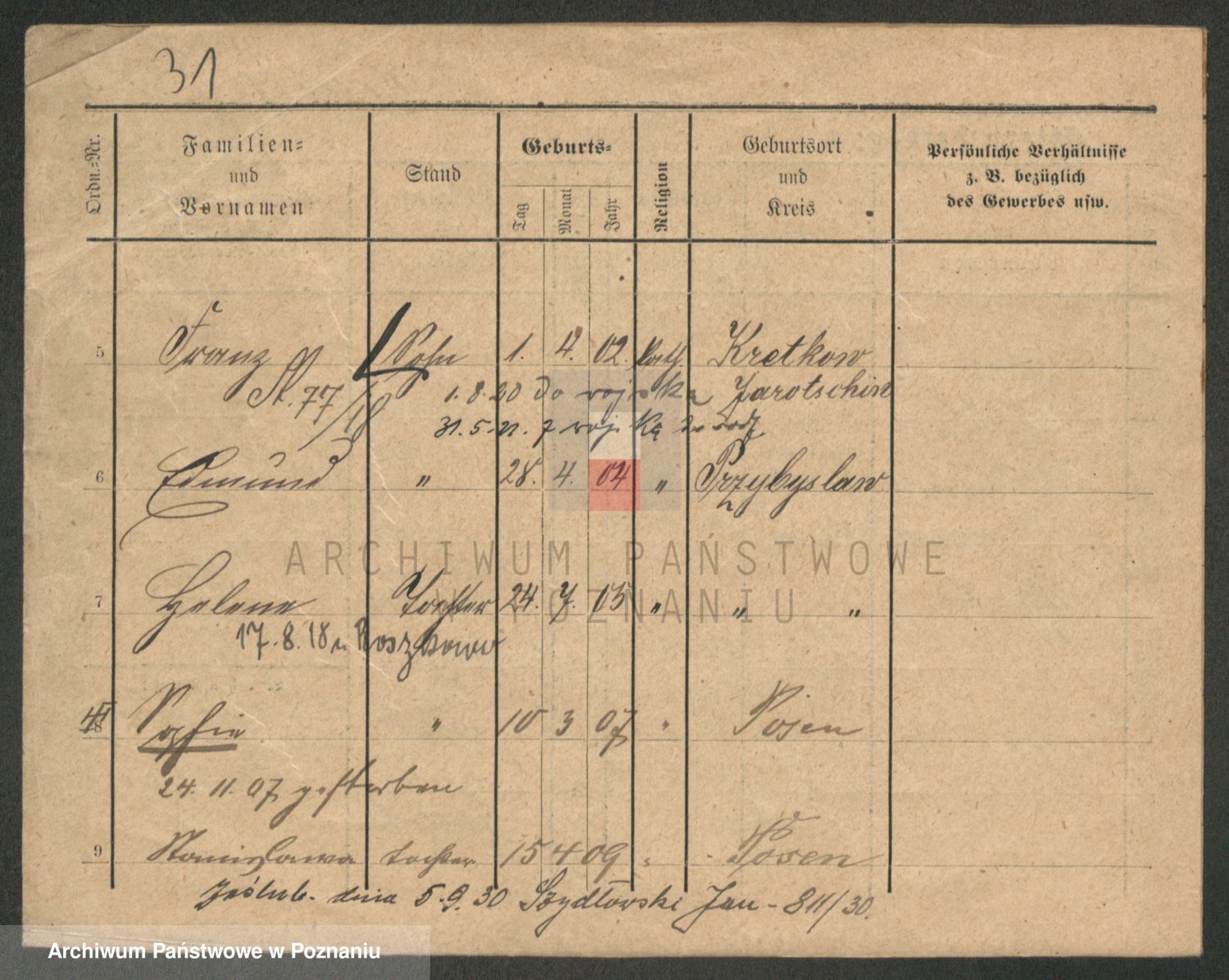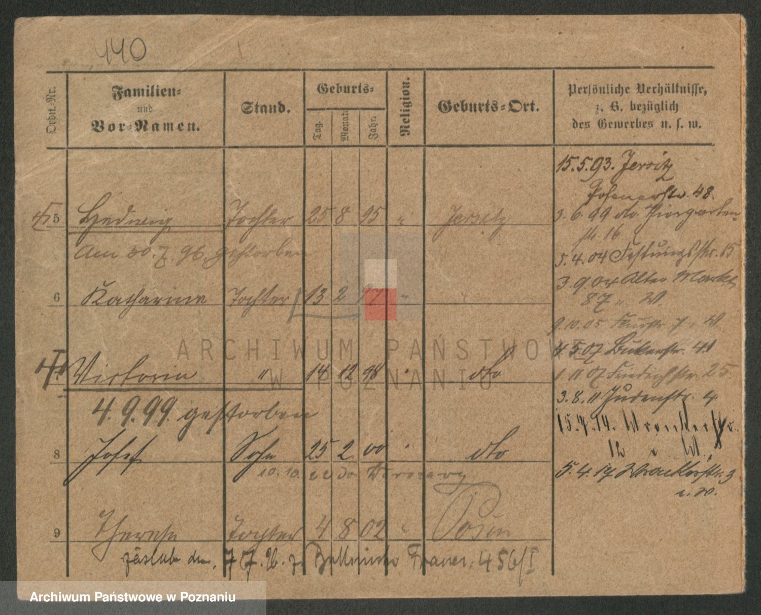 Durch Anklicken eines Namens oder Kartensymbols gelangen Sie zum Vorschau einer Personalkarte. Sie können die Ansicht vergrößern (Symbole am oberen Rand) oder zwischen den Scans wechseln (Pfeile an den Seiten).