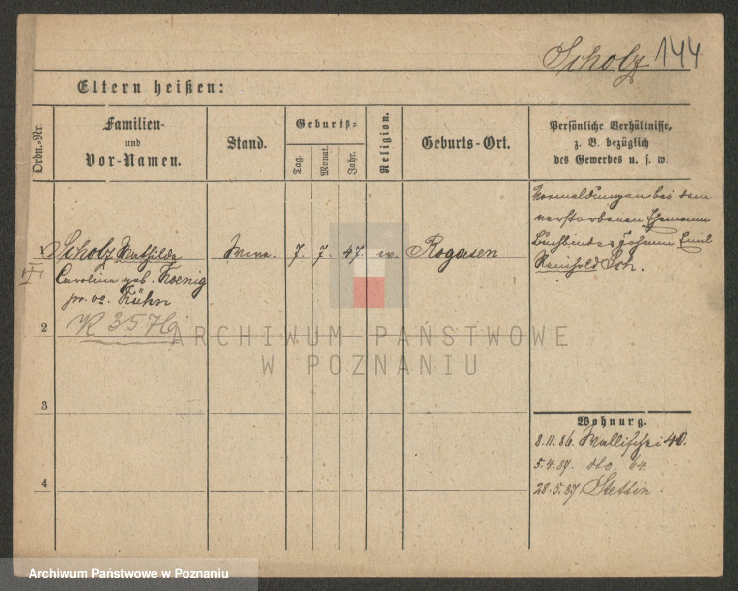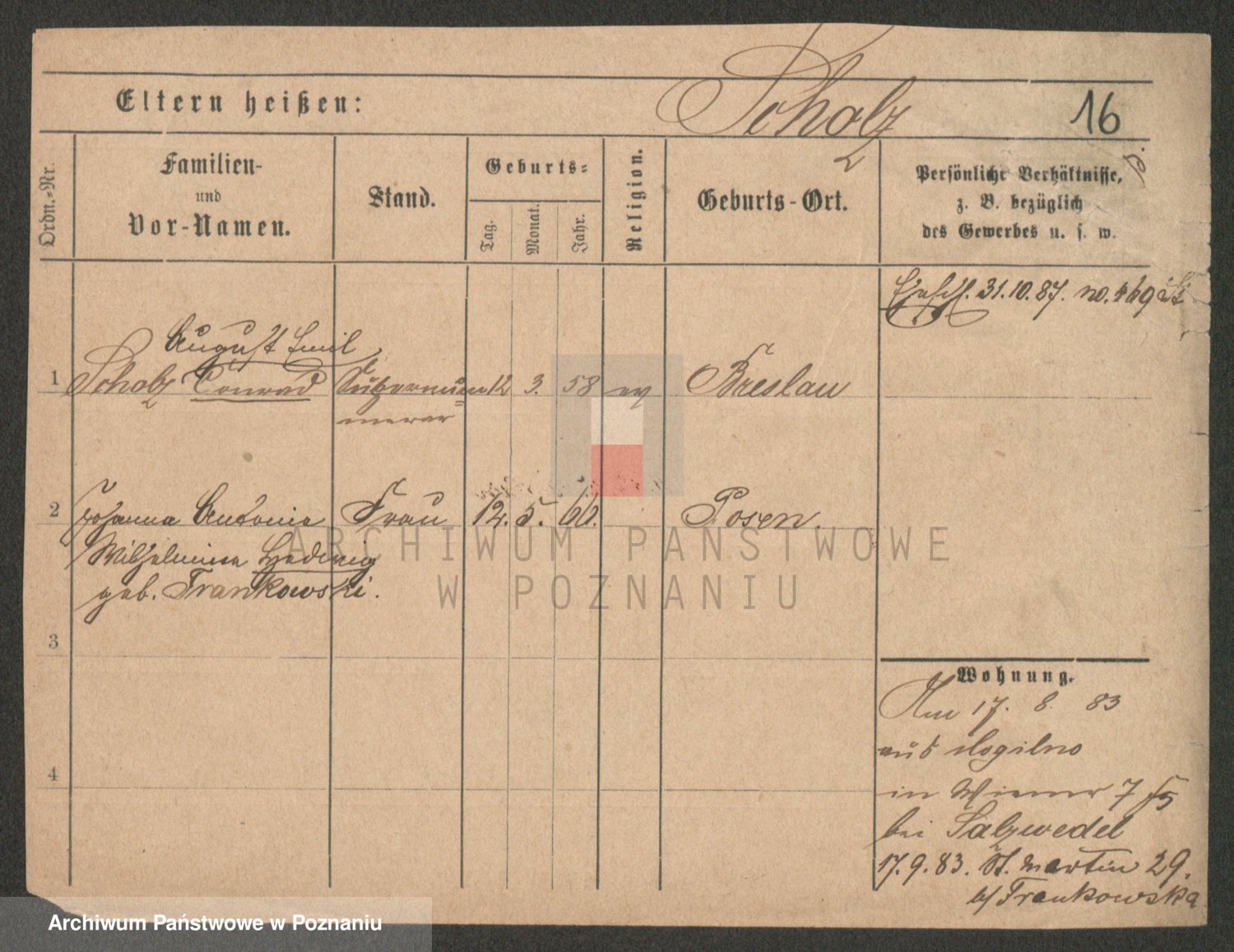 Scholz z d. Frankowski, Johanna Antonie Wilhelmine Hedwig