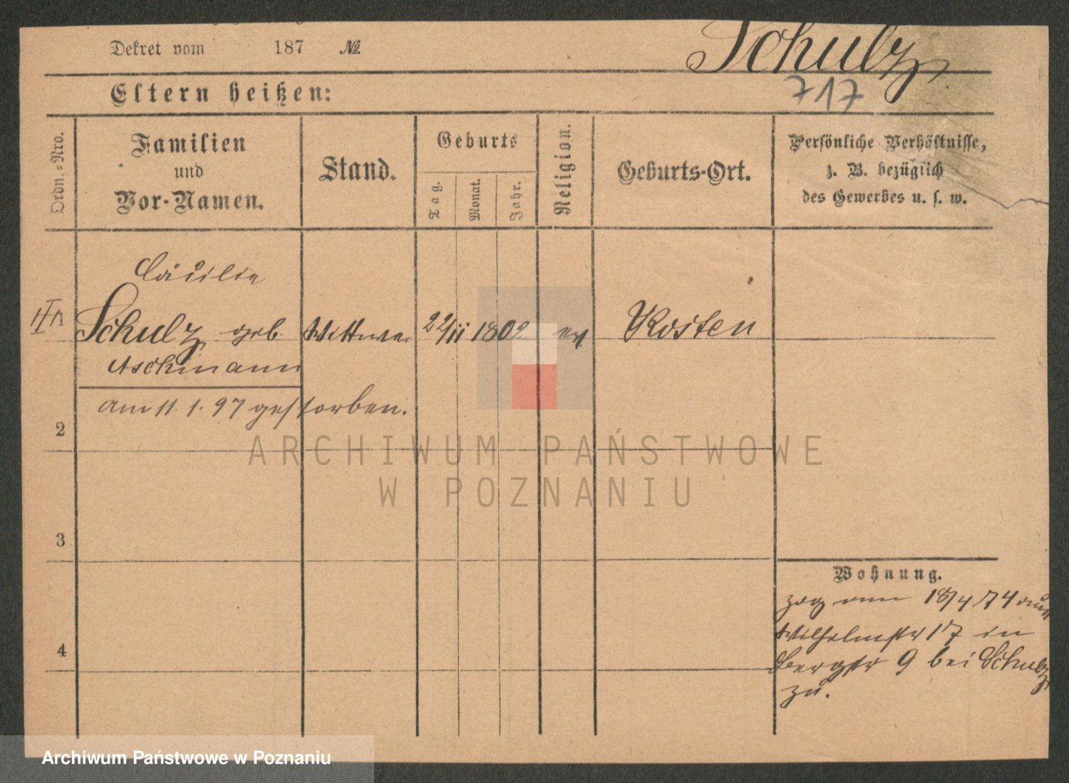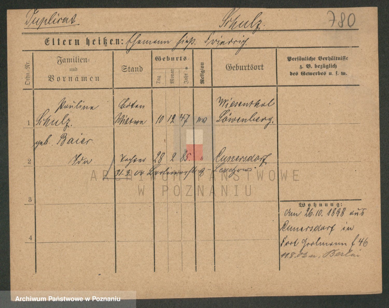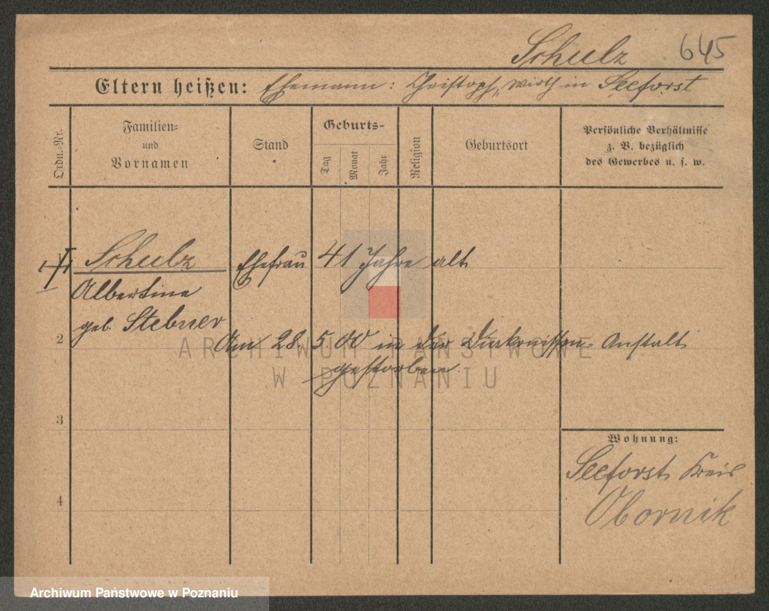 Schulz z d. Fenske, Rosine