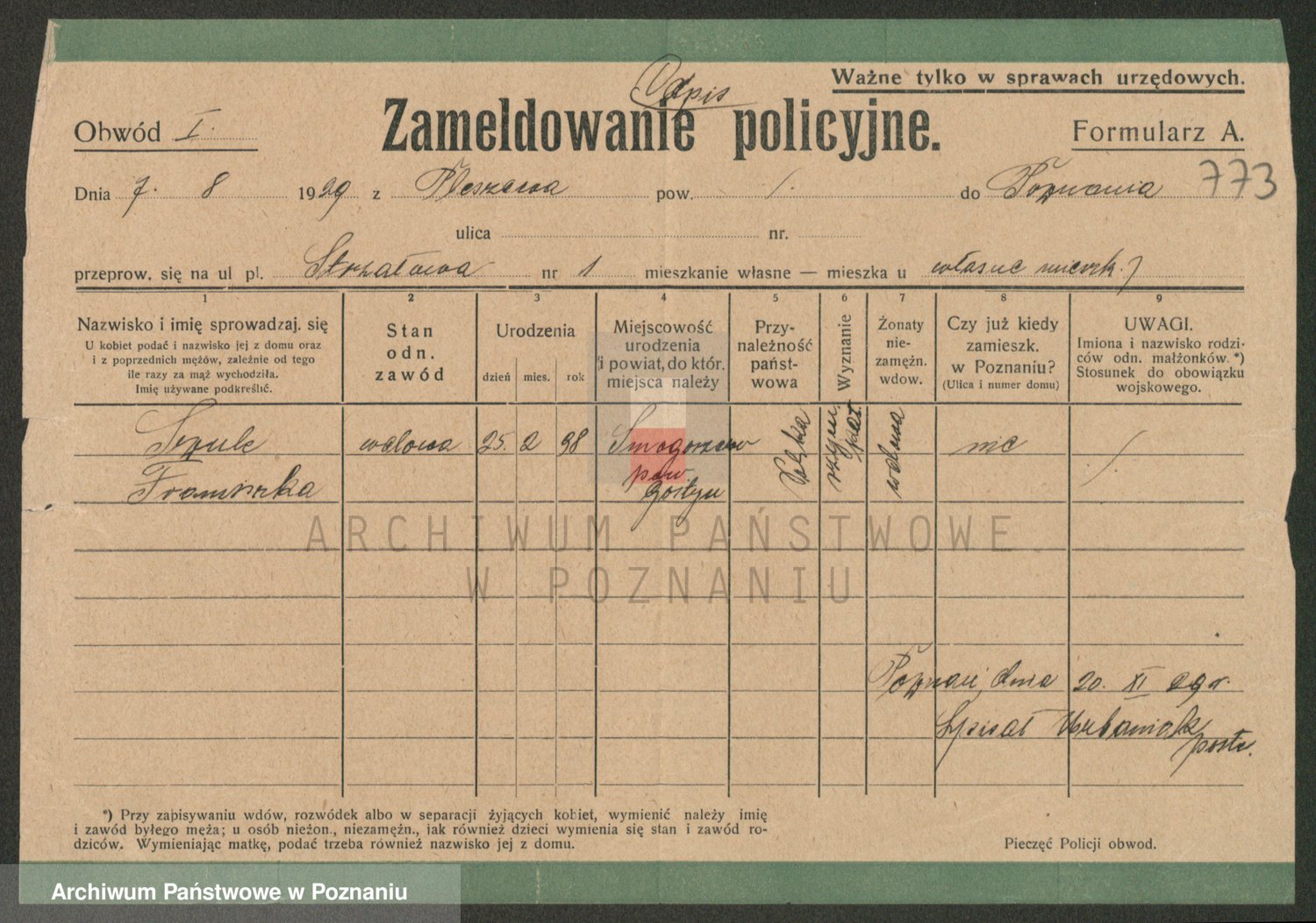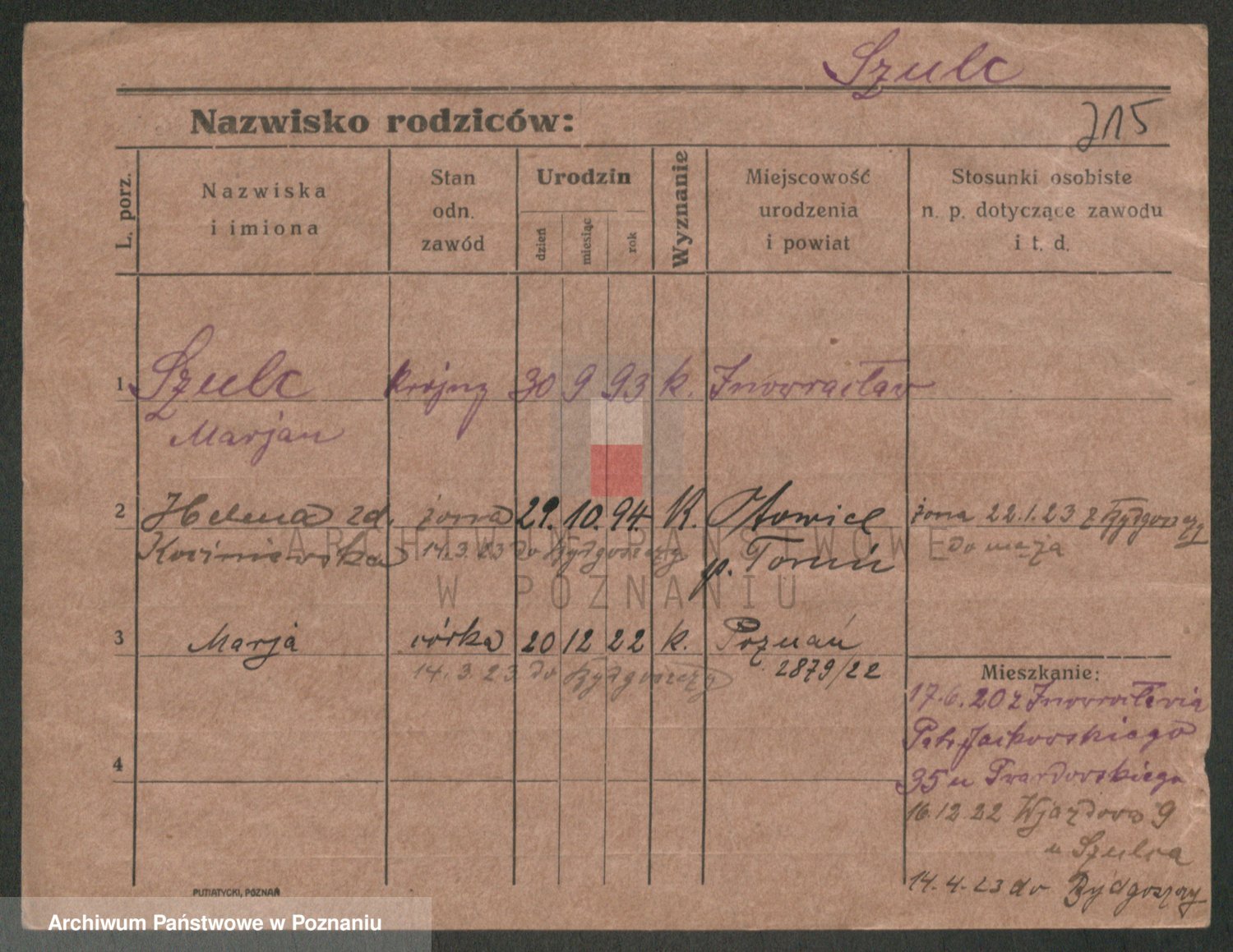 Szulc z d. Poplinska, Sofie