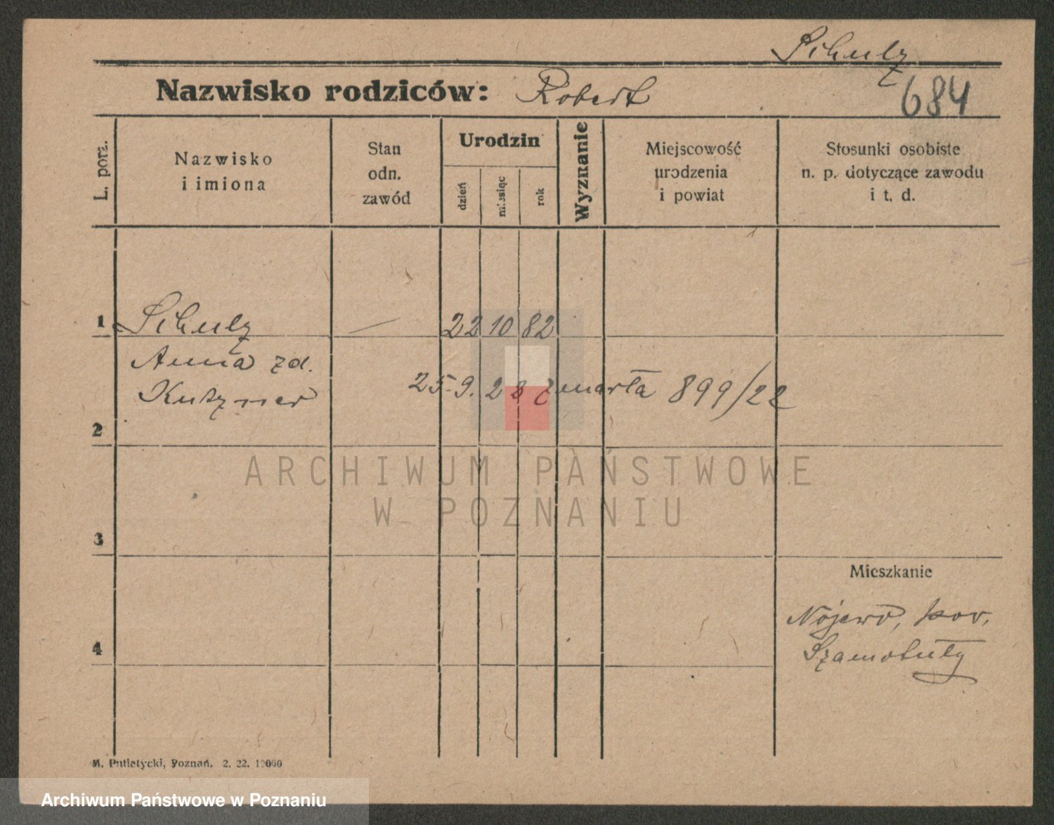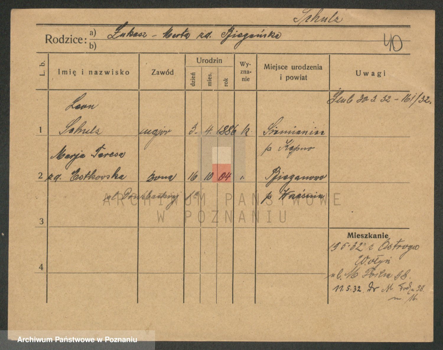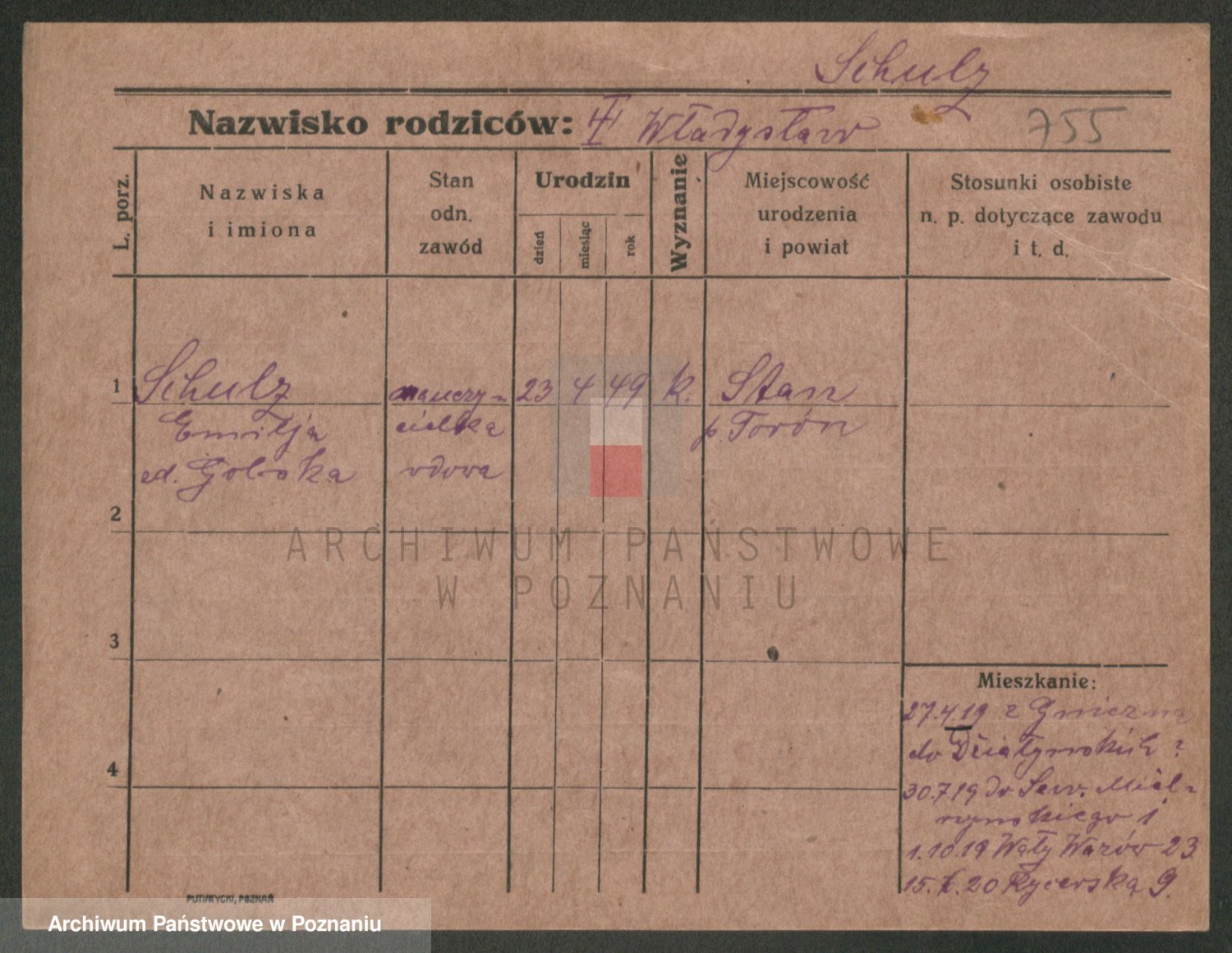 Schulz z d. Wojciechowska I voto Fabisiak, Theodora
