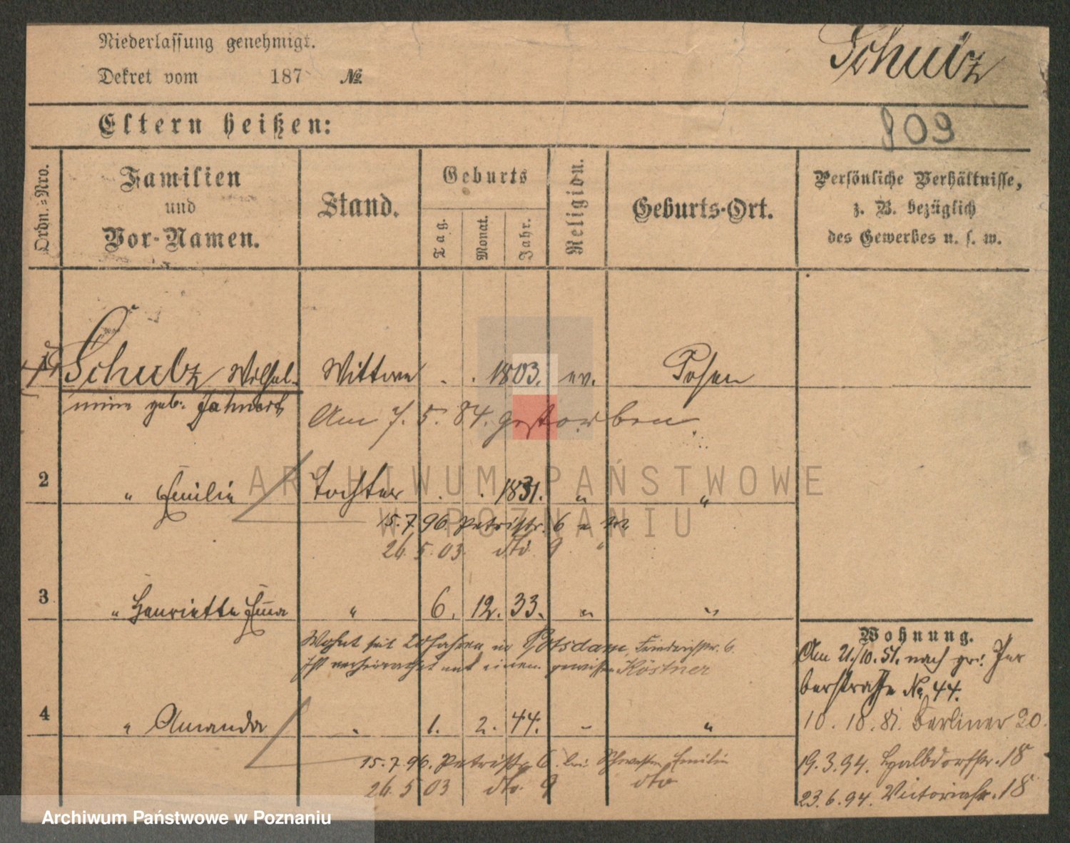 Schulz z d. Schill, Wilhelmine