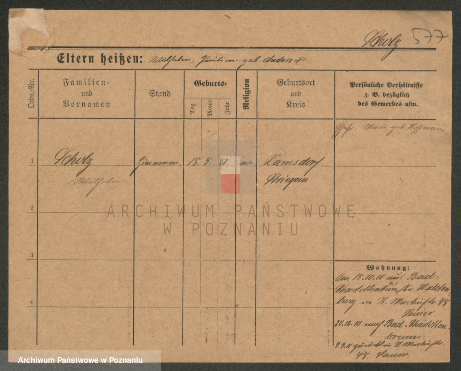 Schulz z d. Hirschfelder, Wilhelmine