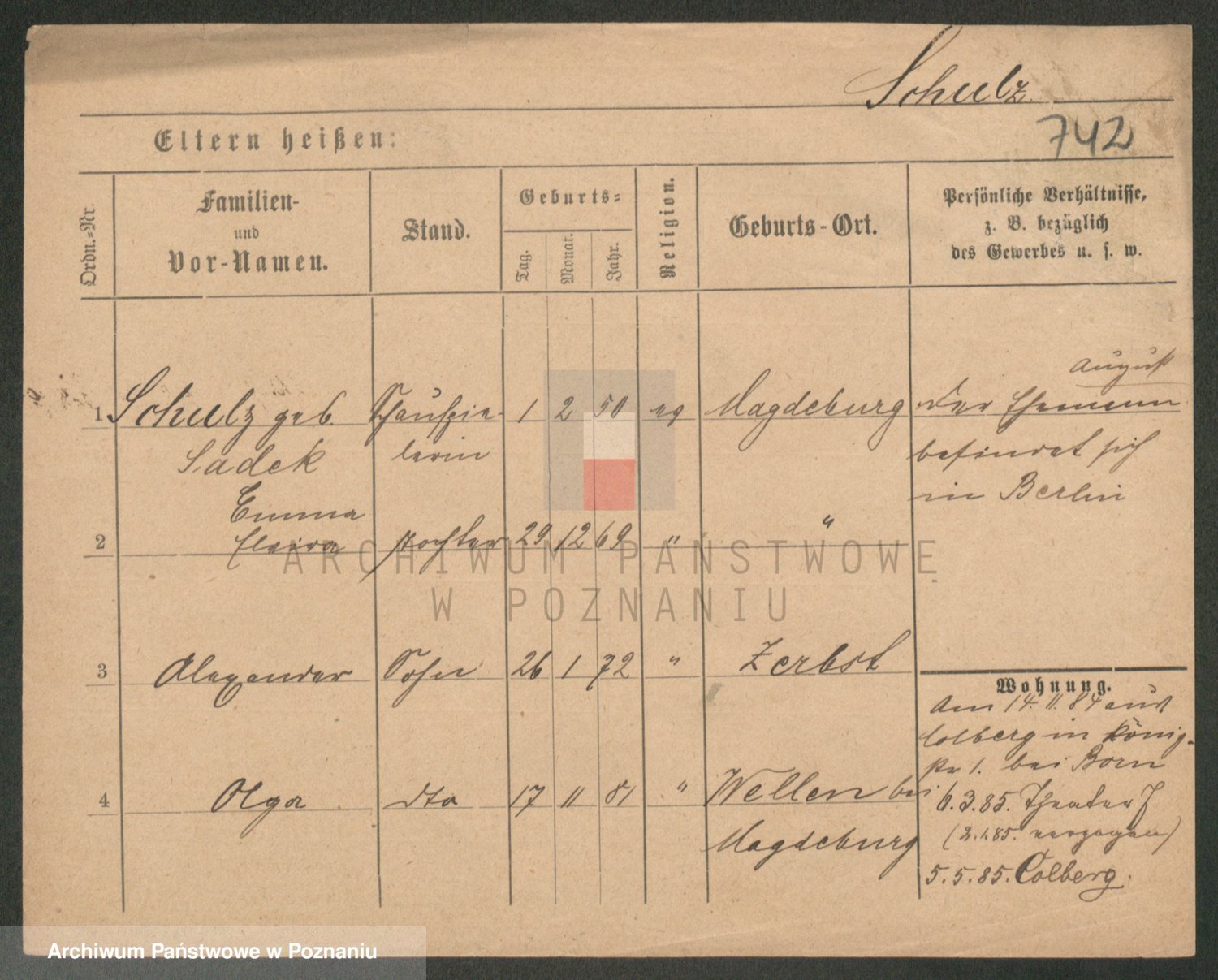 Schulz z d. Sadan, Pauline