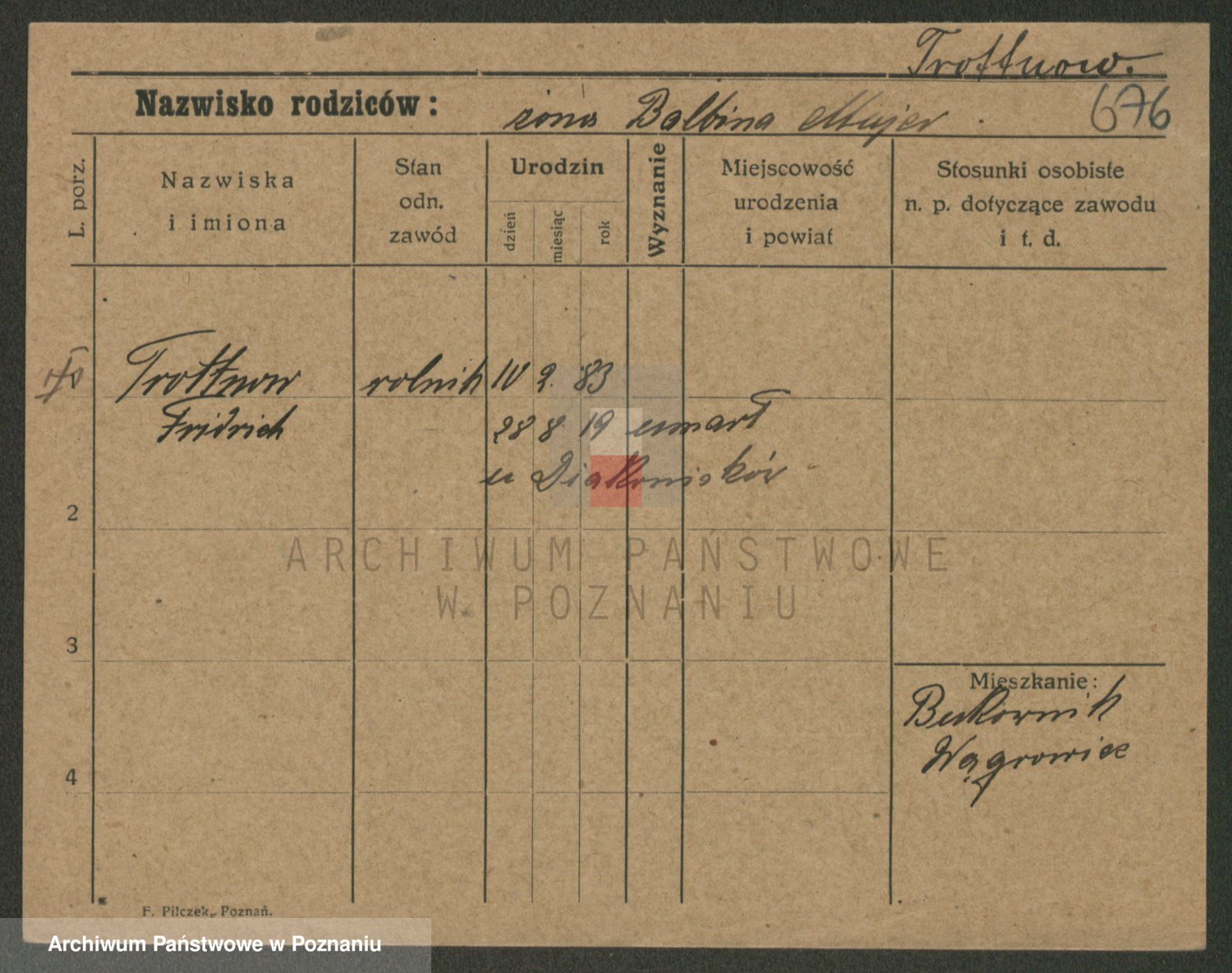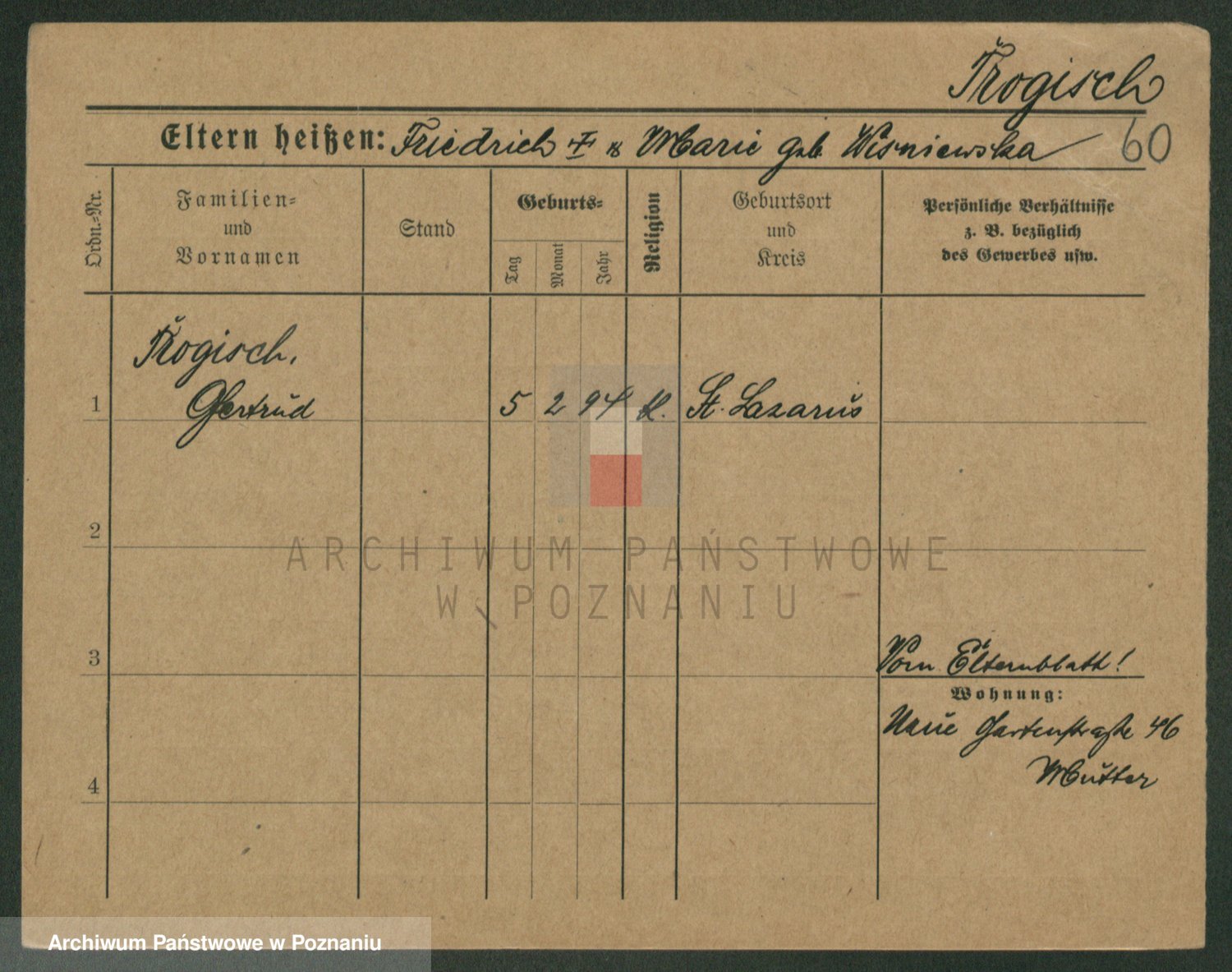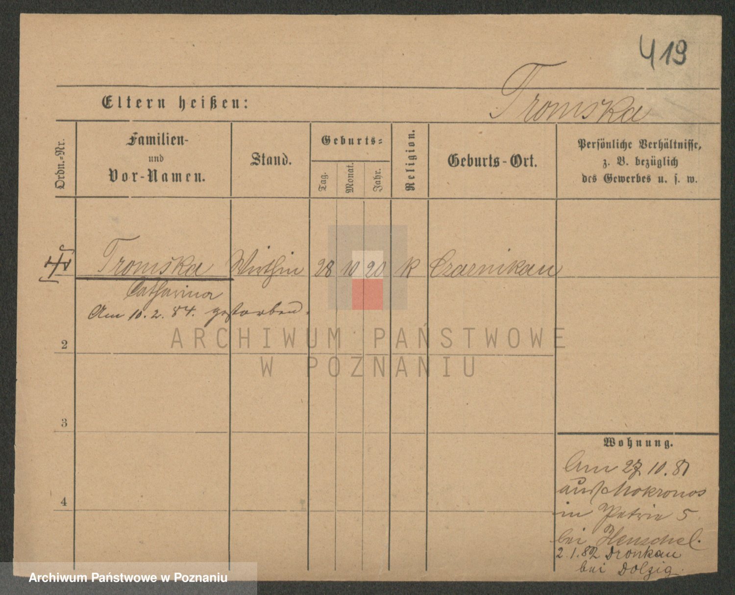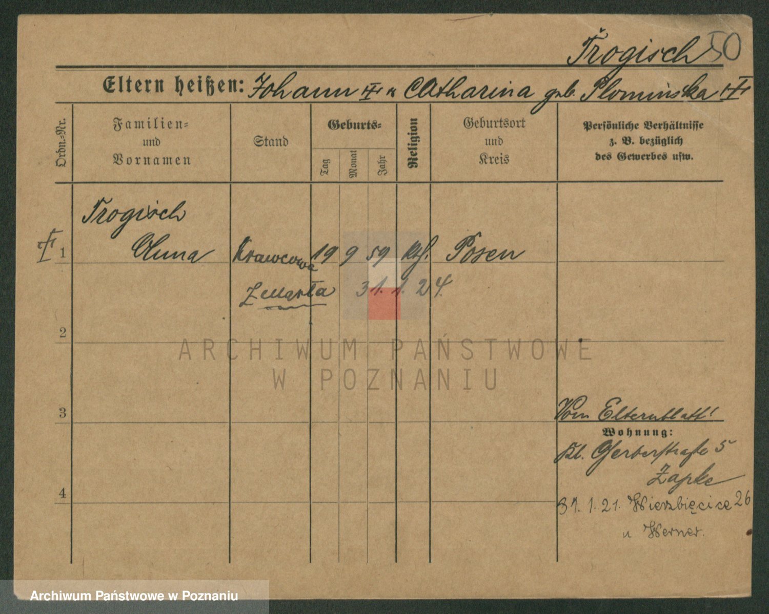 Trogisch zd. Rominska p. v. Foerster, Catharine