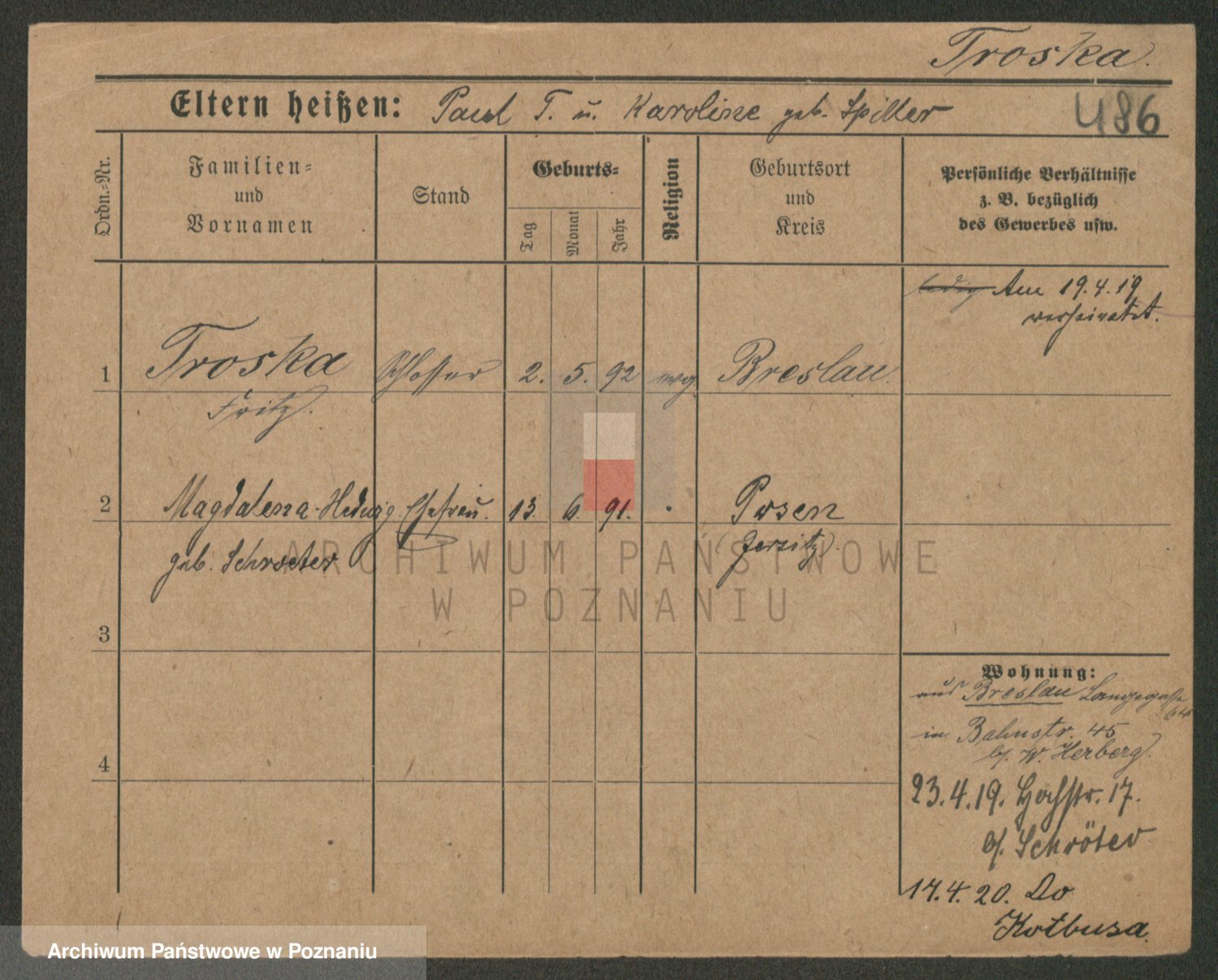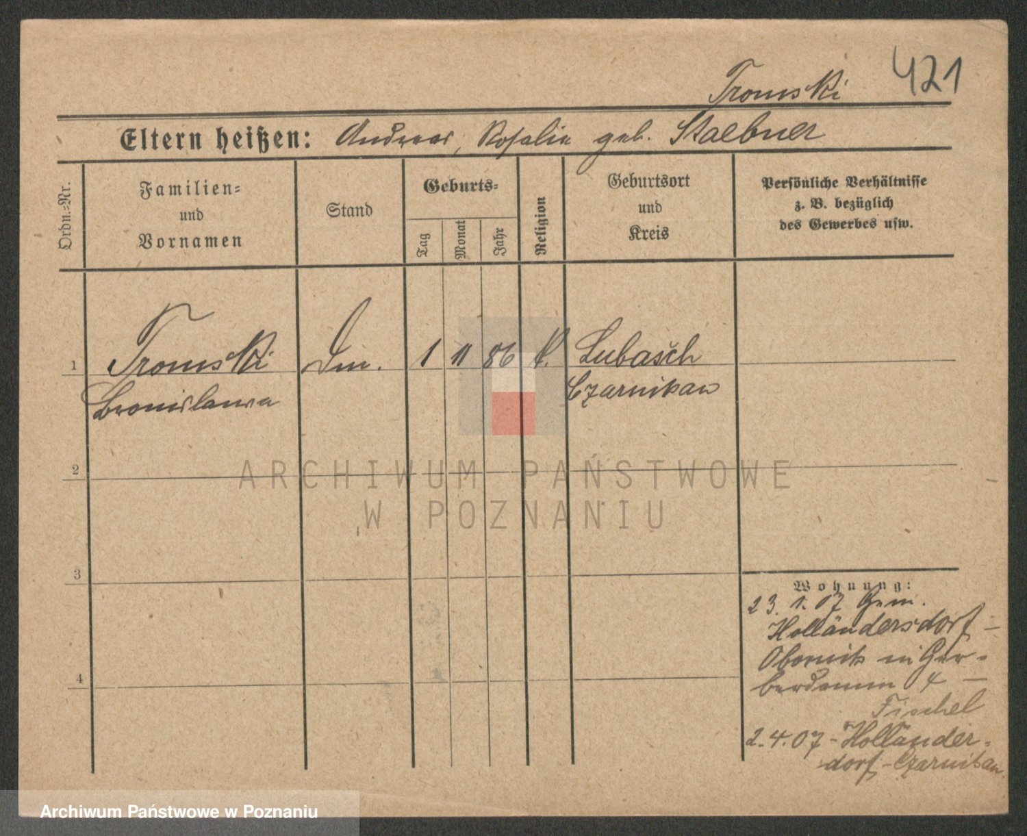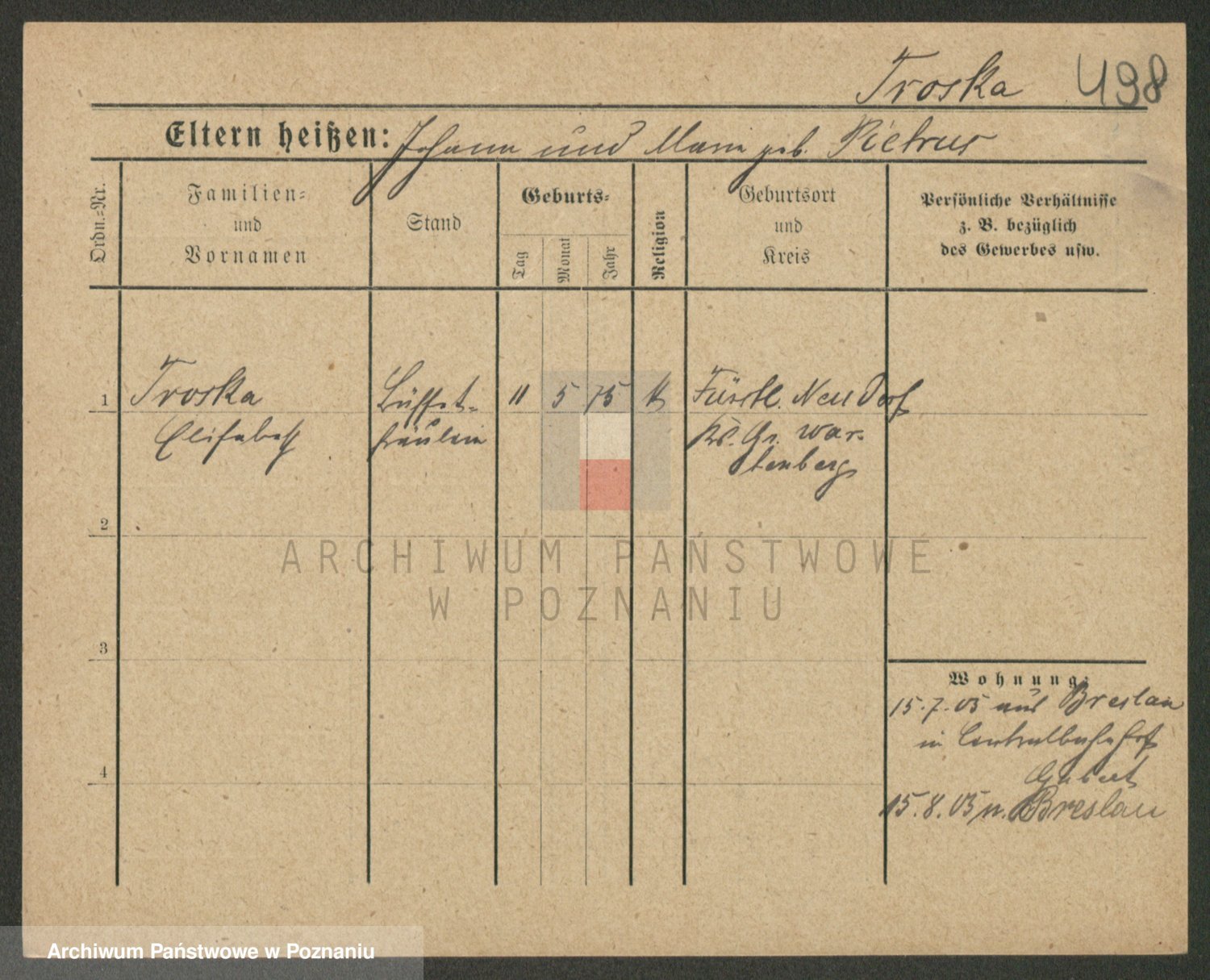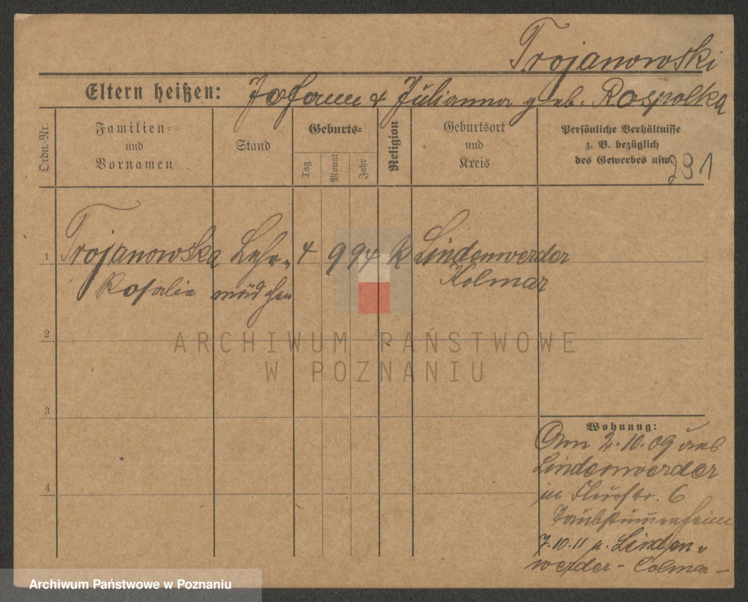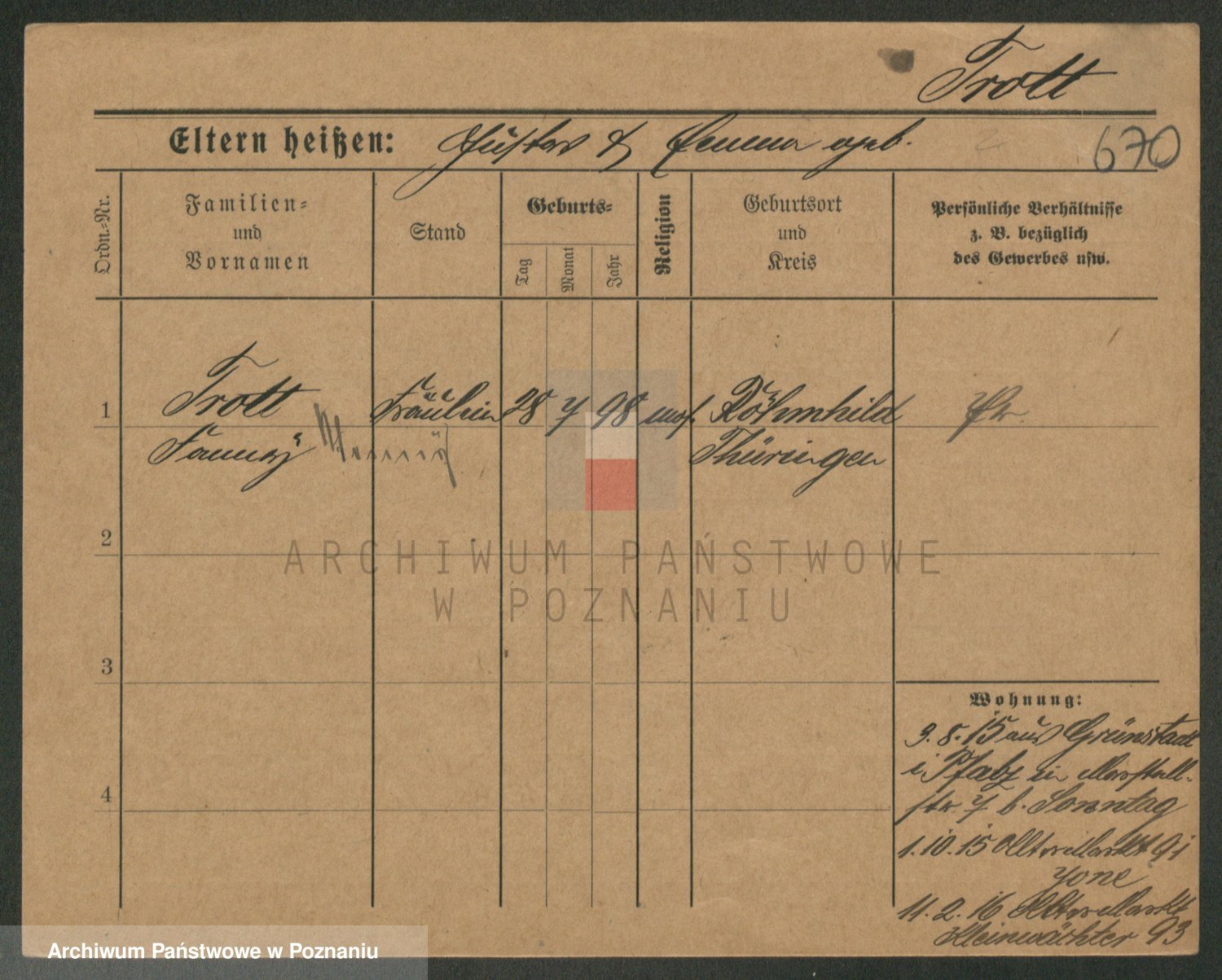 Trogisch zd. Rominska p. v. Foerster, Catharine