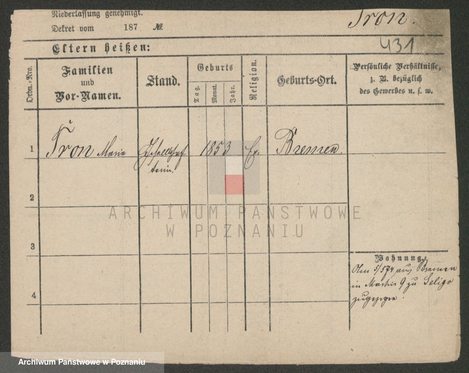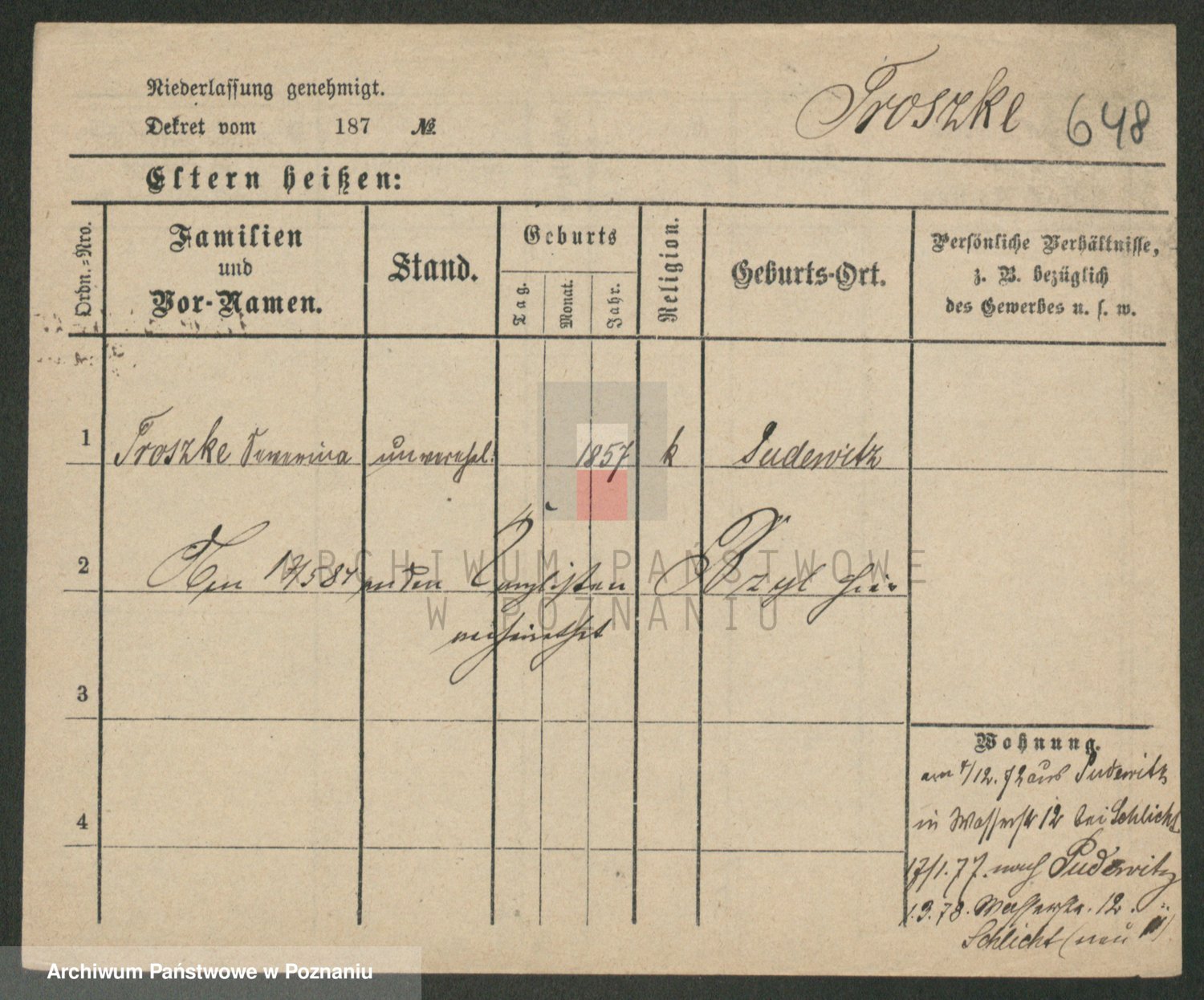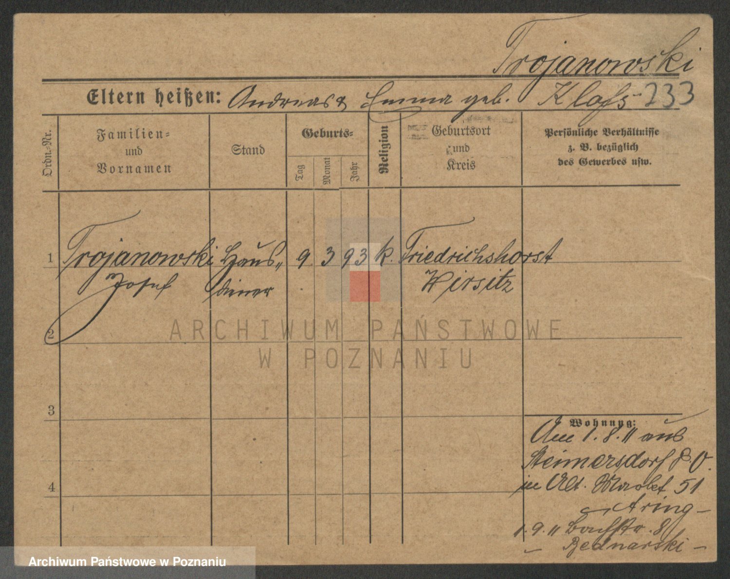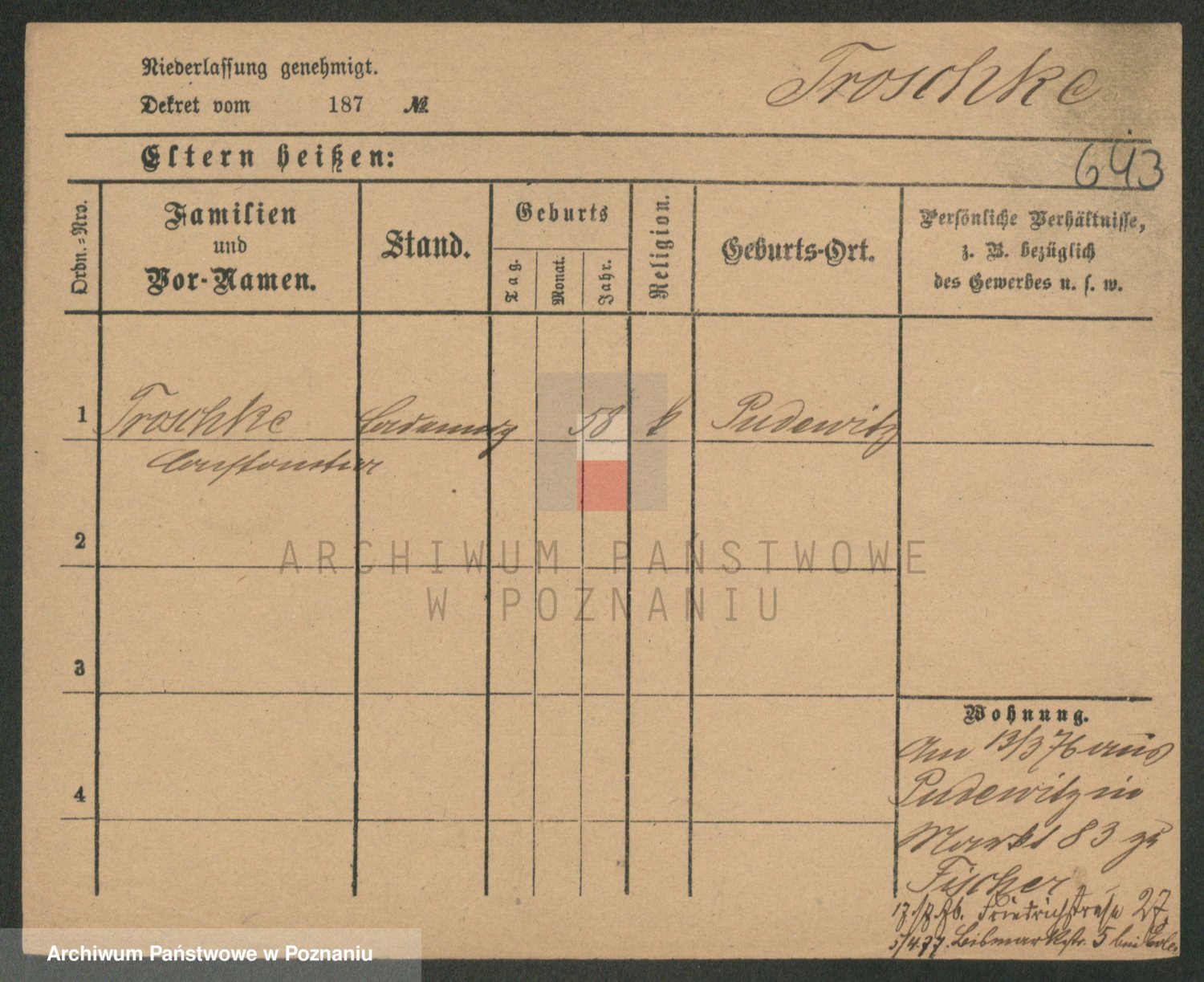 Trogisch zd. Rominska p. v. Foerster, Catharine