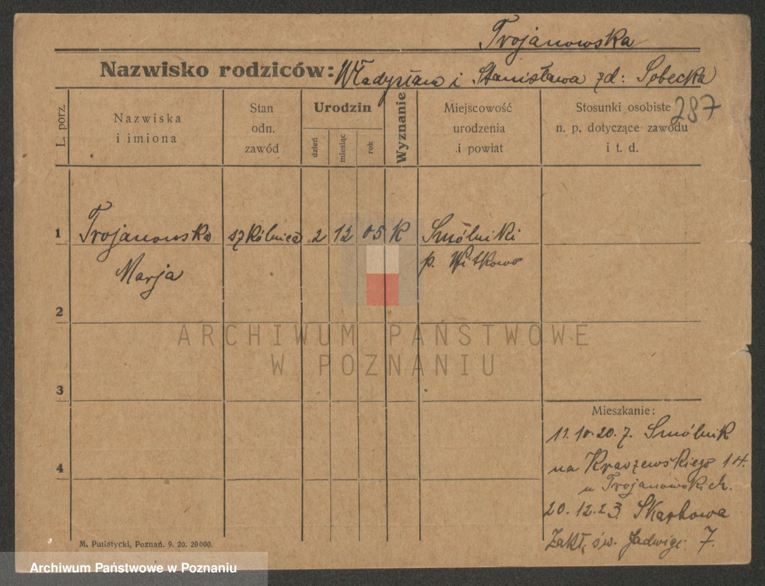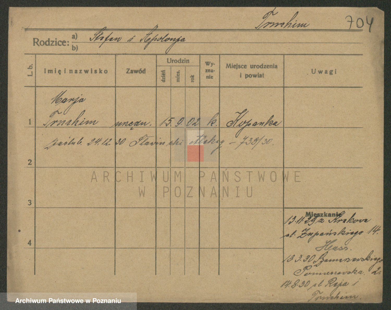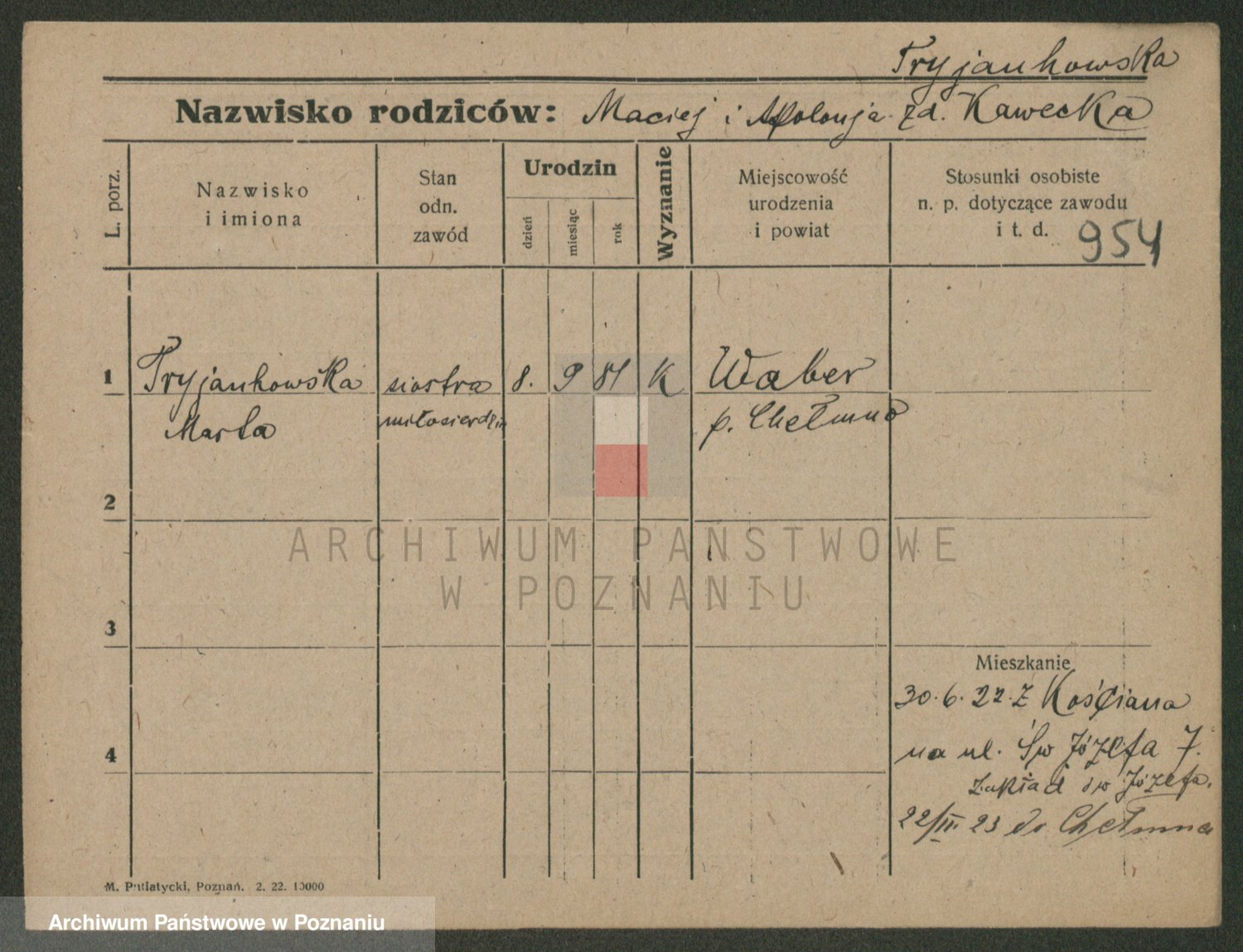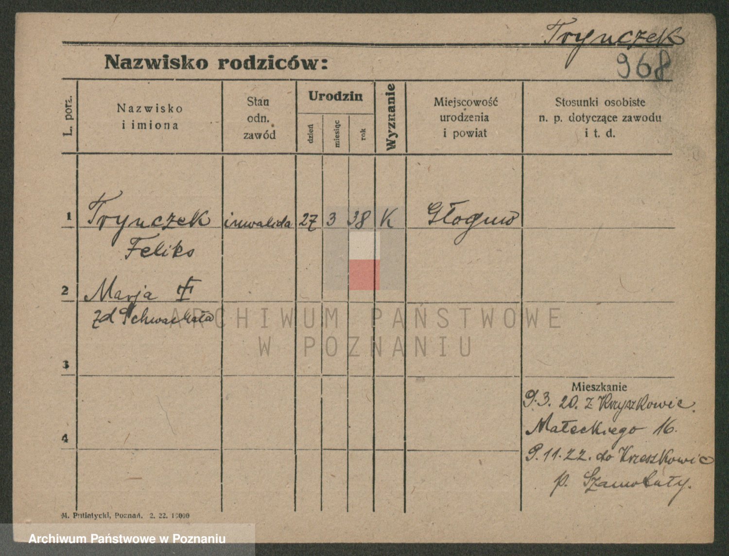 Trynczek zd. Schwachała, Marja
